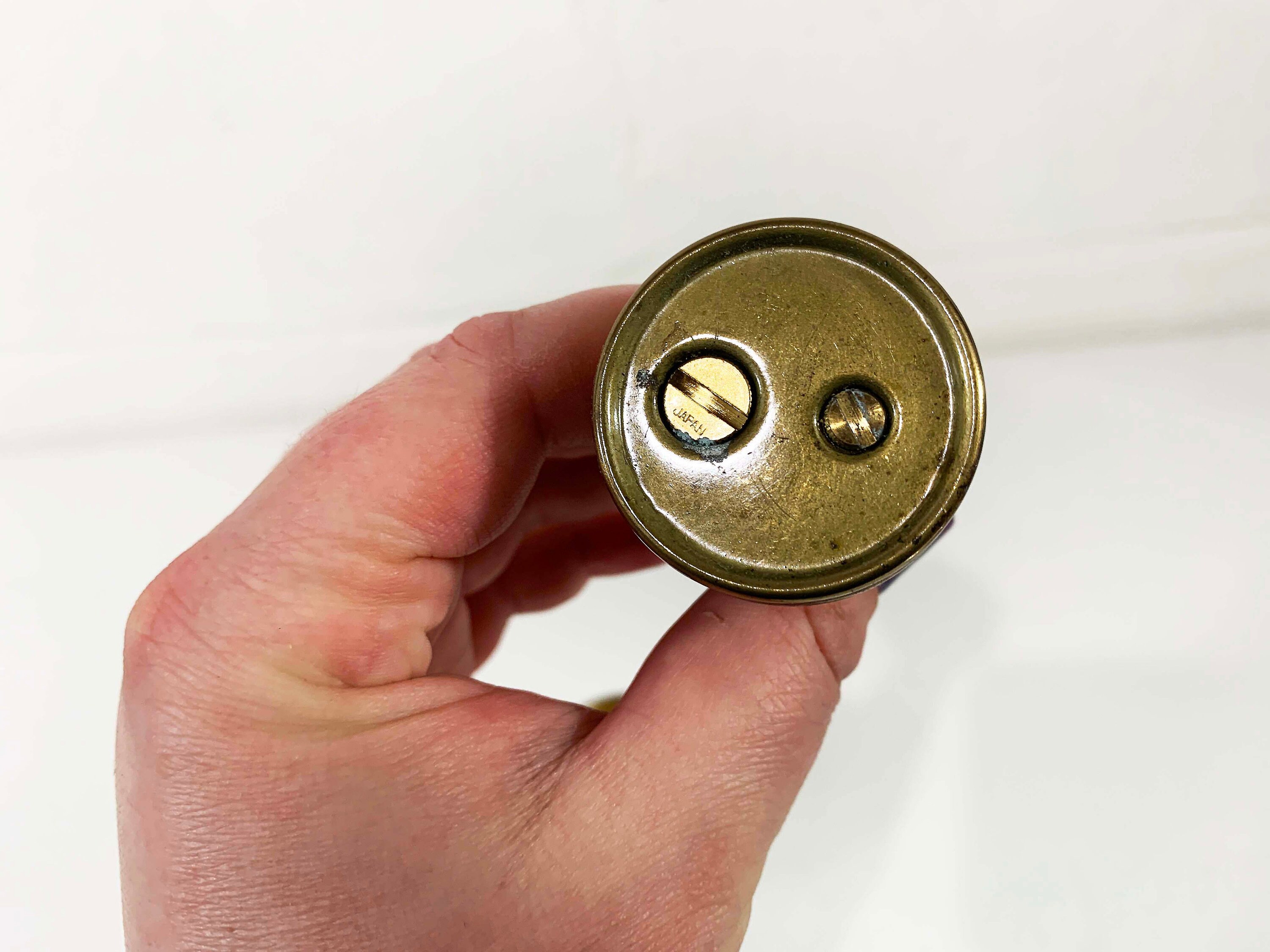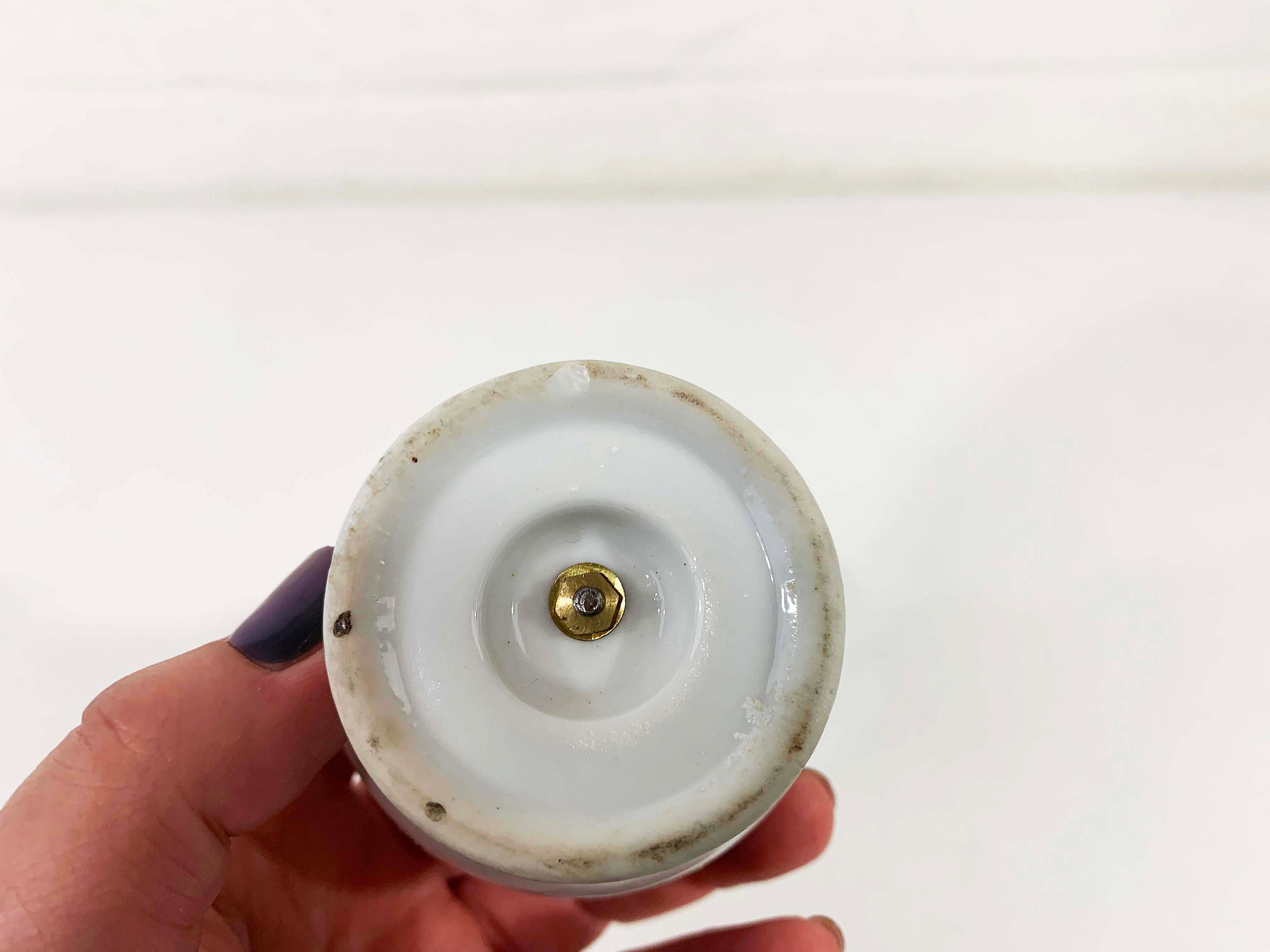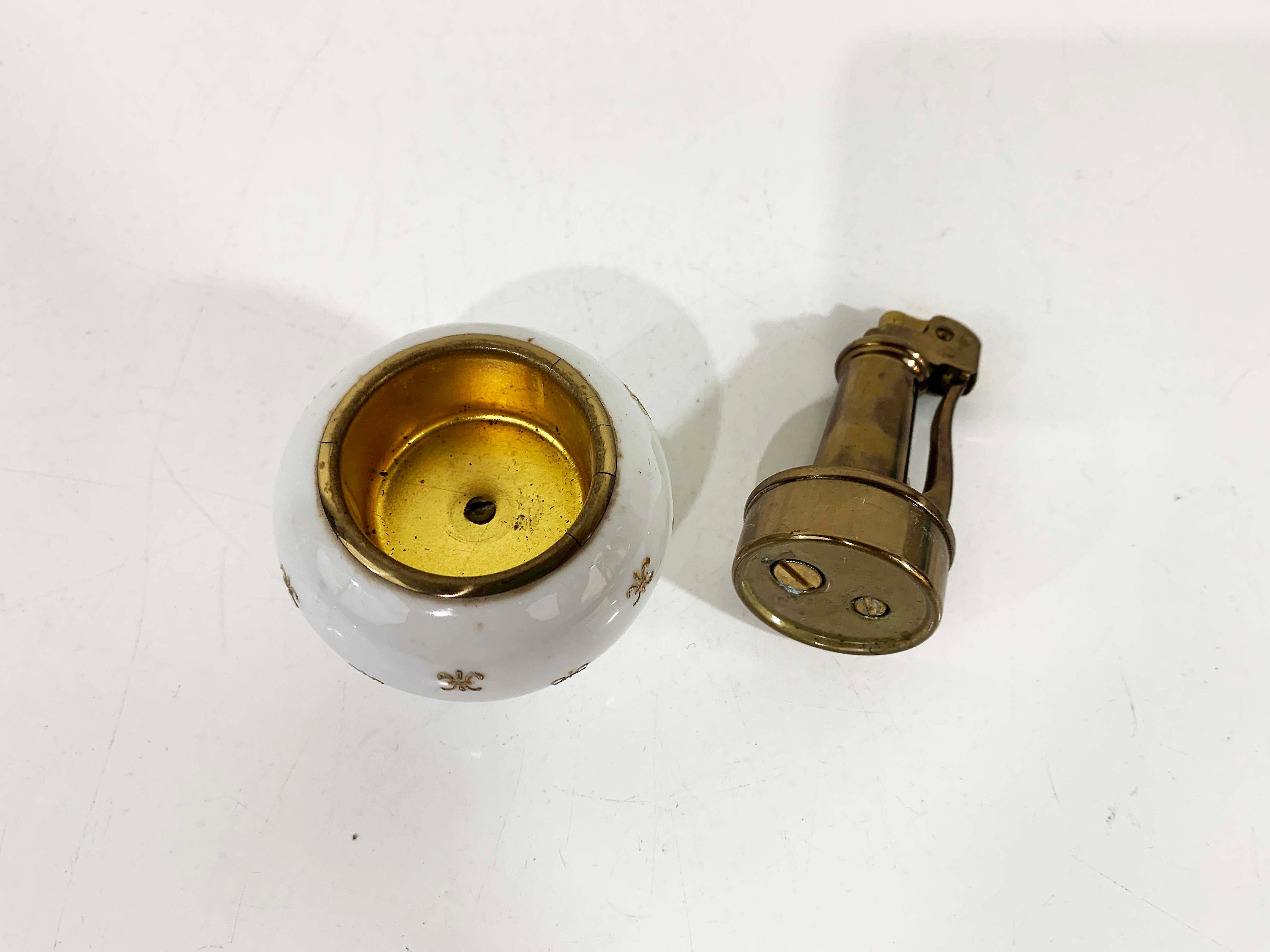 Super adorable tall vintage lighter in great condition - no cracks or chips! I have not tried to refill it so I cannot guarantee that it is in working order. The lighter is approximately 5 inches tall and 2 1/2 inches in diameter.