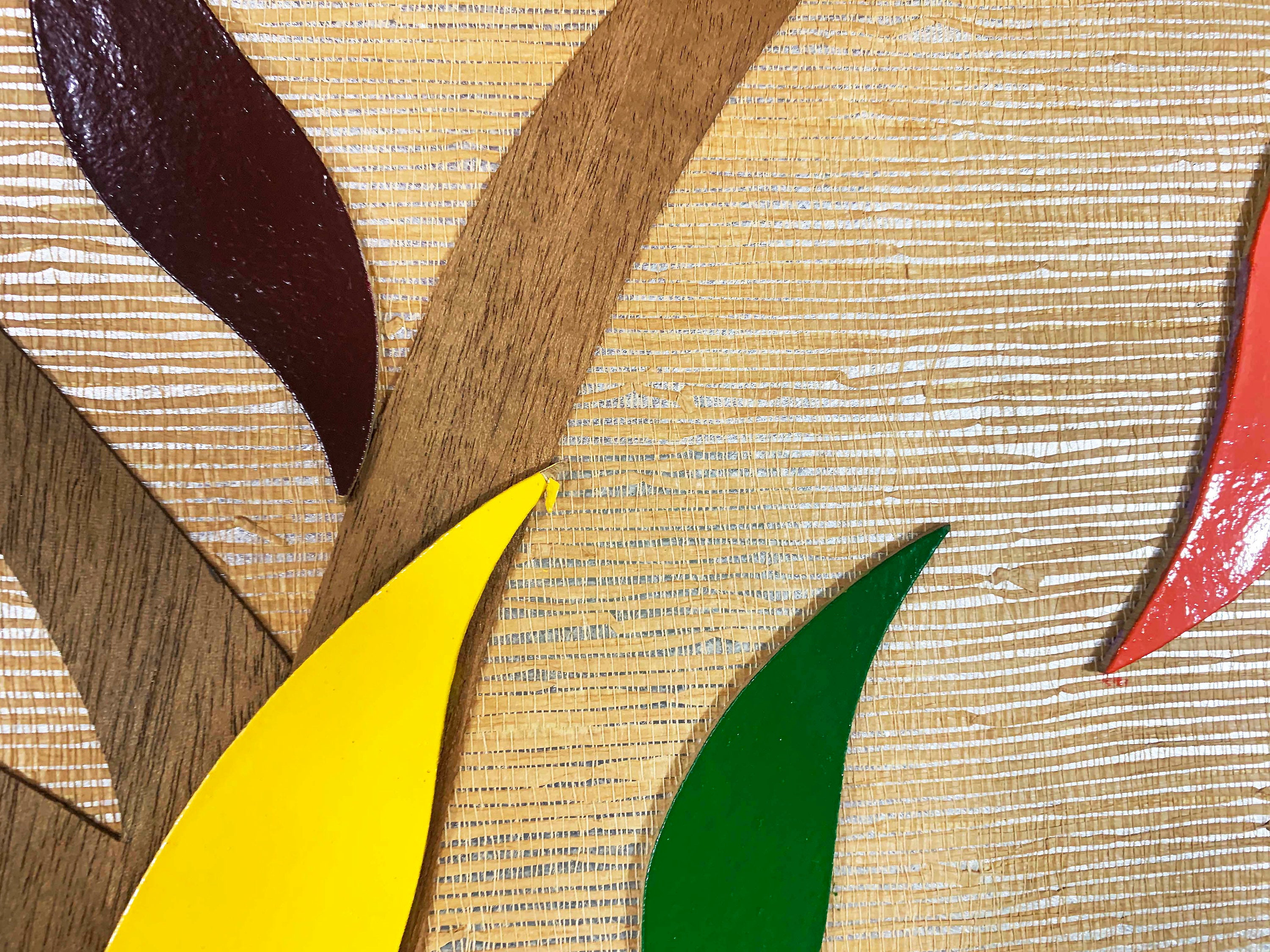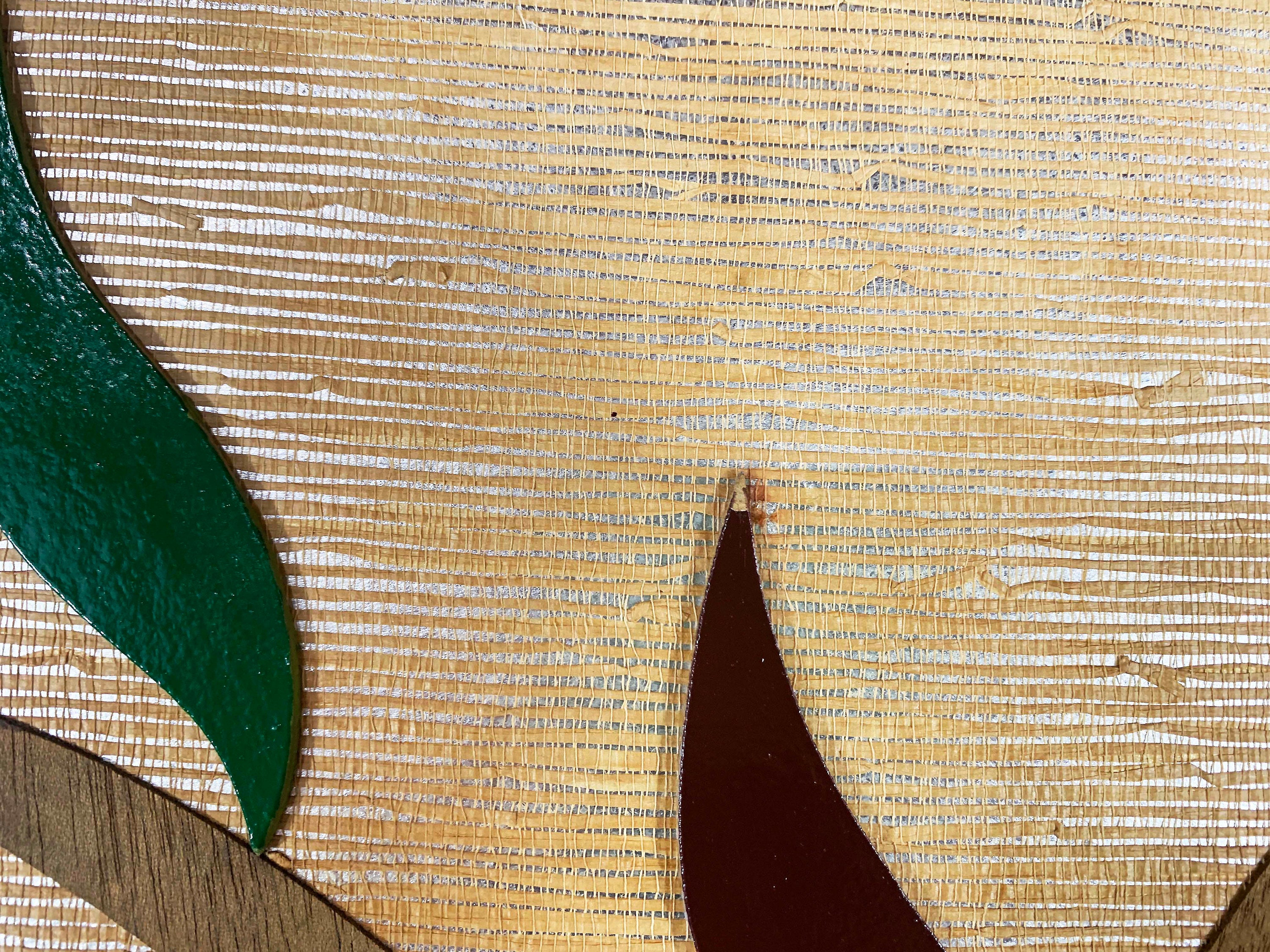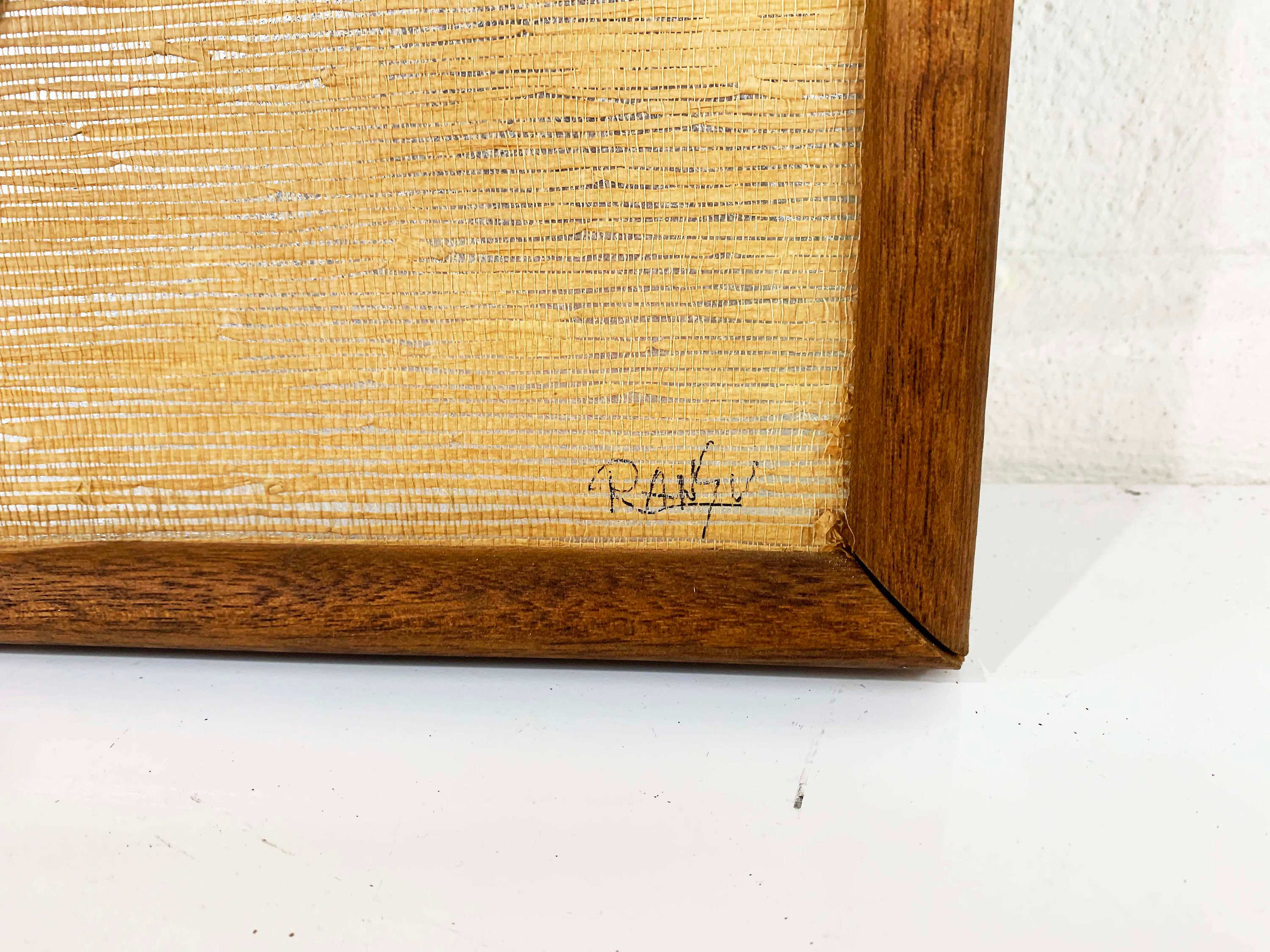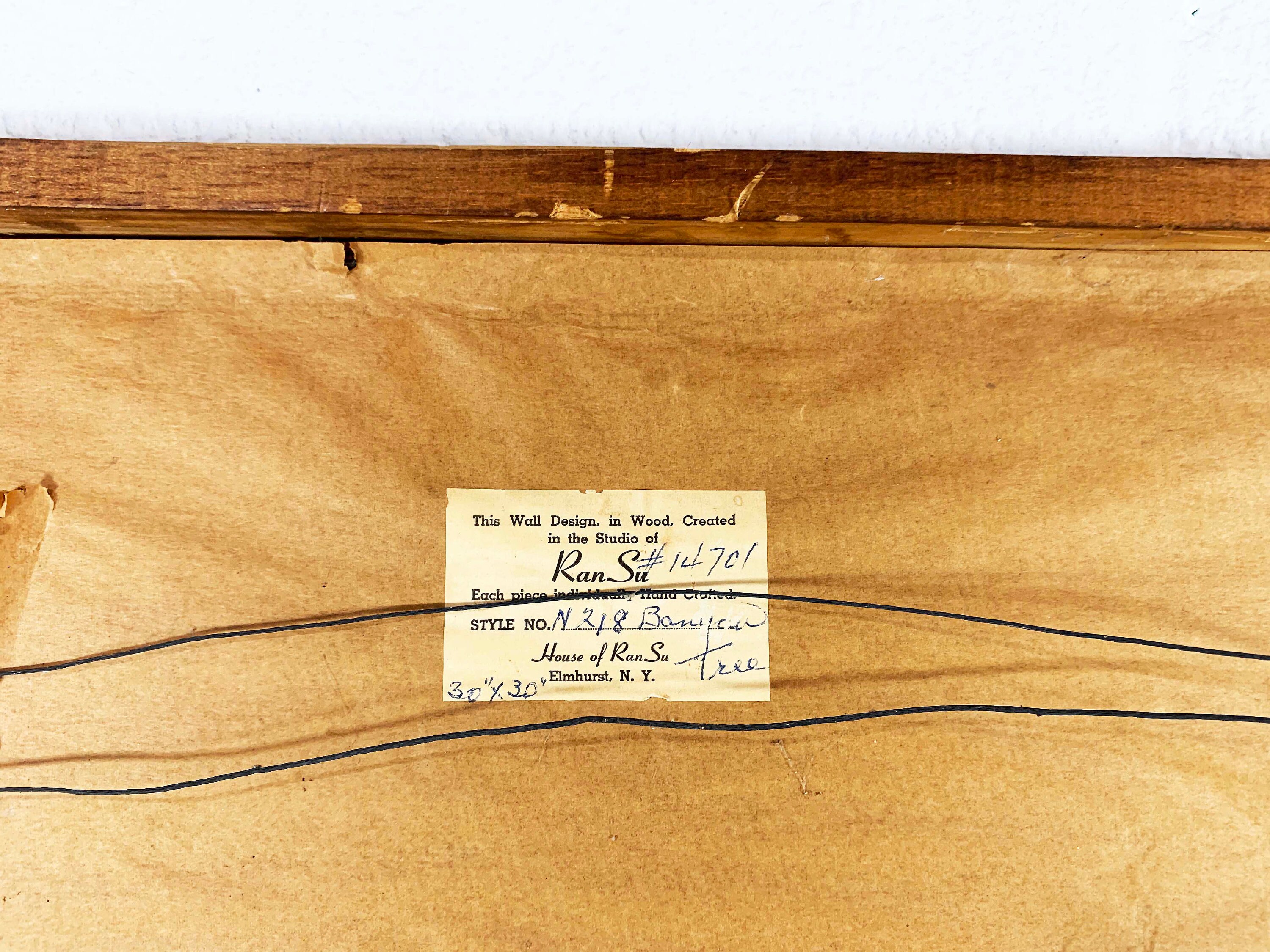 Amazing original 3D painted wood art created by Studio Ran Su in Elmhurst, NY. The frame is approximately 31 inches square. It is signed "RanSu" at the bottom. There are a few spots where the background has torn and a few of the edges of the tree leaves have damage - please be sure to inspect all photos! This original art was an estate find from a very groovy pad located just outside of Washington, DC. The house was an amazing time capsule of 60's era art and design.