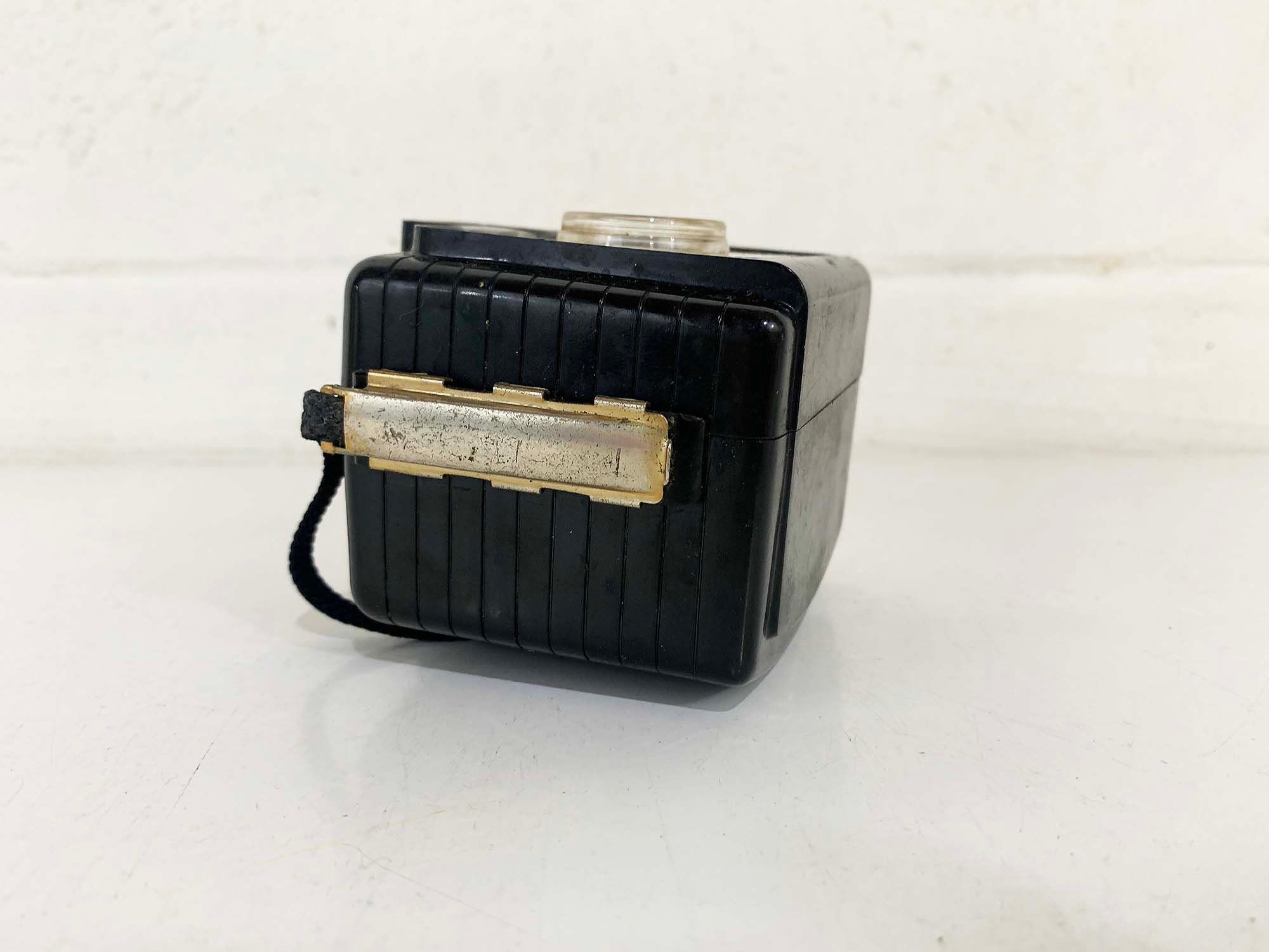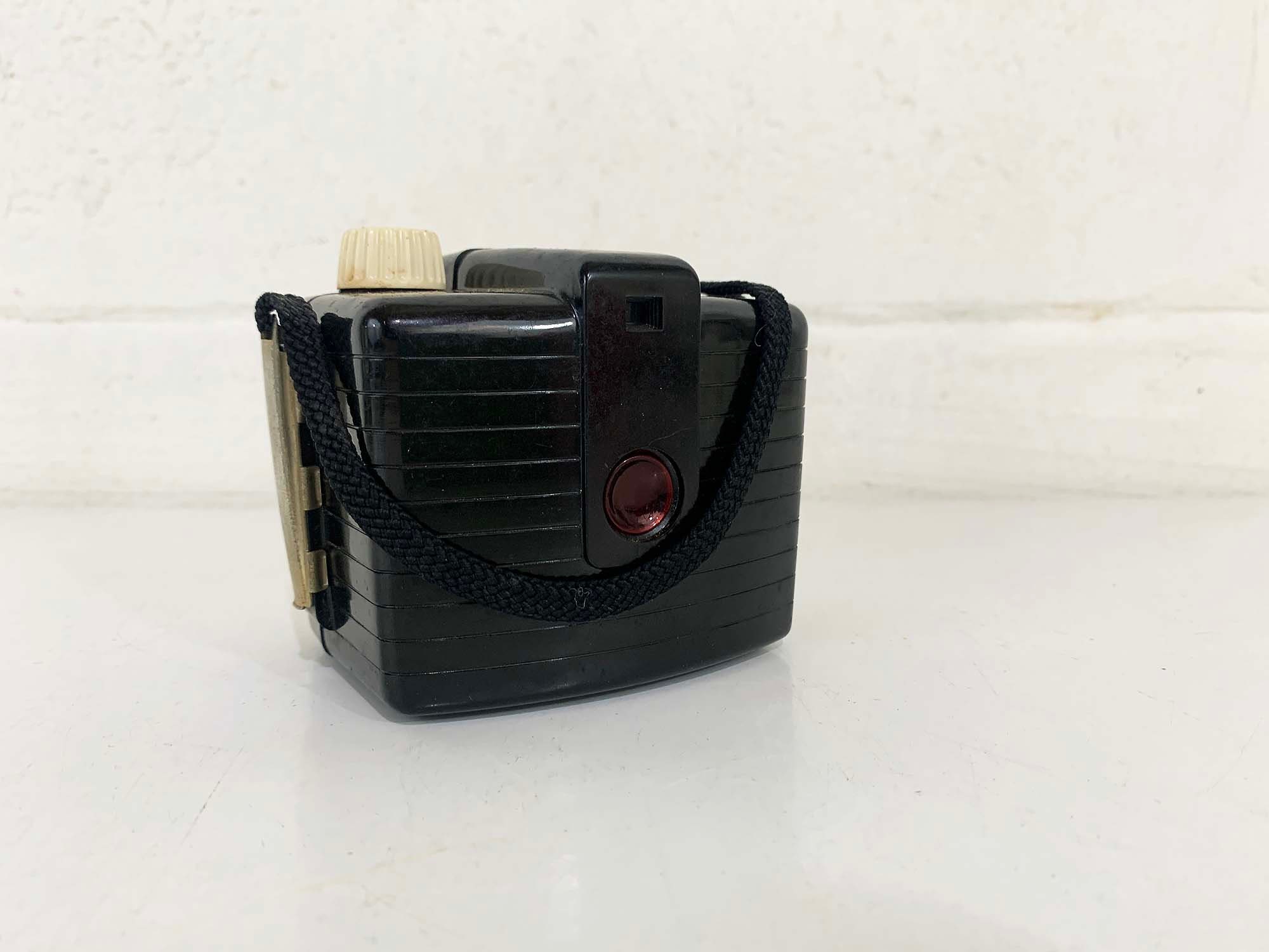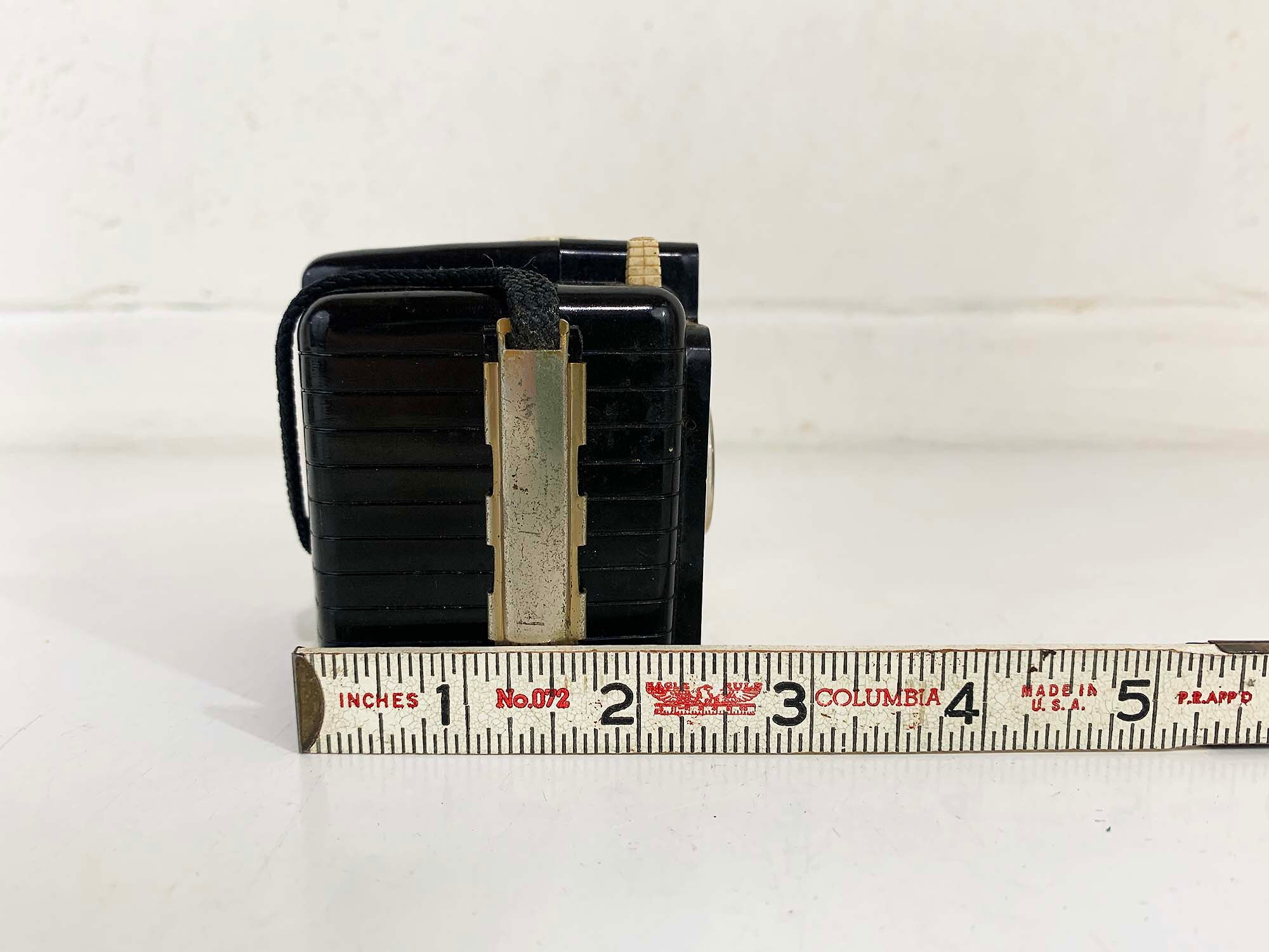 Cute little plastic Kodak Brownie Bullet camera. A great way to add vintage flair to your home on a bookcase or shelf! It's in good vintage condition with some light scuffs and scrapes. I cannot guarantee that the camera works but it would make an excellent display piece! Camera is approximately 3 inches tall, 3 3/4 inches wide, and 2 1/2 inches deep.
