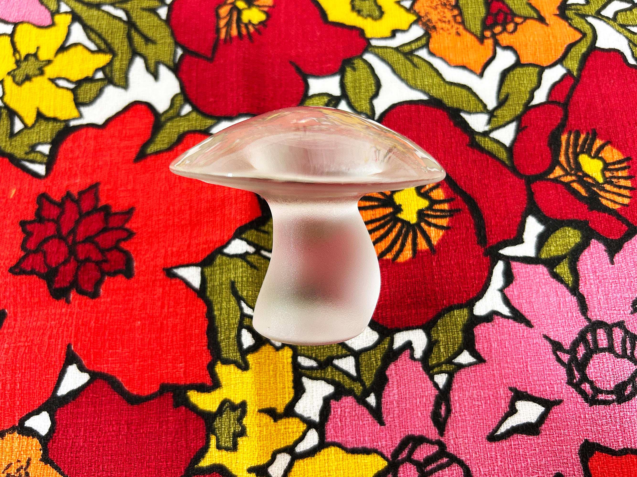 Super cute small glass mushroom figurine made by Viking! In excellent vintage condition with no significant flaws. It is approximately 2 1/2 inches tall.