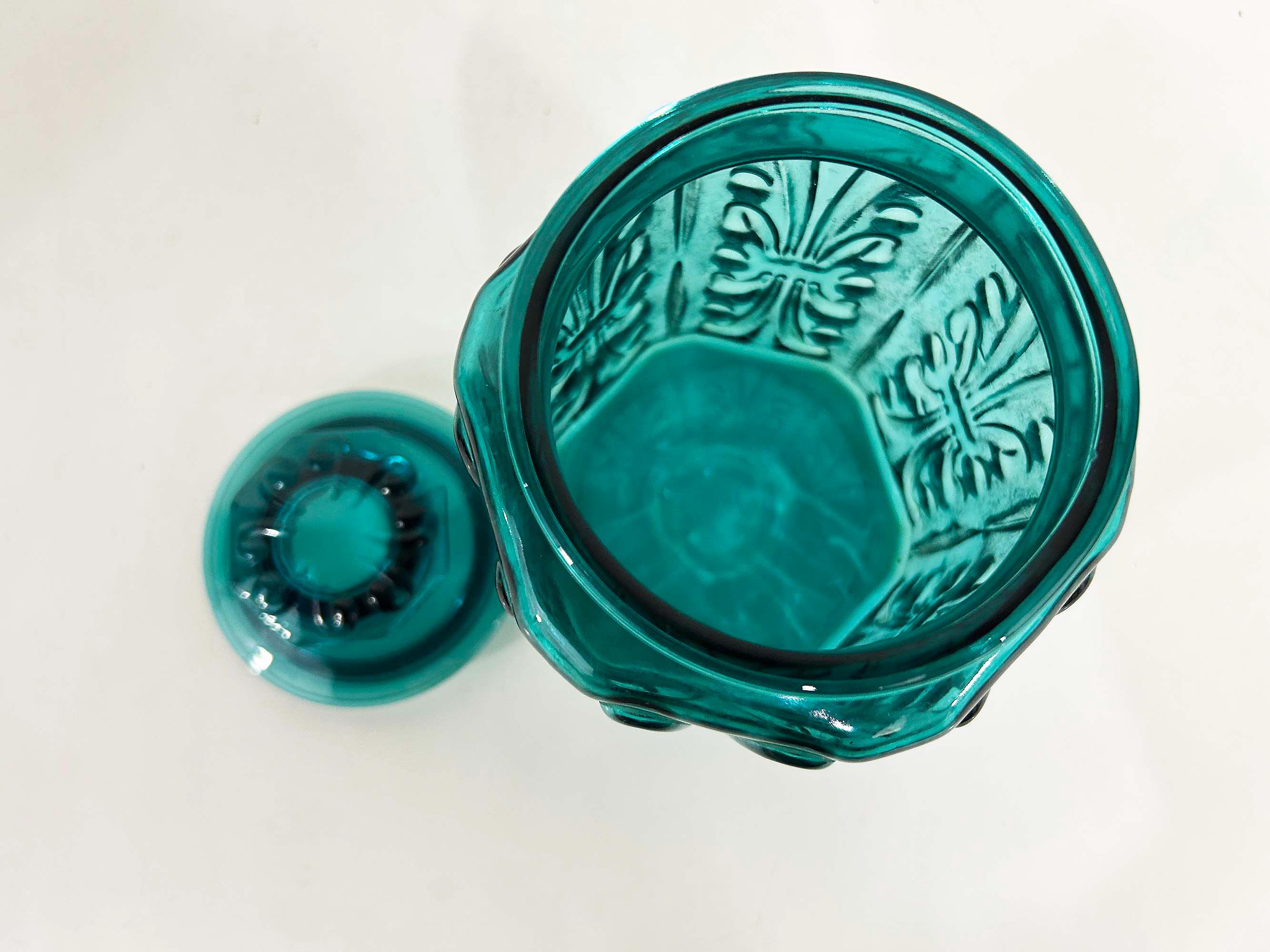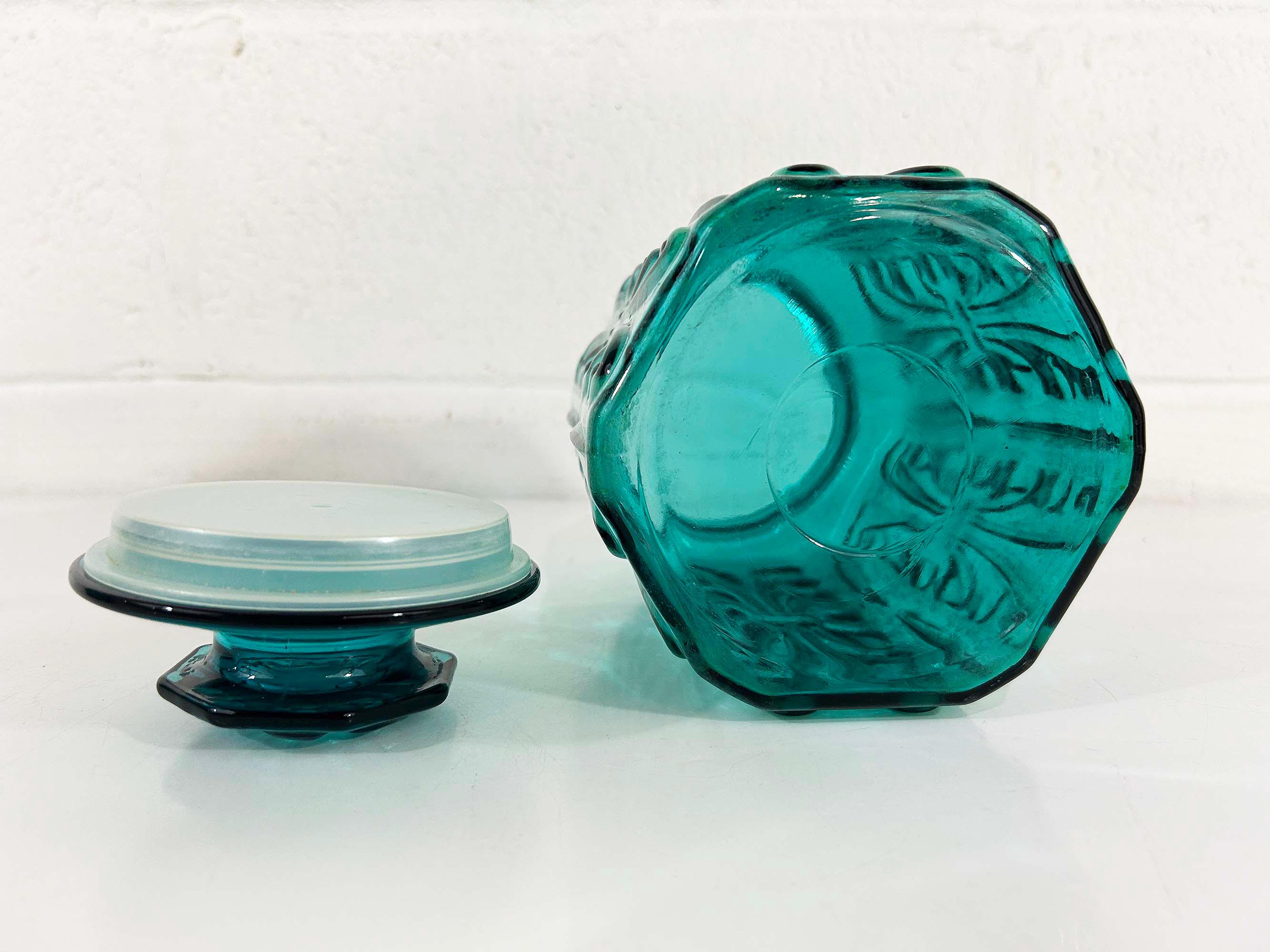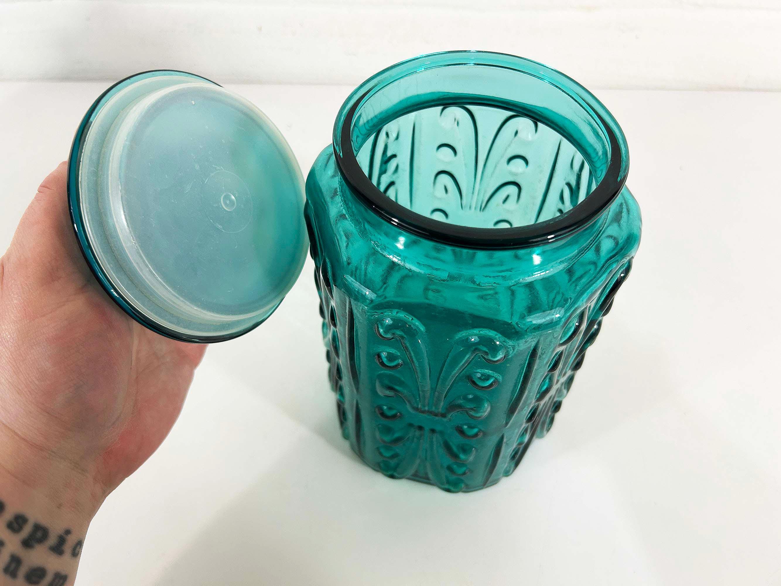 Super cute and useful kitchen glass canister! In good condition with no significant flaws. The inside of the lid has a plastic seal to keep items inside fresh. The canister is approximately 9 inches tall and 4 inches in diameter at the top.