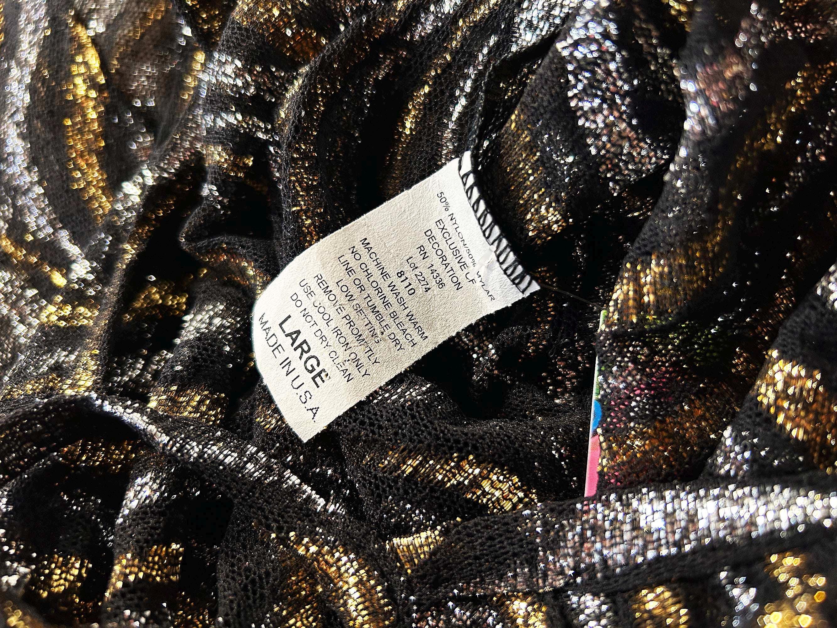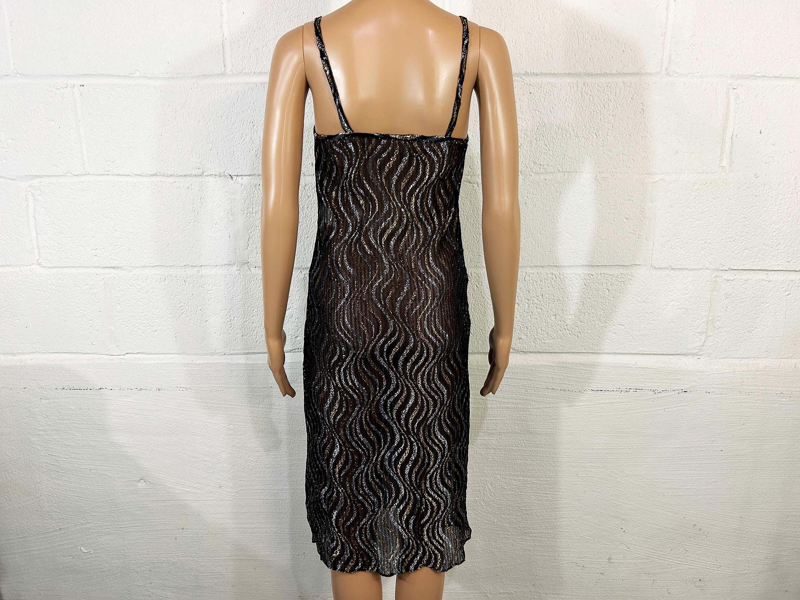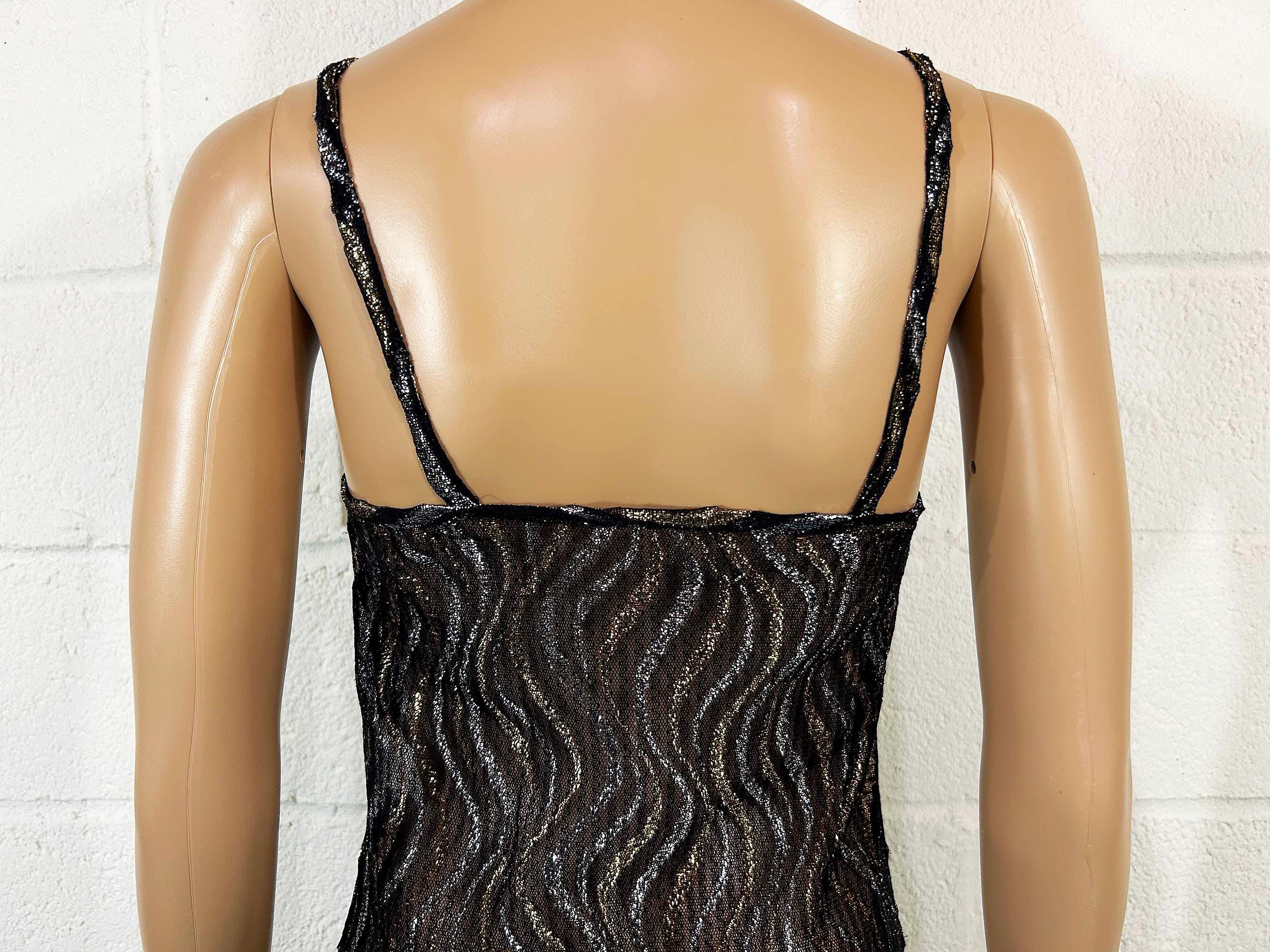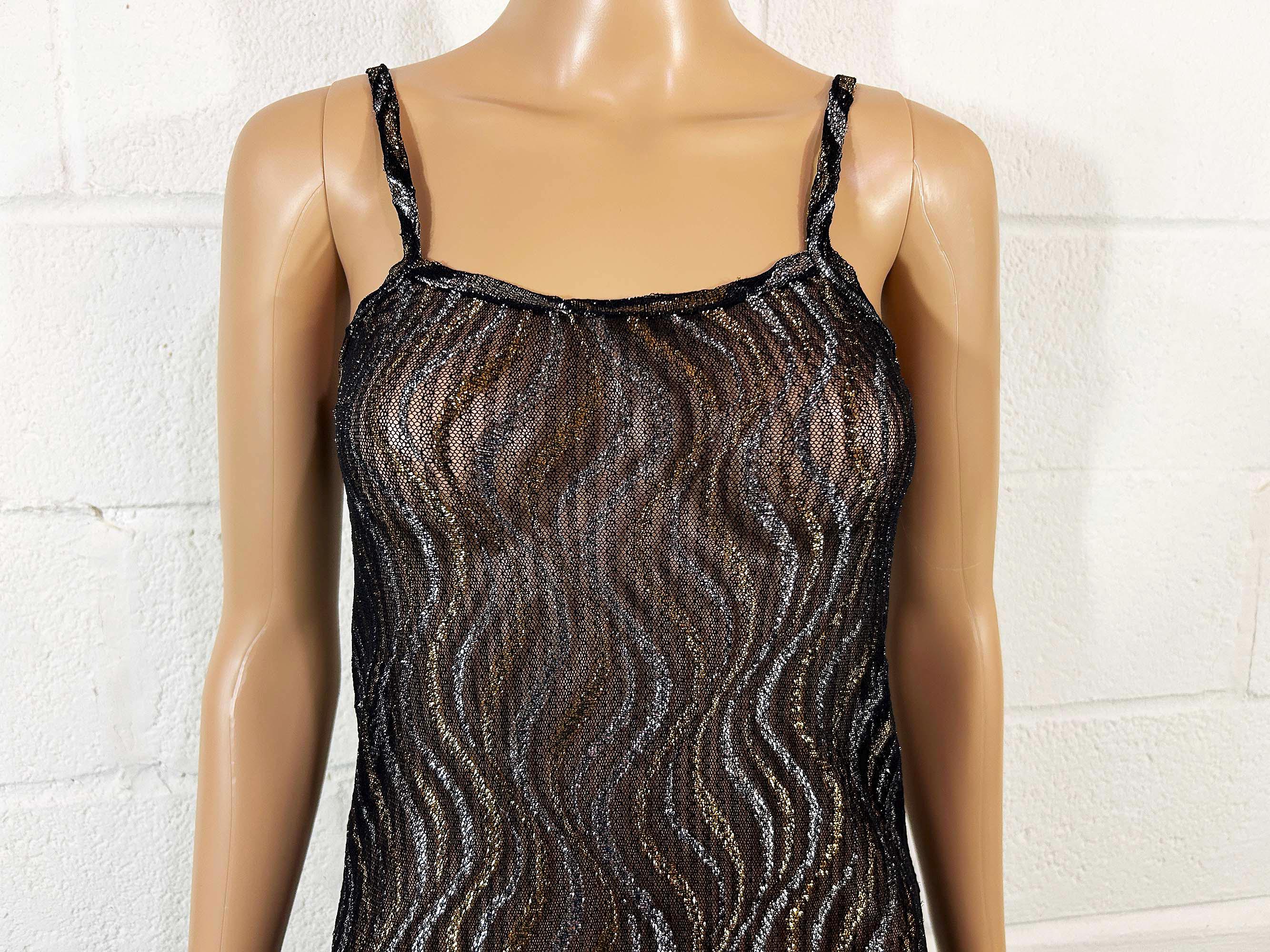 Vintage Sparkly Black Slip Dress Strappy Sleeveless Gold Silver Glitter Sheer New Year's Eve 1990s Small