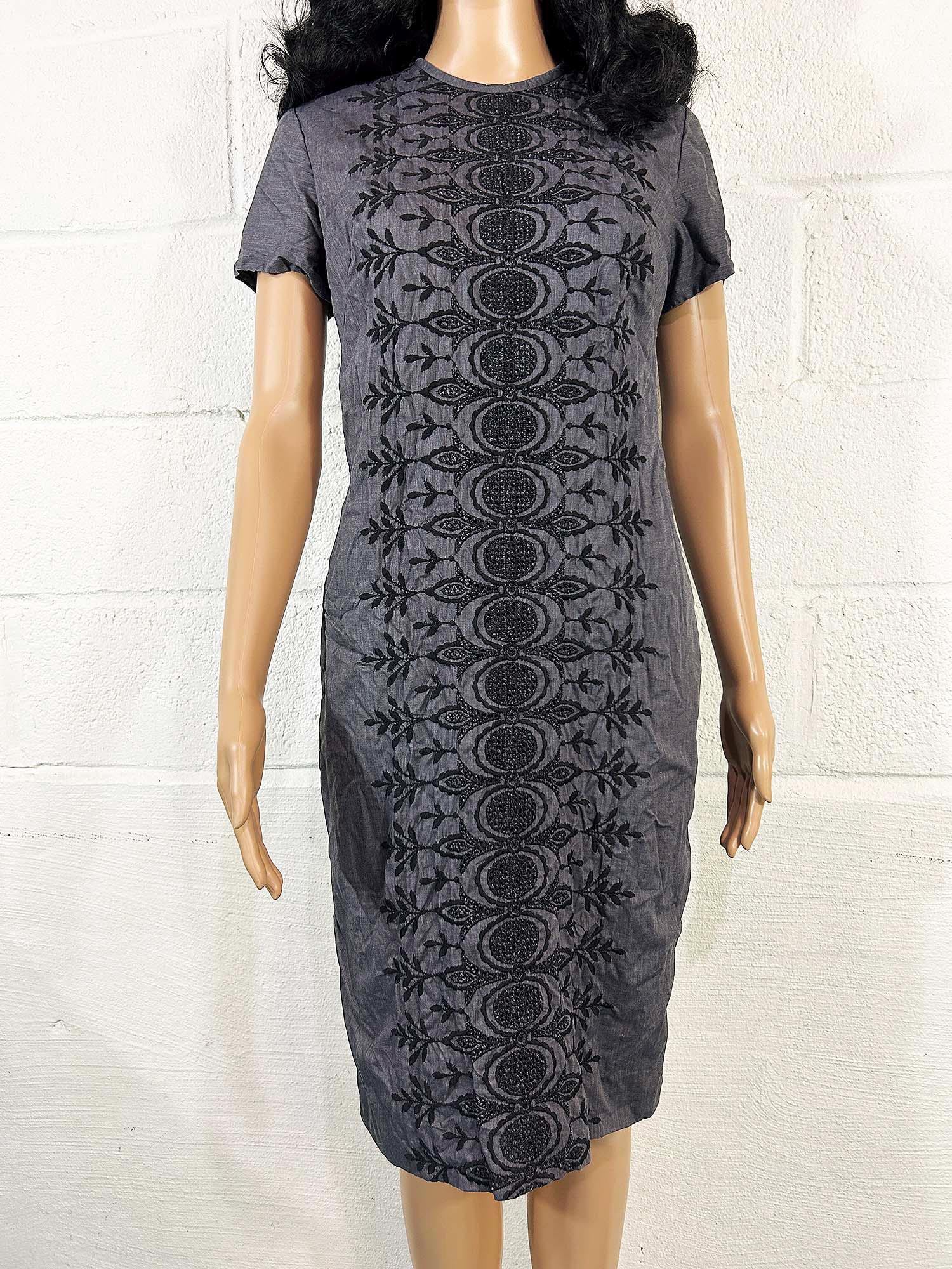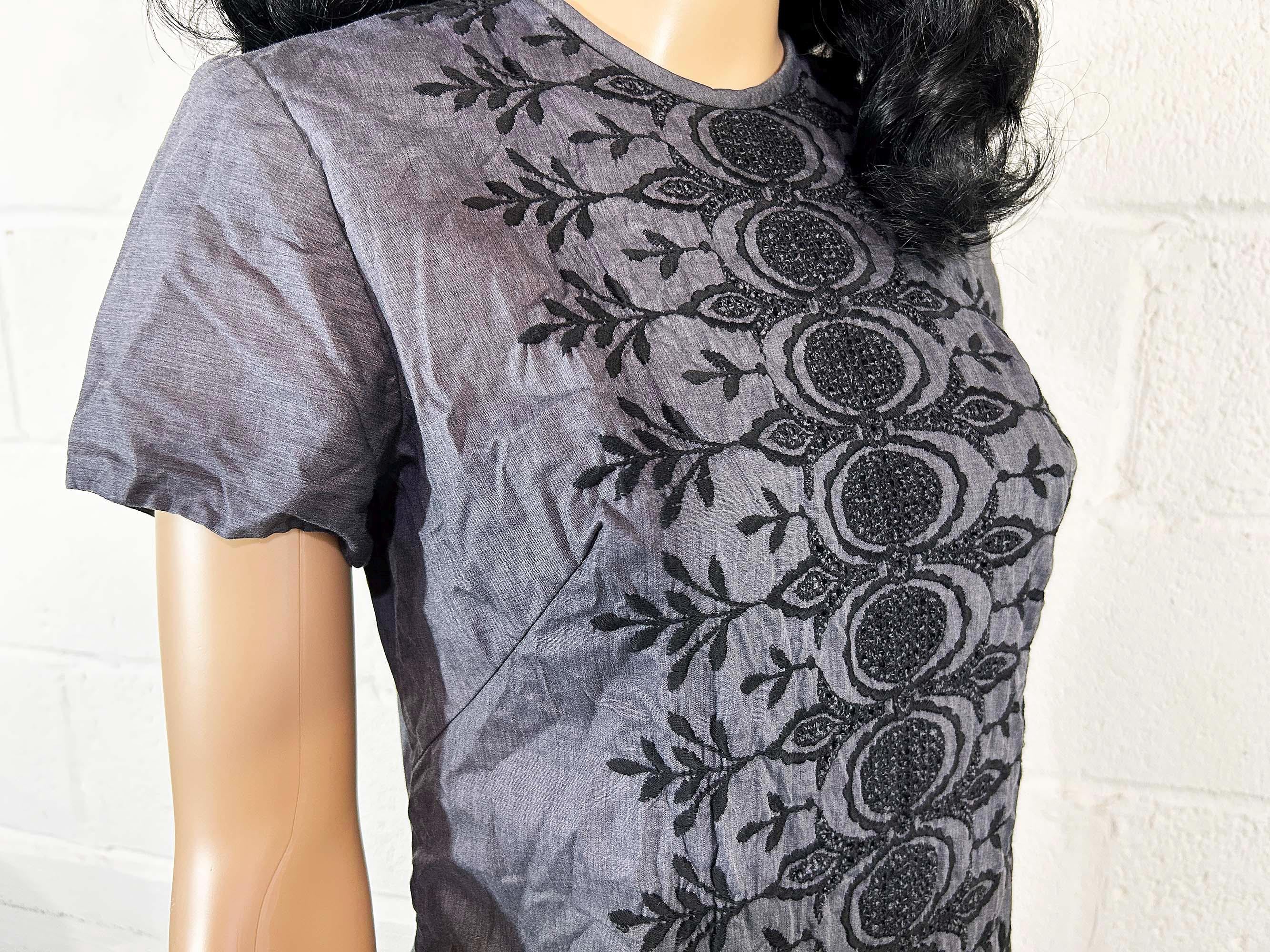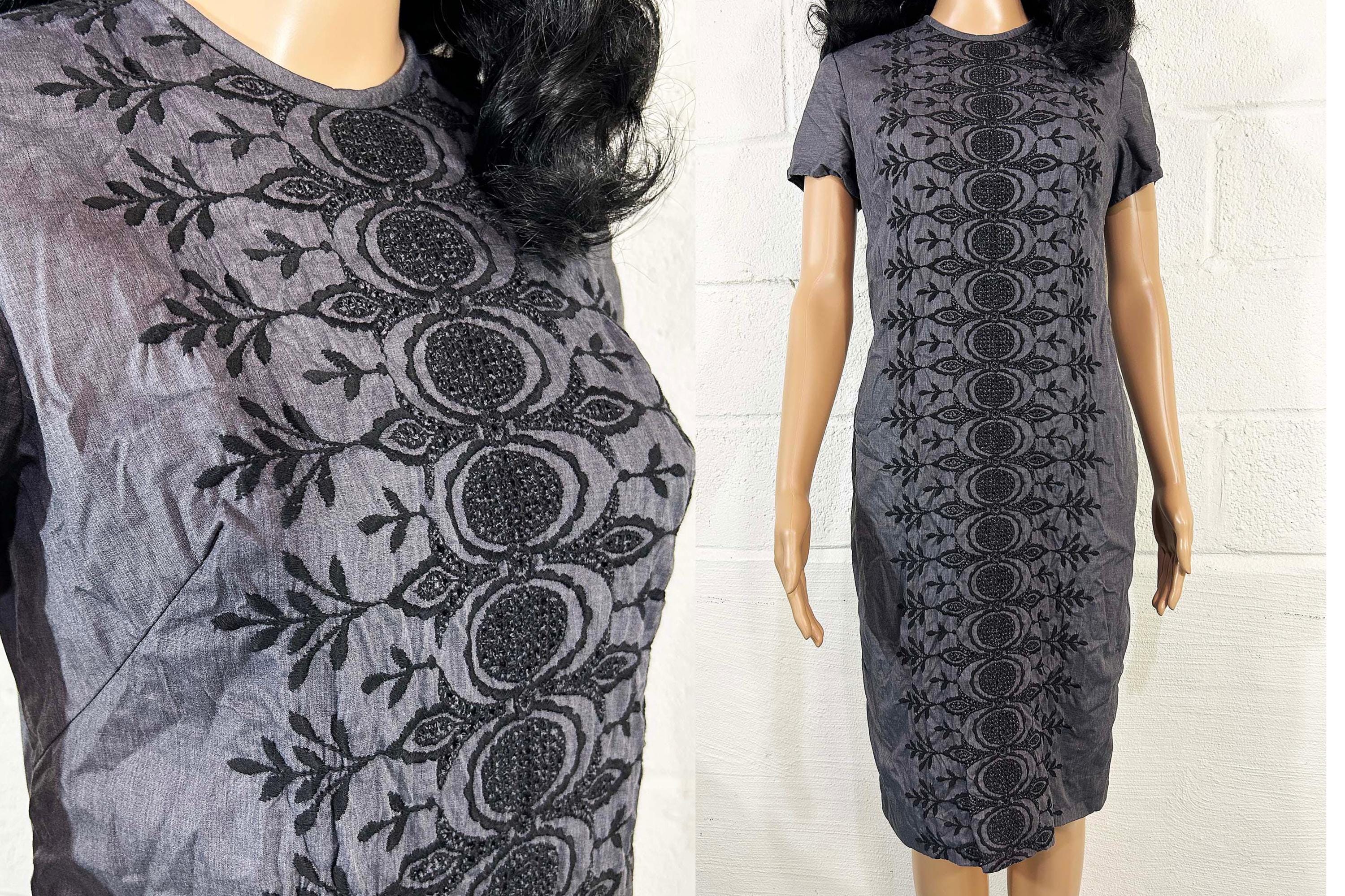 Amazing vintage short sleeve embroidered shift dress. In good shape with no significant flaws - please be sure to inspect all photos. Pullover style with a metal zipper in the back. Fabric has NO stretch.