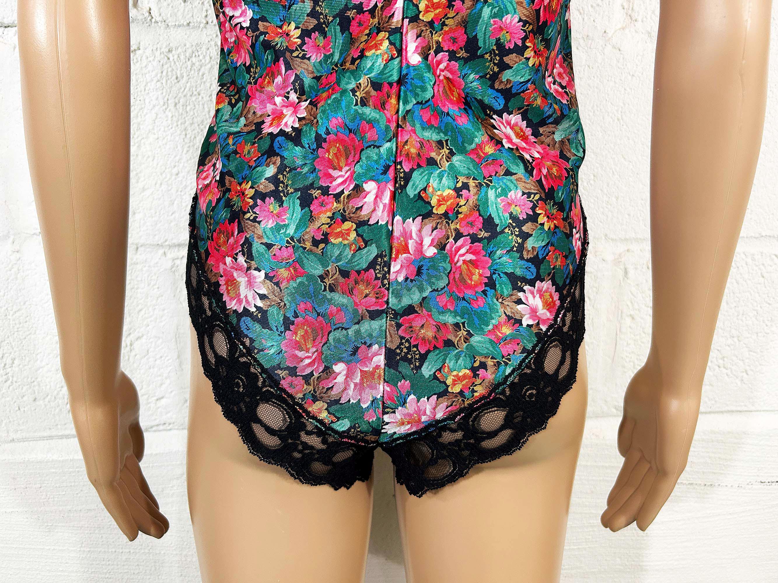 Adorable floral high cut one piece bodysuit with adjustable straps. Snap closure at the crotch. Fabric has slight stretch.