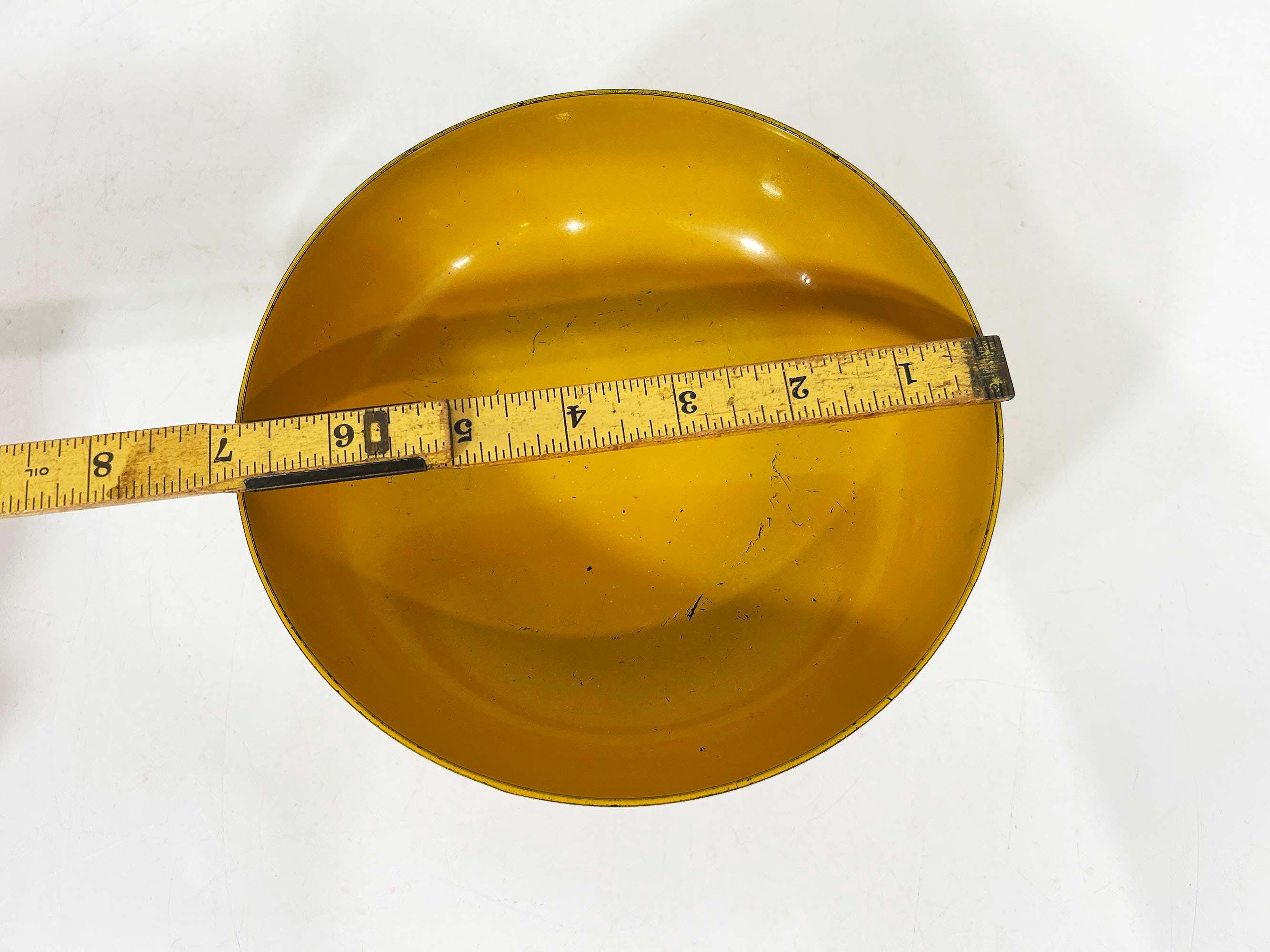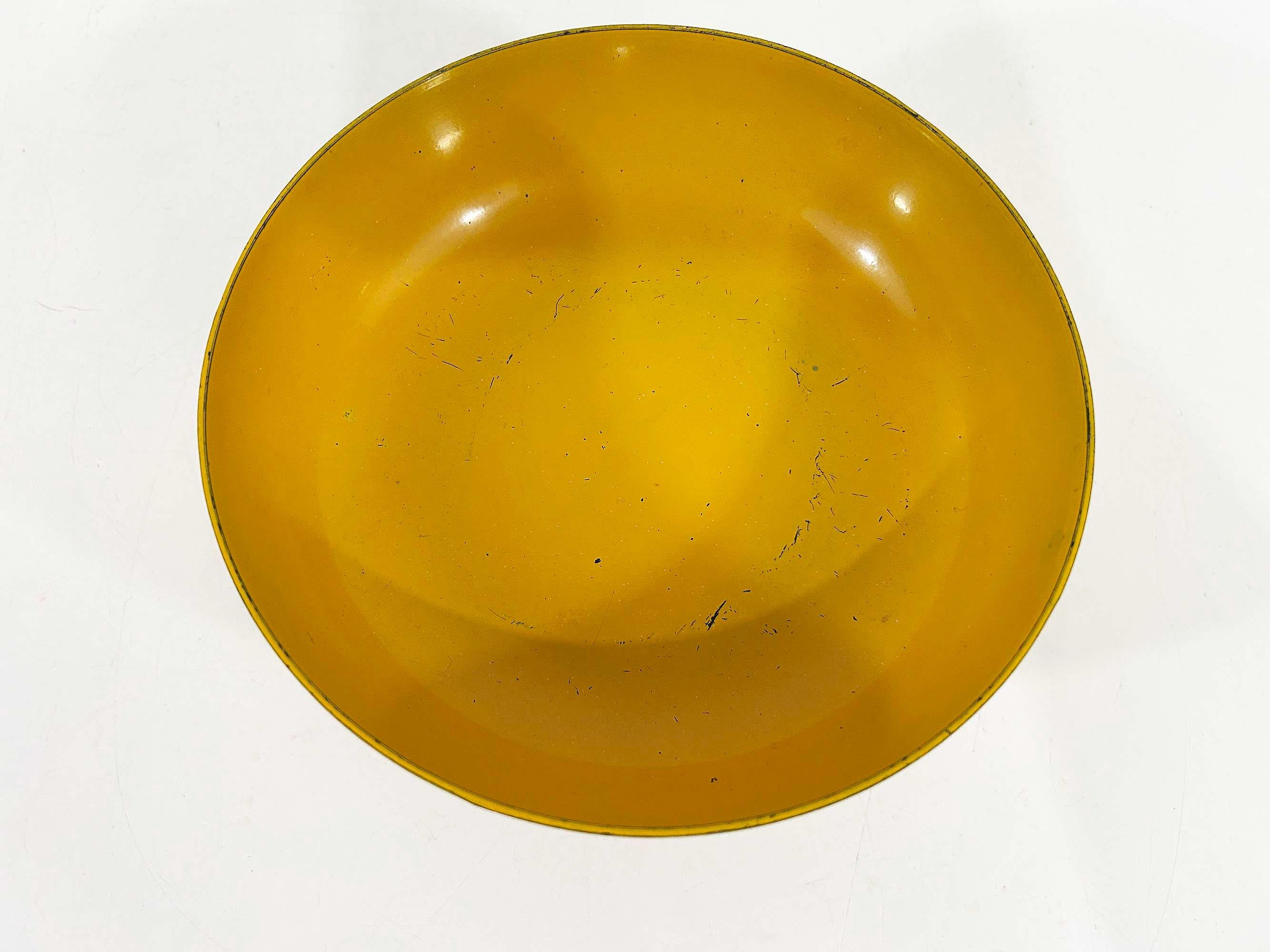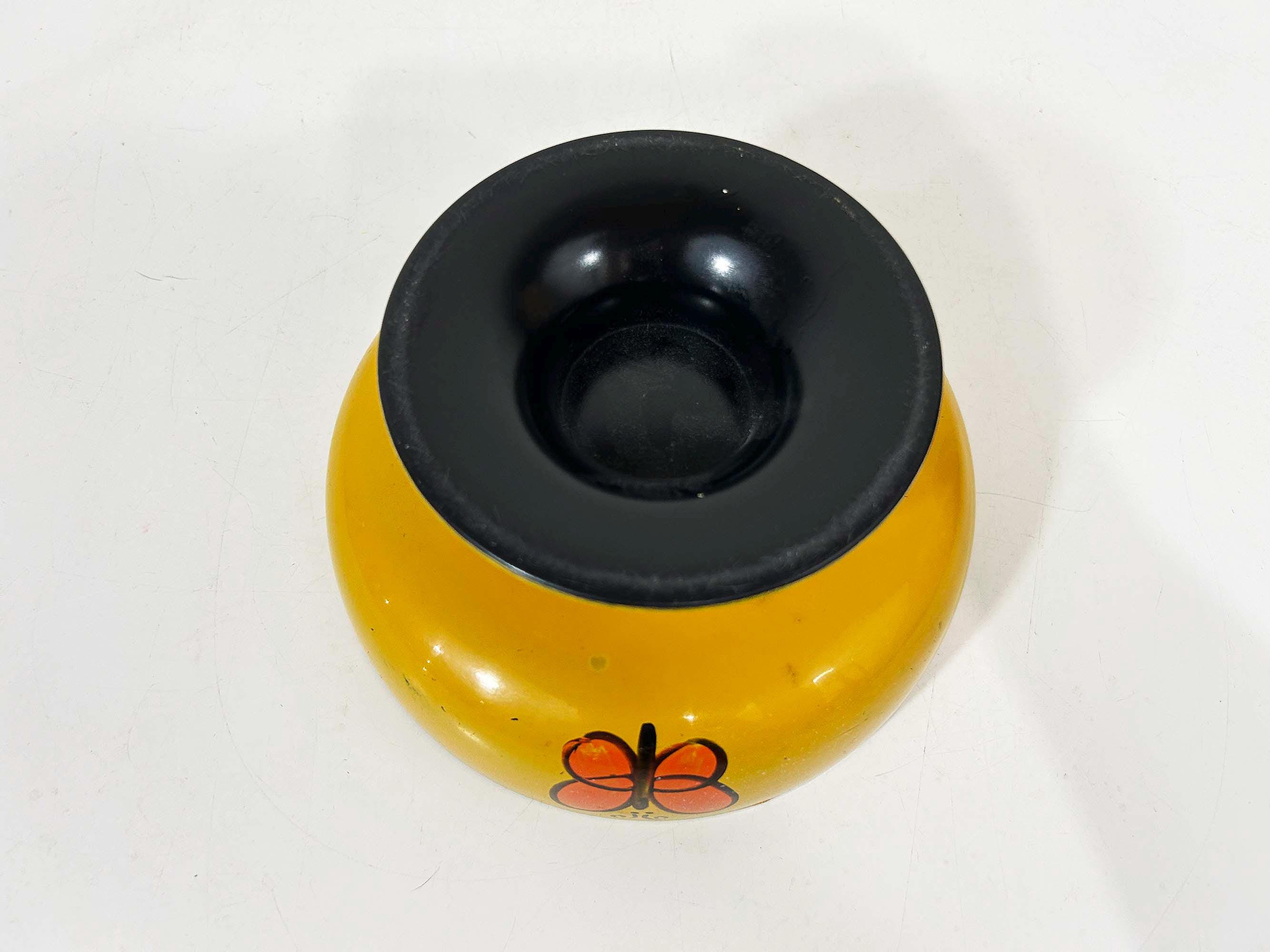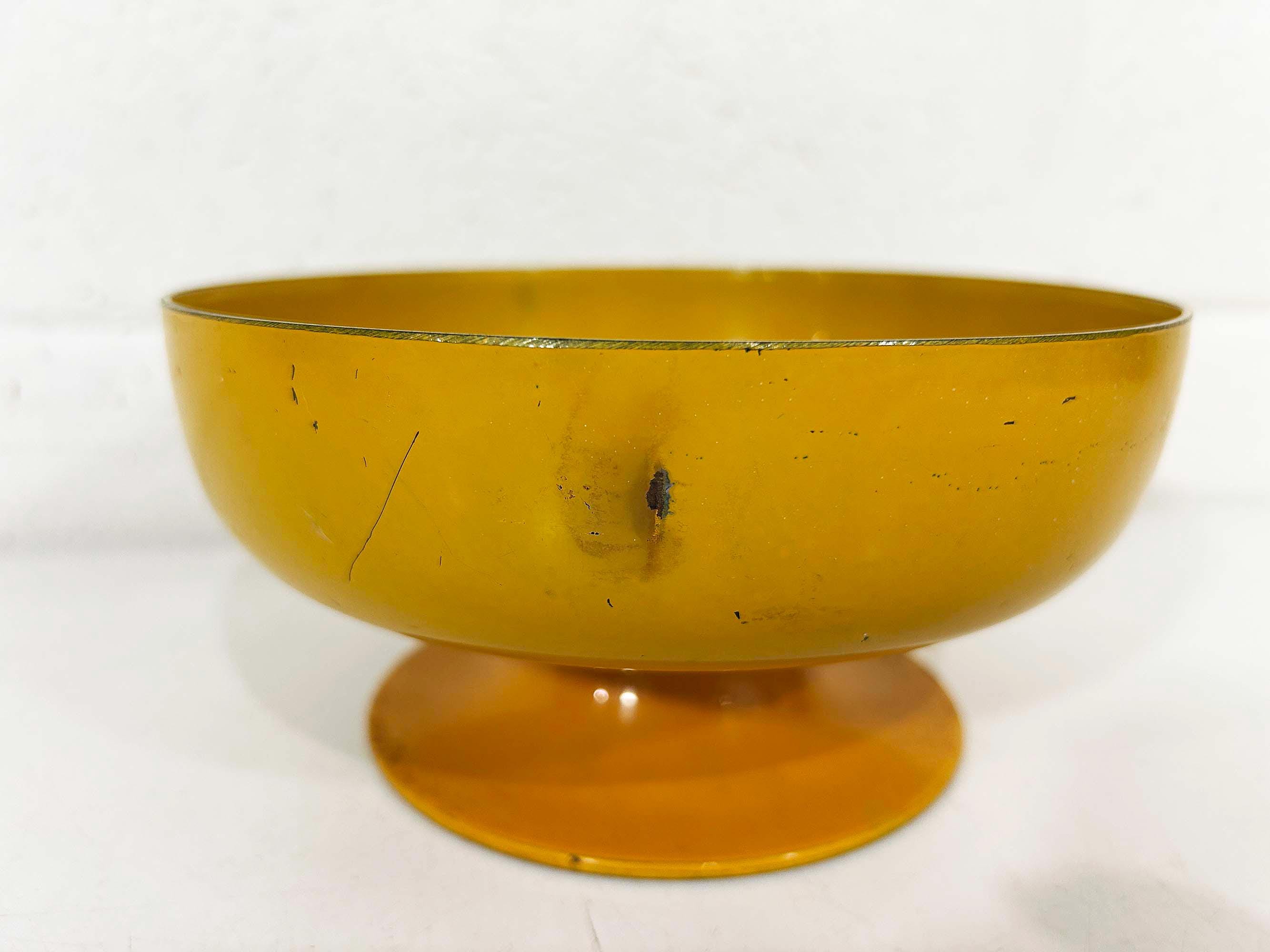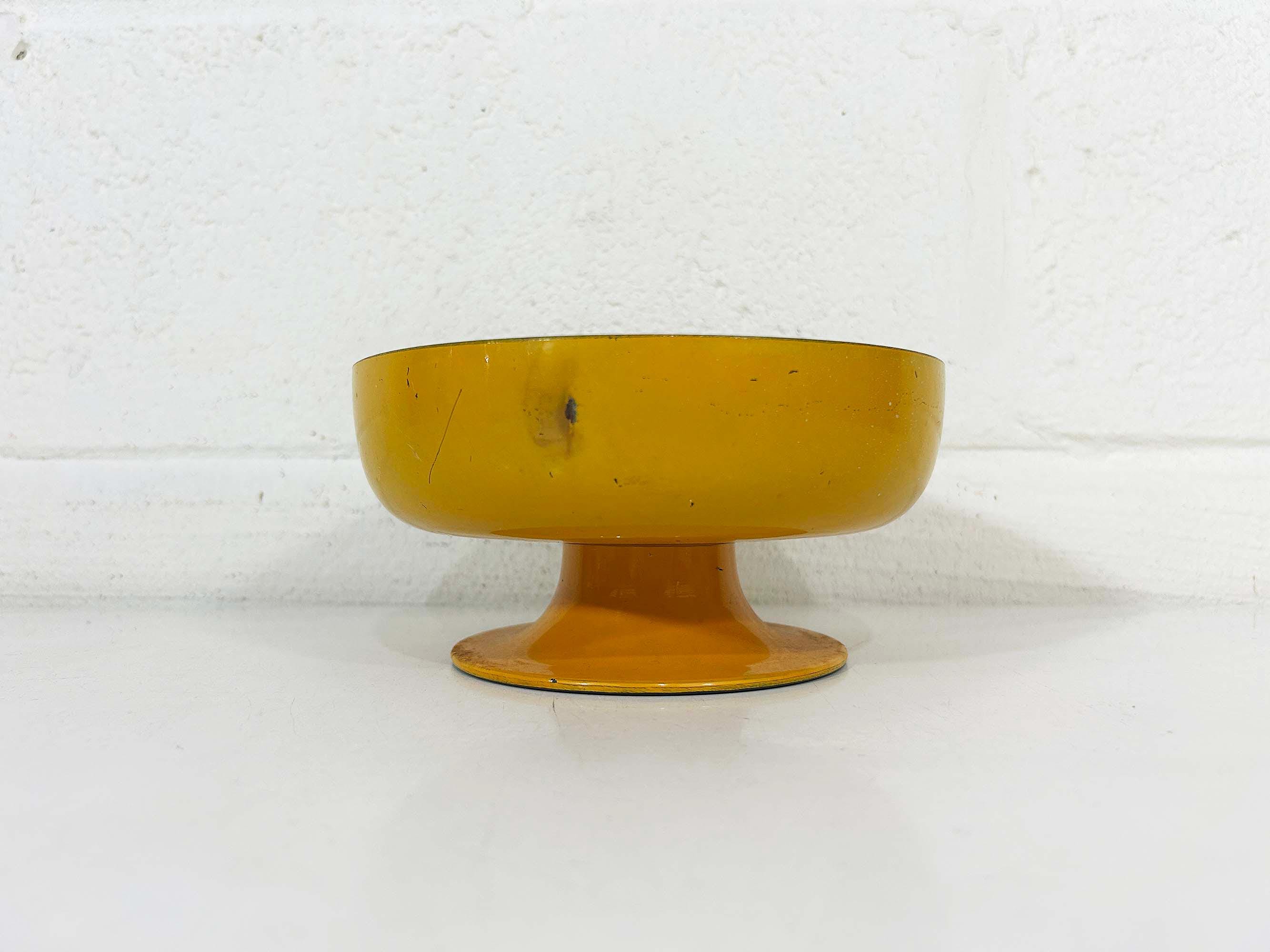 Super cute plastic yellow and orange butterfly pedestal bowl. A perfect addition to your retro home. It is in good vintage condition with a couple of light scratches and scuffs- please be sure to inspect all photos. The bowl is 6 3/4 inches in diameter and 3 1/2 inches tall.