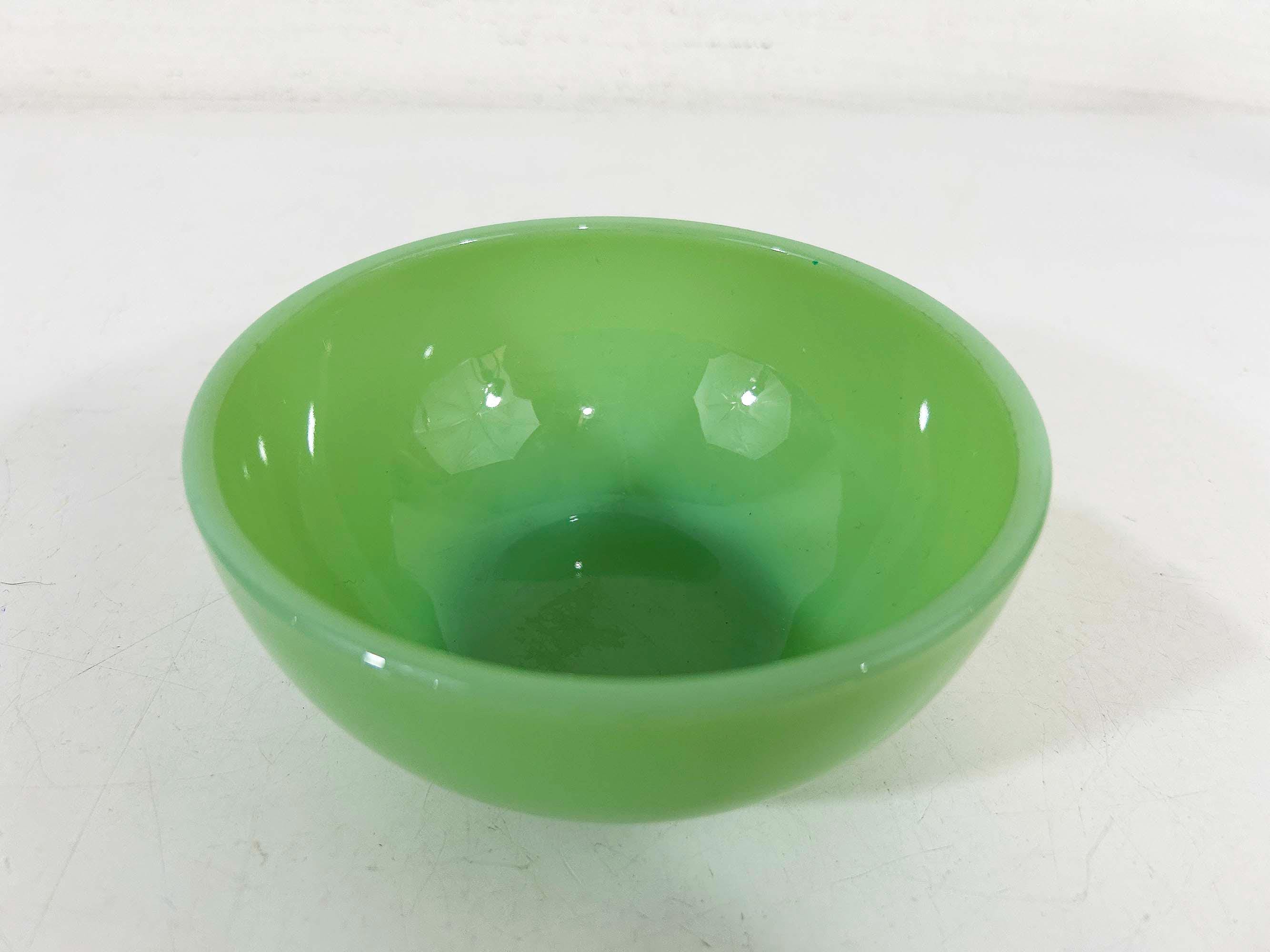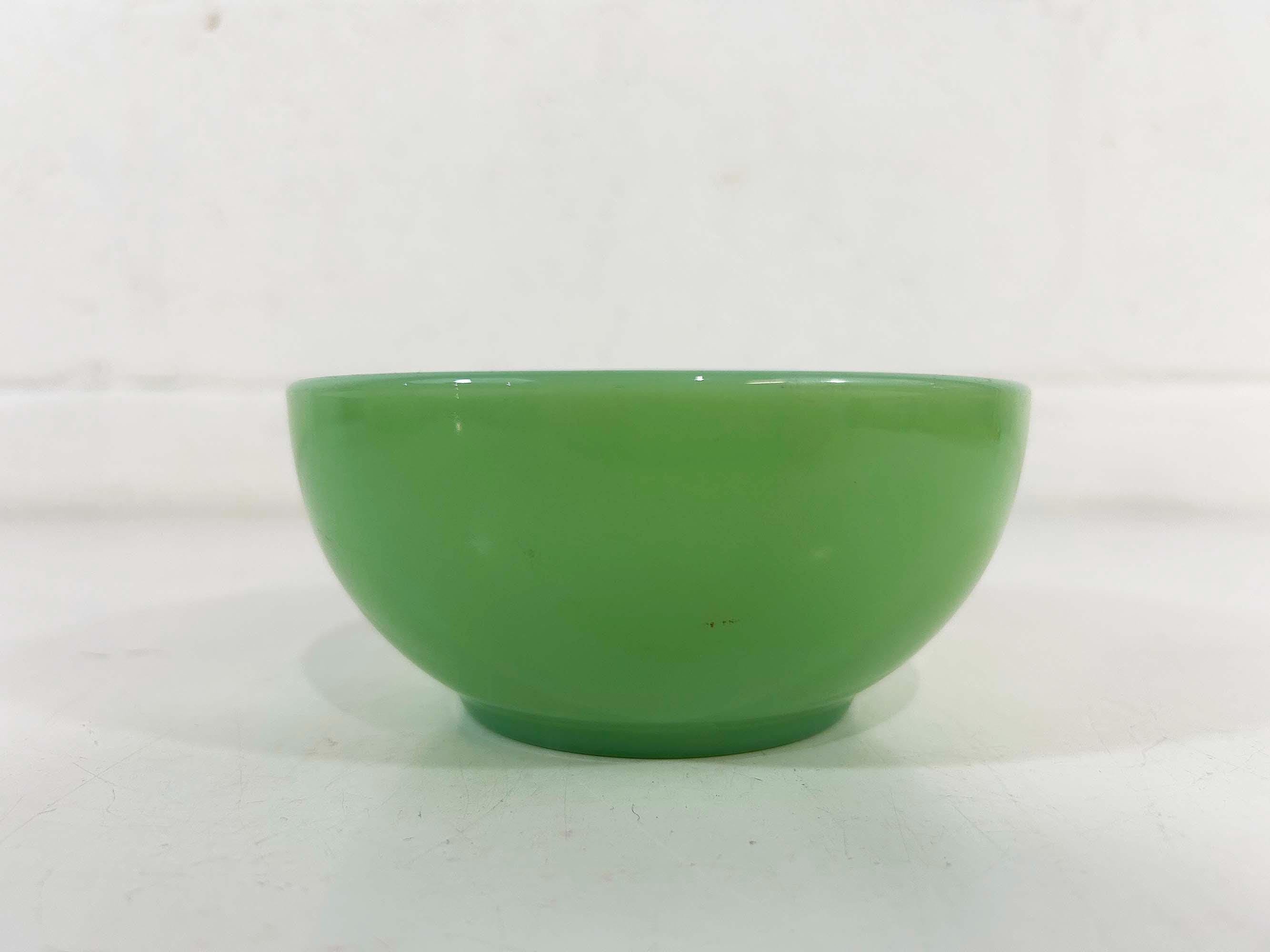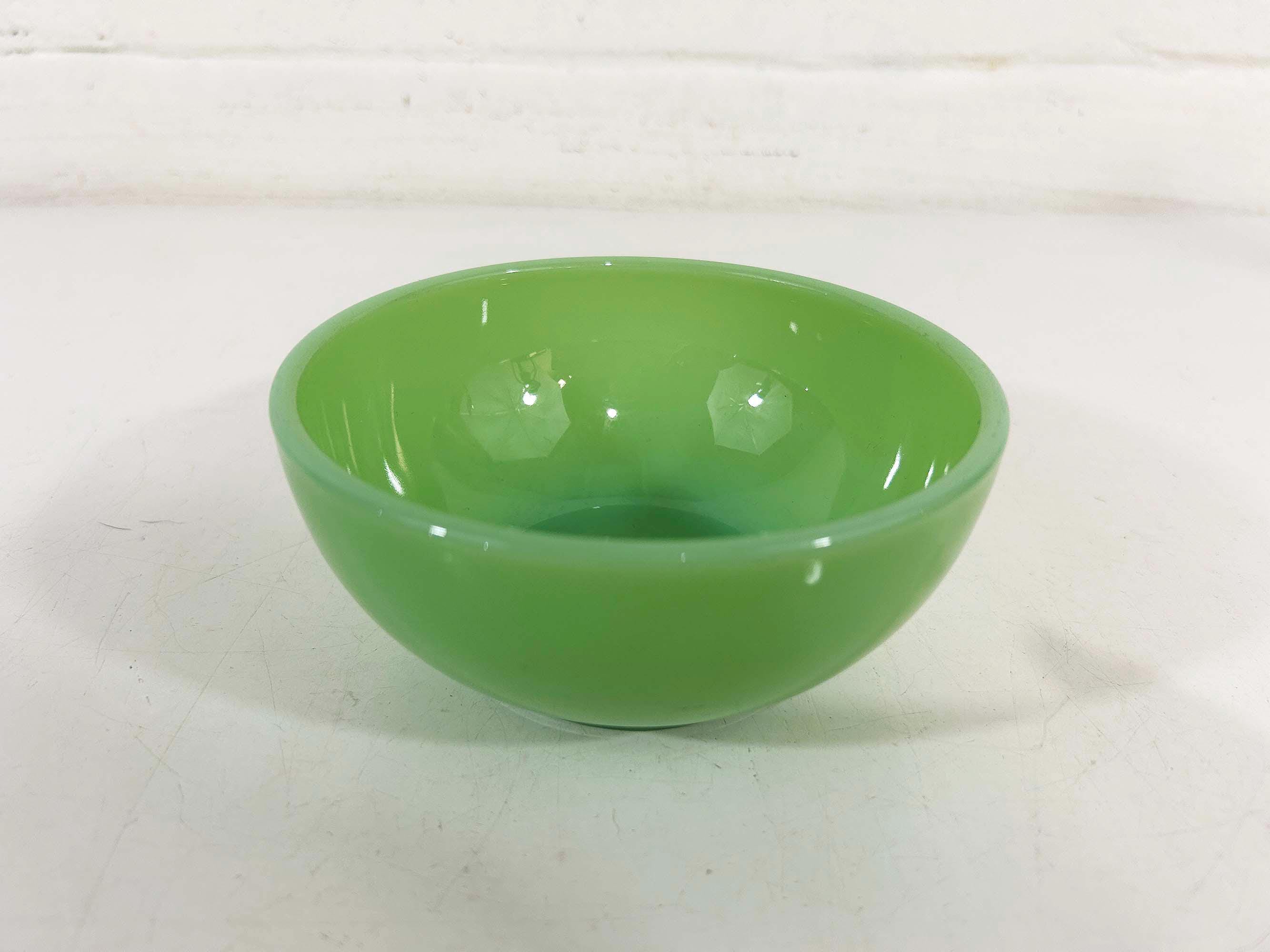 Pretty jadeite Fire King small berry bowl. It is in excellent shape with no significant flaws. It is approximately 2 1/4 inches tall and 4 3/4 inches in diameter across the top.