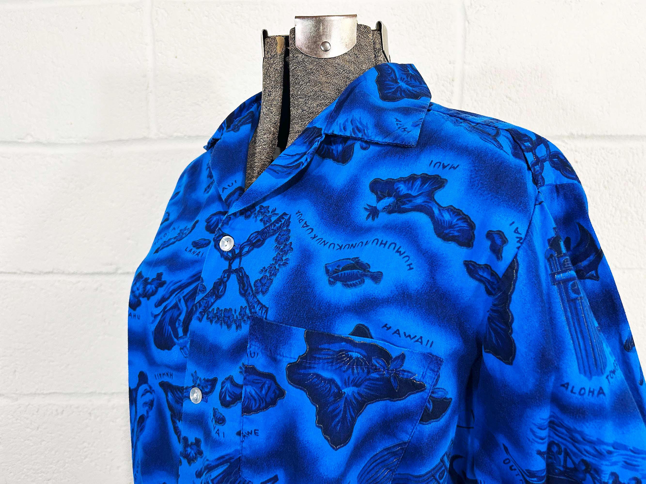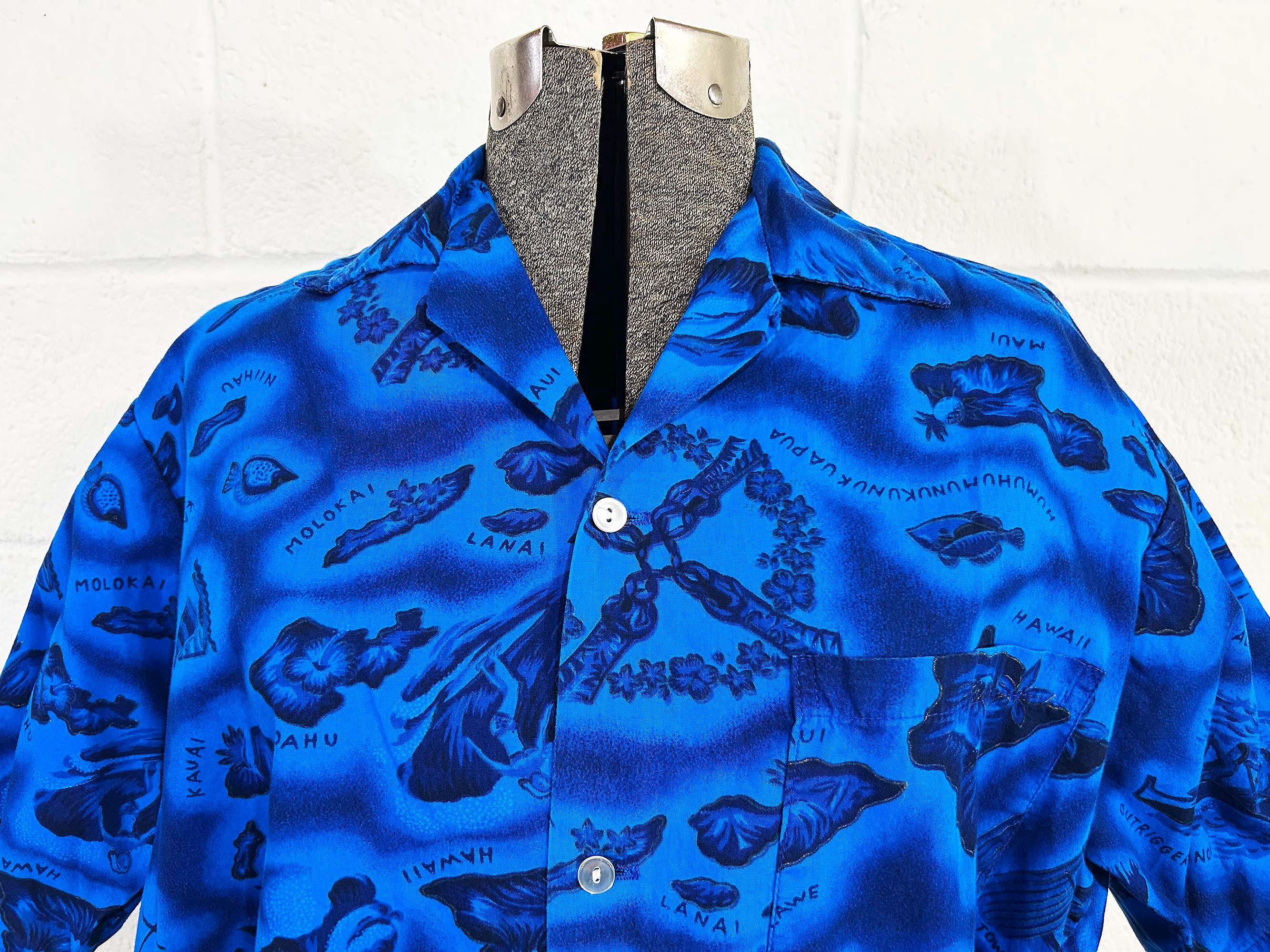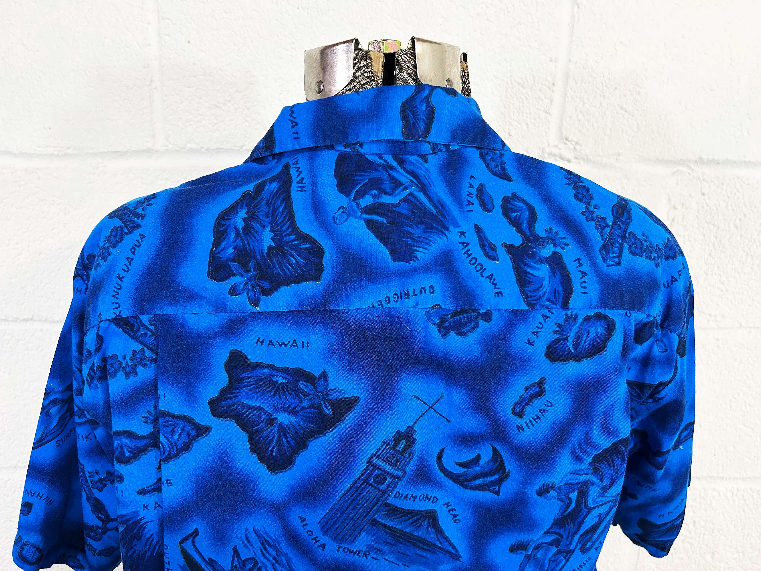 True vintage collared short sleeved Hawaiian shirt. Shirt is in excellent vintage condition with no significant wear. One front patch pocket. Fabric has NO stretch.