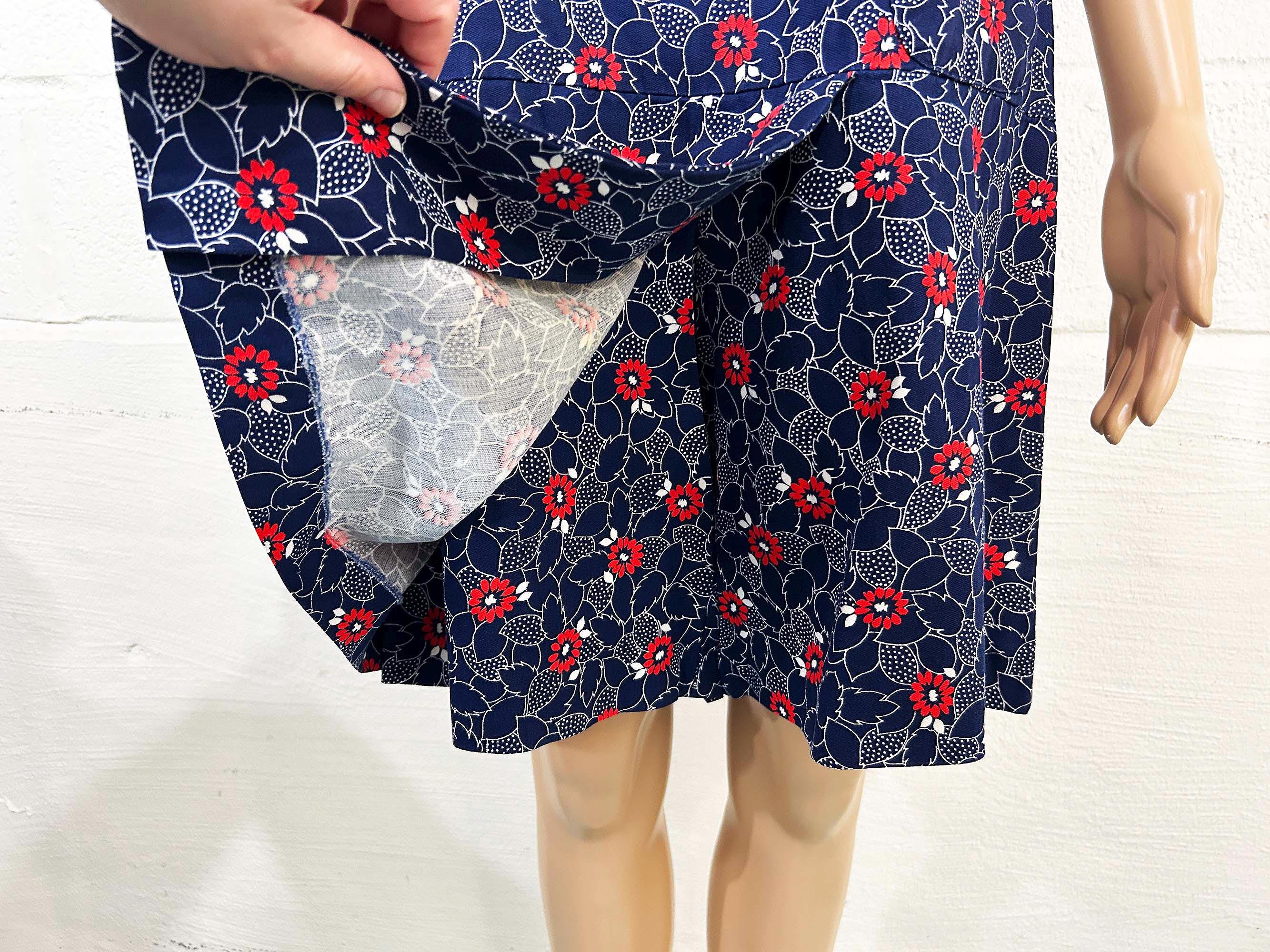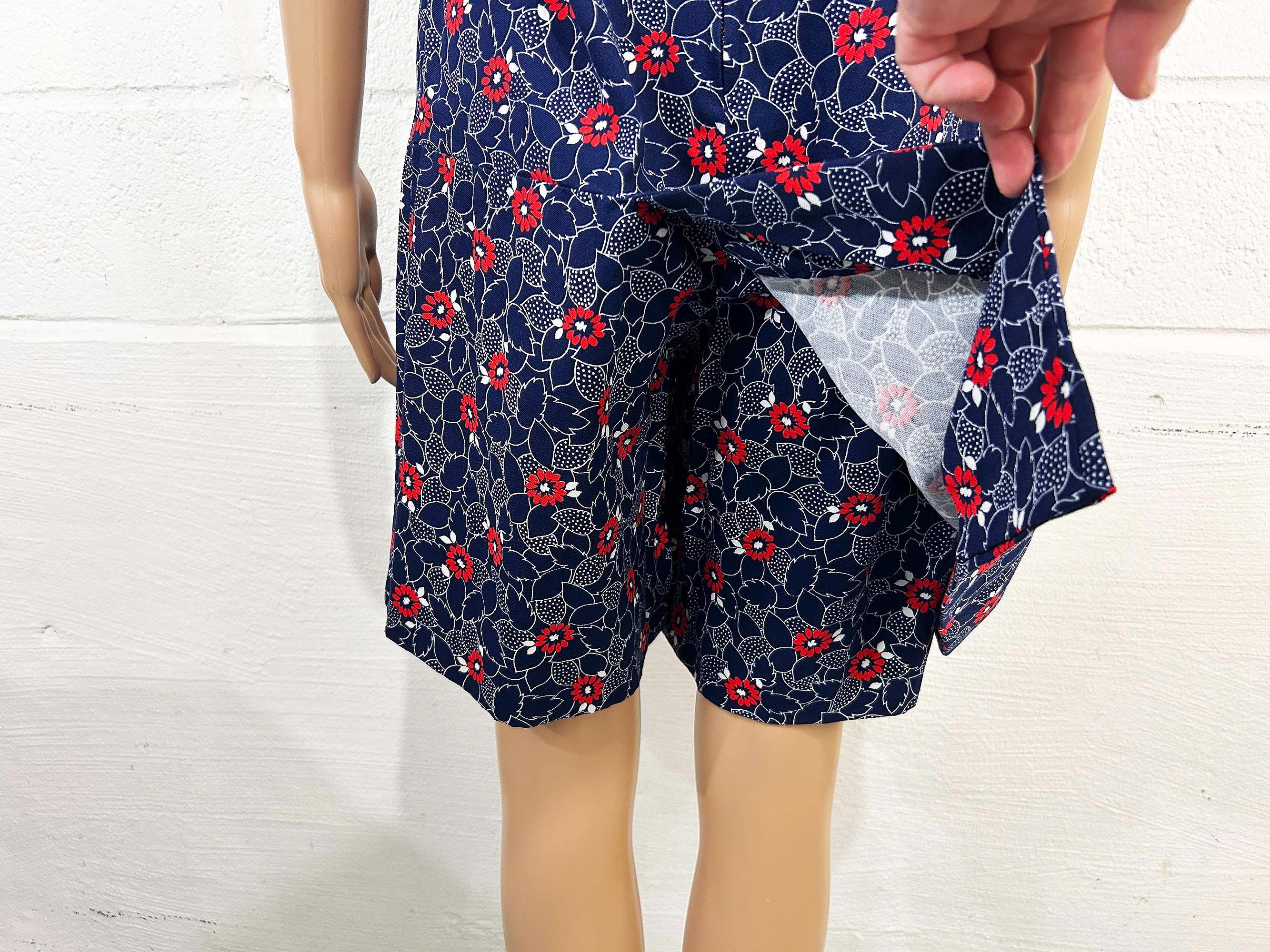 Adorable sleeveless romper with a cute skort. Metal zipper in the back with one large patch pocket at the hip. In good vintage condition - there is some fading in the fabric. Fabric has no stretch.