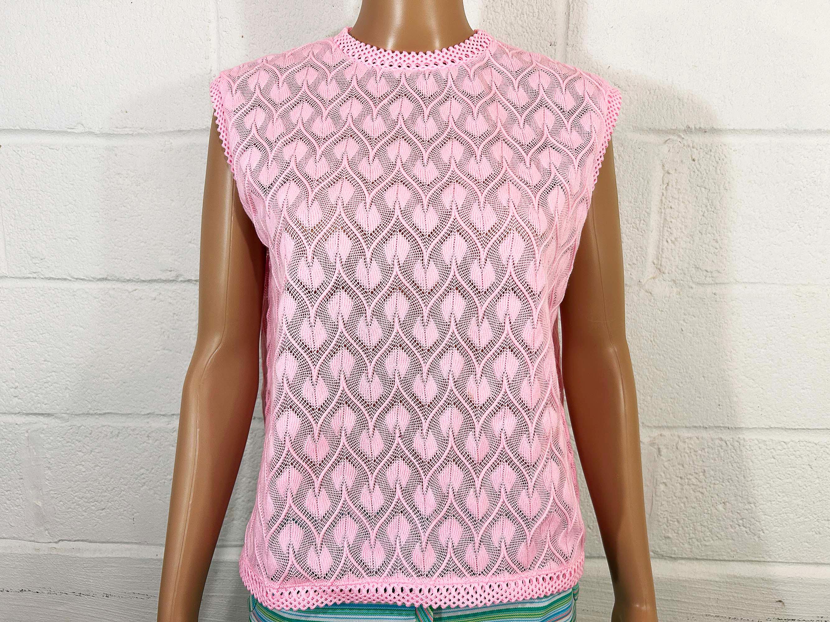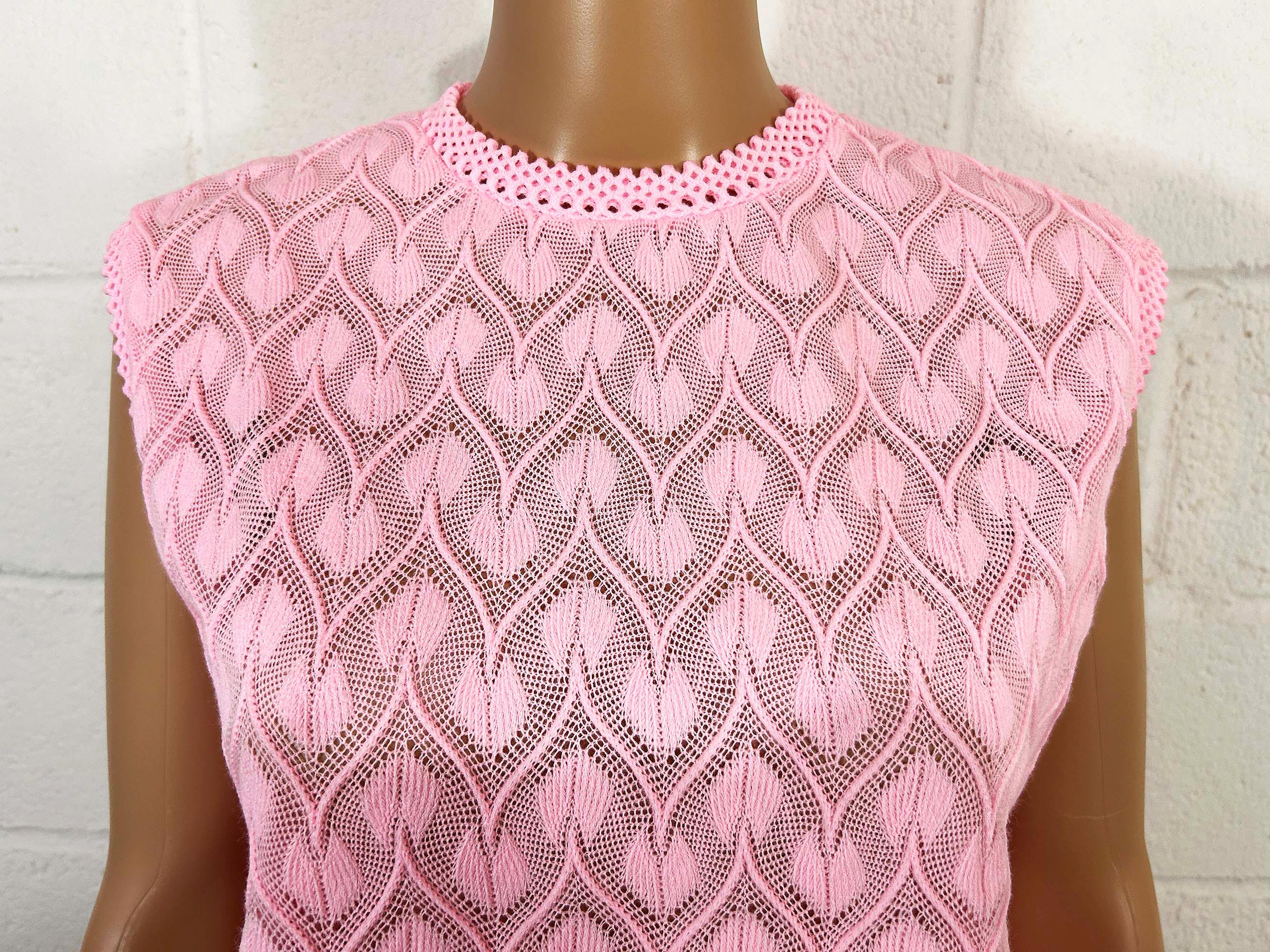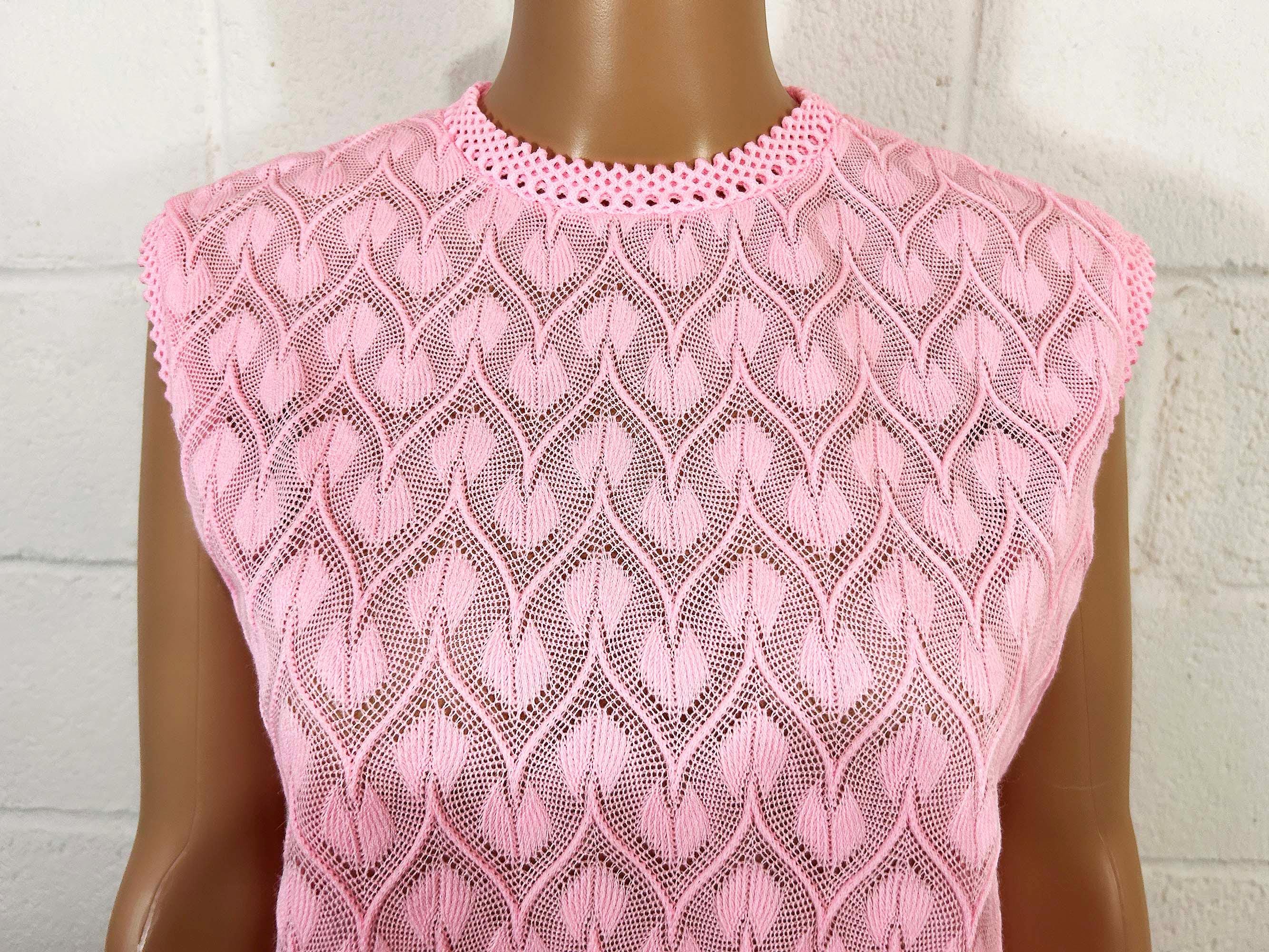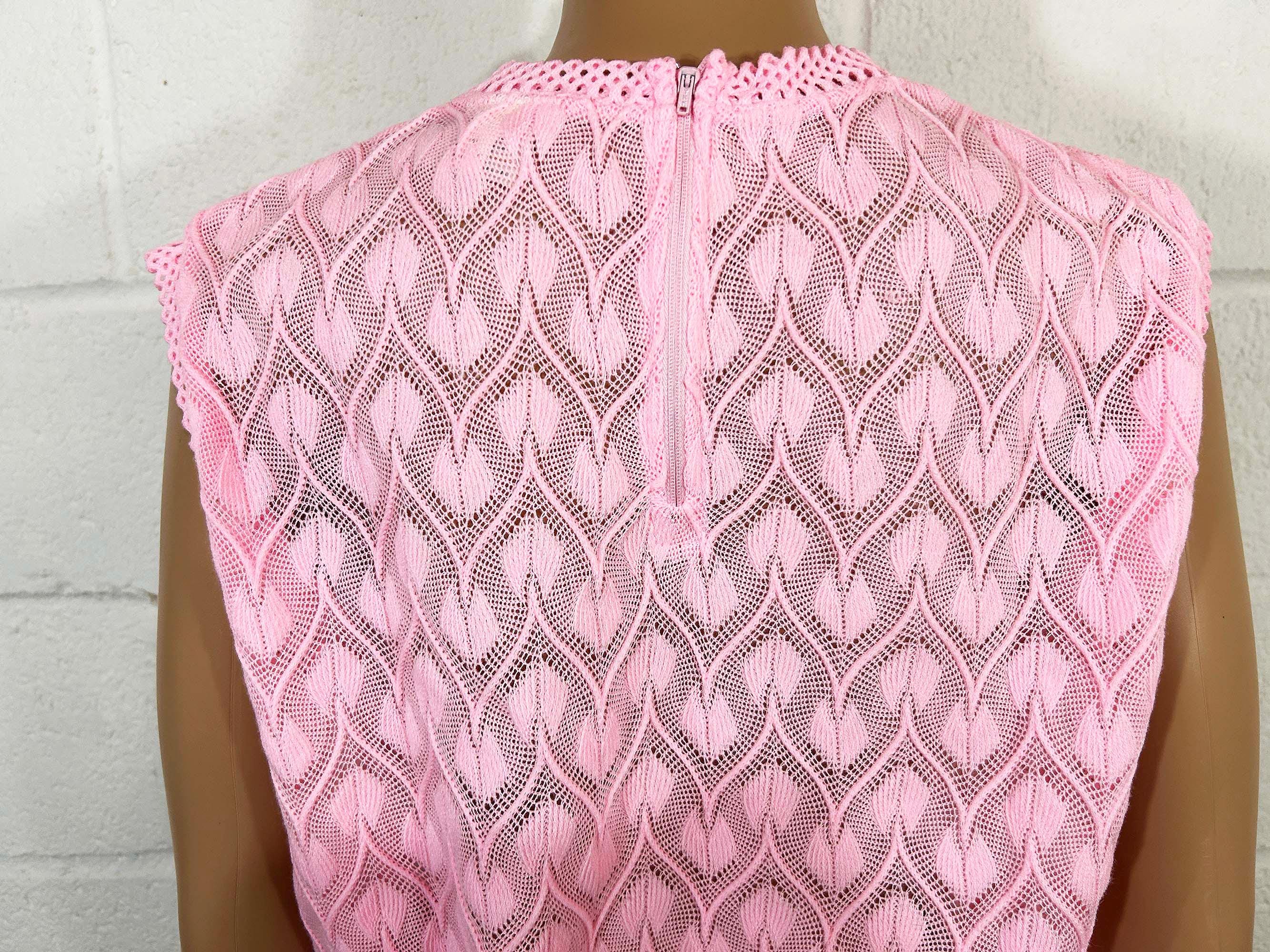 Super cute pink sleeveless open knit tank. Zipper at the back neckline. In excellent condition with no significant wear. Fabric has slight stretch.