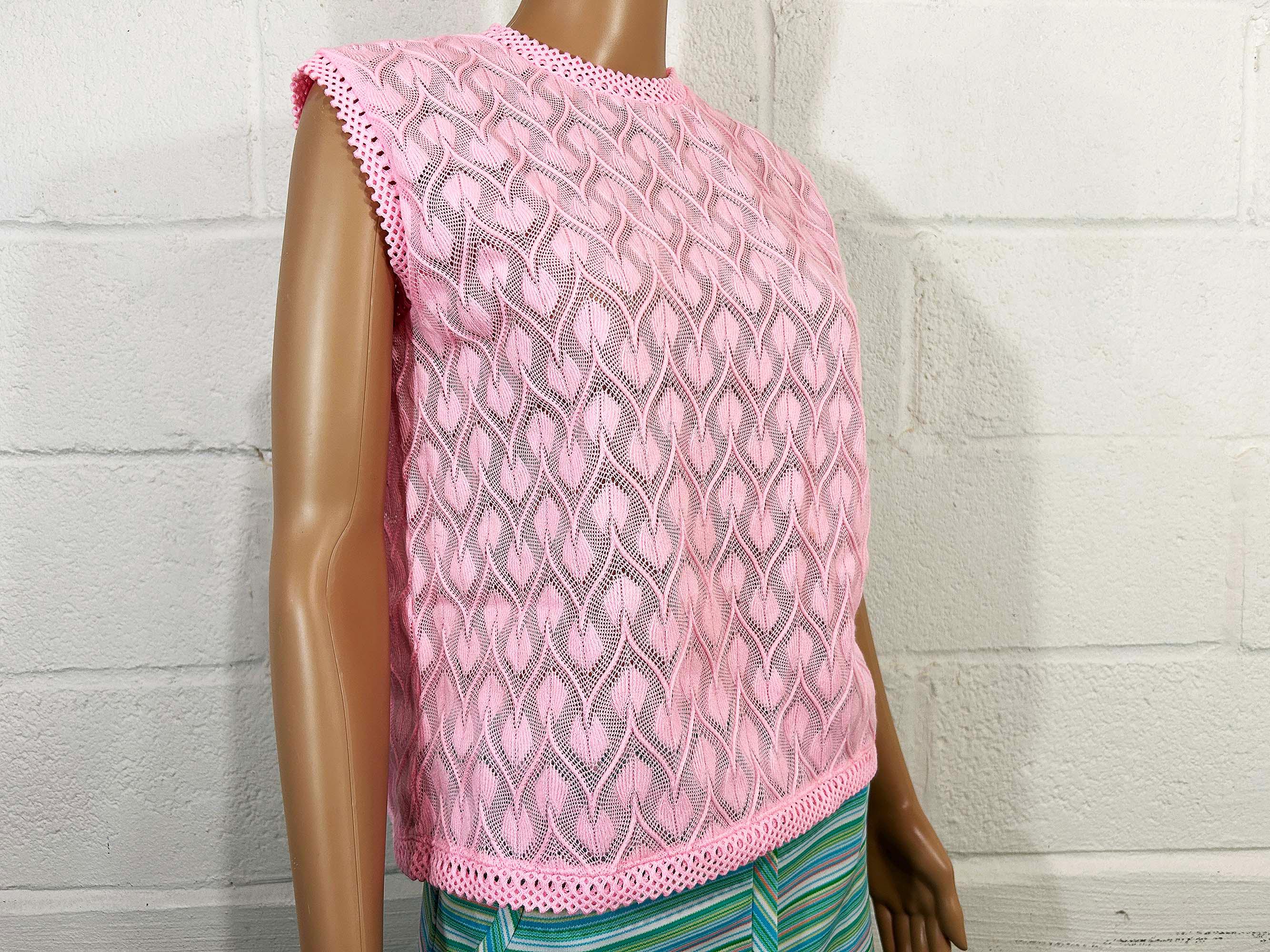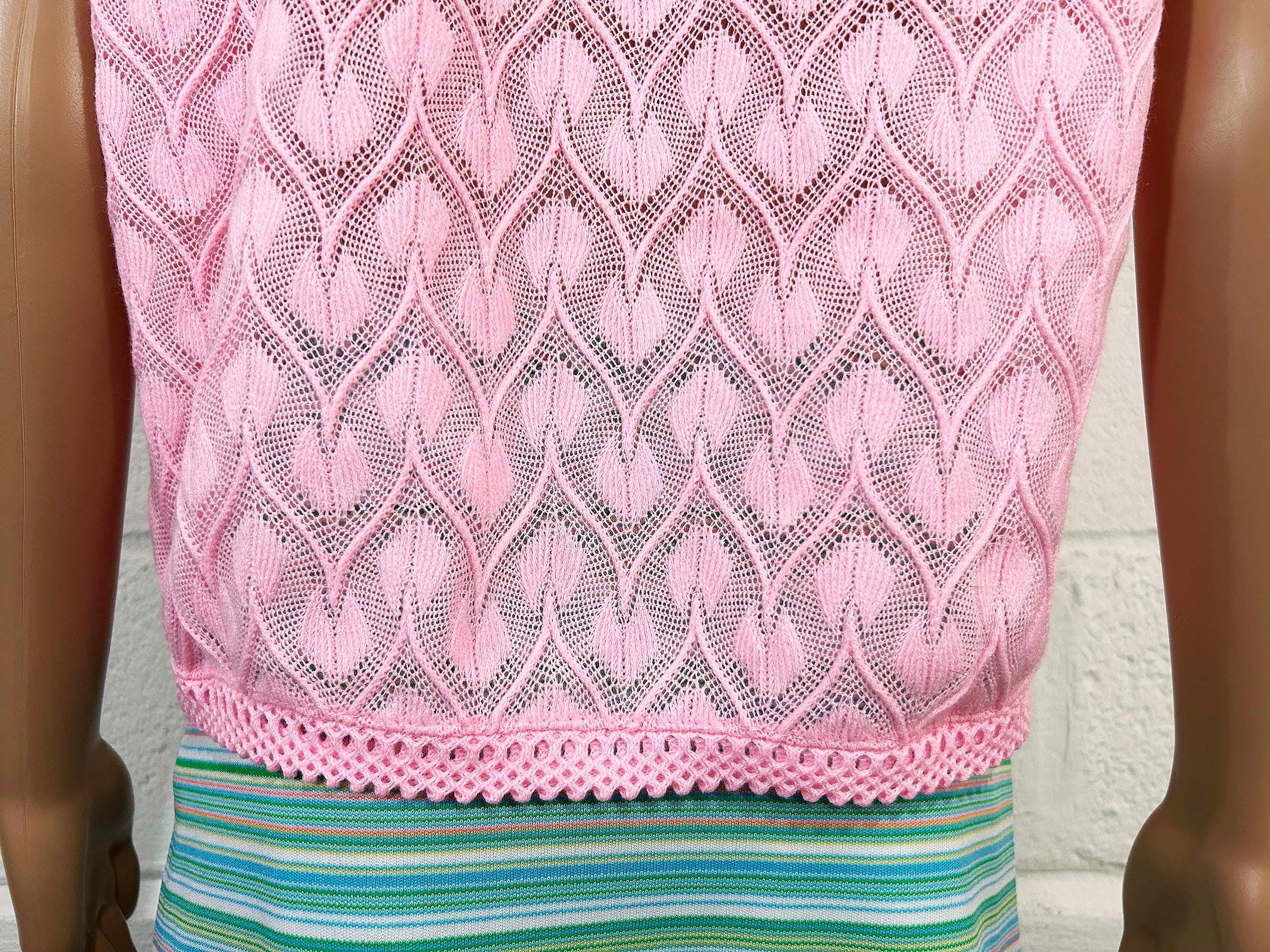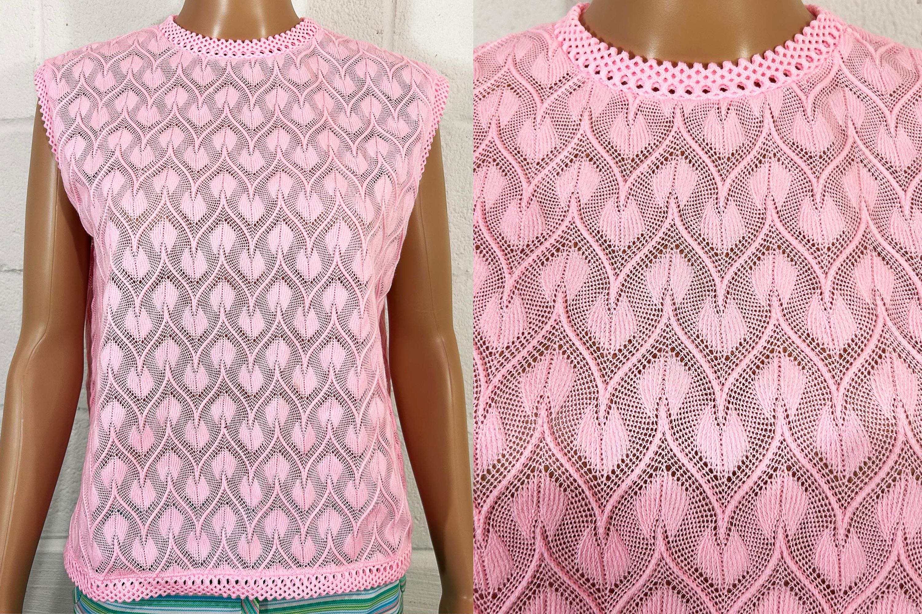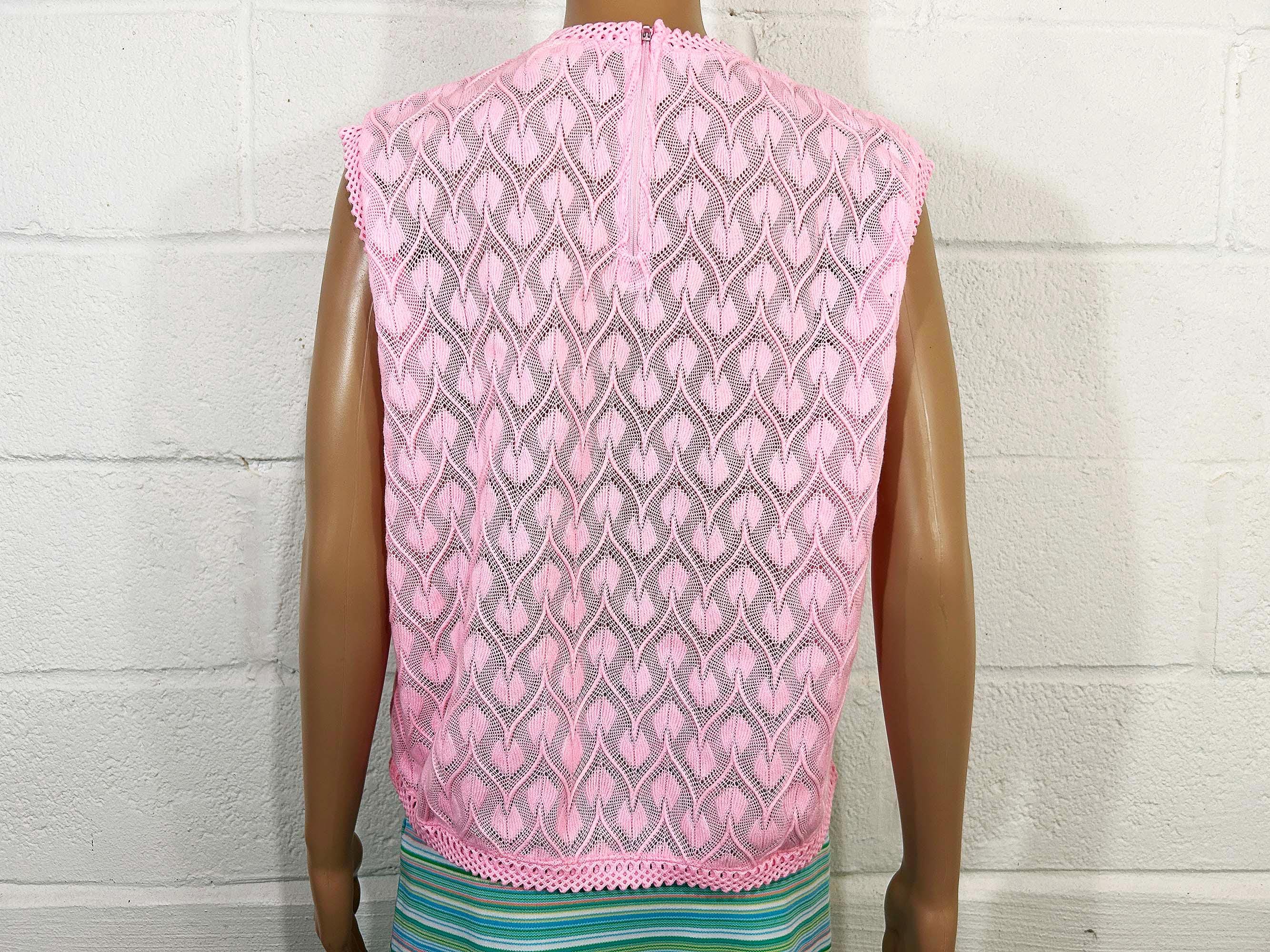 Super cute pink sleeveless open knit tank. Zipper at the back neckline. In excellent condition with no significant wear. Fabric has slight stretch.