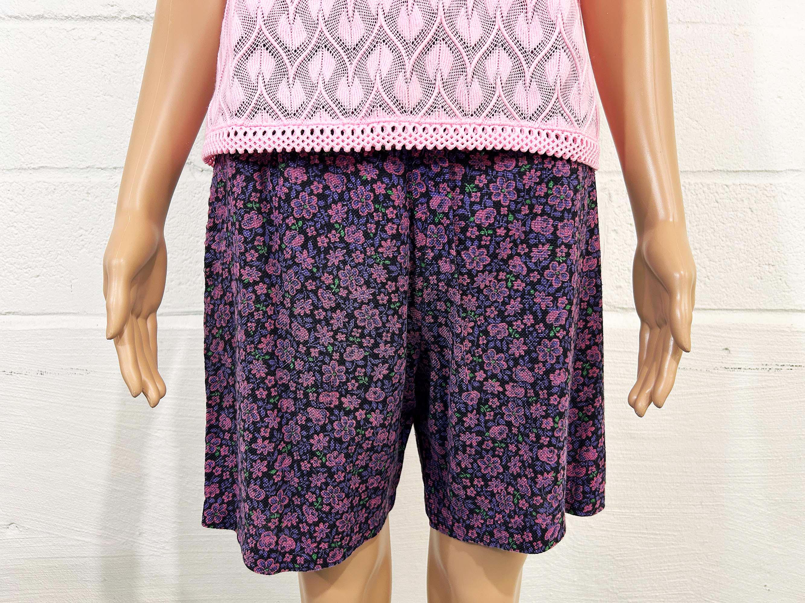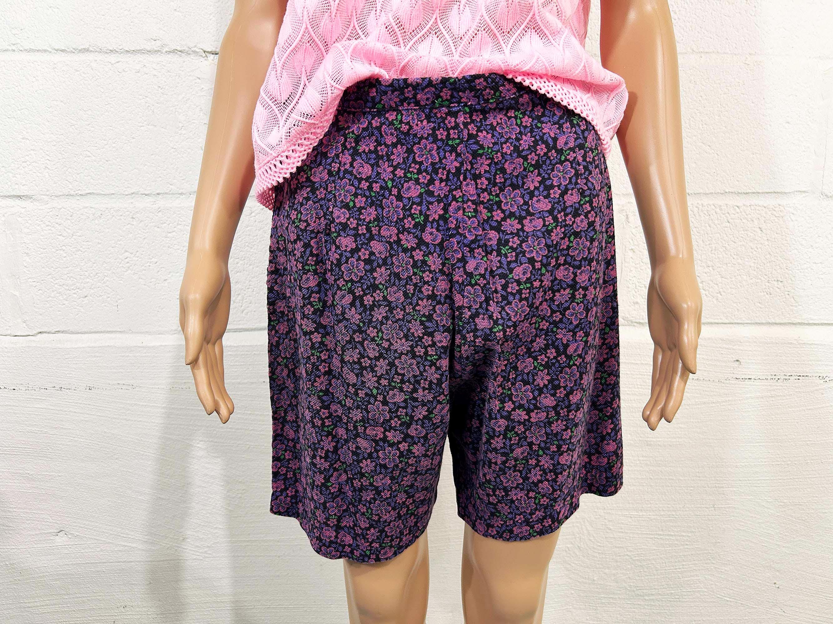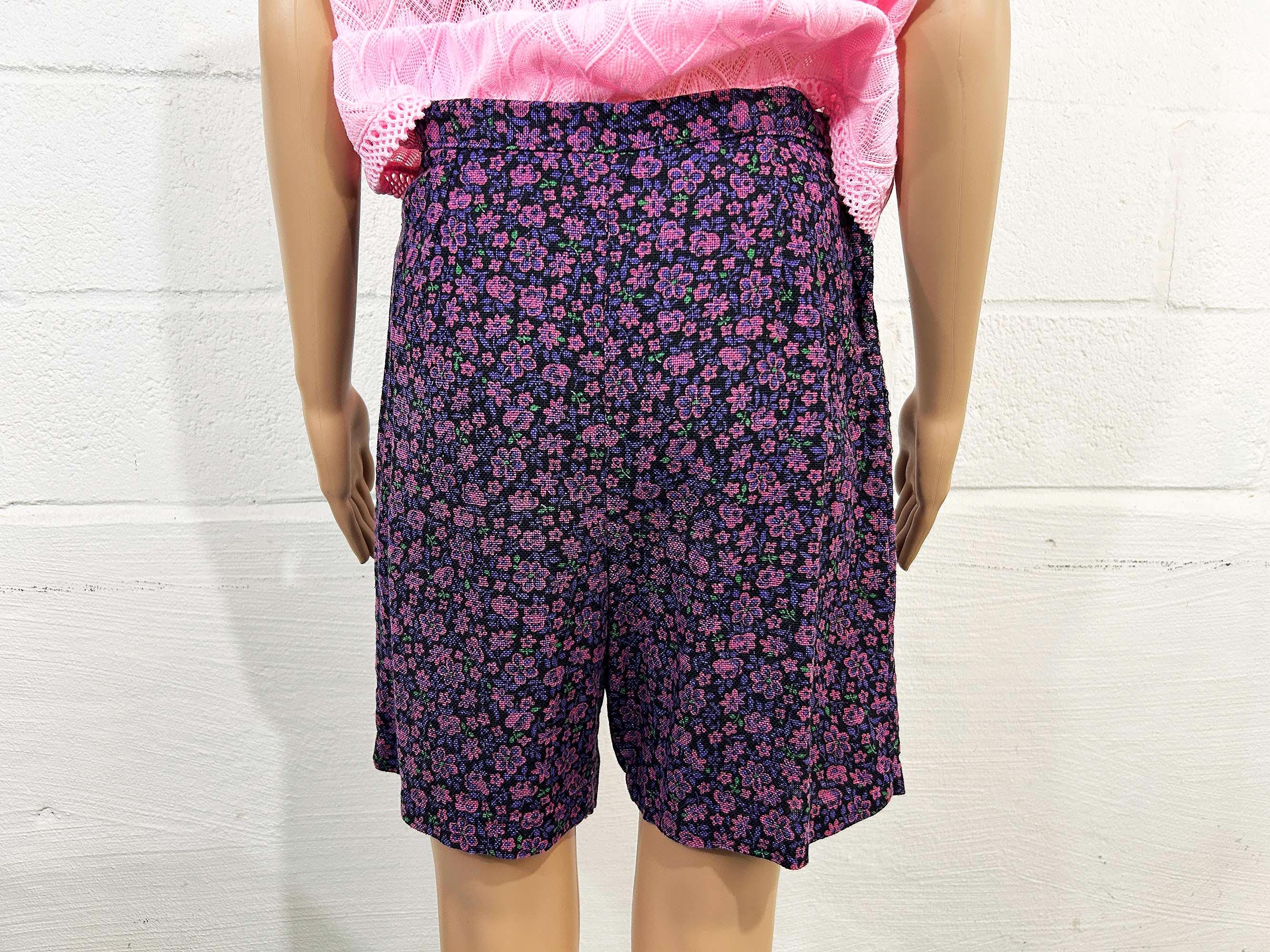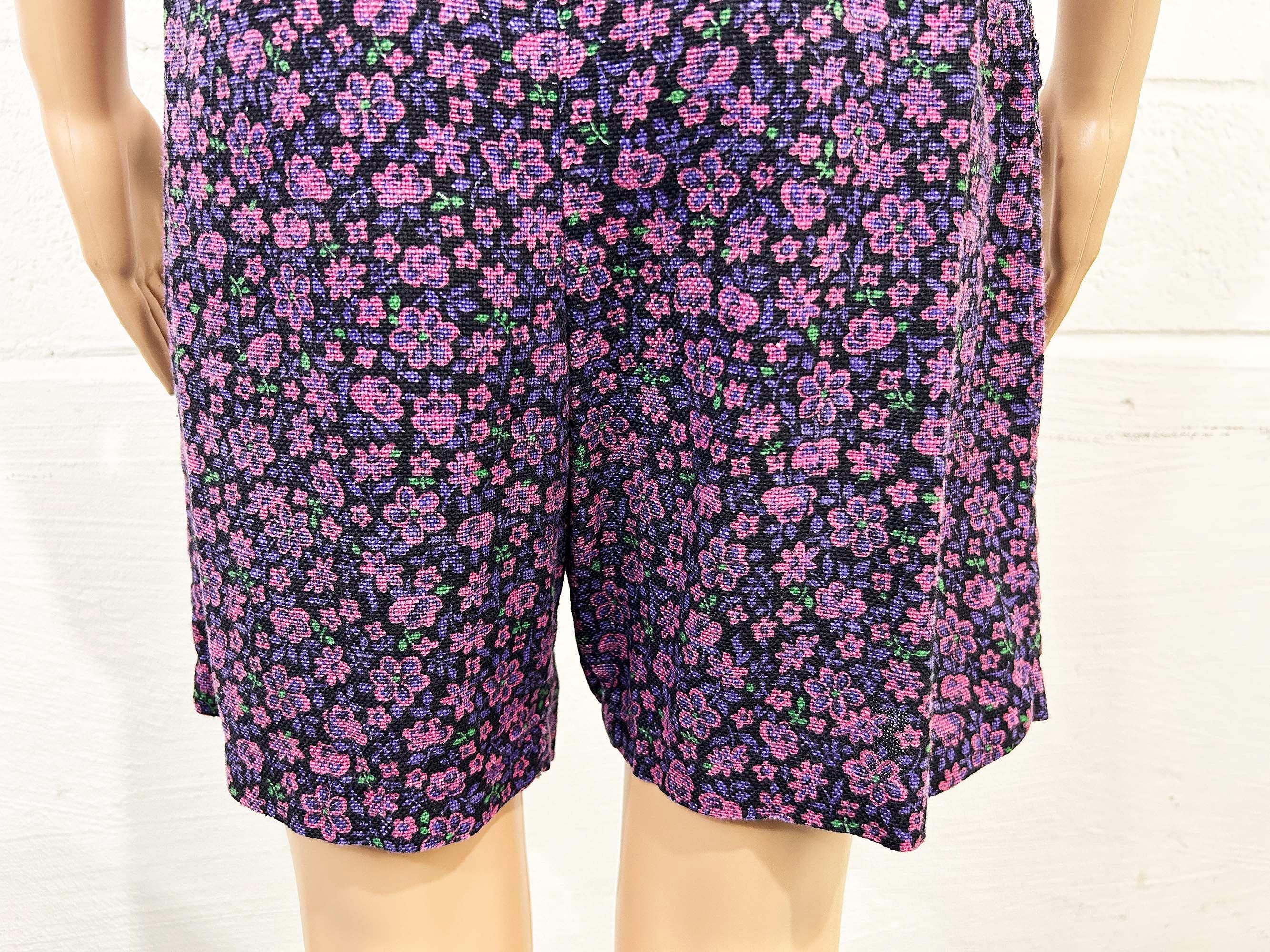 Adorable purple floral shorts. Side metal zipper and button. The shorts are in good vintage condition with no significant wear - please be sure to inspect all photos. Fabric has NO stretch.