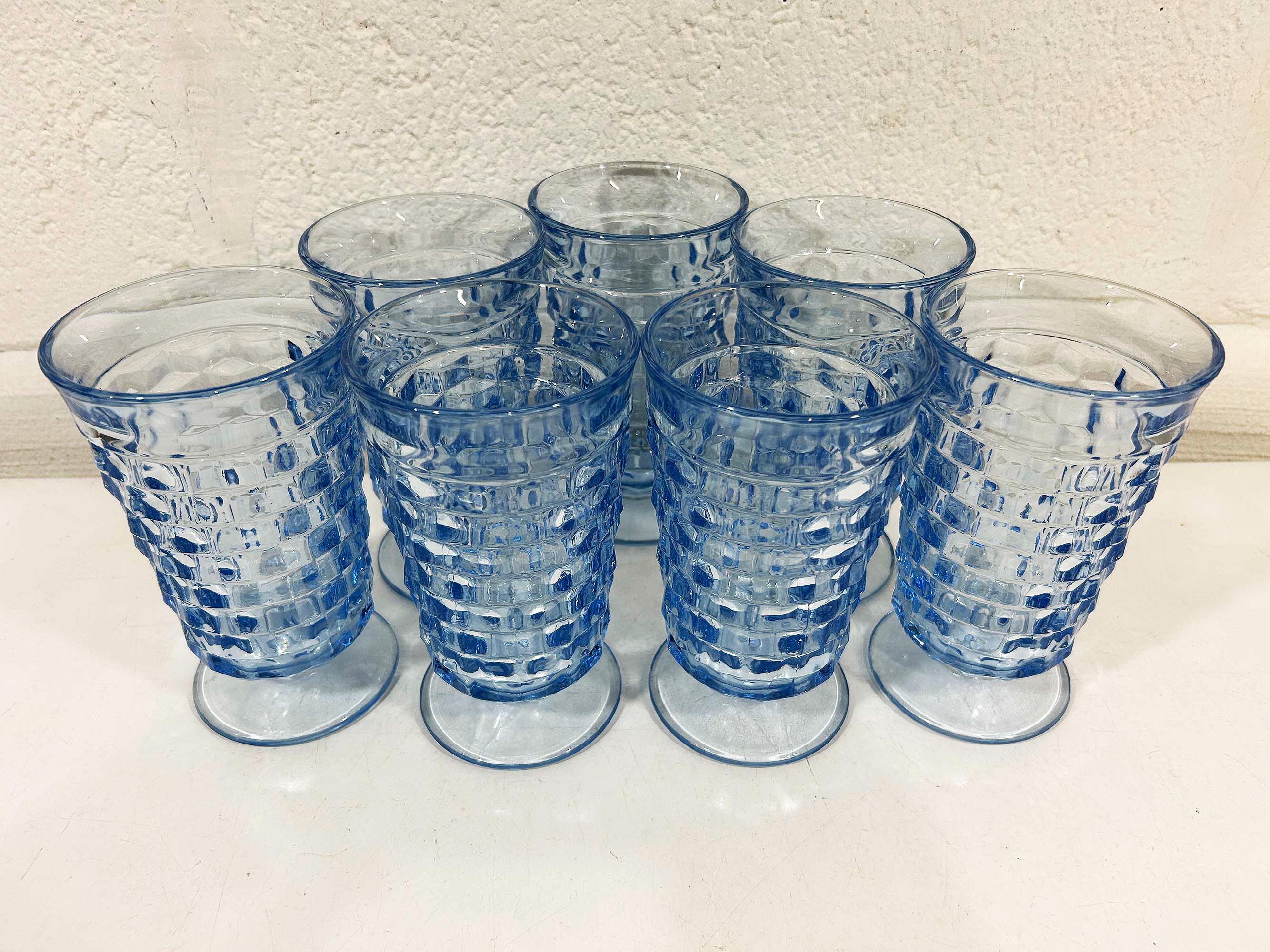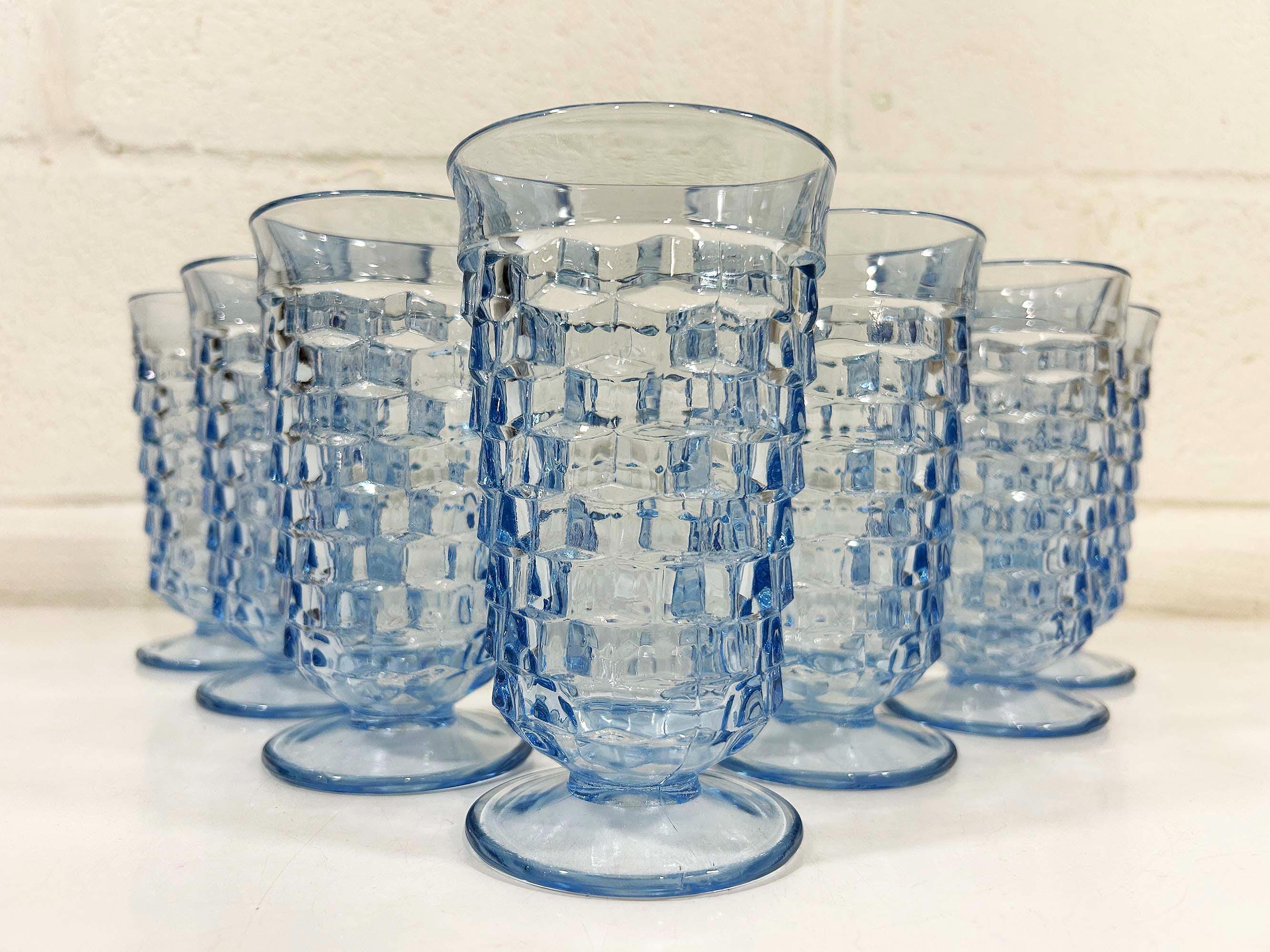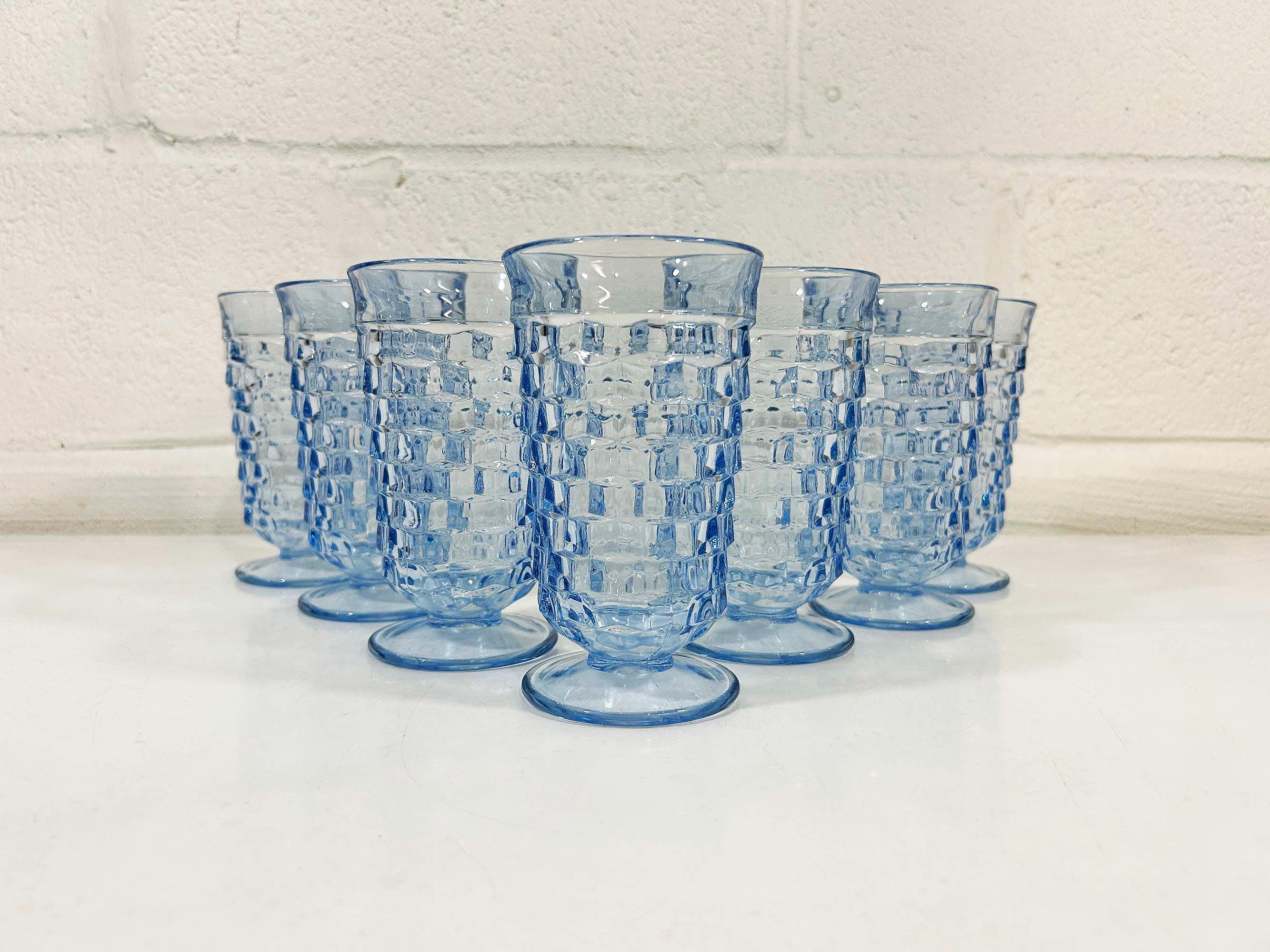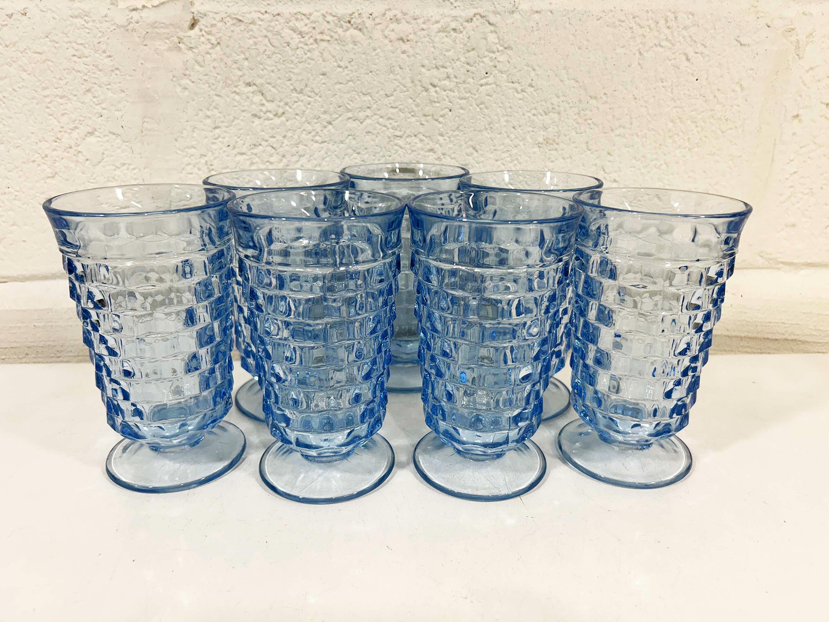 Lovely vintage set of 7 periwinkle iced tea glasses. Perfect addition to any bar or vintage kitchen! All are in excellent vintage condition with no significant flaws. Each glass is approximately 6 inches tall and 3 1/4 inches across the top. Each glass holds approximately 12 ounces of liquid when filled to the brim.