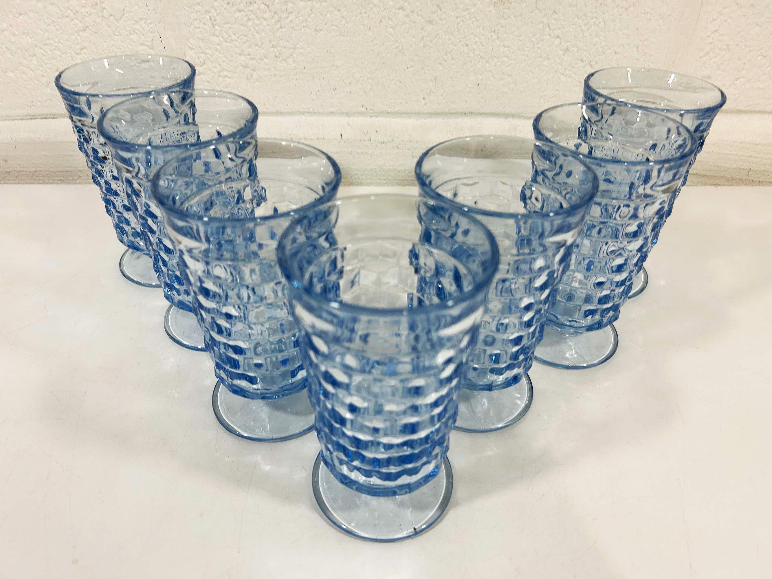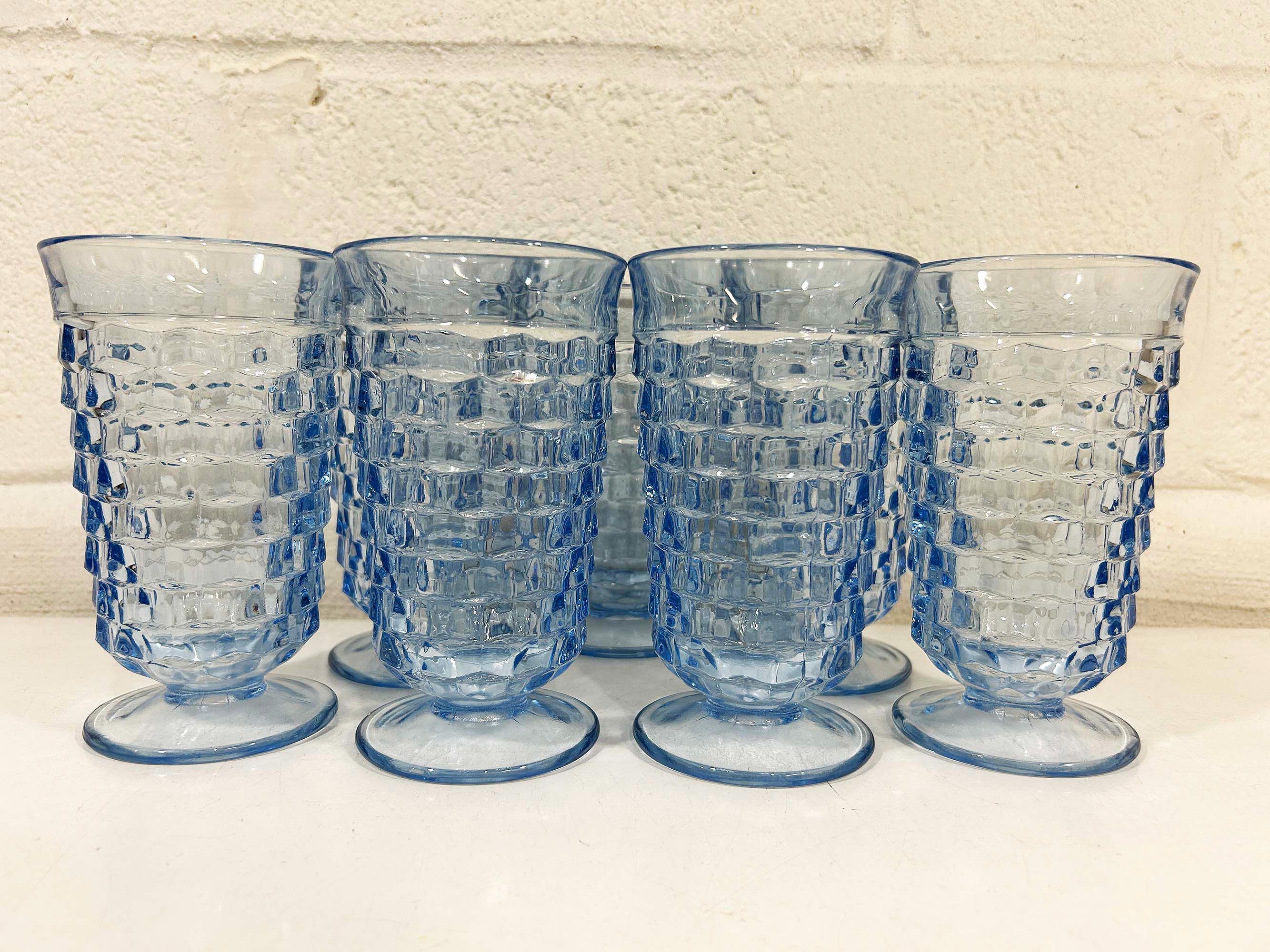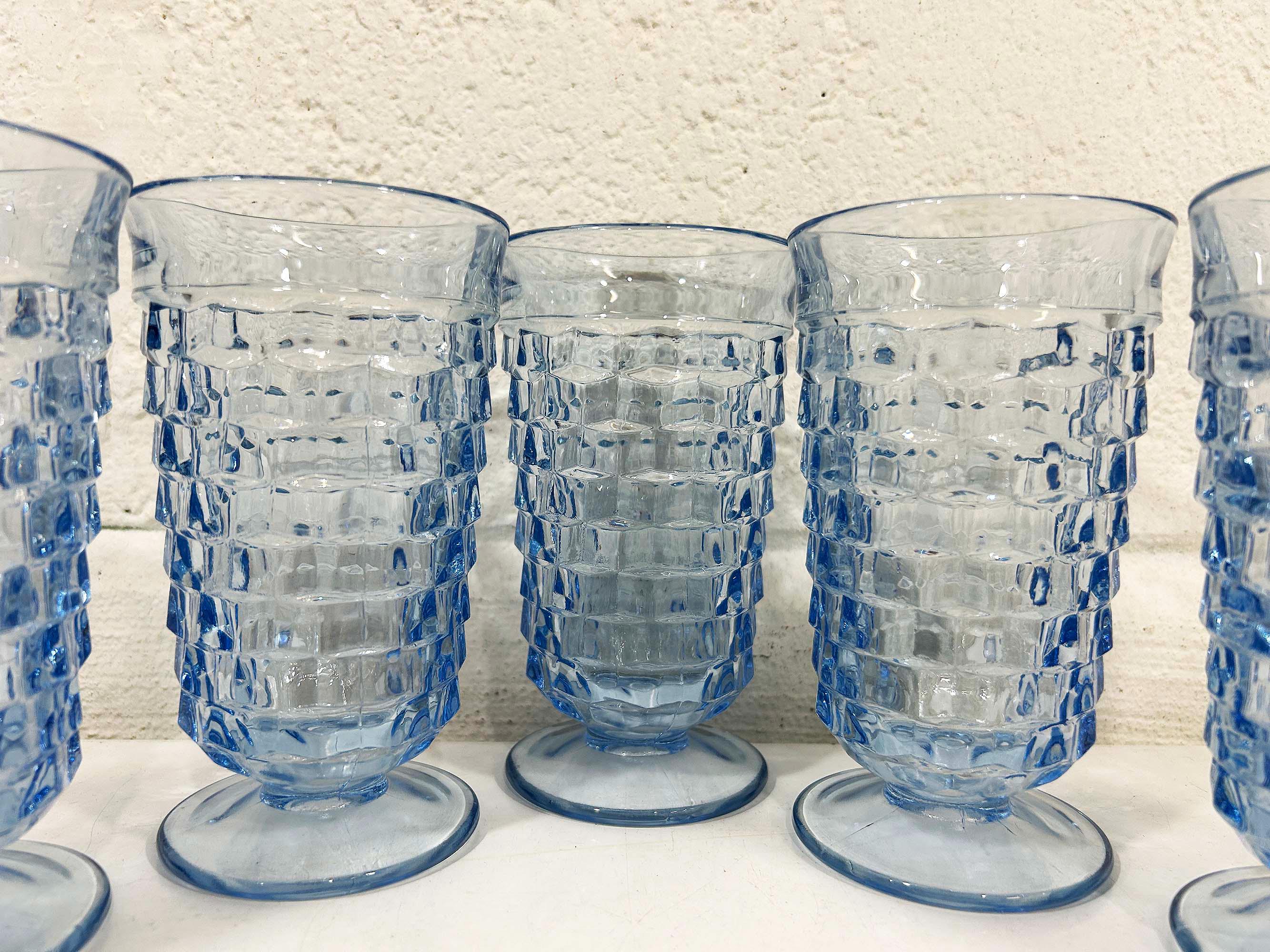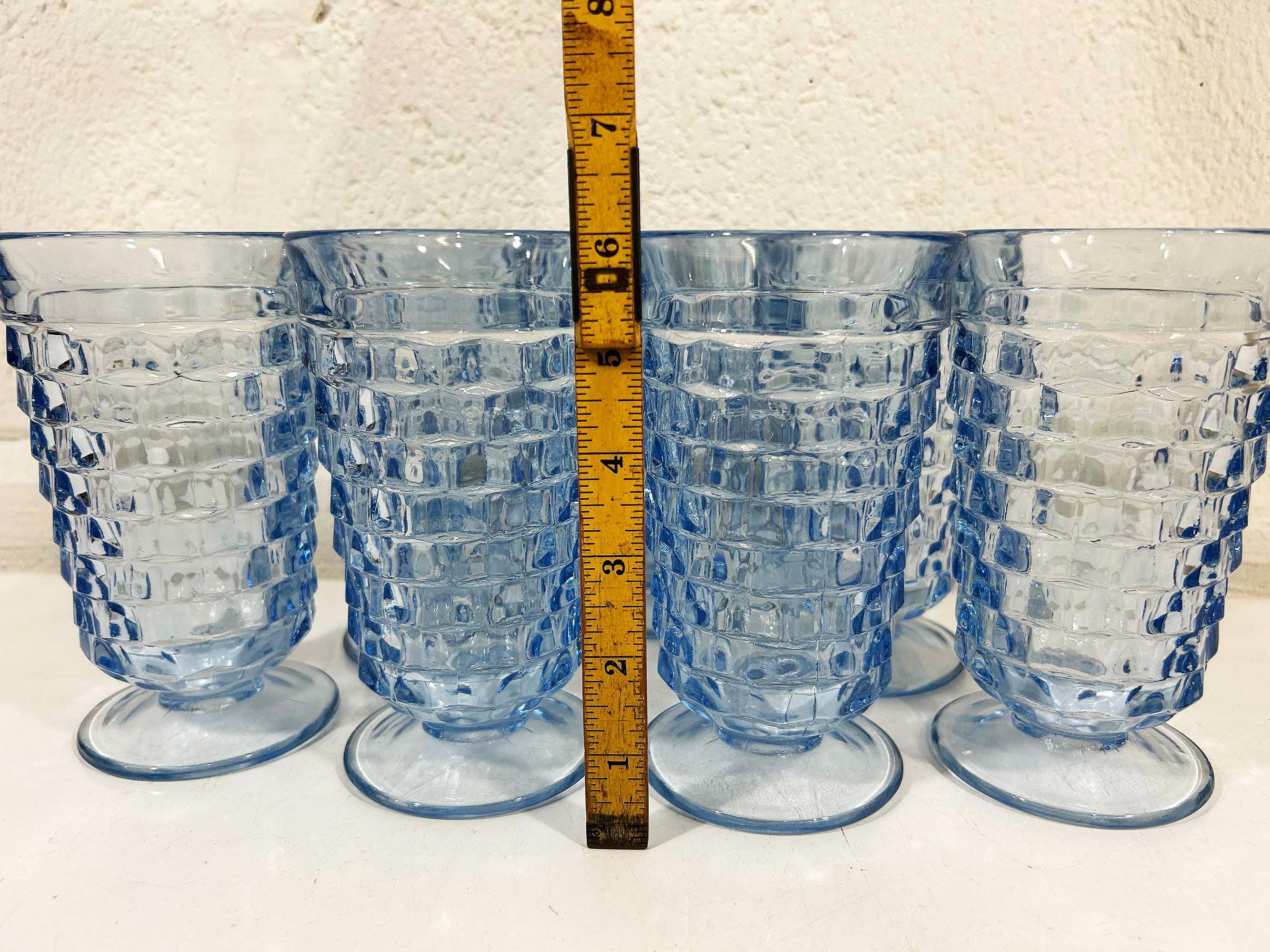Lovely vintage set of 7 periwinkle iced tea glasses. Perfect addition to any bar or vintage kitchen! All are in excellent vintage condition with no significant flaws. Each glass is approximately 6 inches tall and 3 1/4 inches across the top. Each glass holds approximately 12 ounces of liquid when filled to the brim.