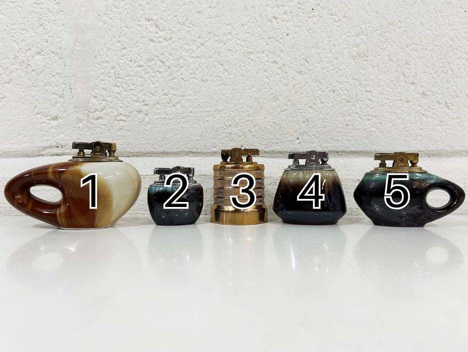 Super cool vintage atomic tabletop lighters! All but #3 are ceramic. They are not in working order - they would need lighter fluid and some may need a new flint and/or wick. They are all small lighters - perfect for decorating if you don't smoke. Each lighter is sold individually - choose which one you'd like from the drop down menu.
