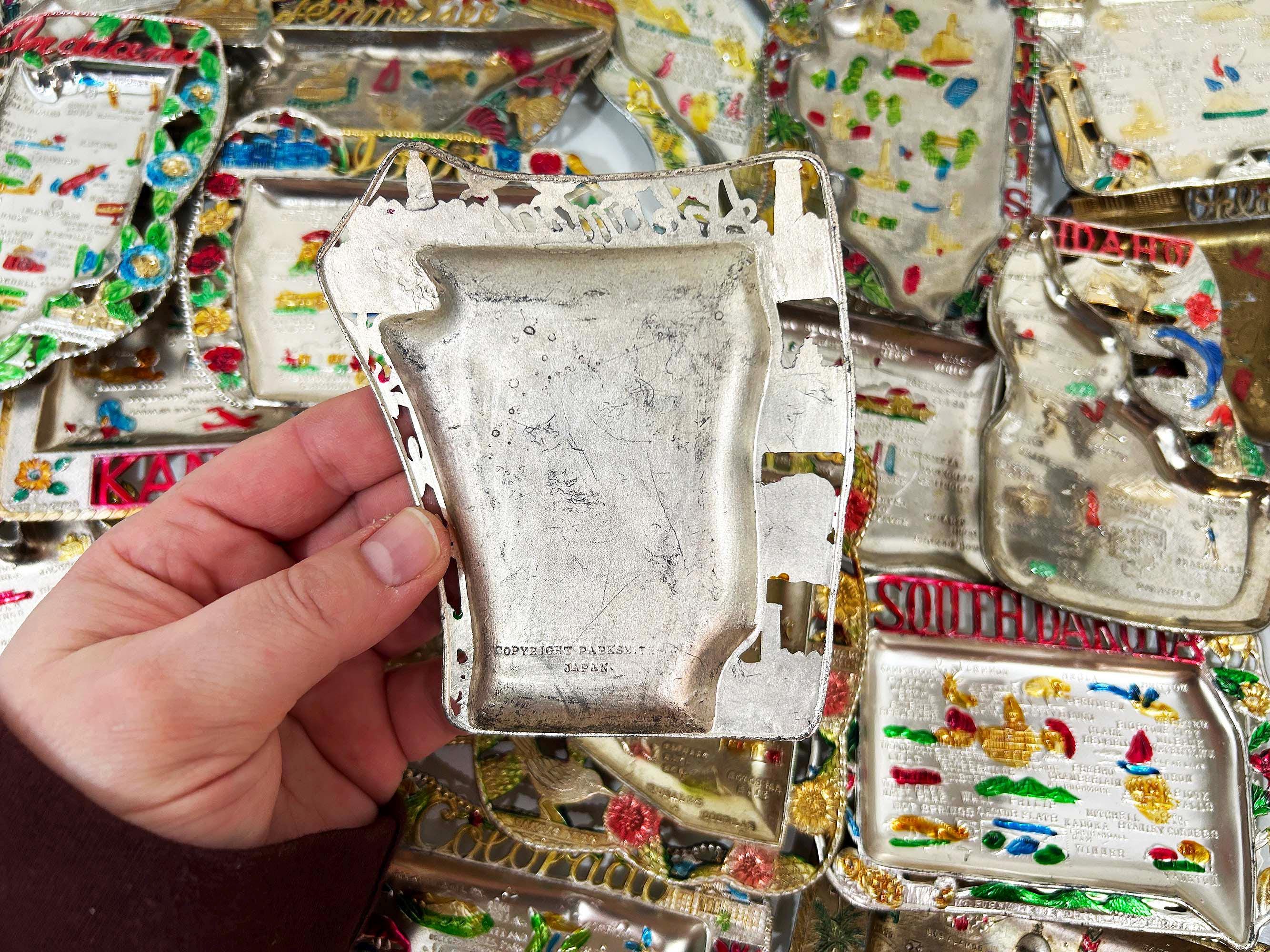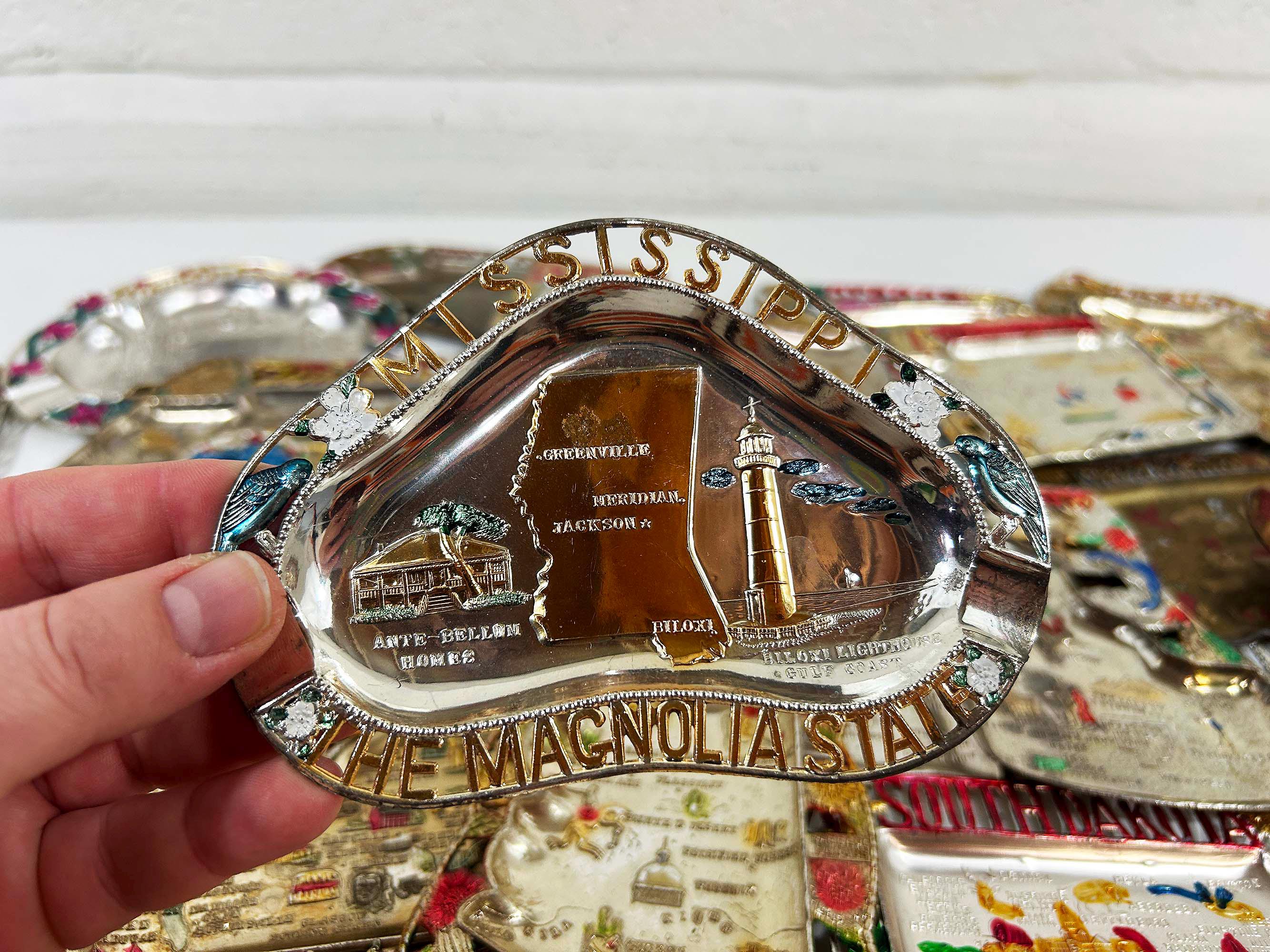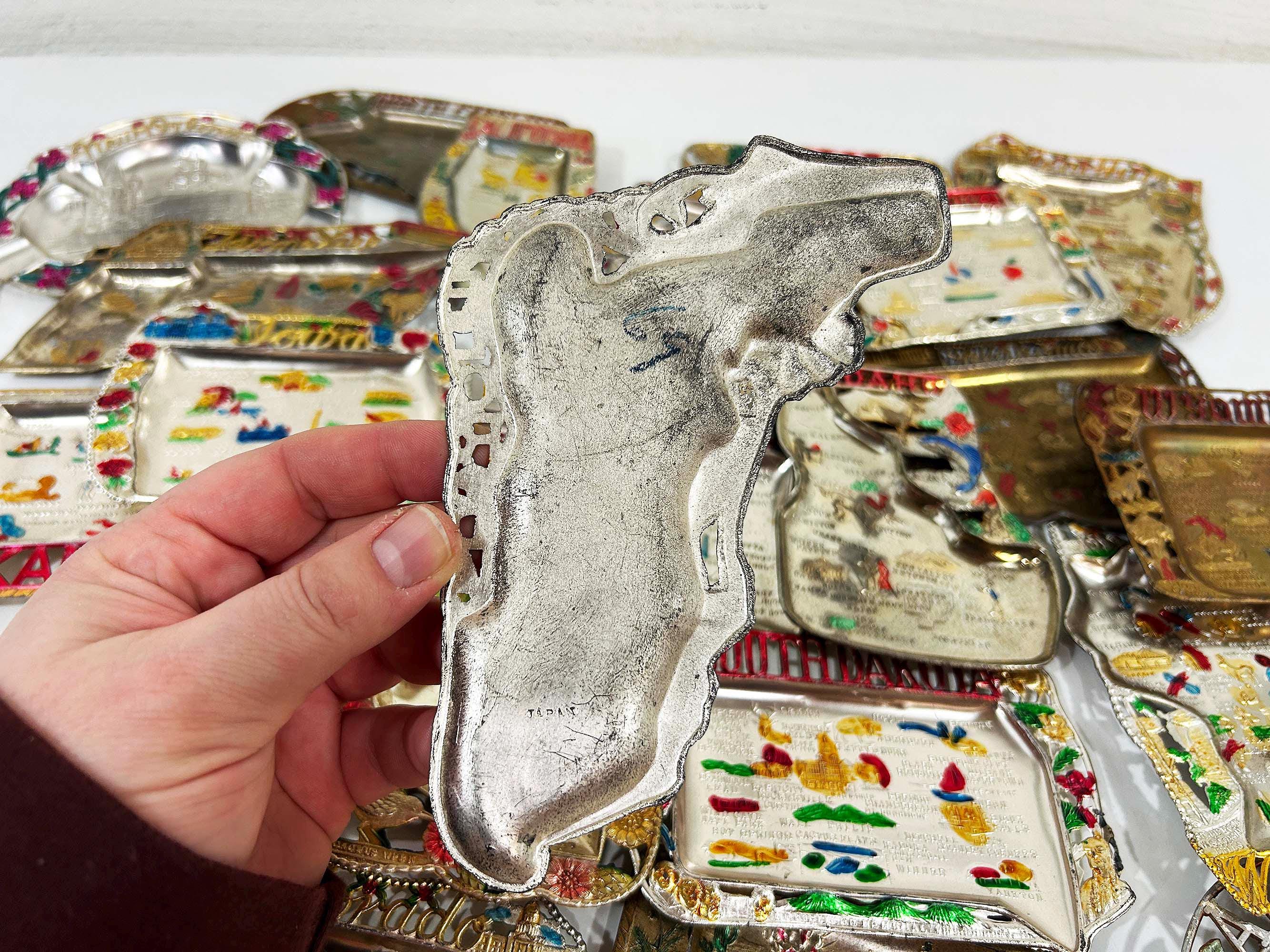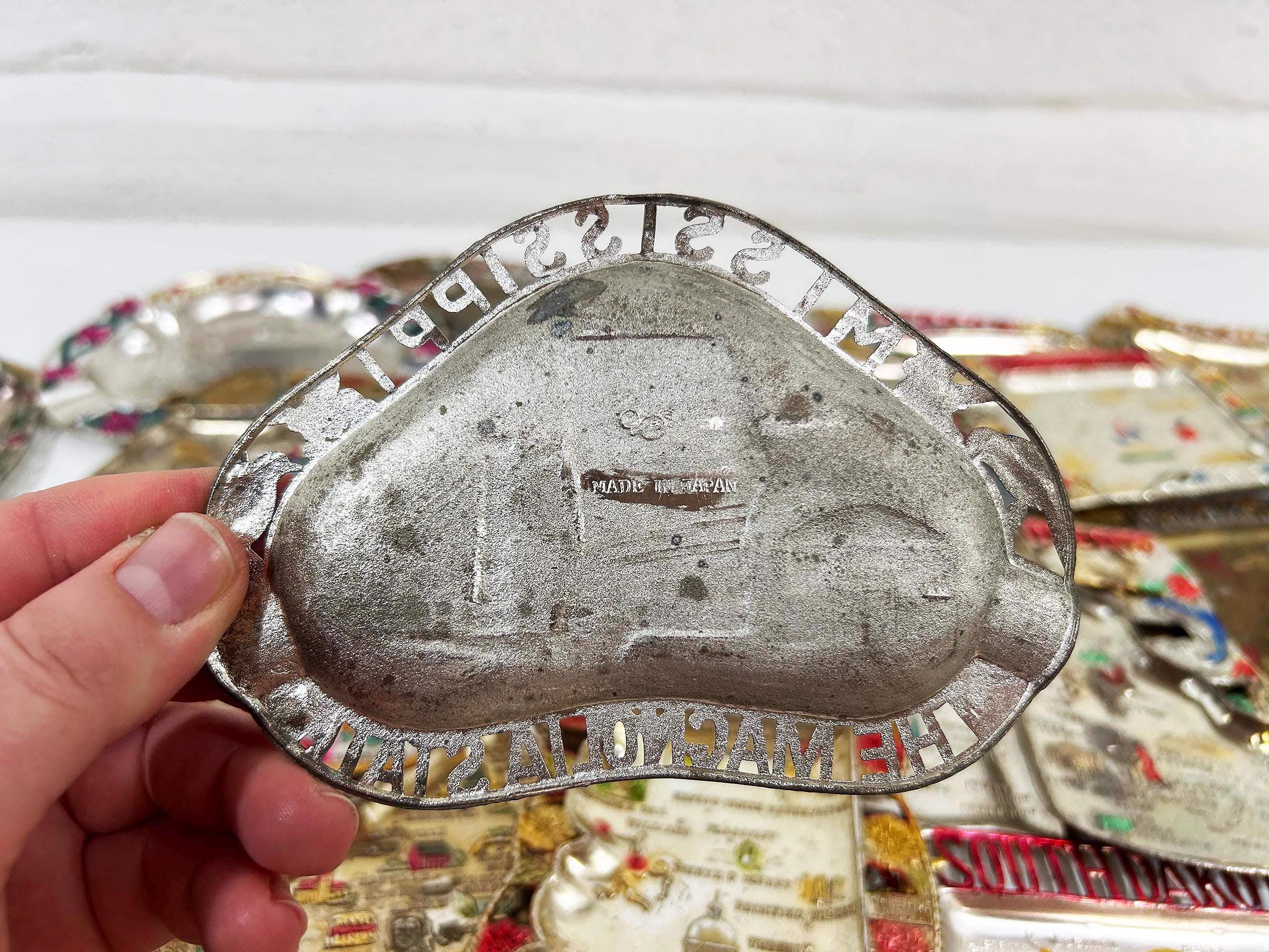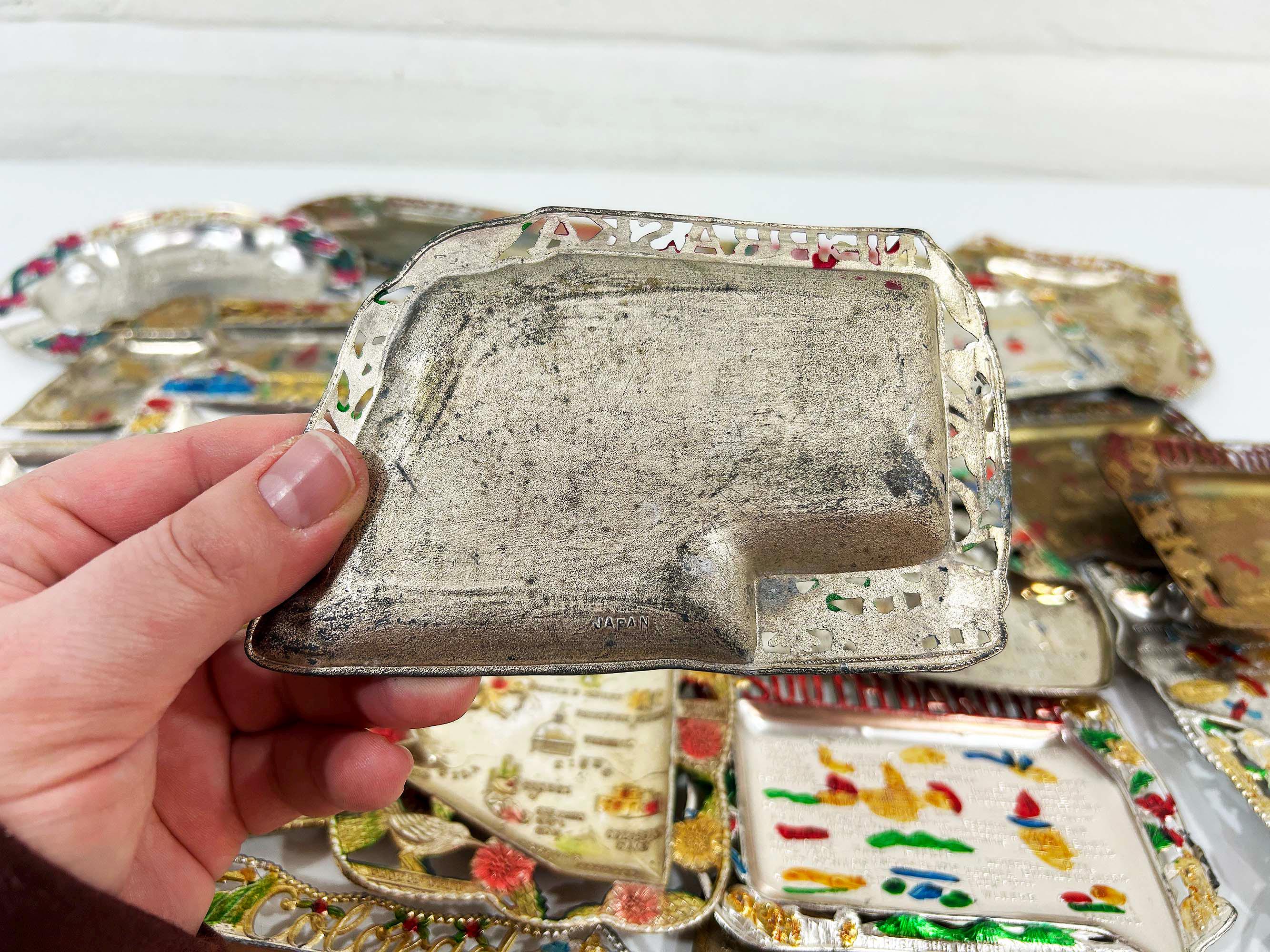Vintage US State Souvenir Ashtray Metal Dish Made in Japan Mid Century Travel Tchotchke 1970s