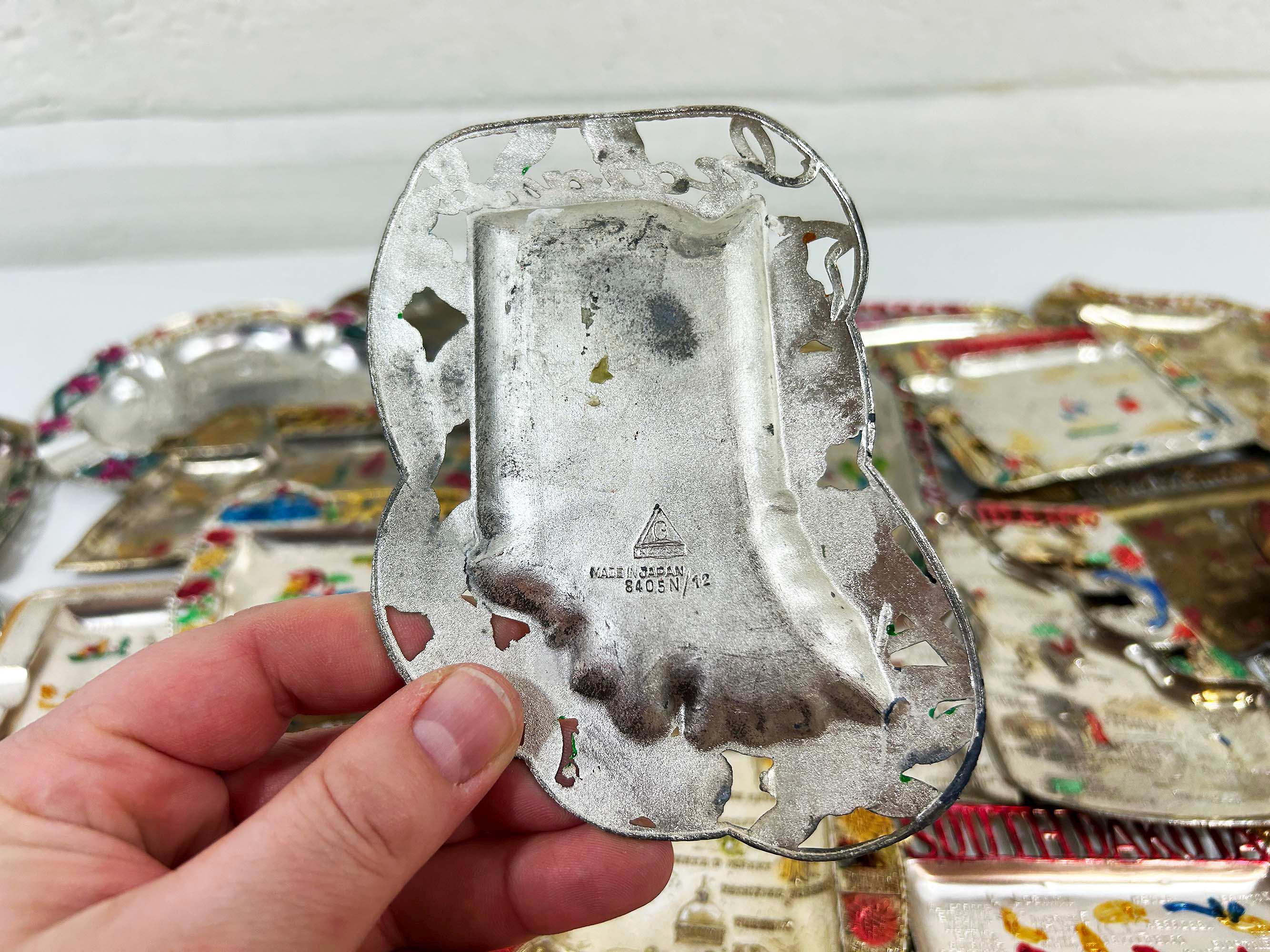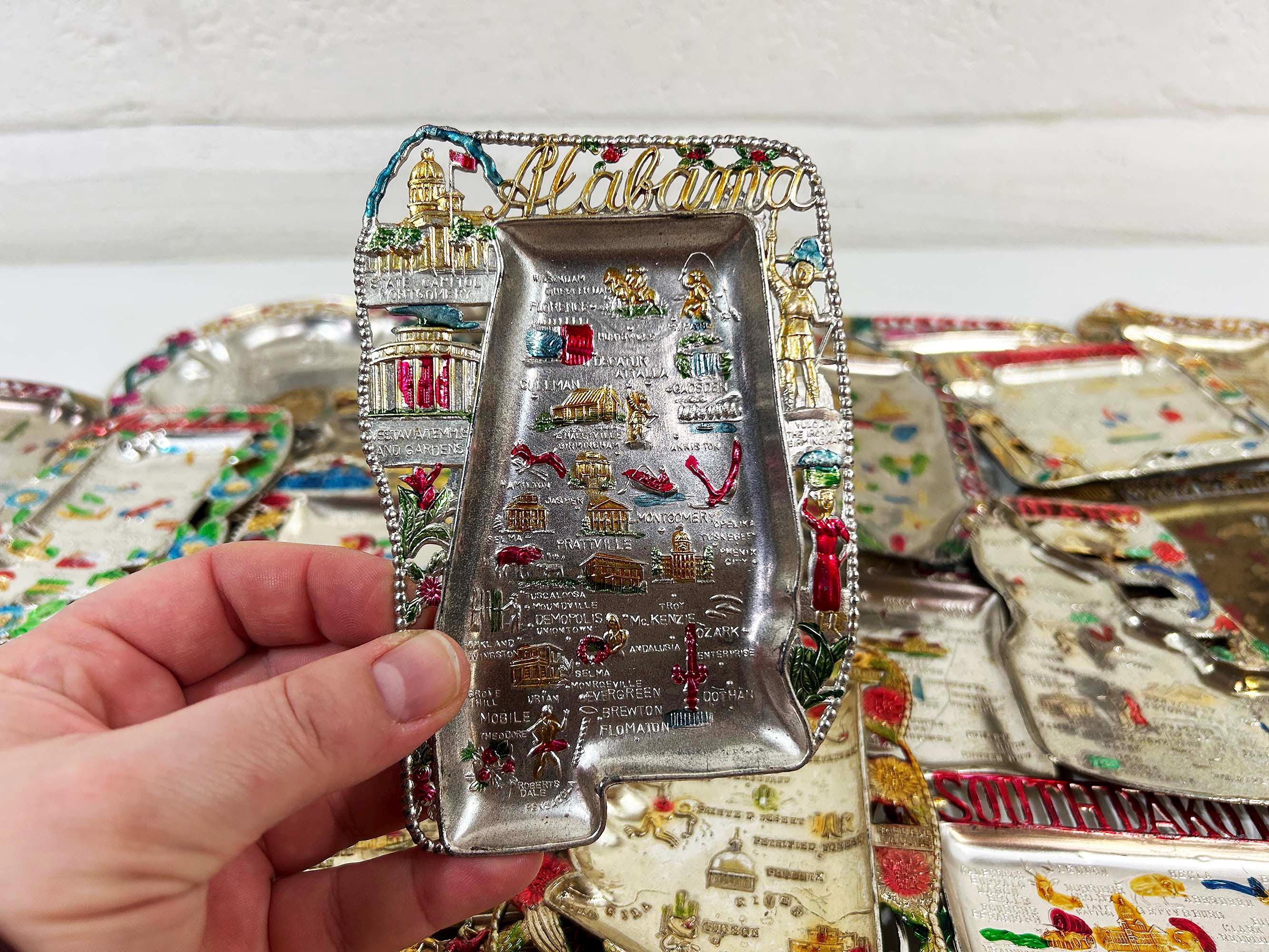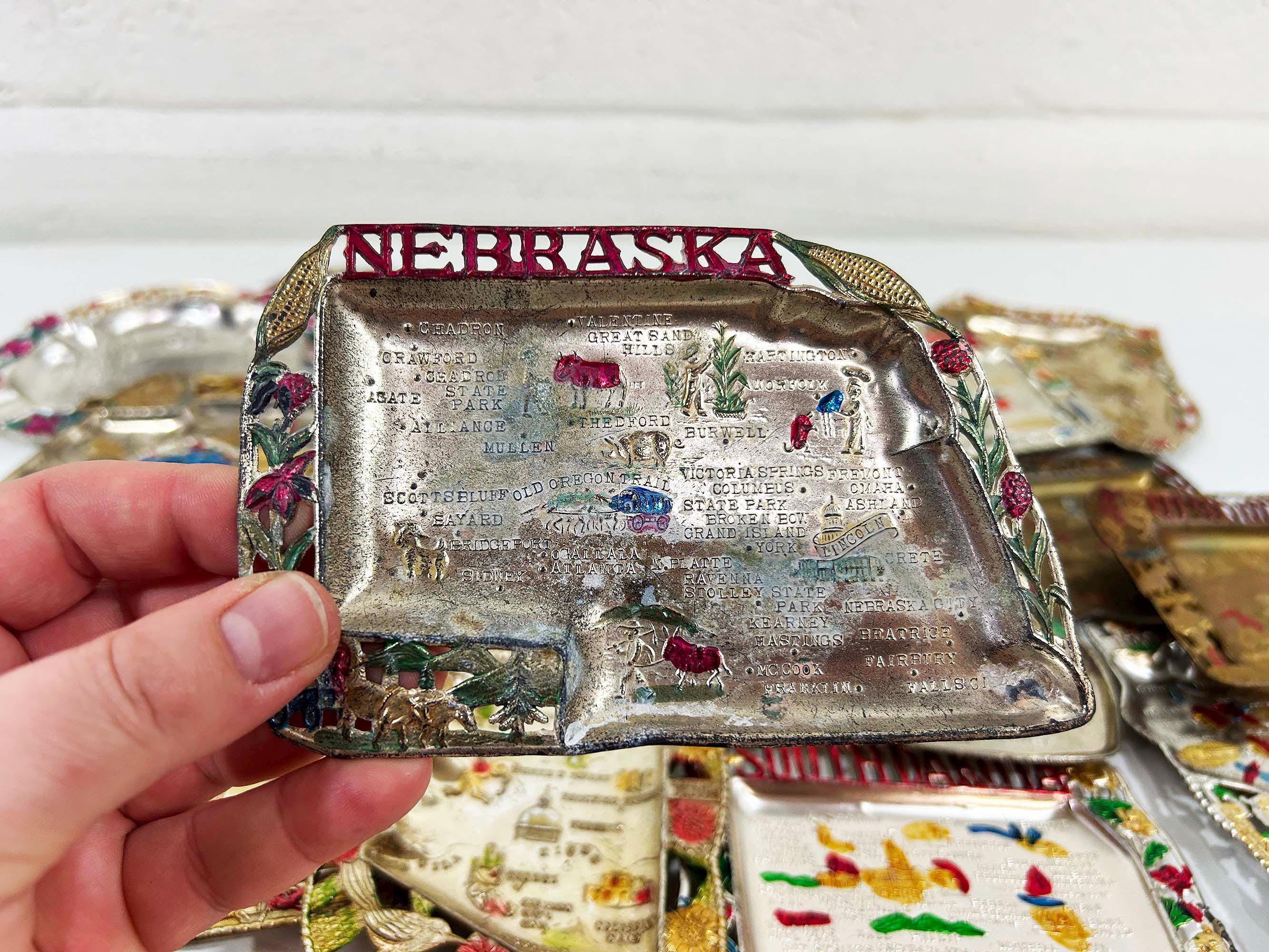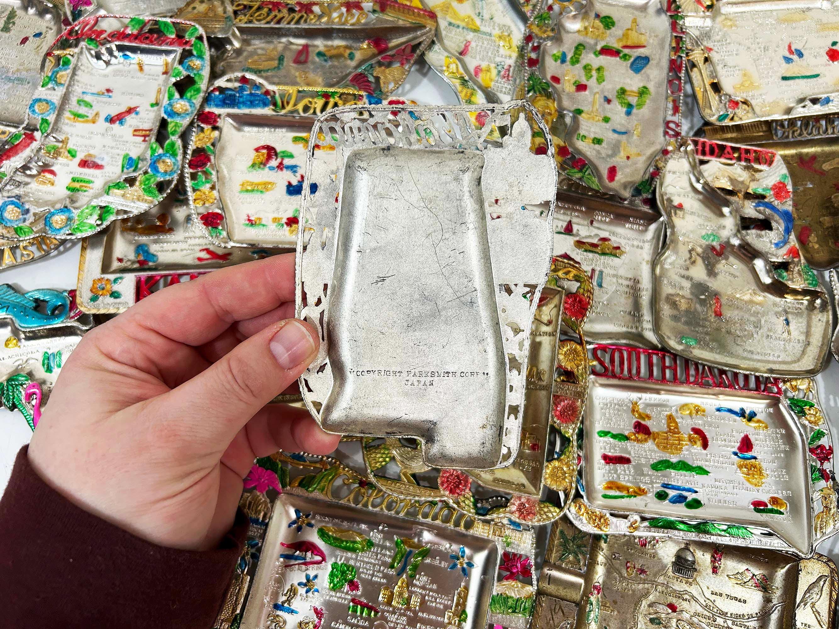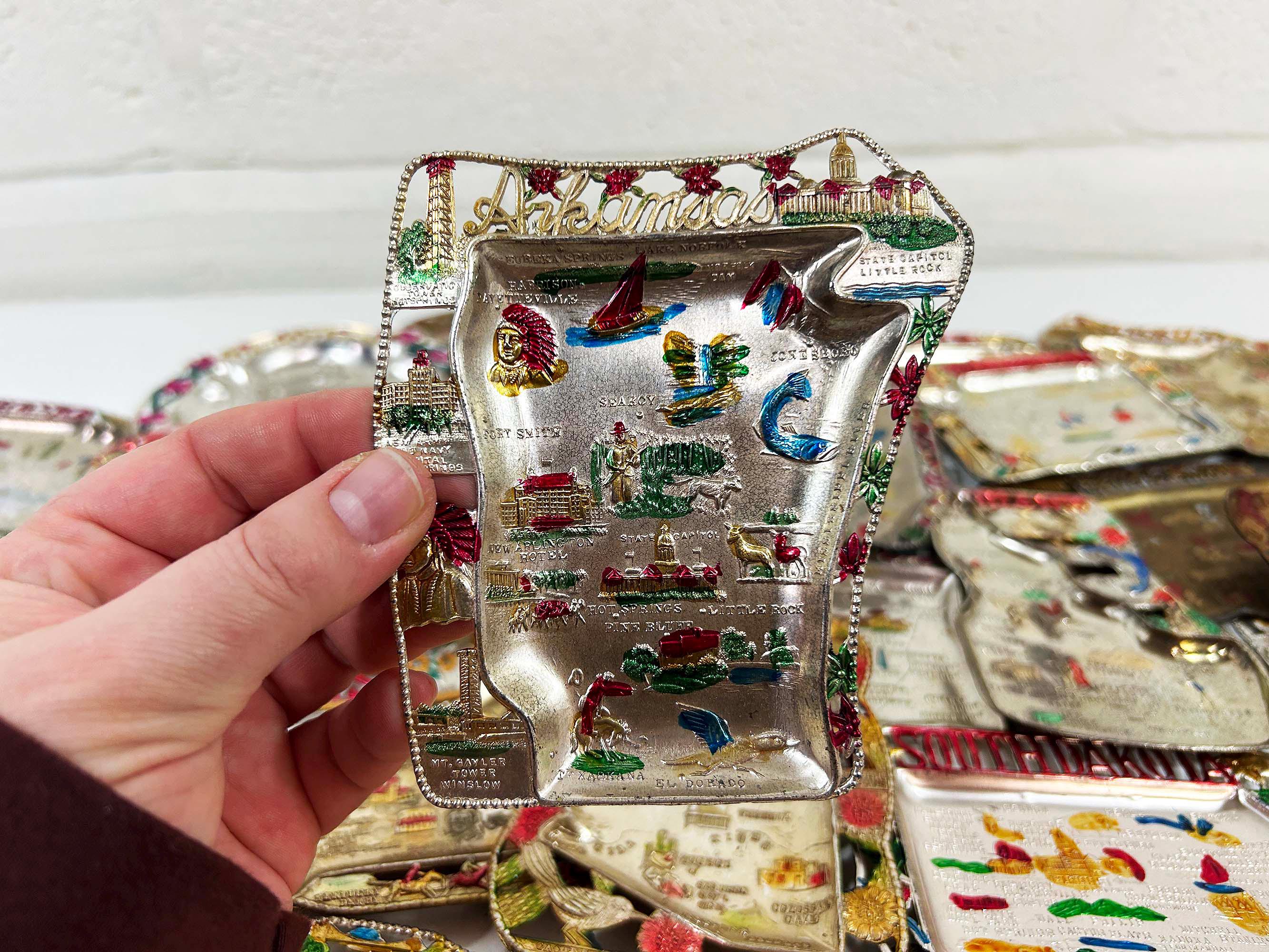 Vintage US State Souvenir Ashtray Metal Dish Made in Japan Mid Century Travel Tchotchke 1970s