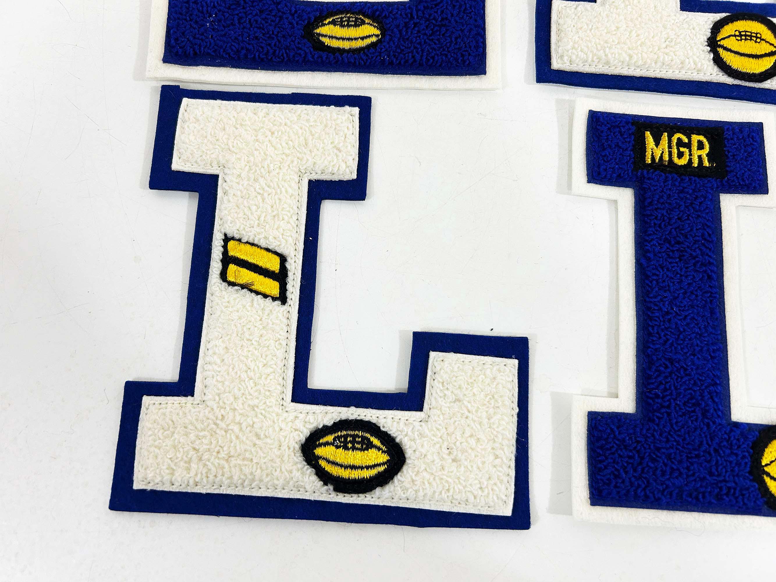 Super cool vintage basketball and football letterman jacket chenille patches. These are deadstock from the 1970s. They are sold individually - choose which one you'd like from the drop down menu.
