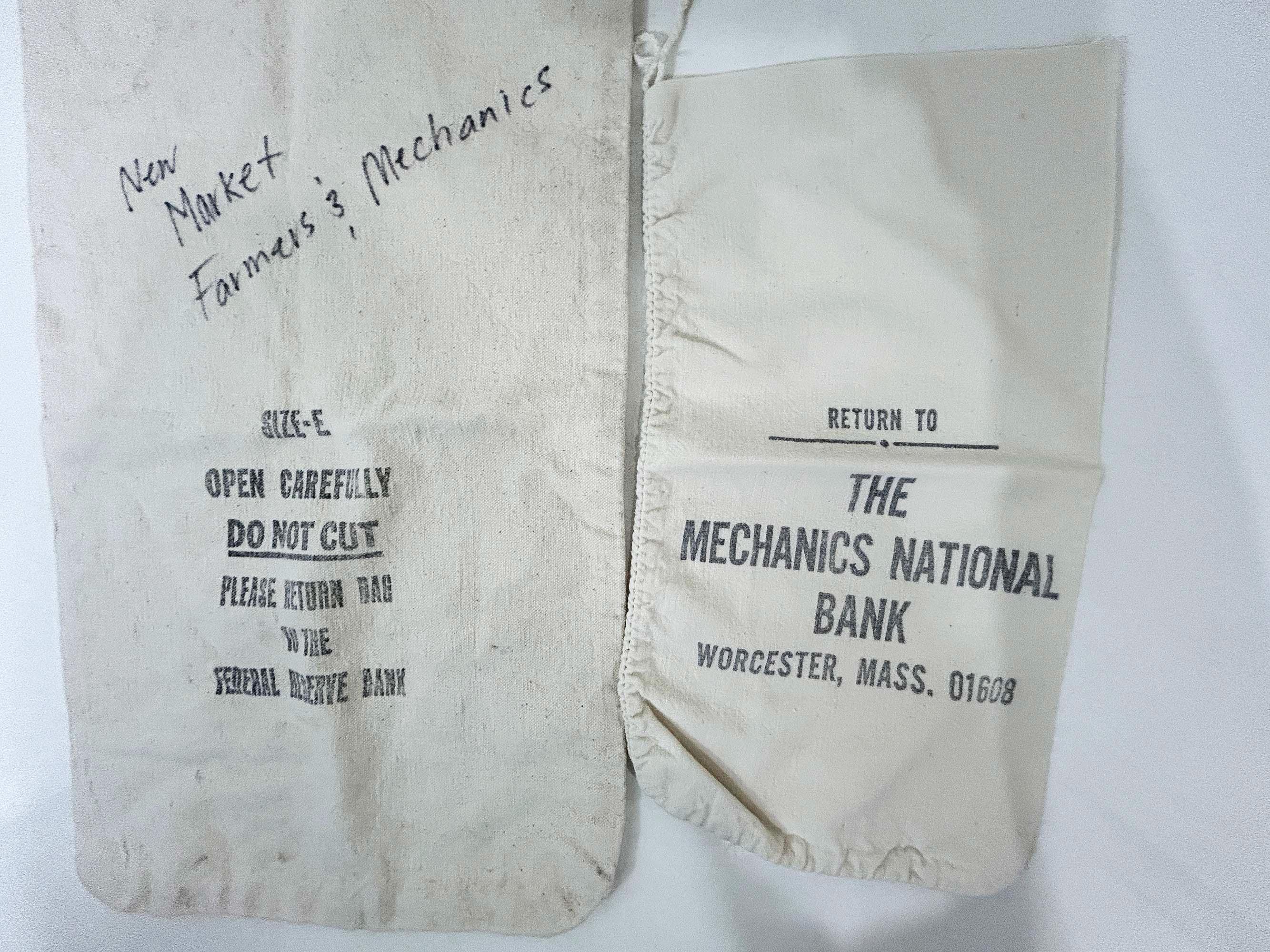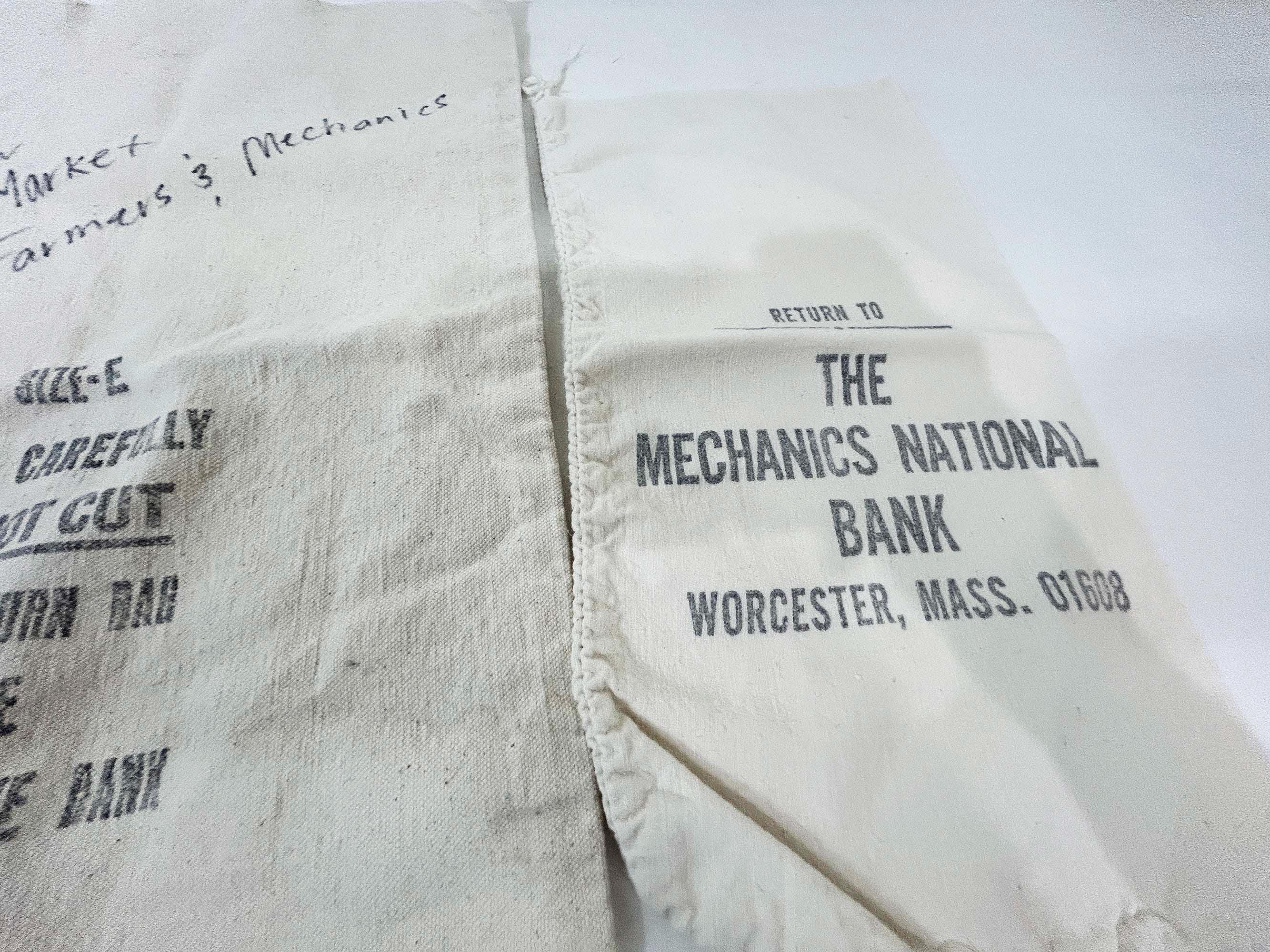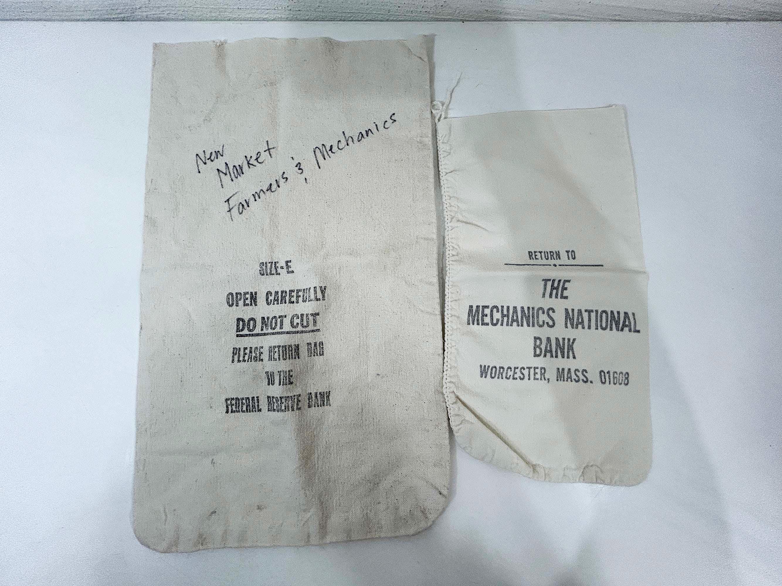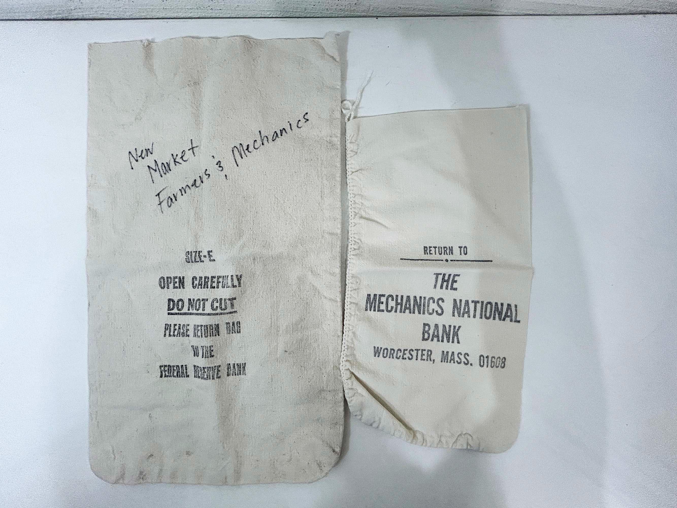Very cool small vintage fabric bank change bags. All the fabric graphics are faded. Super cool for projects.