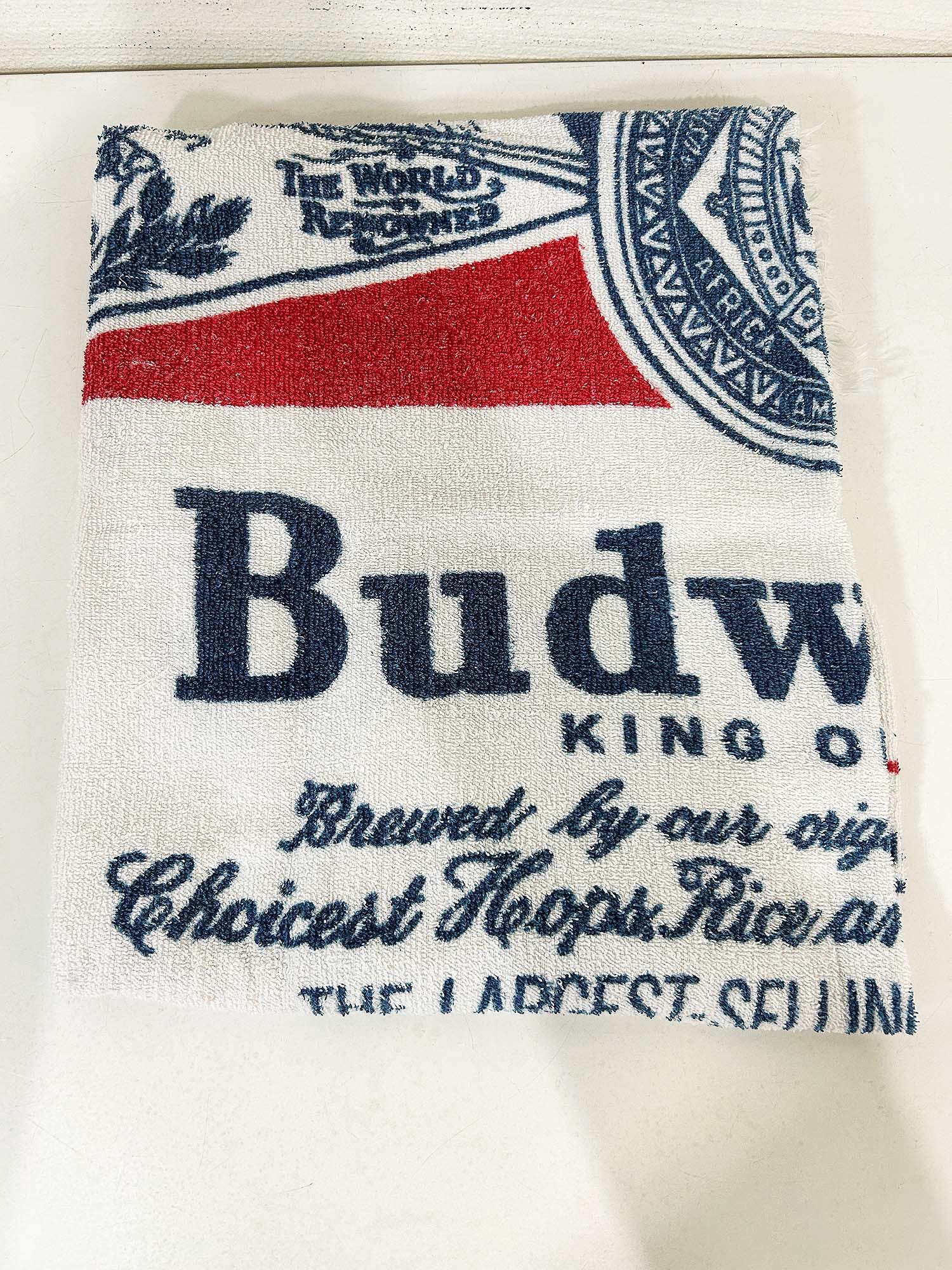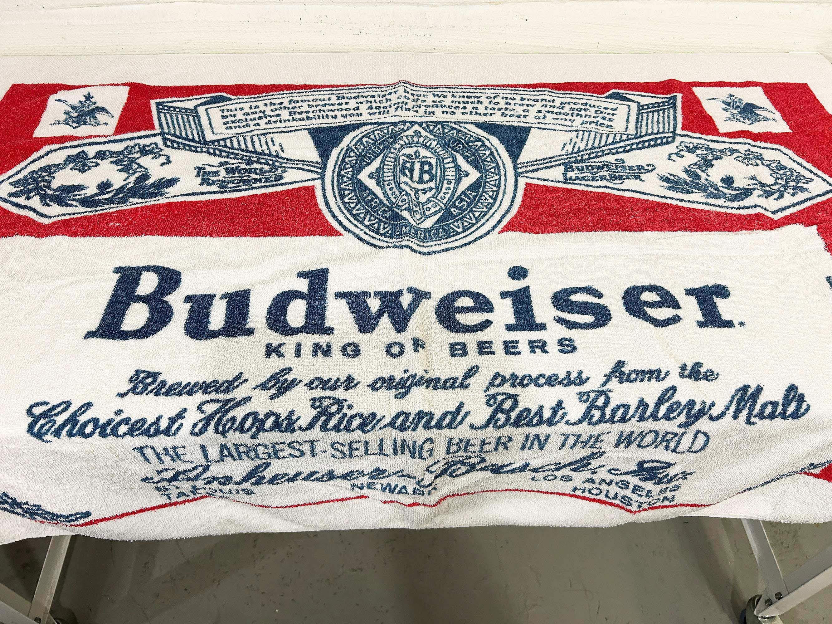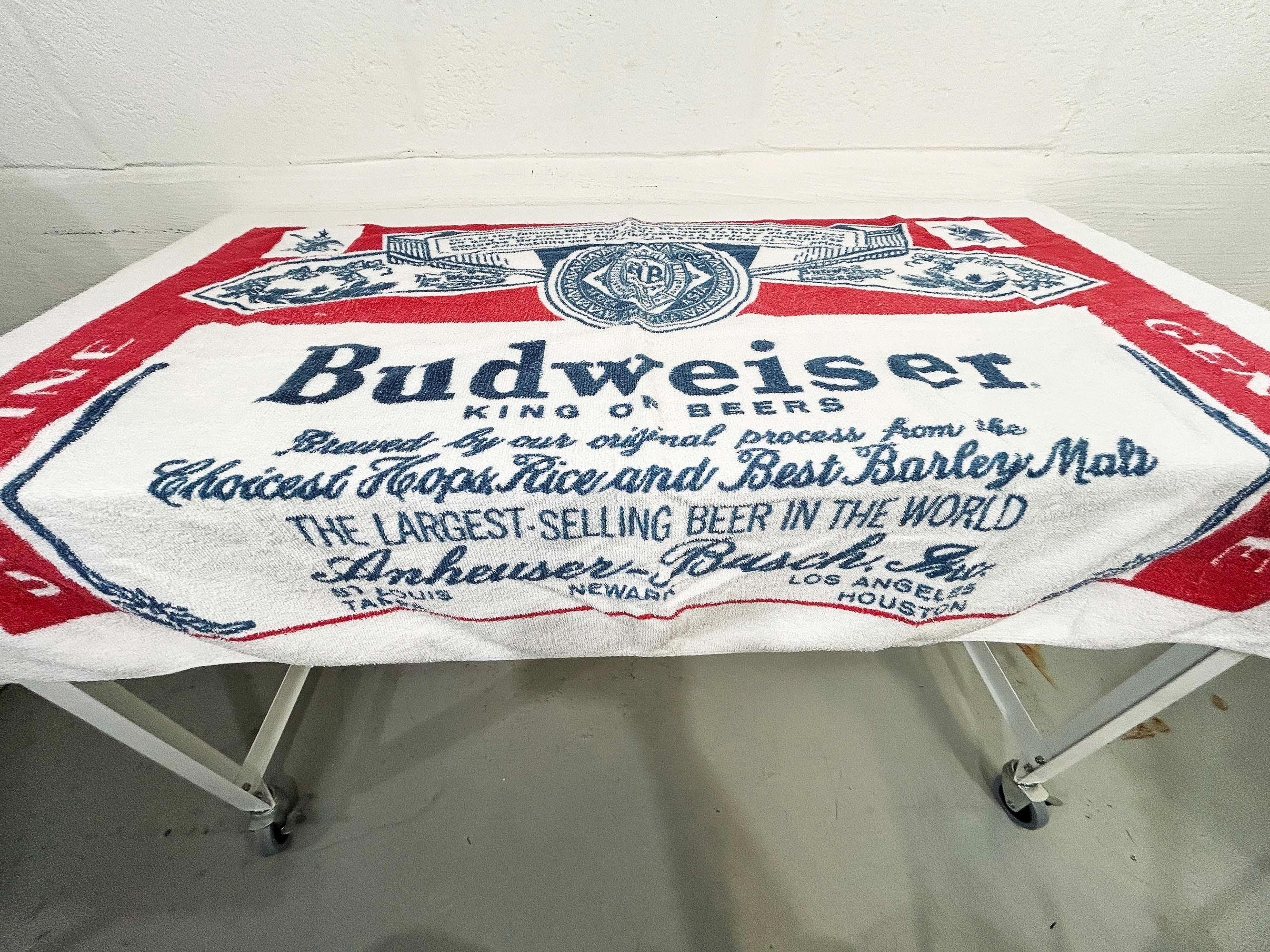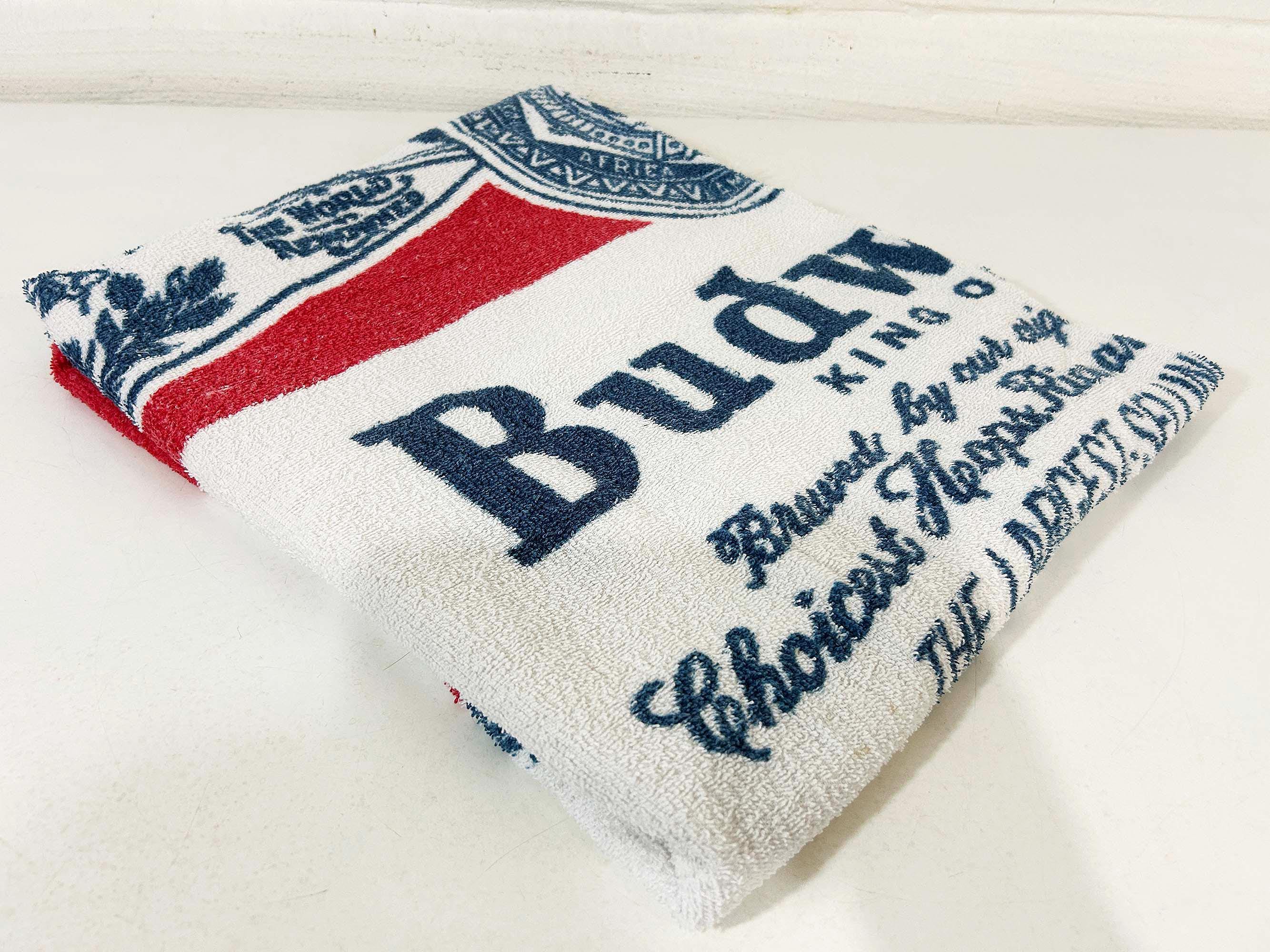 Very cool Budweiser beach towel in great vintage condition. It is approximately 53 inches long and 32 inches wide.