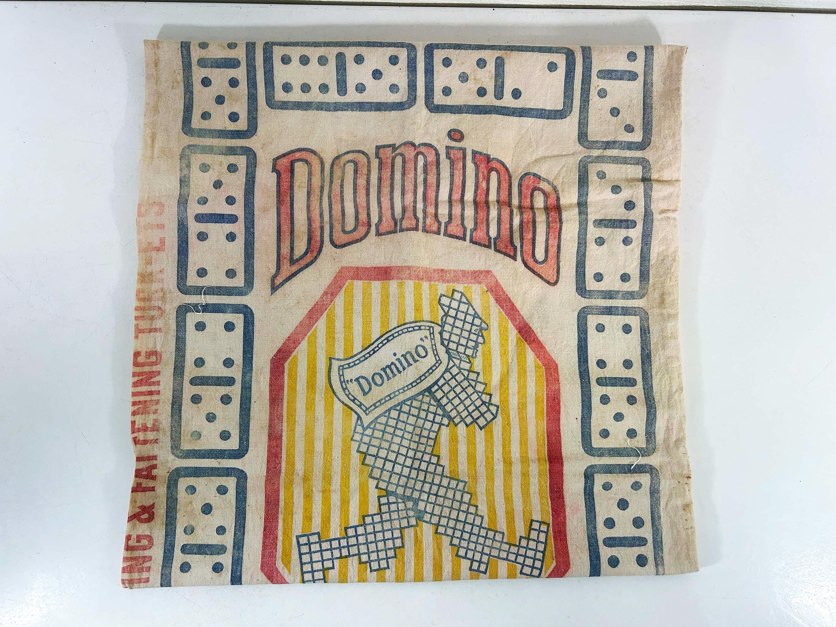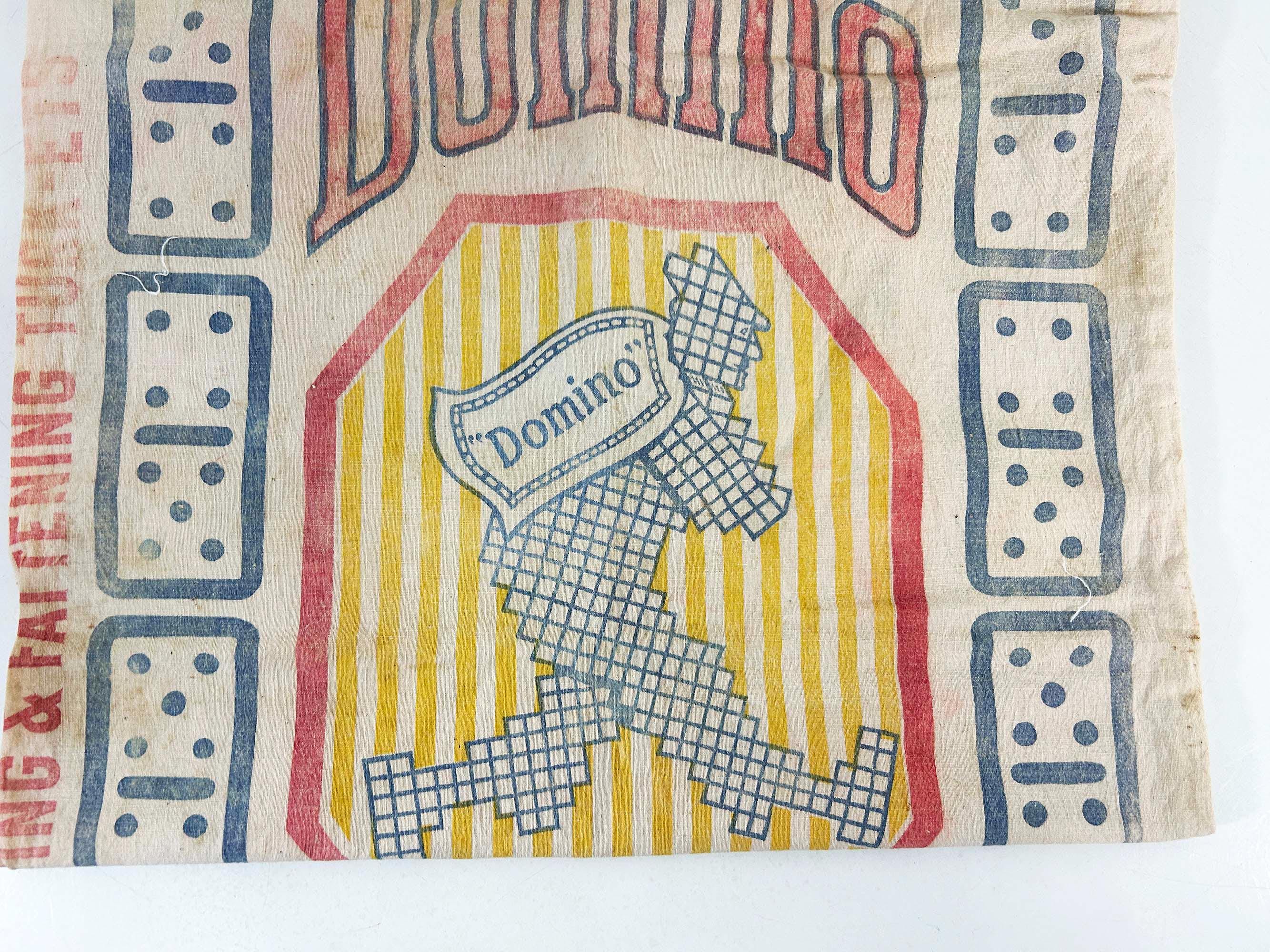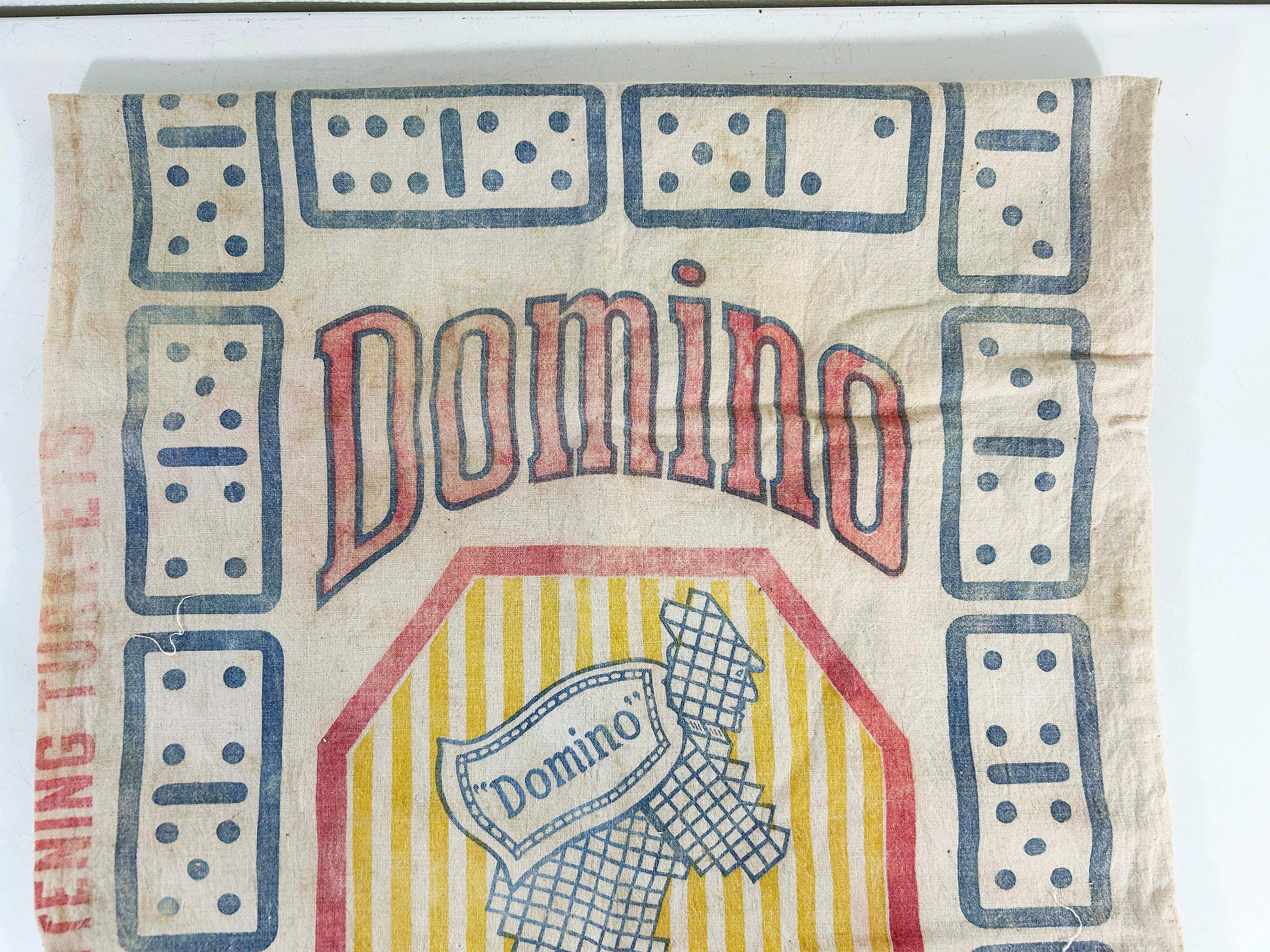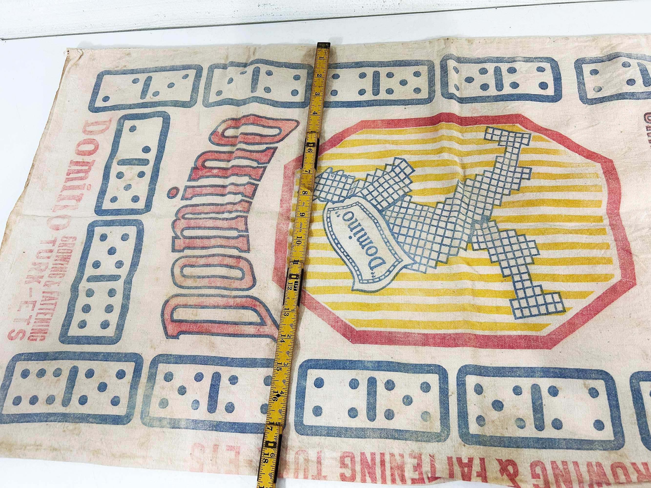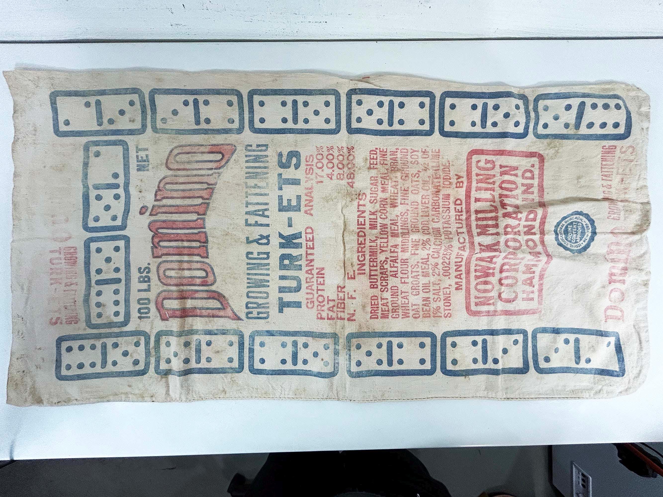 Very cool large cotton feed sack. Incredible branding and graphics! It is showing all over wear including stains and a few tears but it is still a very unique piece of history. It is approximately 36 inches long and 18 1/2 inches wide.