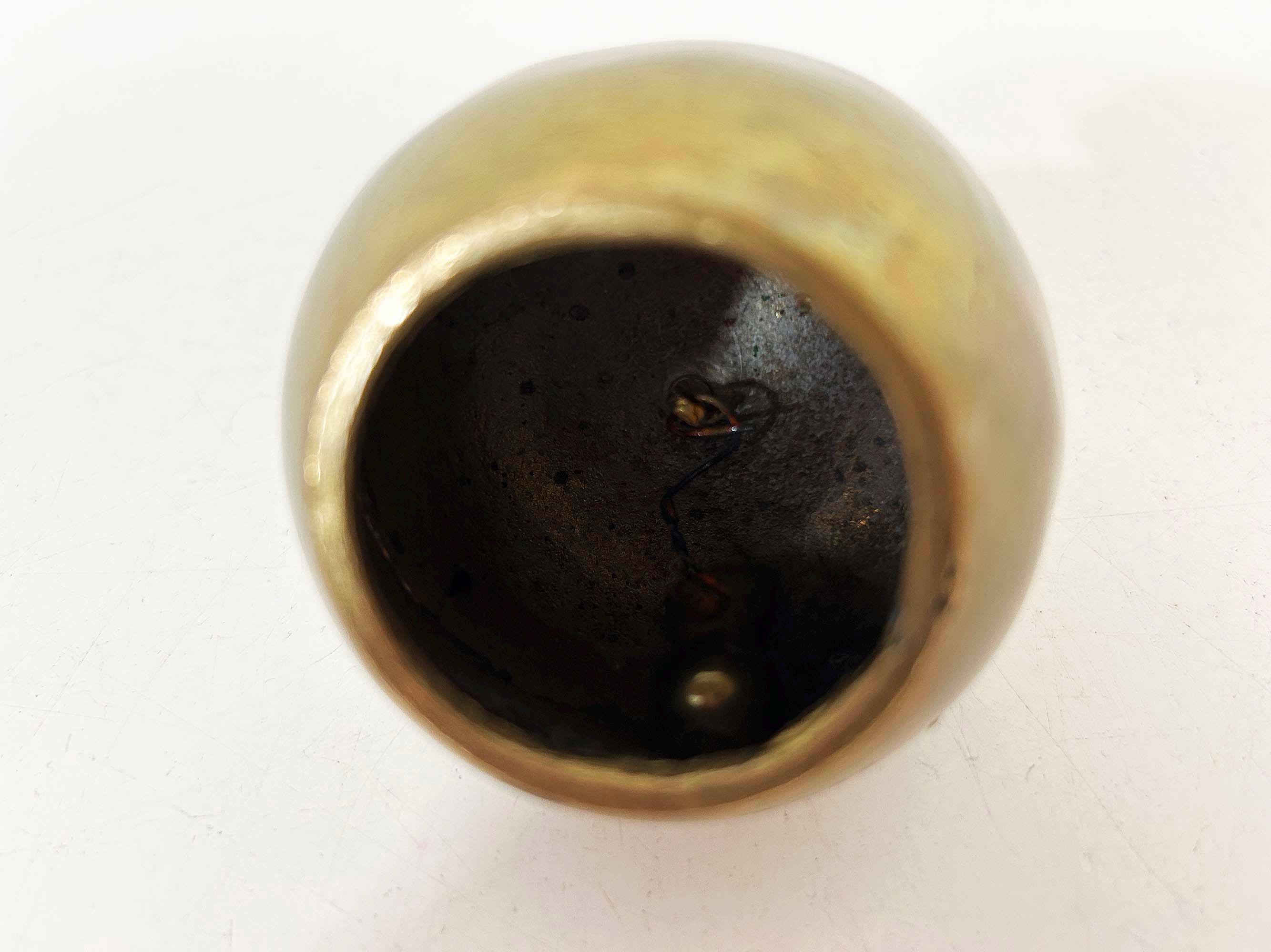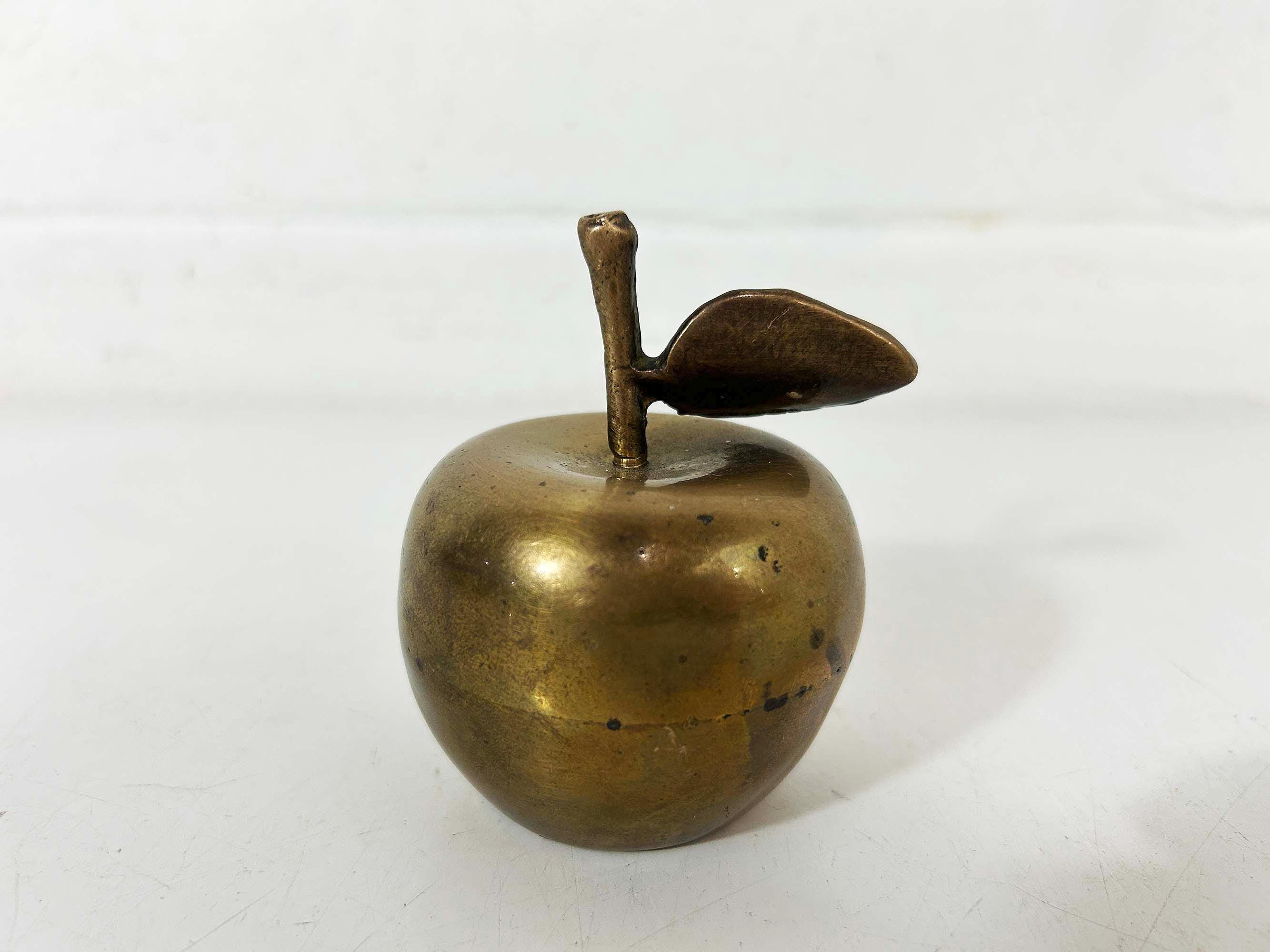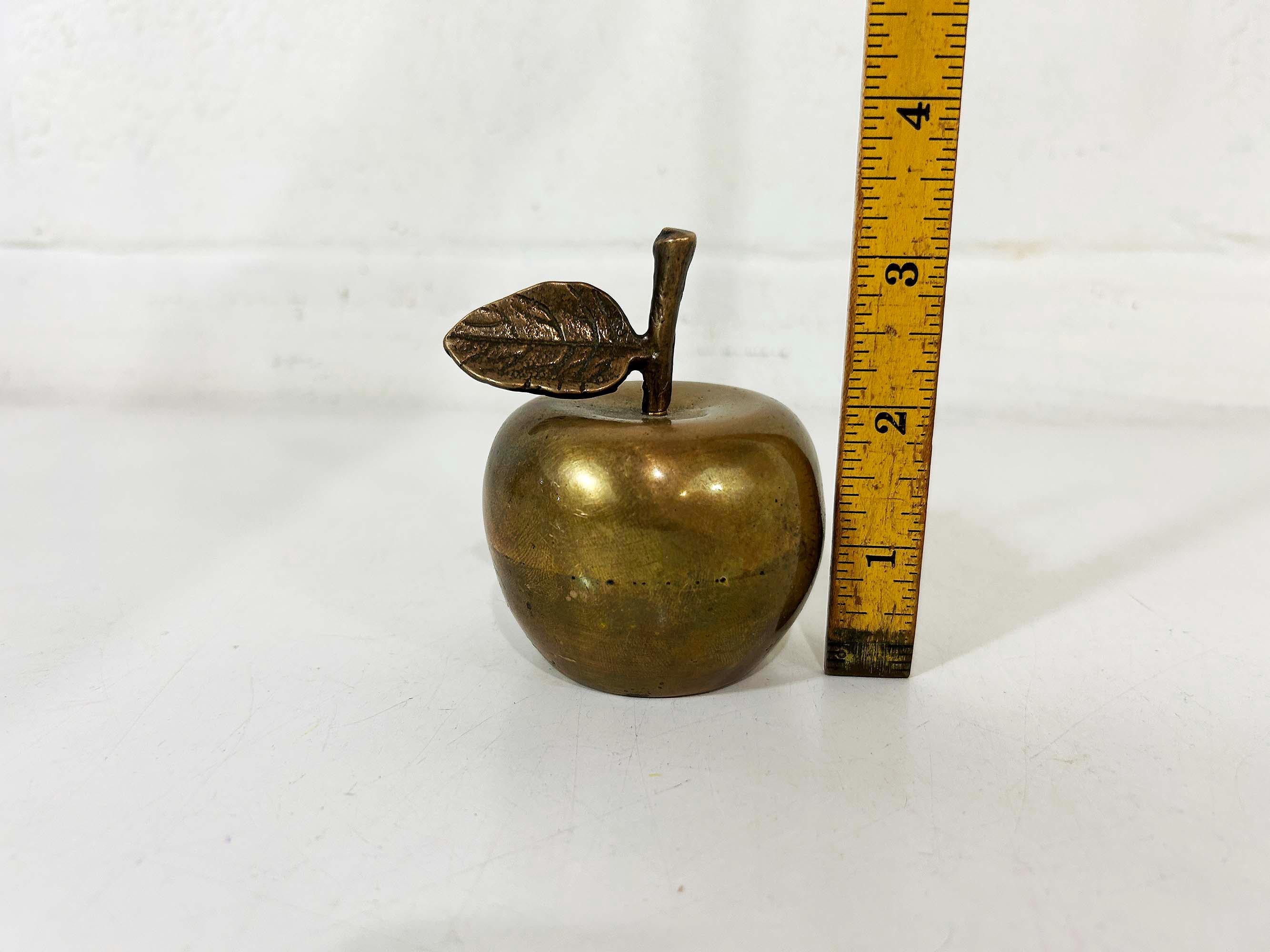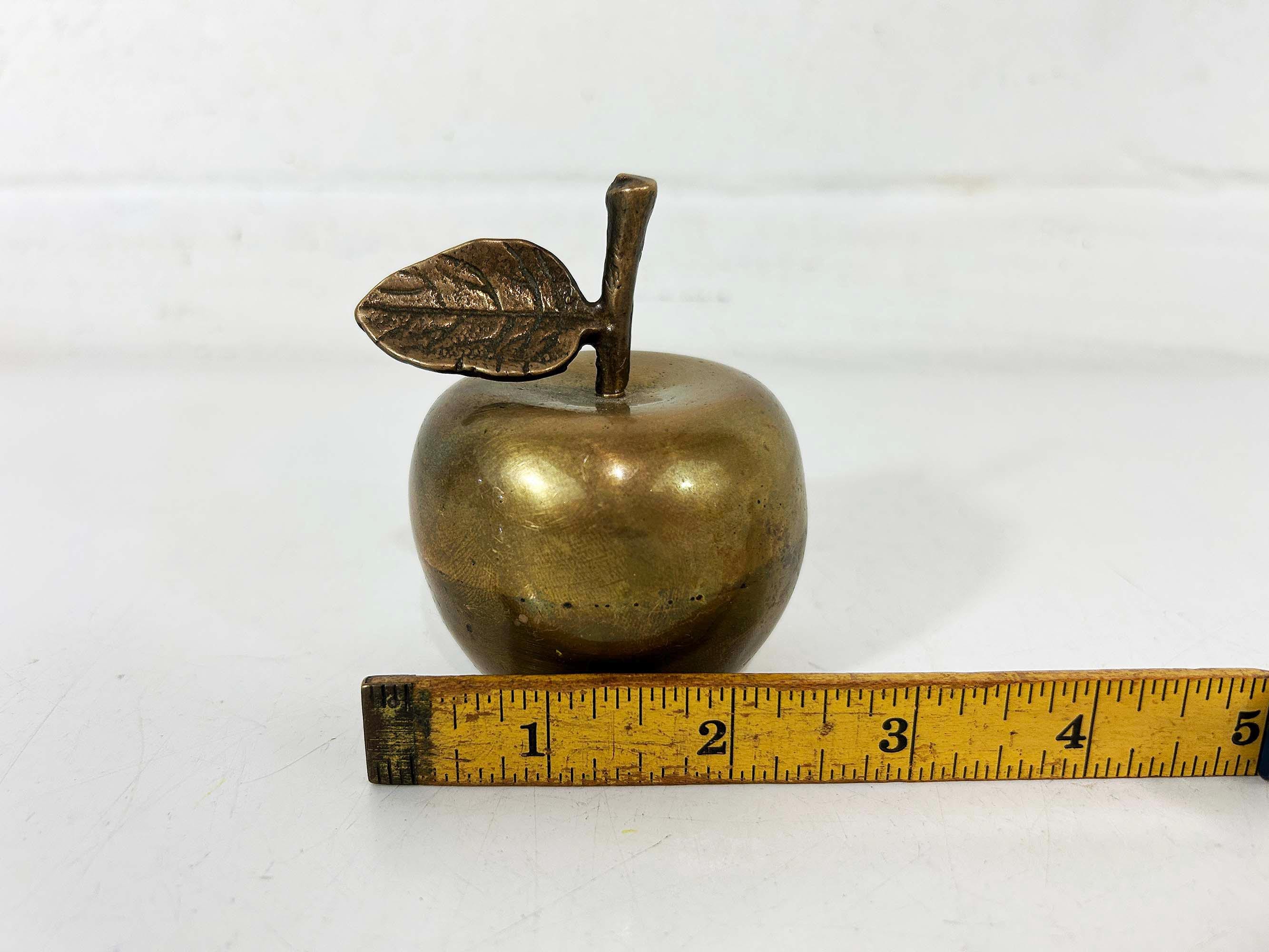 Lovely brass apple bell! It still rings well. The apple is about 2 1/2 inches wide and 3 inches tall in great vintage condition.