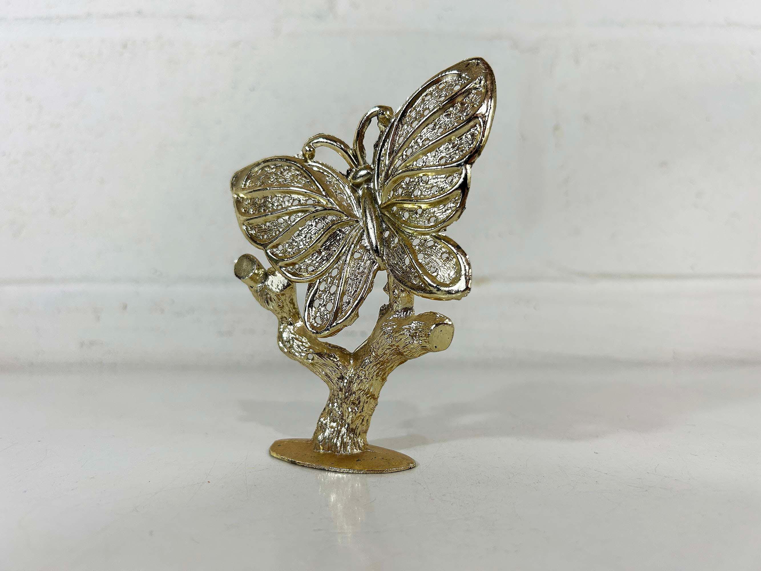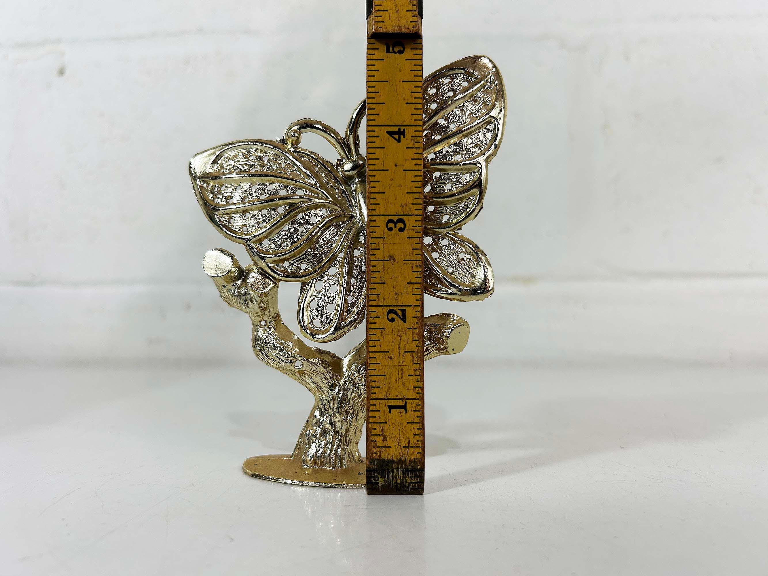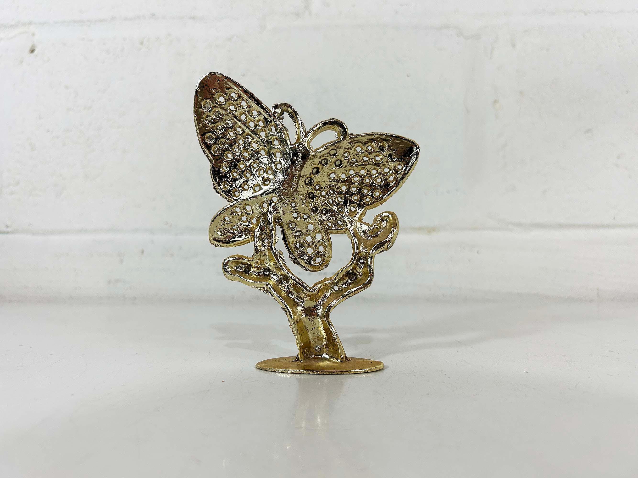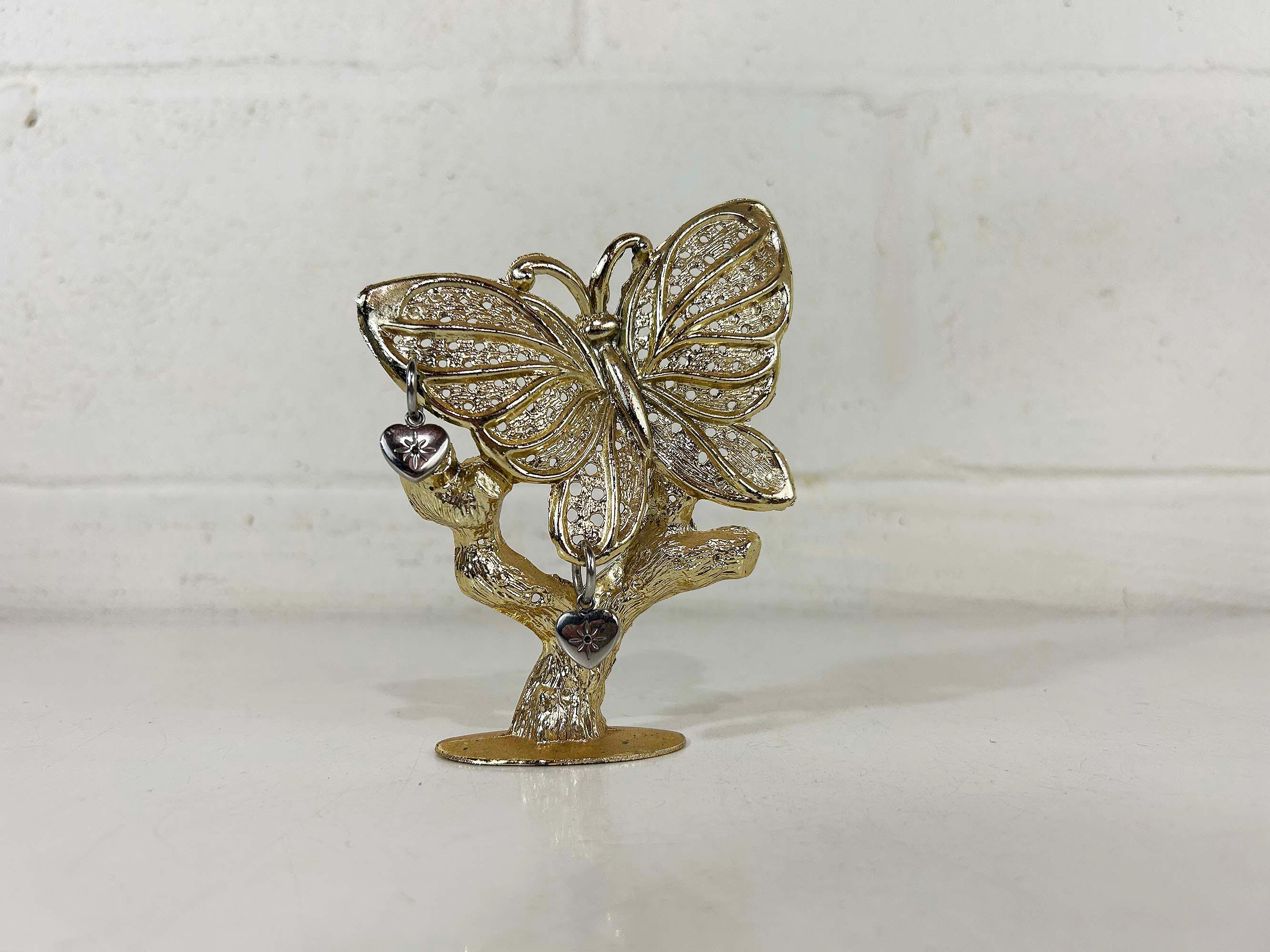 The cutest vintage butterfly golden metal earring holder! Perfect addition to your vintage vanity to display your earrings. It is in great vintage condition with a bit of peeling to the gold color at the base - please be sure to inspect all photos. The organizer is 5 inches tall and 2 inches wide at the base.