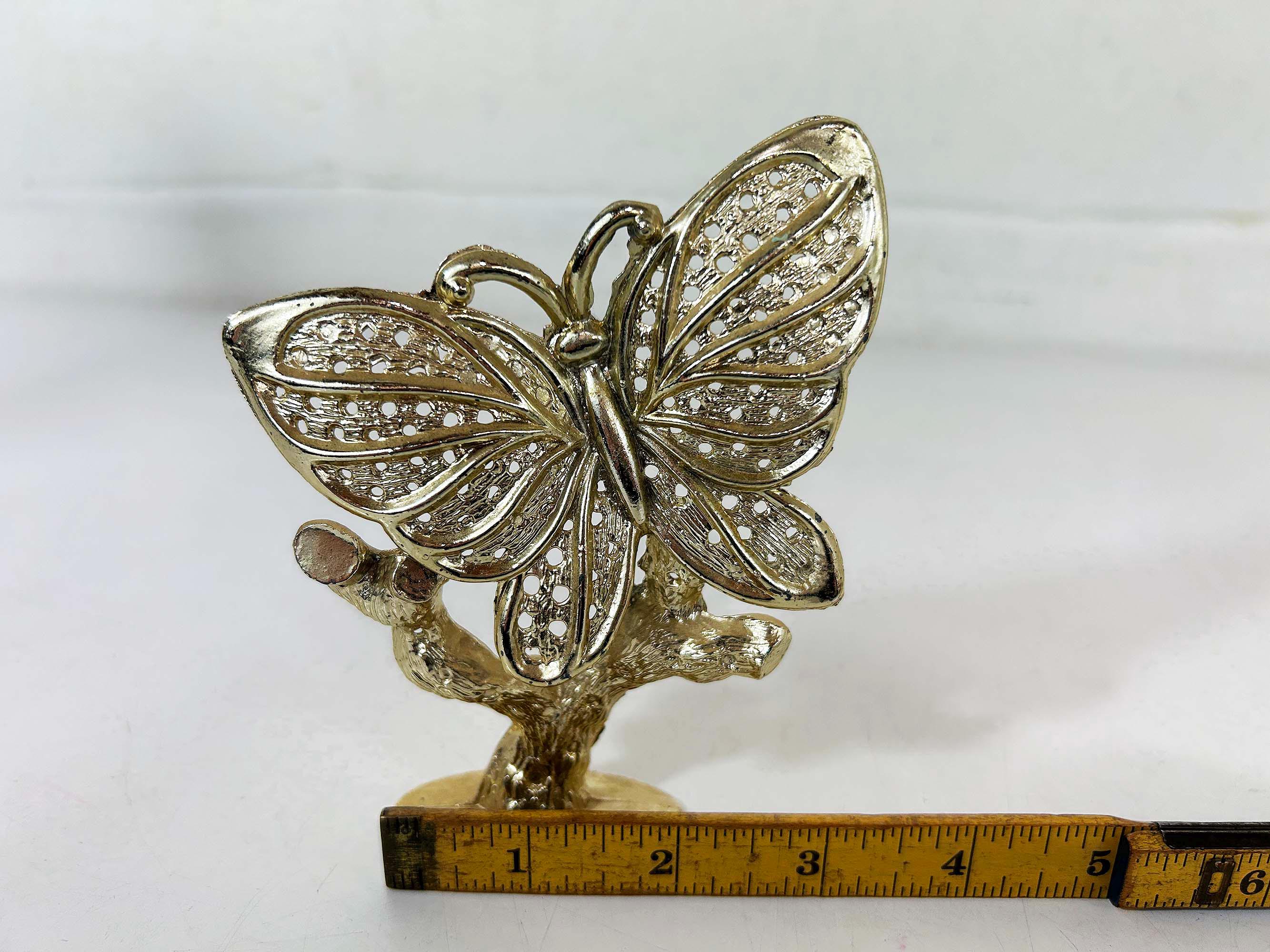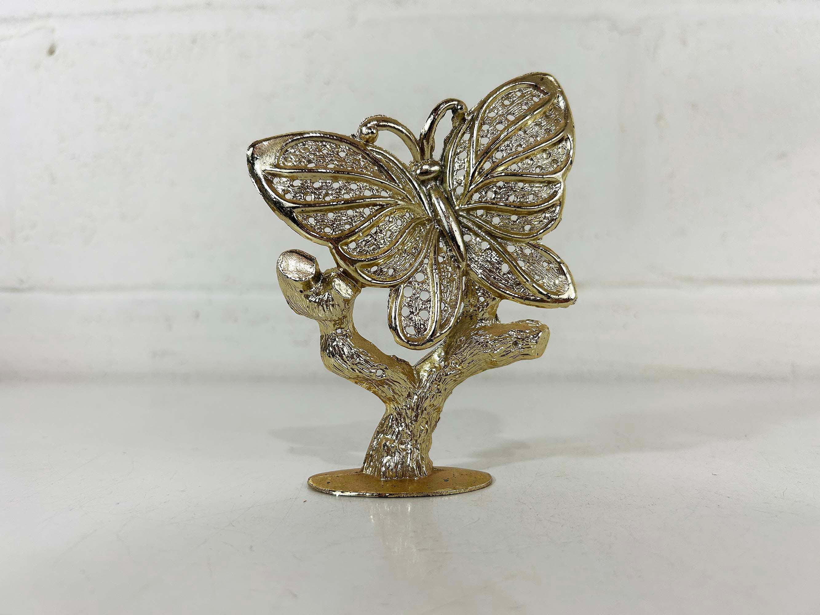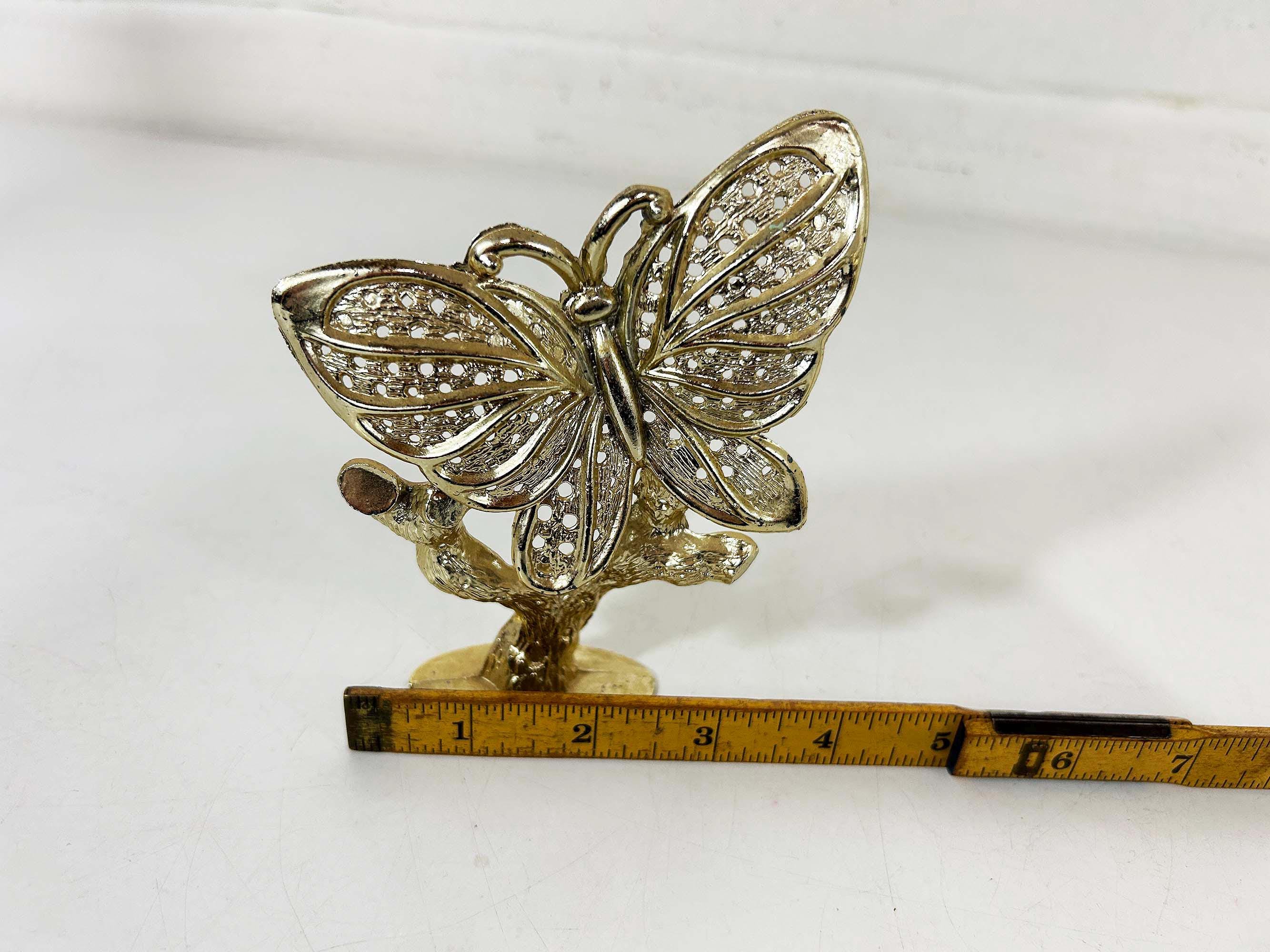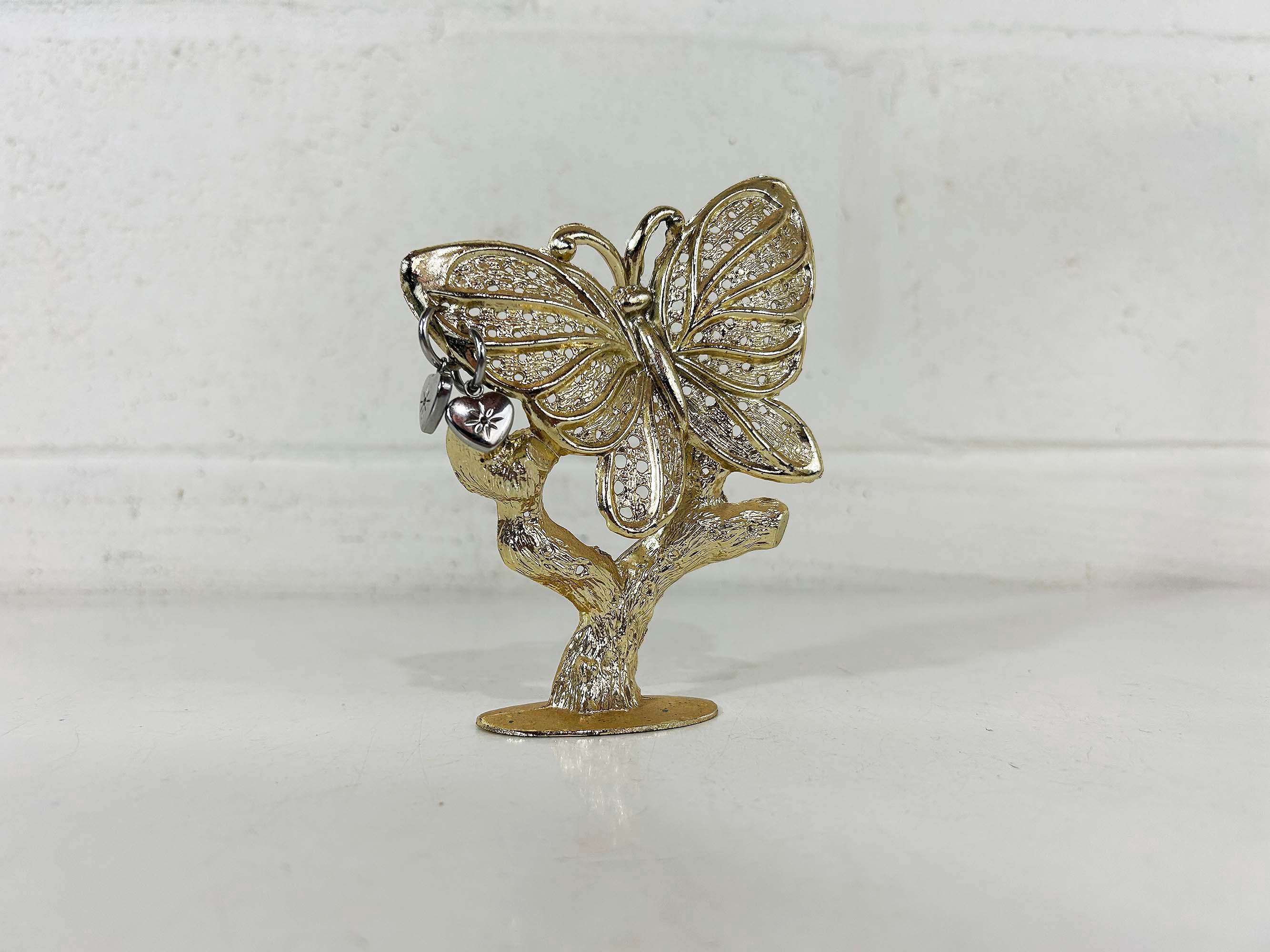 The cutest vintage butterfly golden metal earring holder! Perfect addition to your vintage vanity to display your earrings. It is in great vintage condition with a bit of peeling to the gold color at the base - please be sure to inspect all photos. The organizer is 5 inches tall and 2 inches wide at the base.