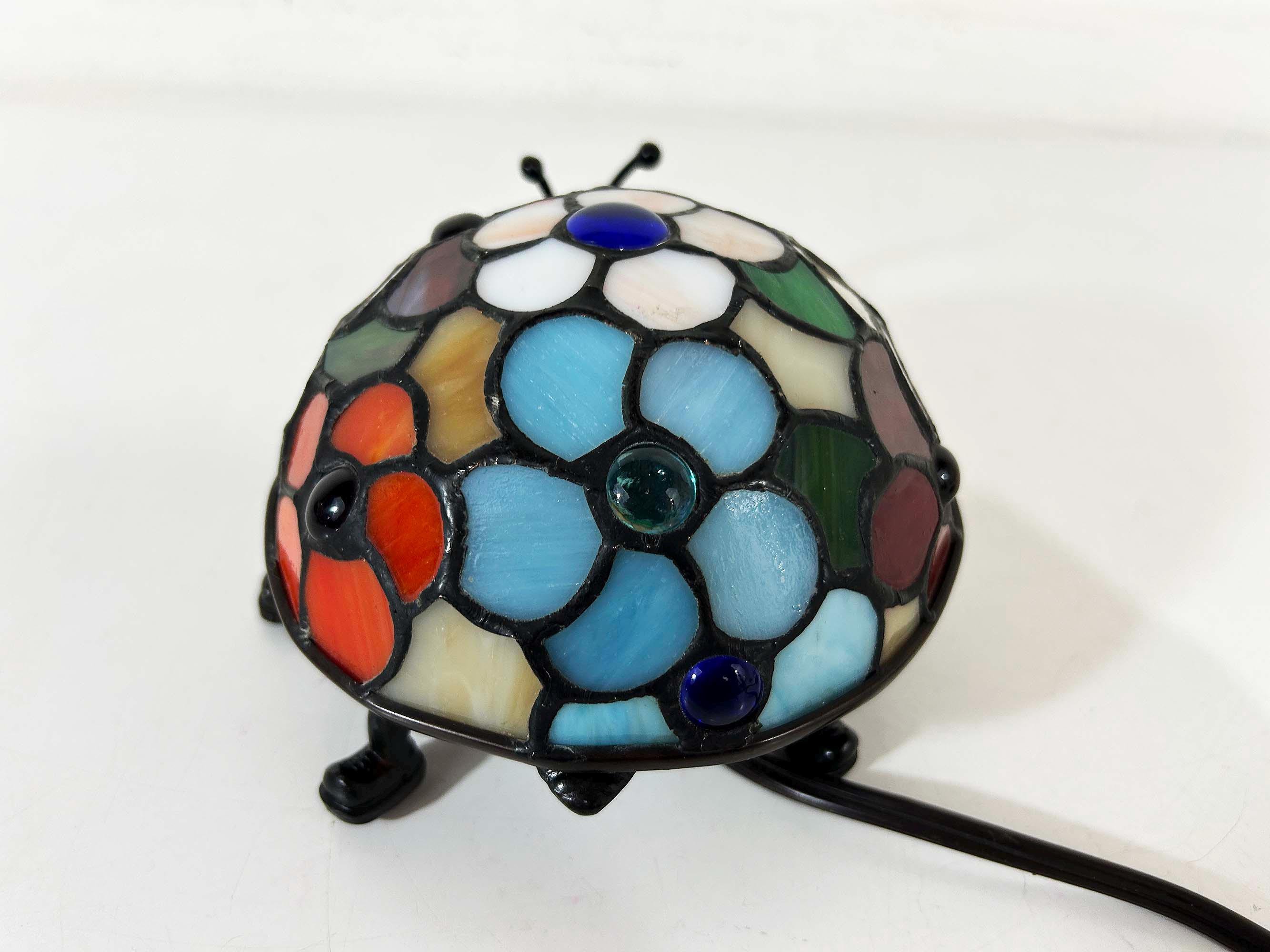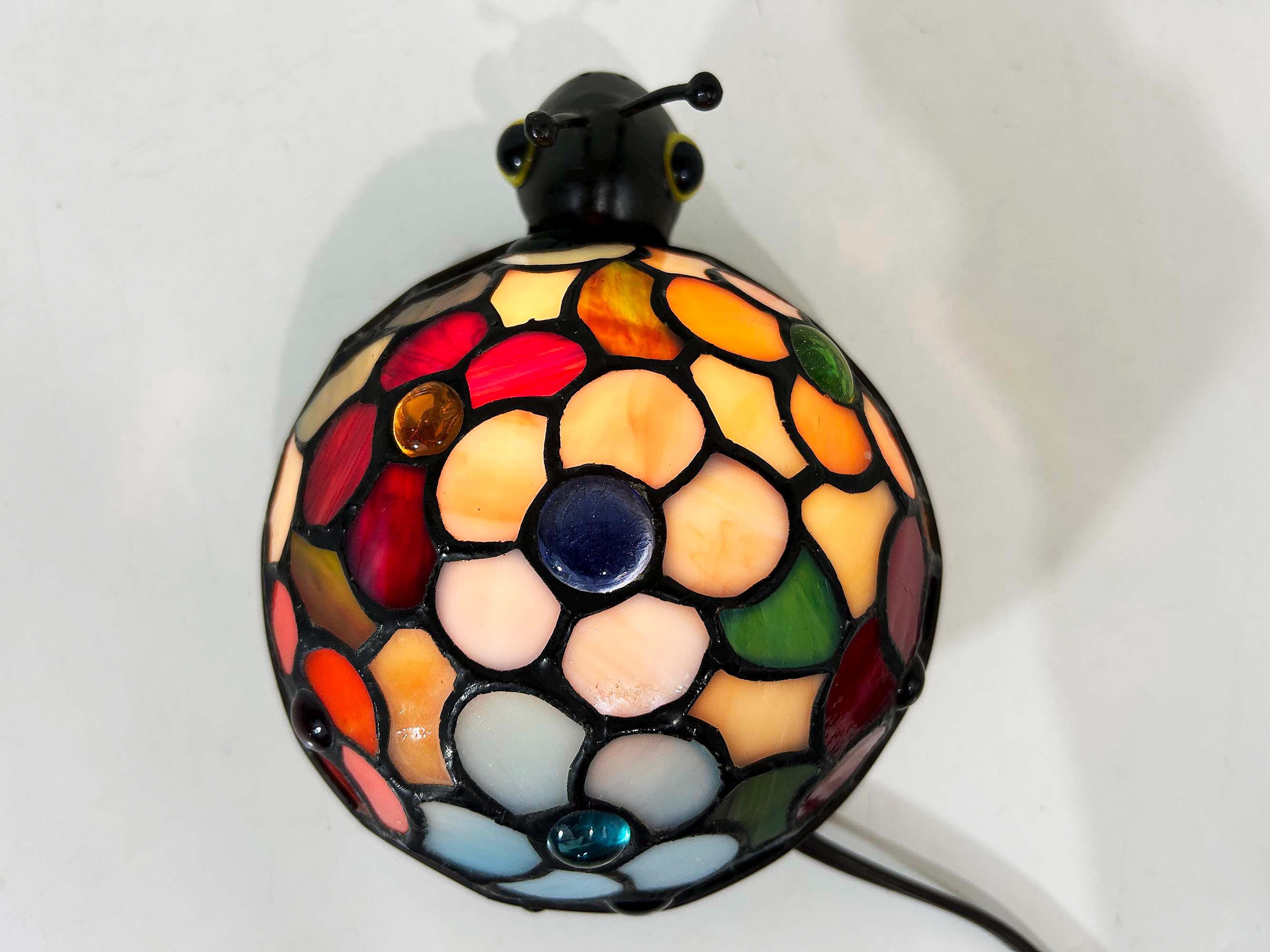 Amazing colorful ladybug table lamp! It is in great, working condition, ready to be used in your home! The lamp is approximately 4 inches tall and 5 inches in diameter at the shade part.