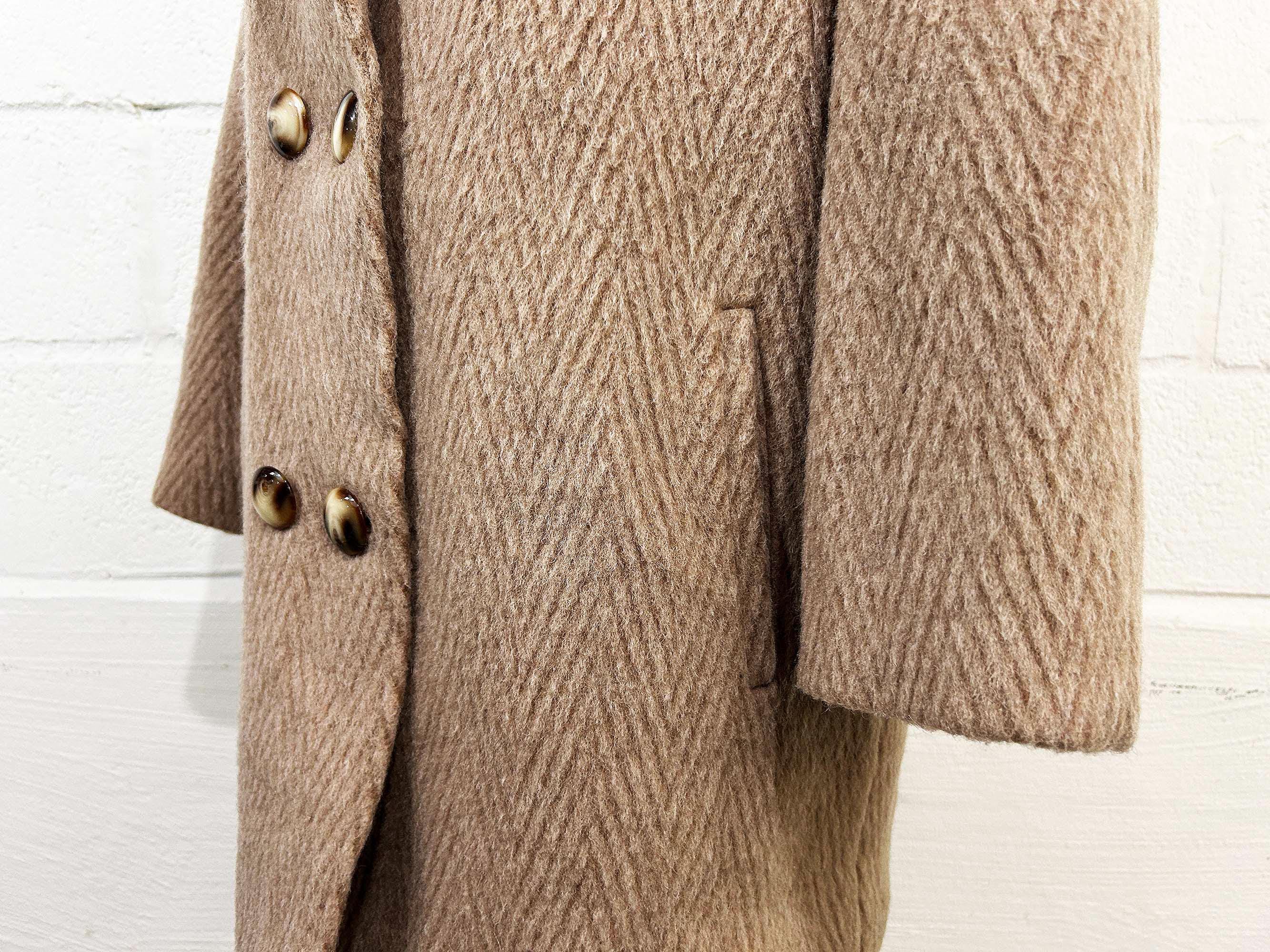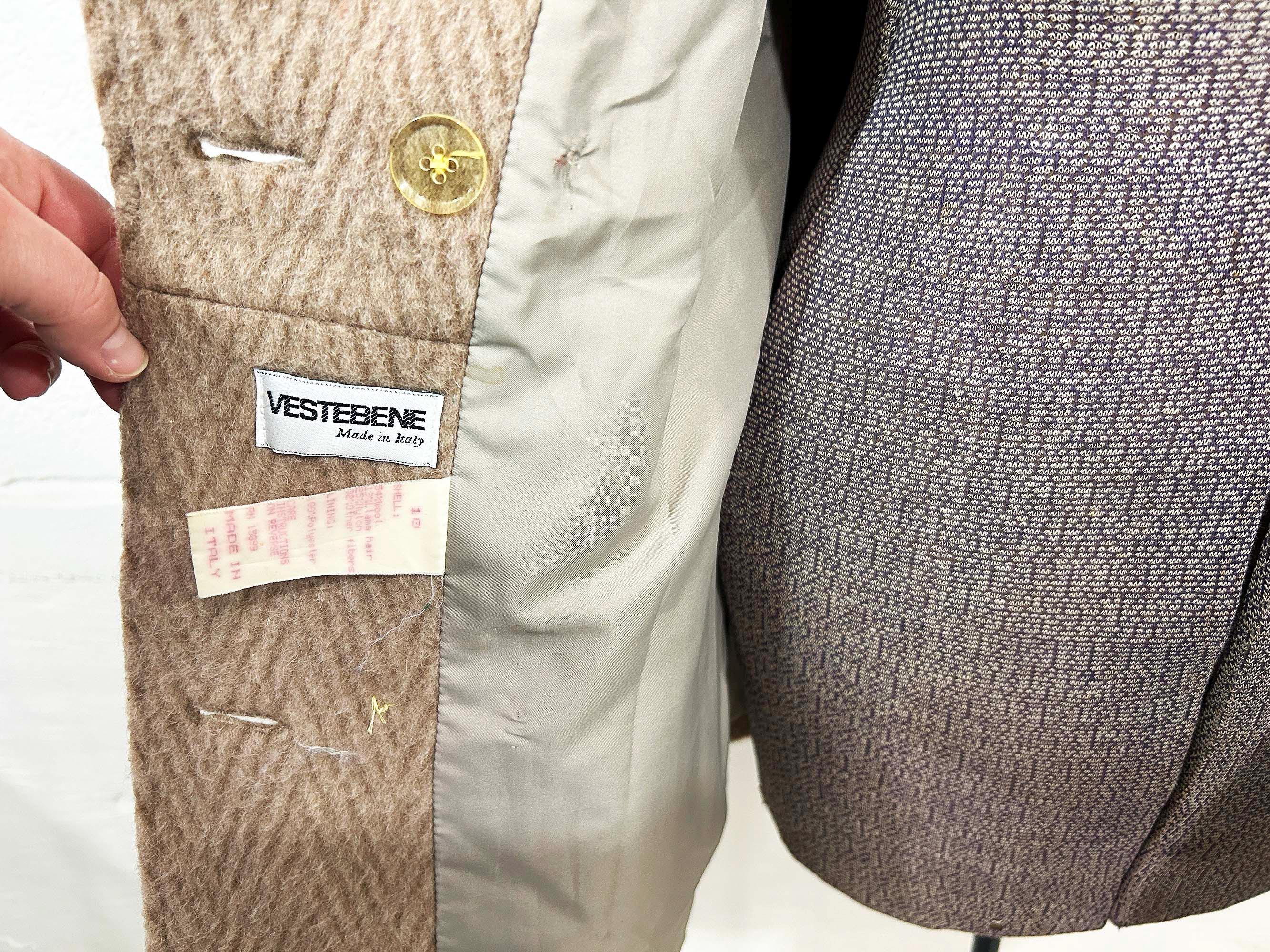Cozy and warm winter Vestebene Italian-made coat. There are 2 front pockets and a button front. Coat is in good shape with a satin lining. Wool-blend fabric has NO stretch and the coat has a boxy cut.