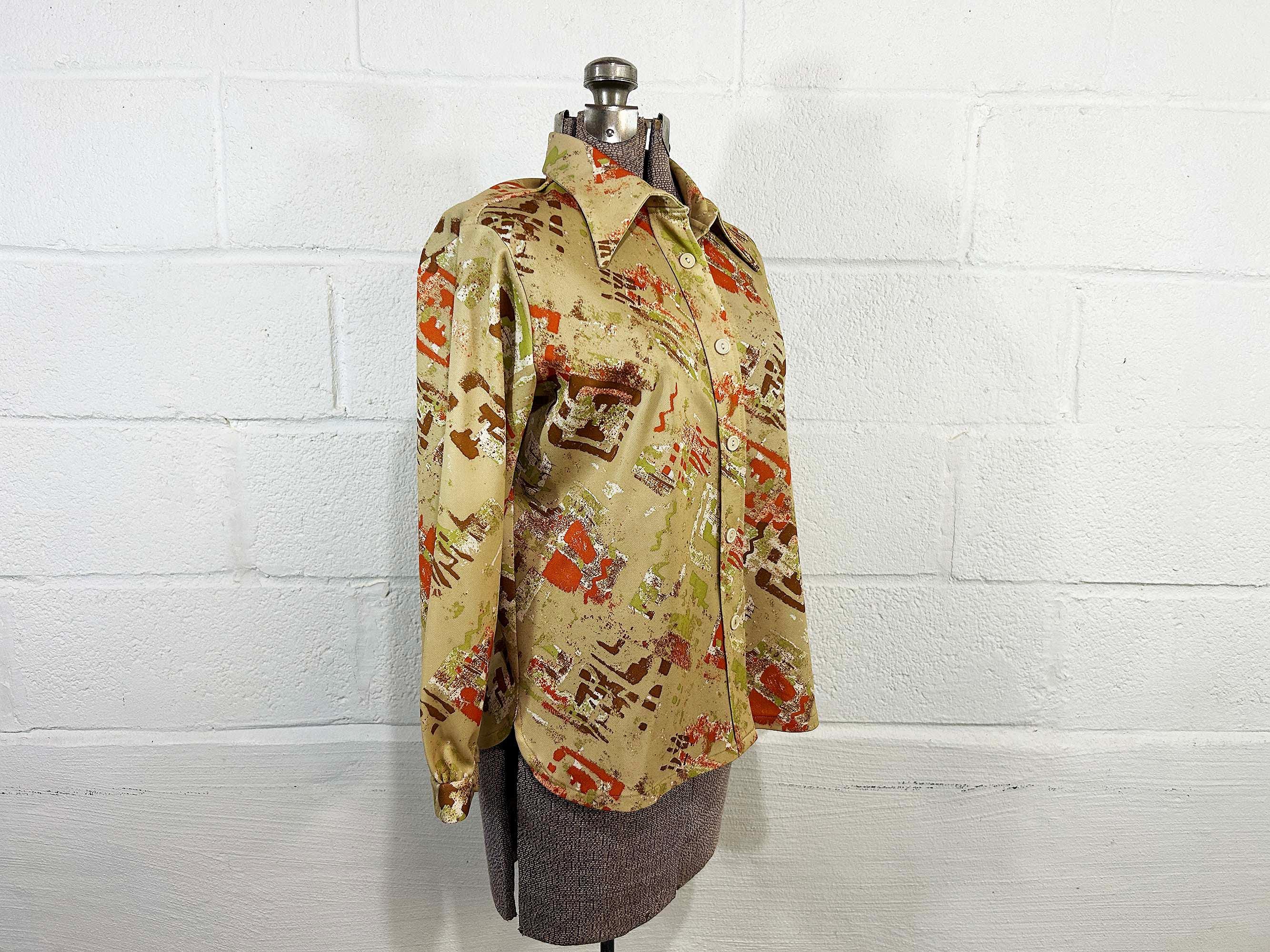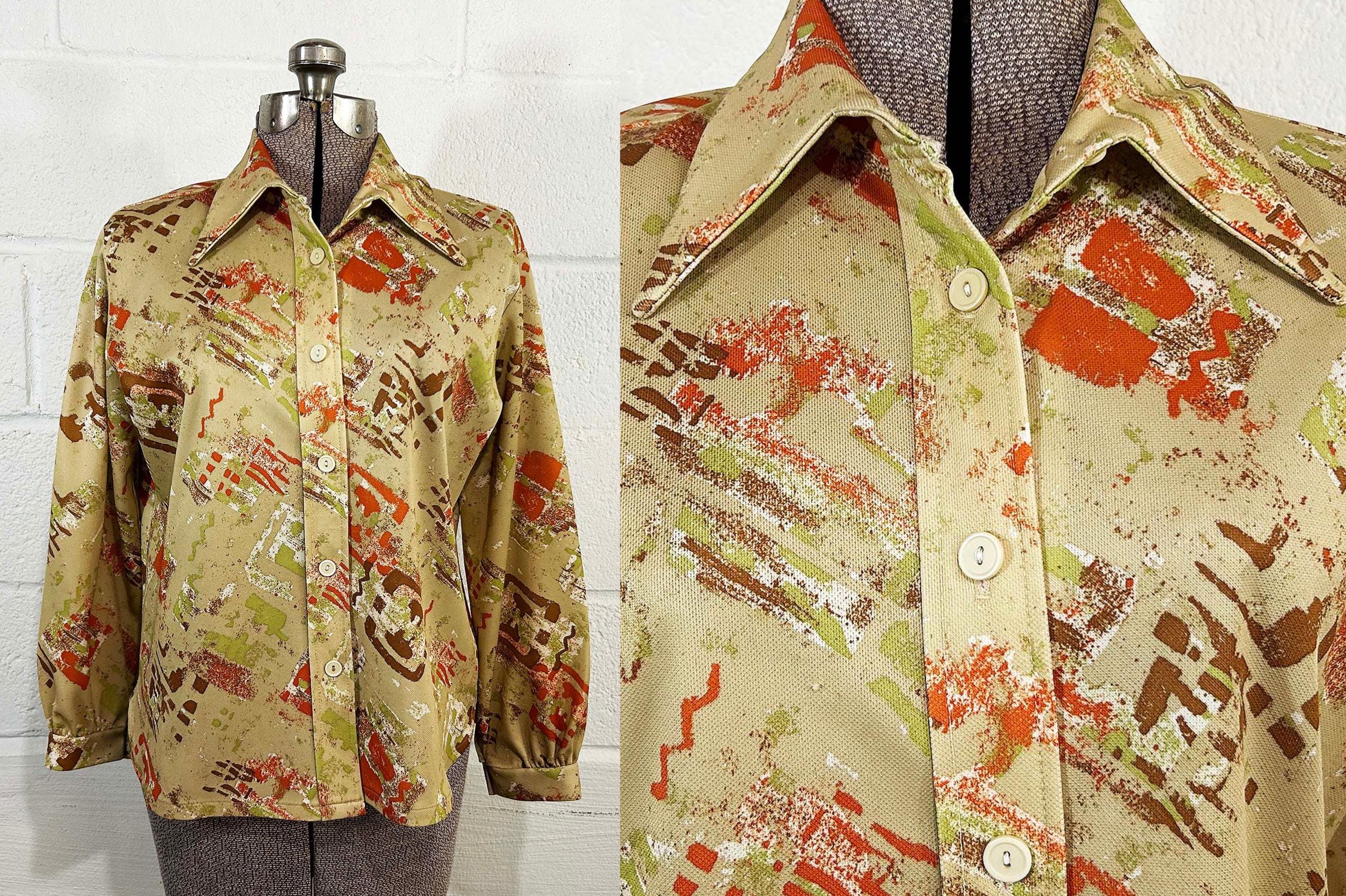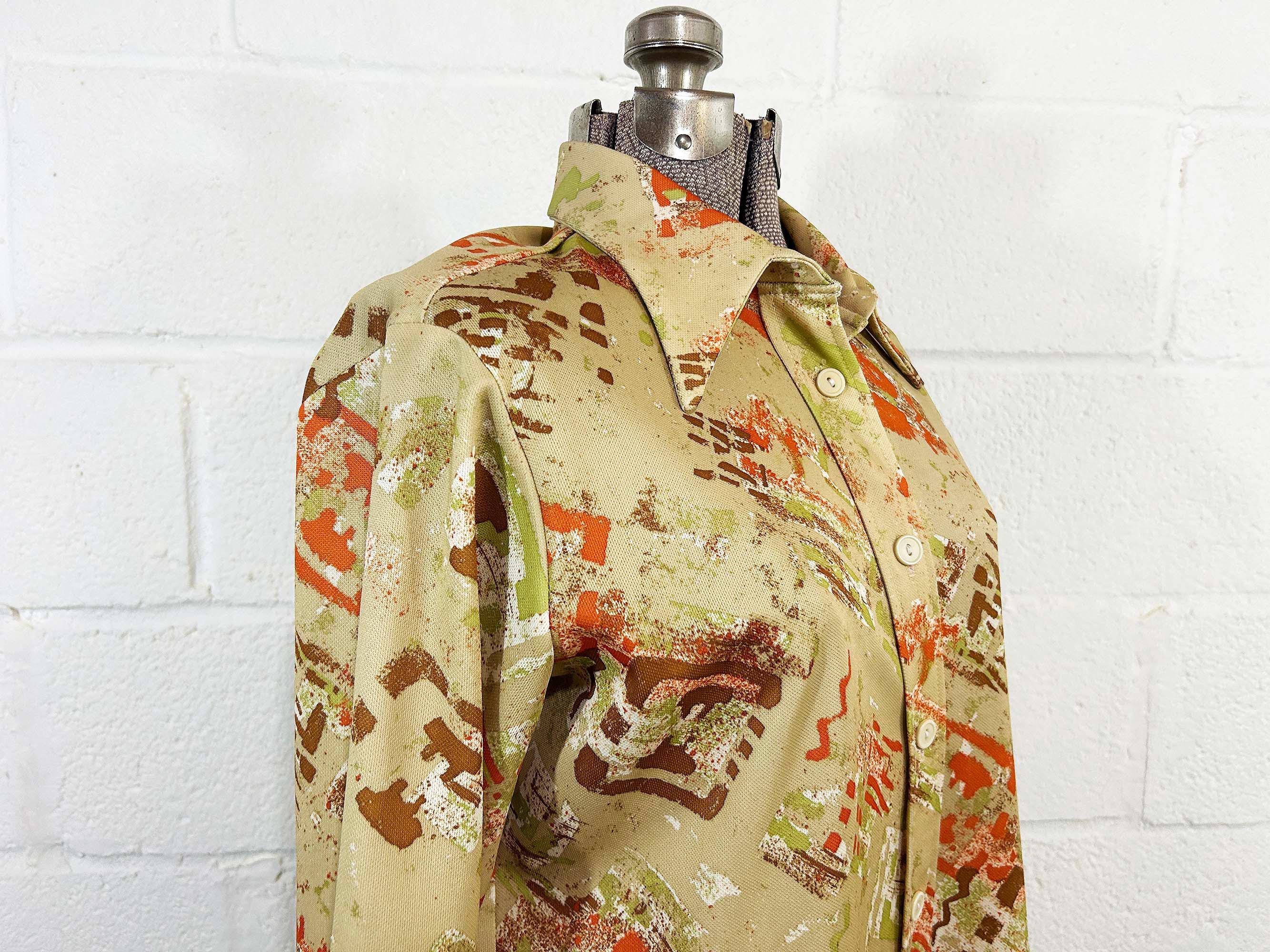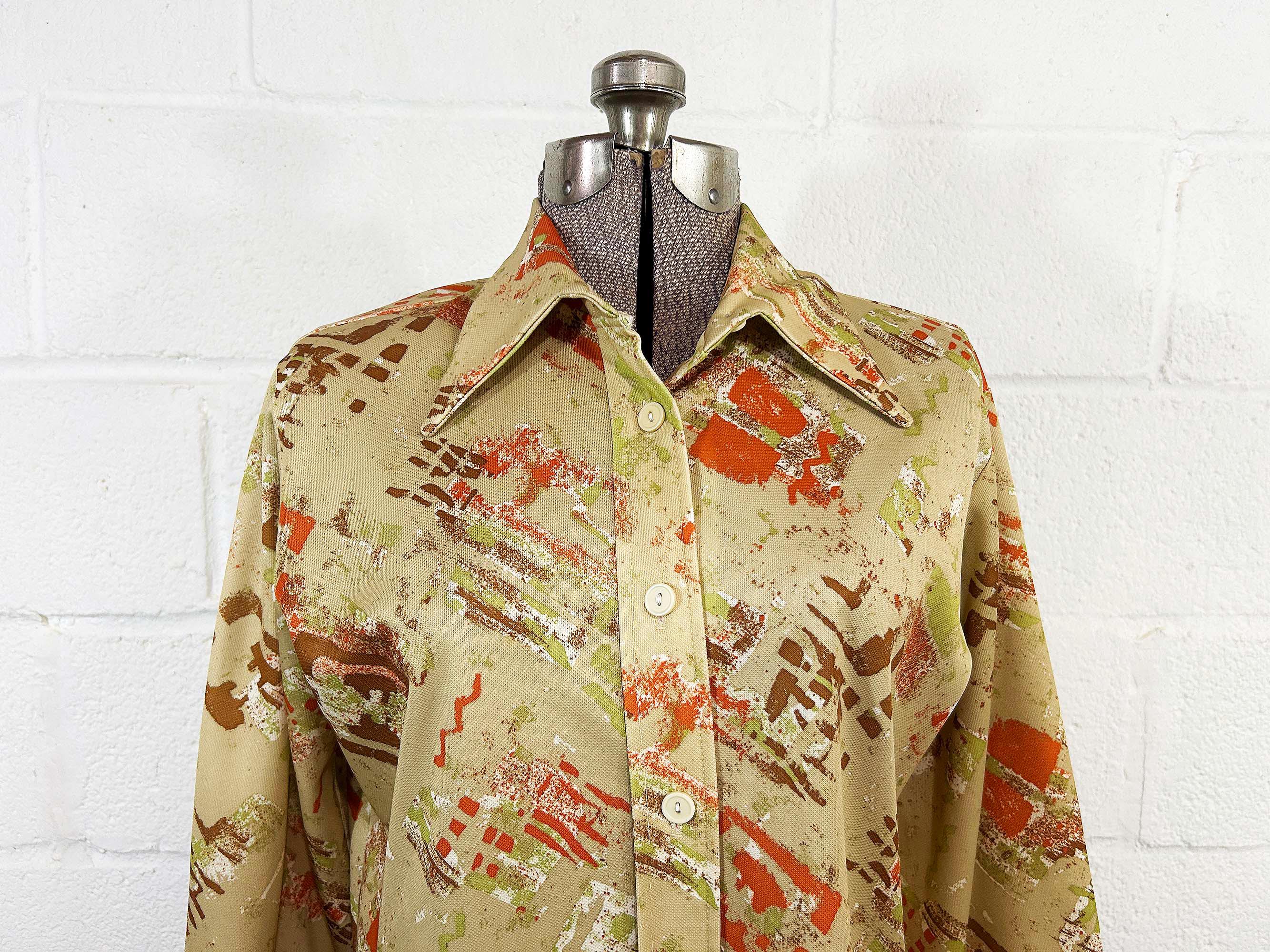 Vintage 1970s peachy-pink plaid button front shirt long sleeves. In good condition with some snags in the fabric - please be sure to inspect all photos closely. Fabric has slight stretch.