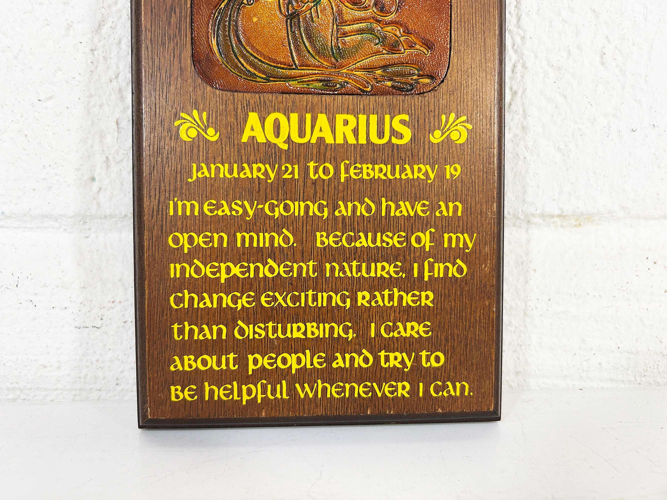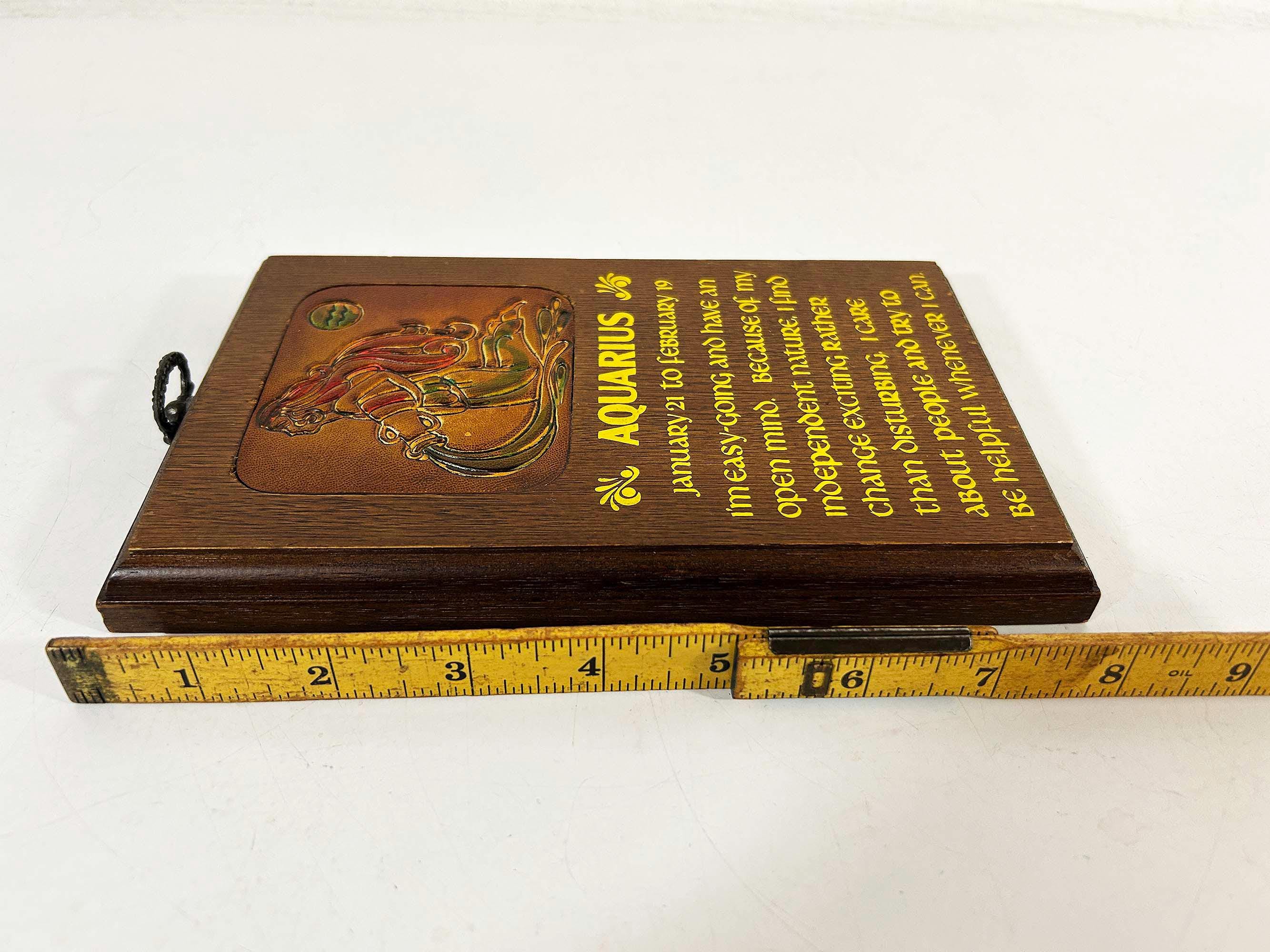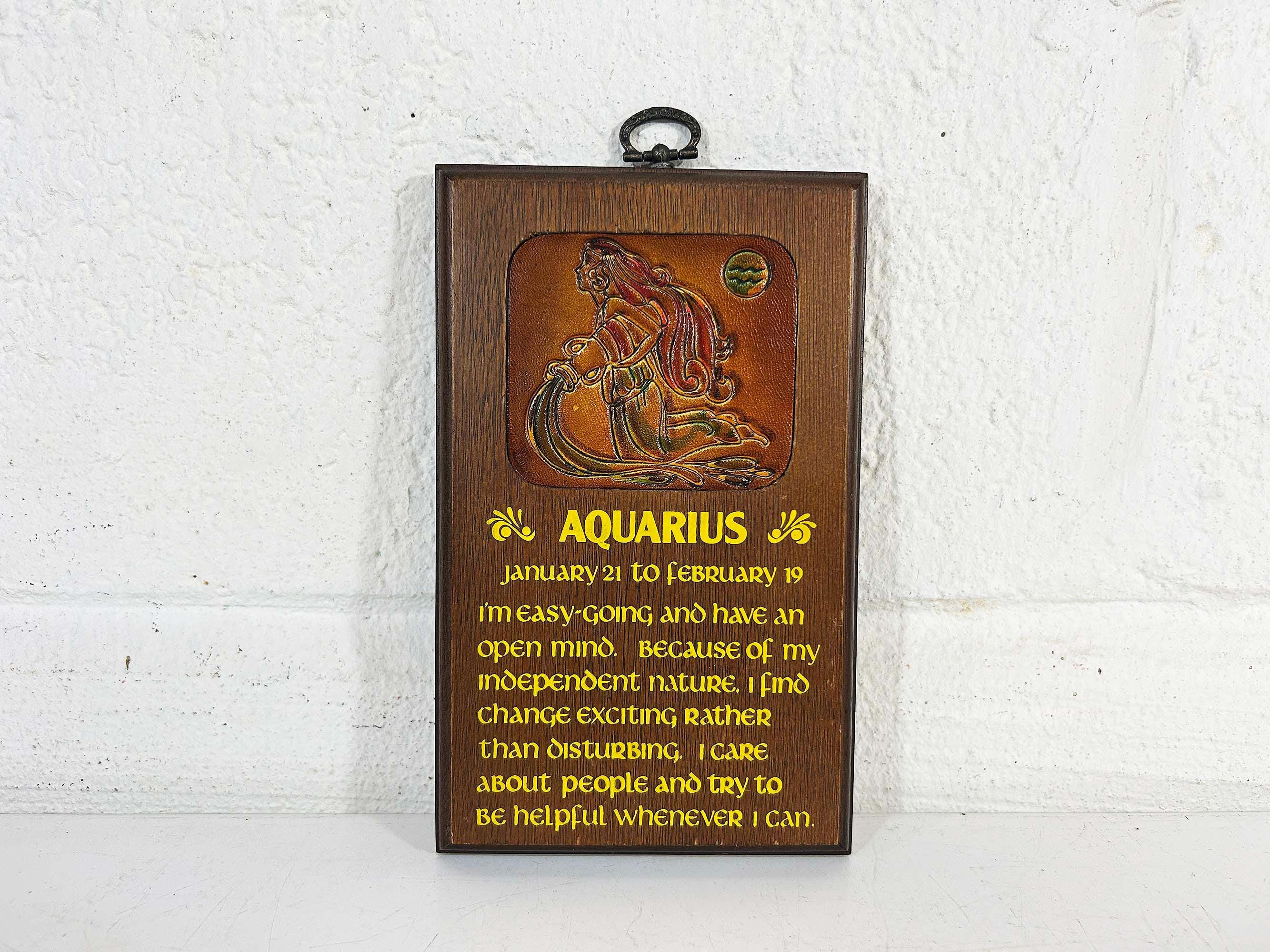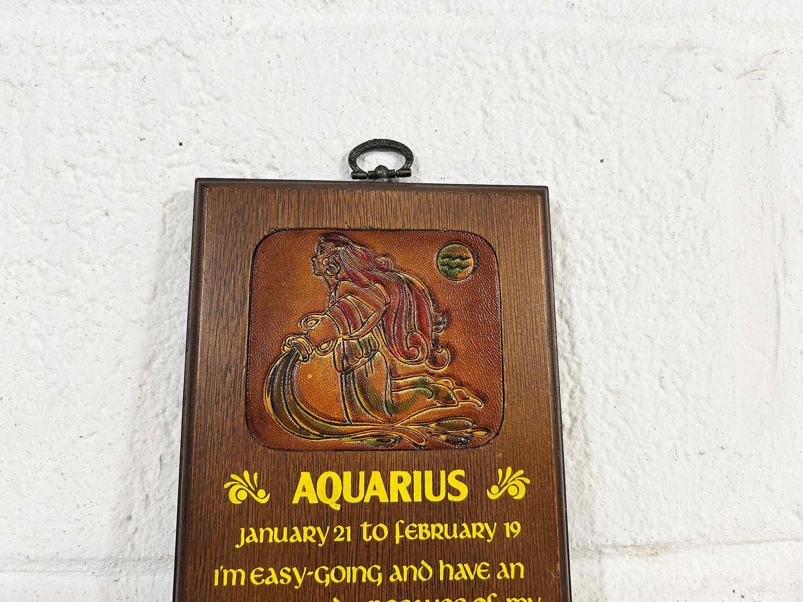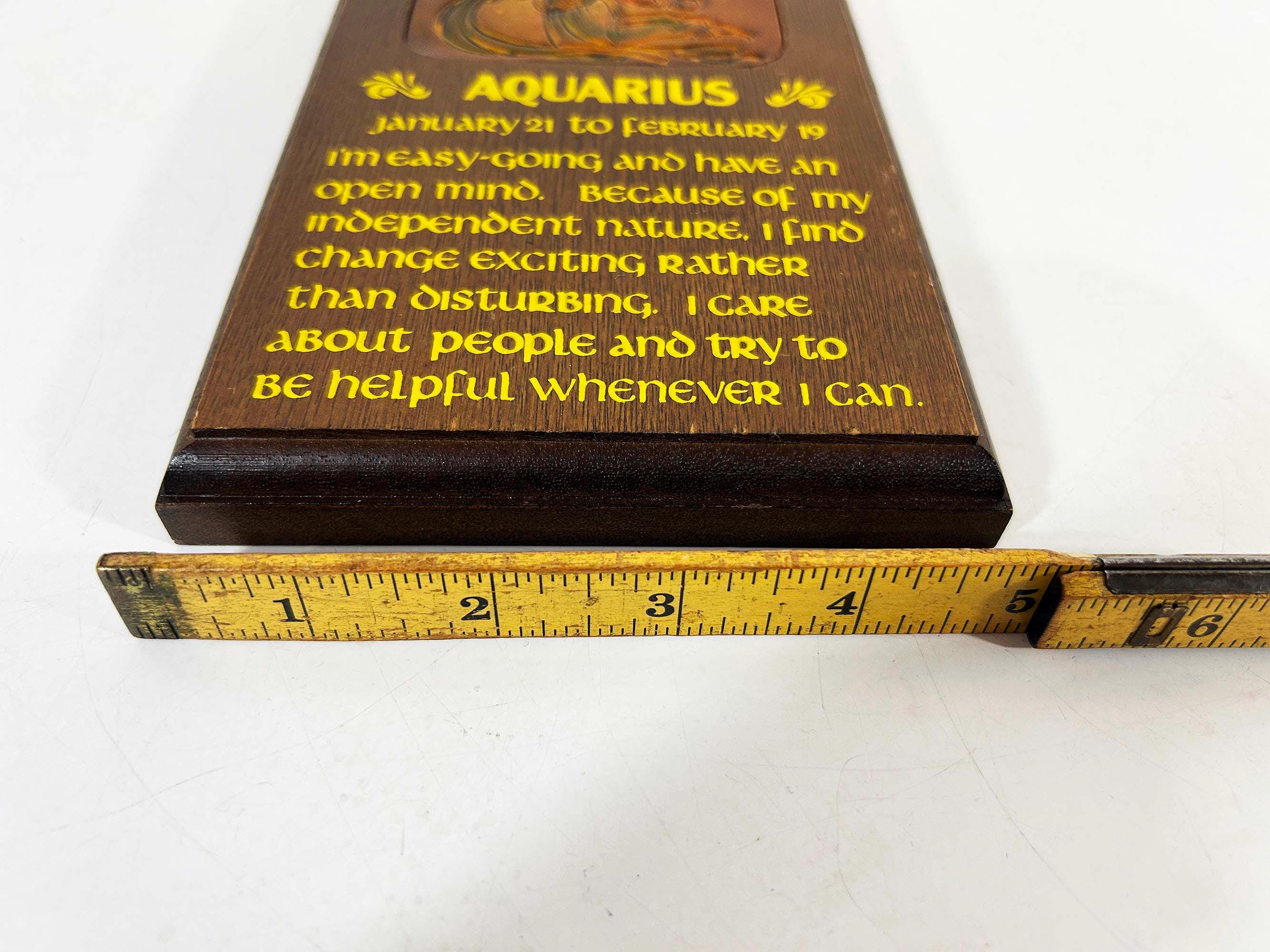 Super cool vintage Aquarius wooden wall plaque. In good vintage condition with some light scratches and wear - please be sure to inspect all photos closely. The plaque is approximately 8 inches tall and 5 inches wide.
