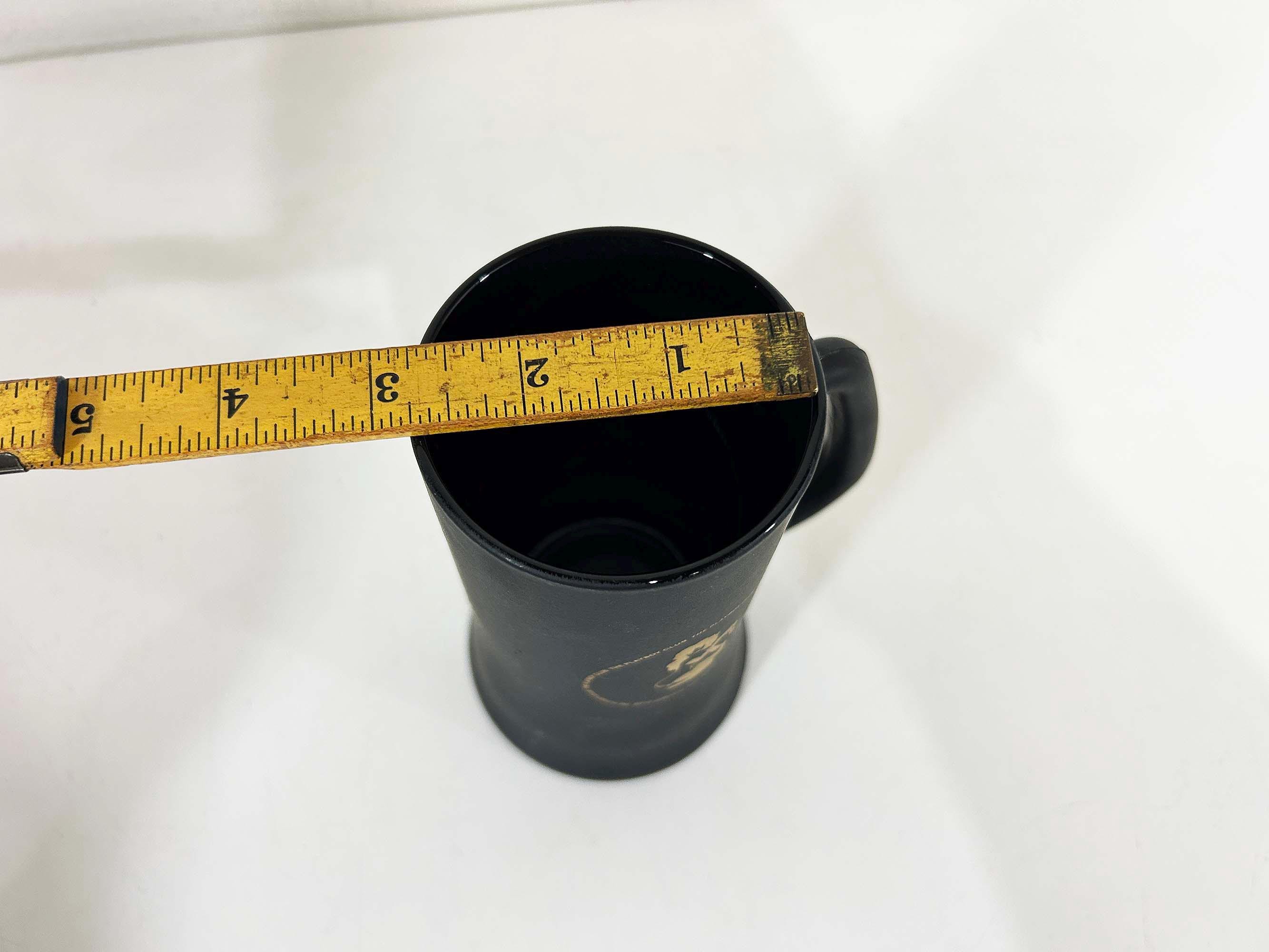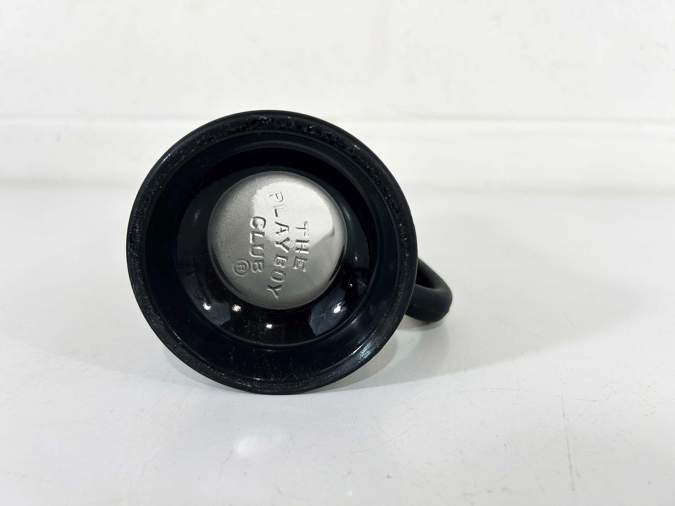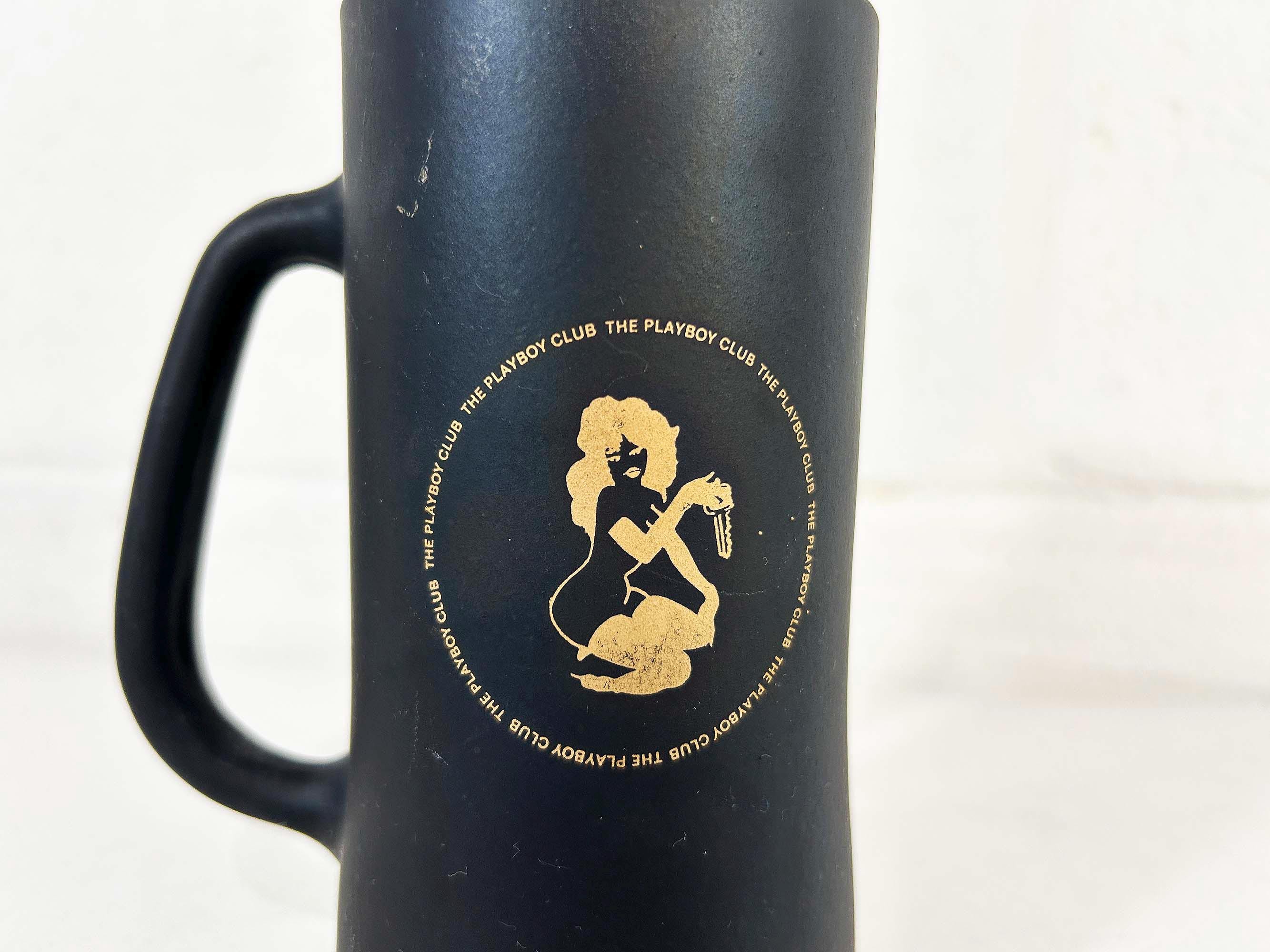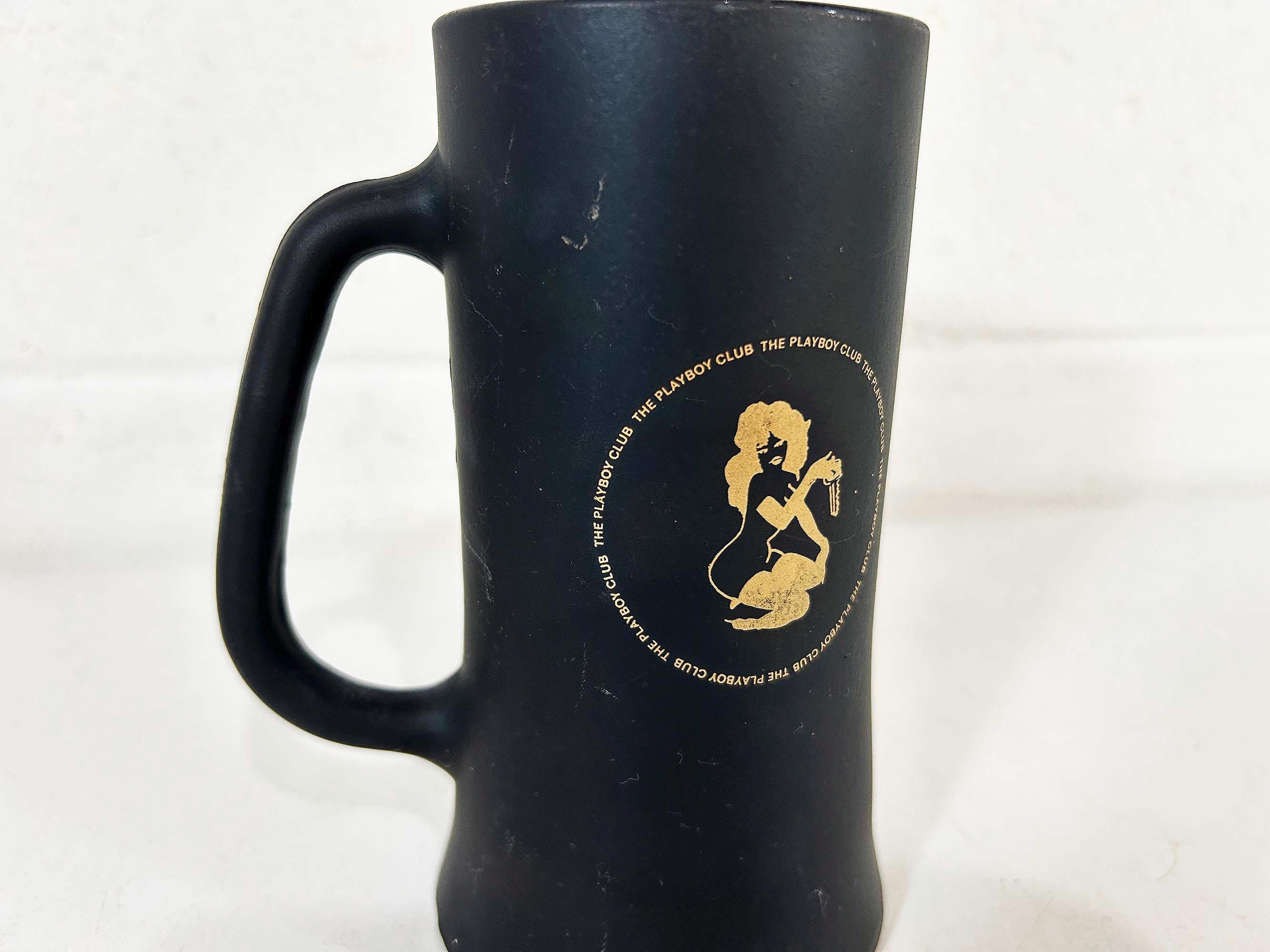 Very cool vintage Playboy tall glass mug. It is in good vintage condition with some scratches and discoloration - please be sure to inspect all photos closely. The mug is approximately inches 6 1/4 inches tall and 2 3/4 inches in diameter at the top. It holds approximately 14 ounces of liquid when filled to the brim.