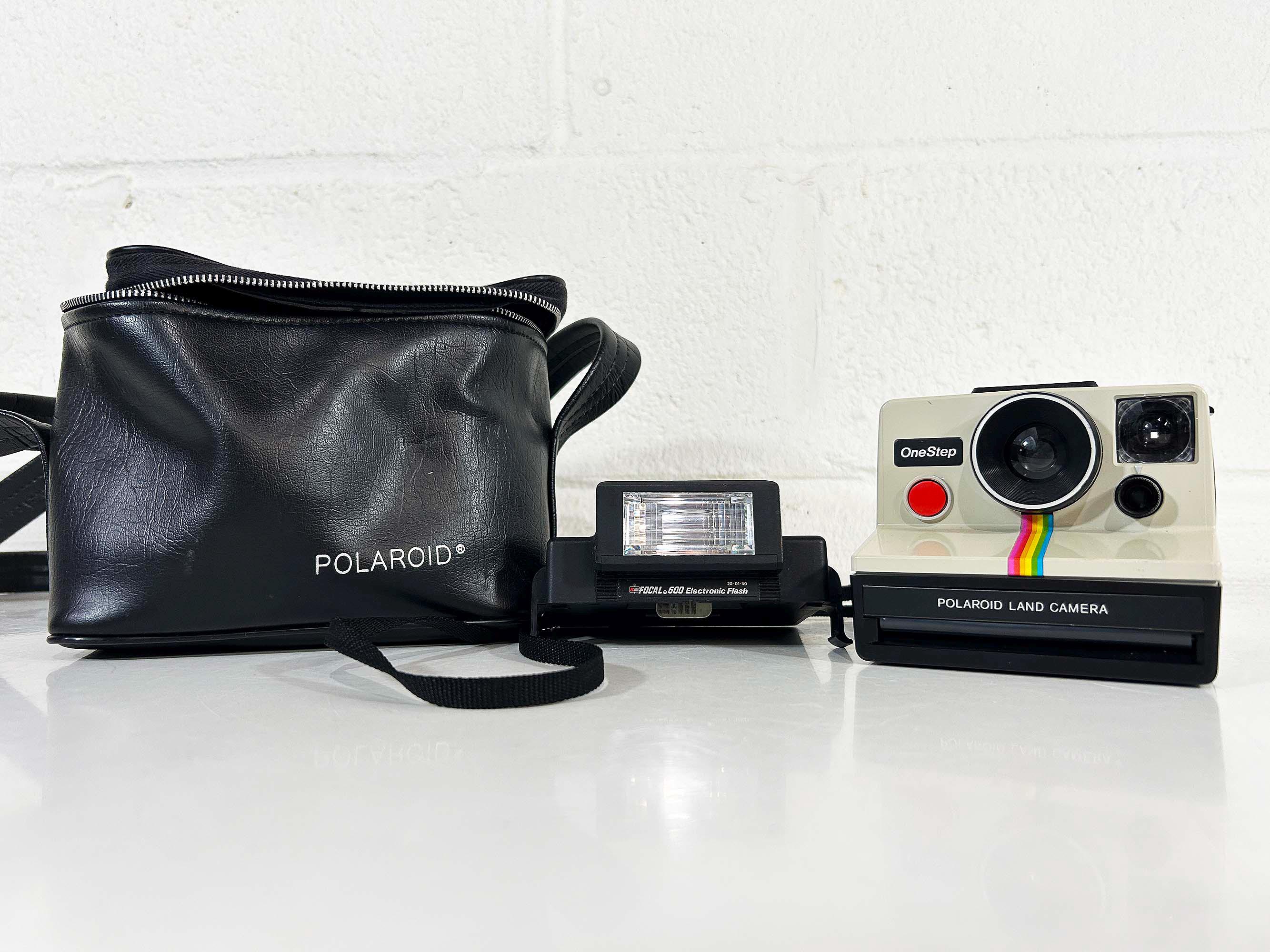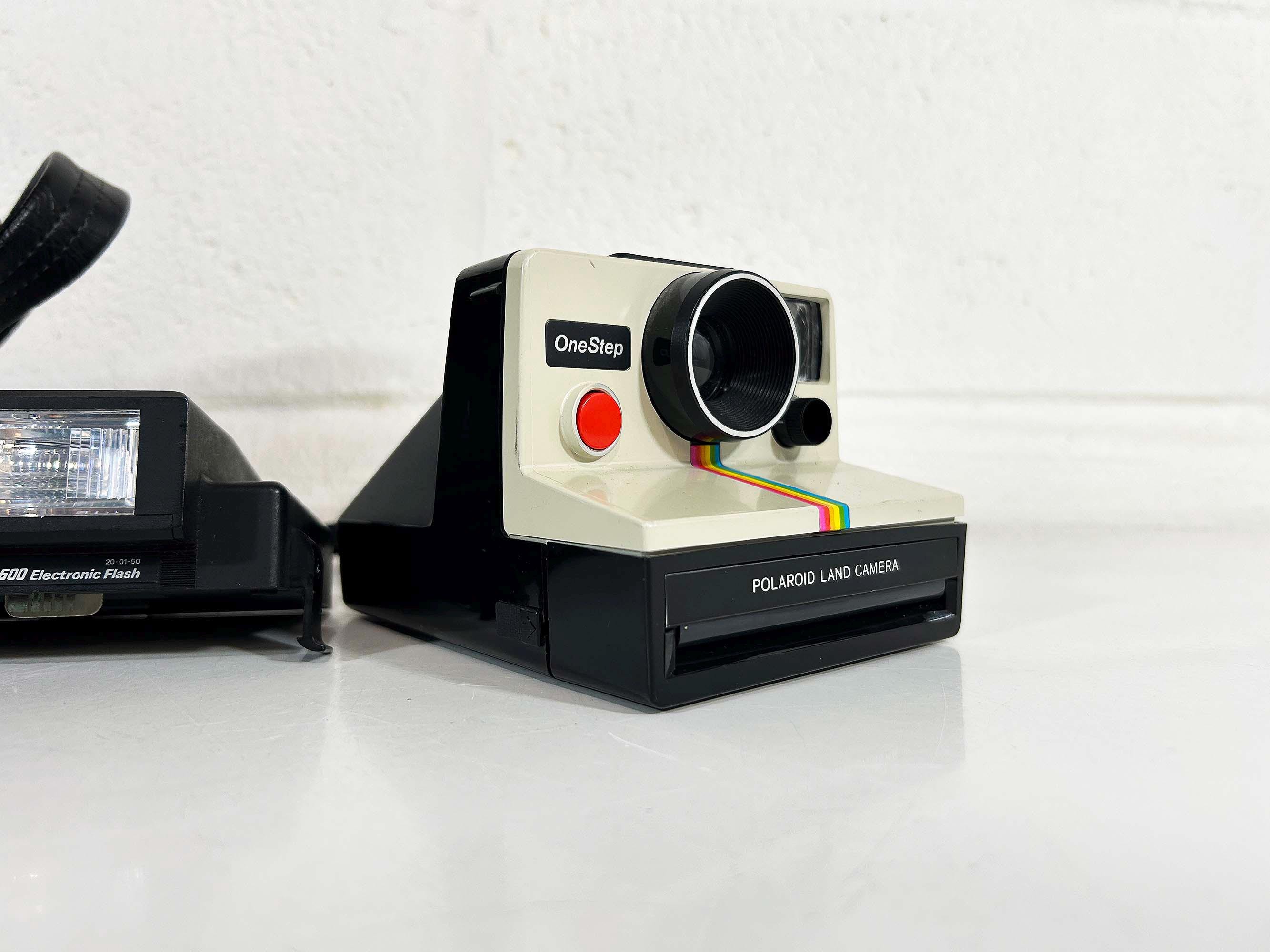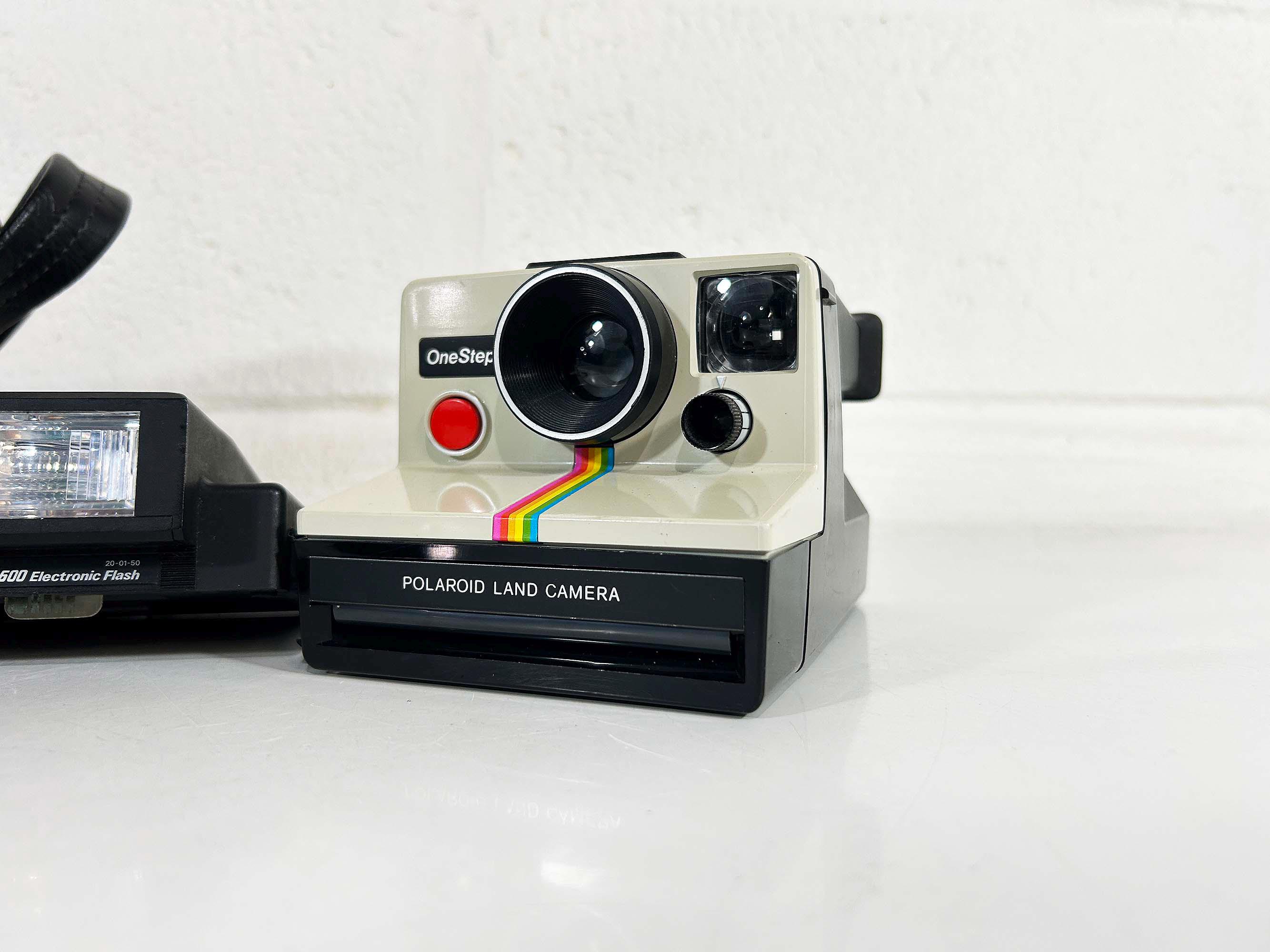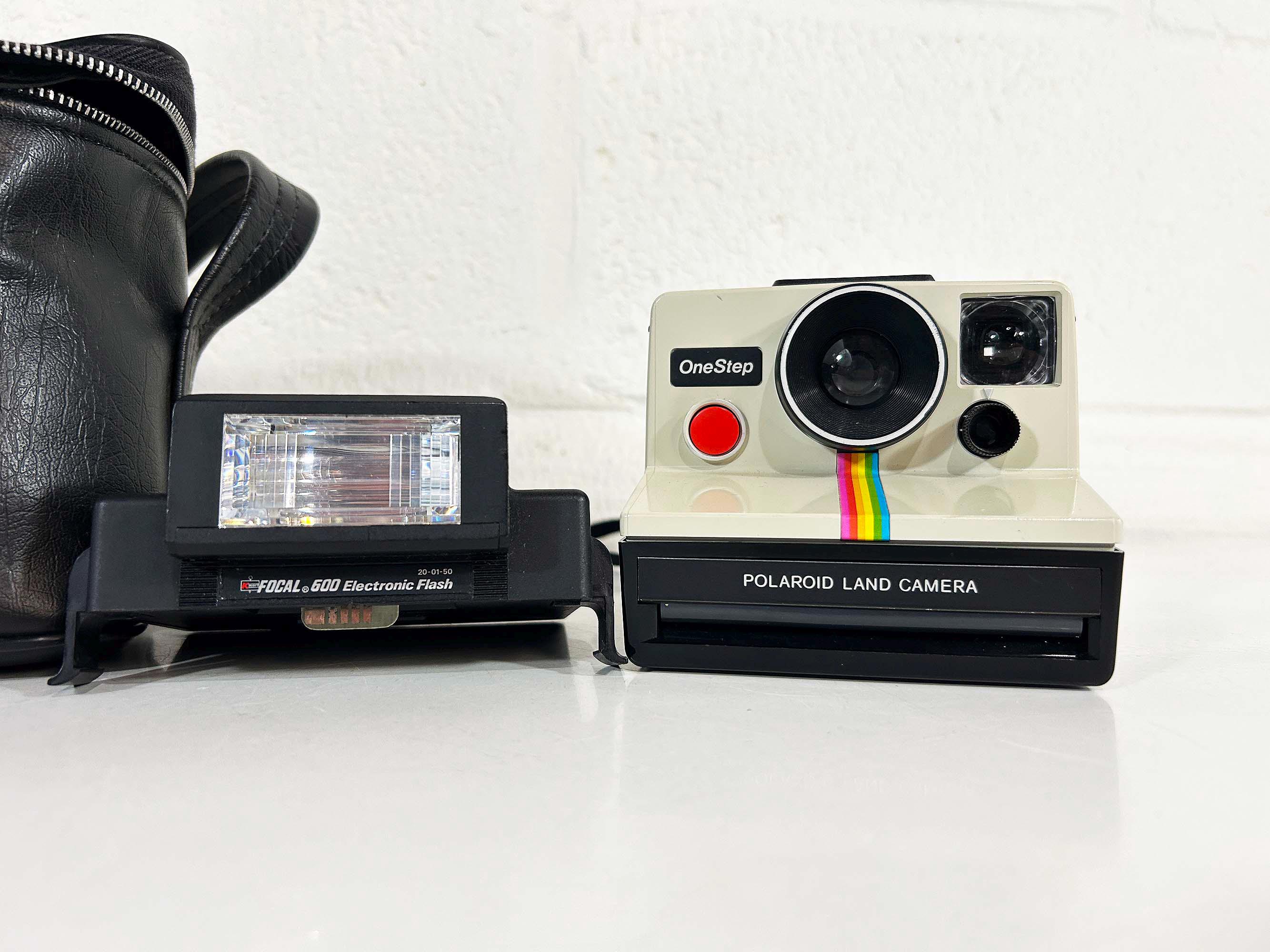 Classic Polaroid camera with a detachable Focal 600 Flash! This camera is in good vintage condition with only minor cosmetic scuffs on the plastic body from previous use. It has been tested and is in working order - ready to use with new Polaroid film! Please see the second photo for an example of a Polaroid taken with this camera.