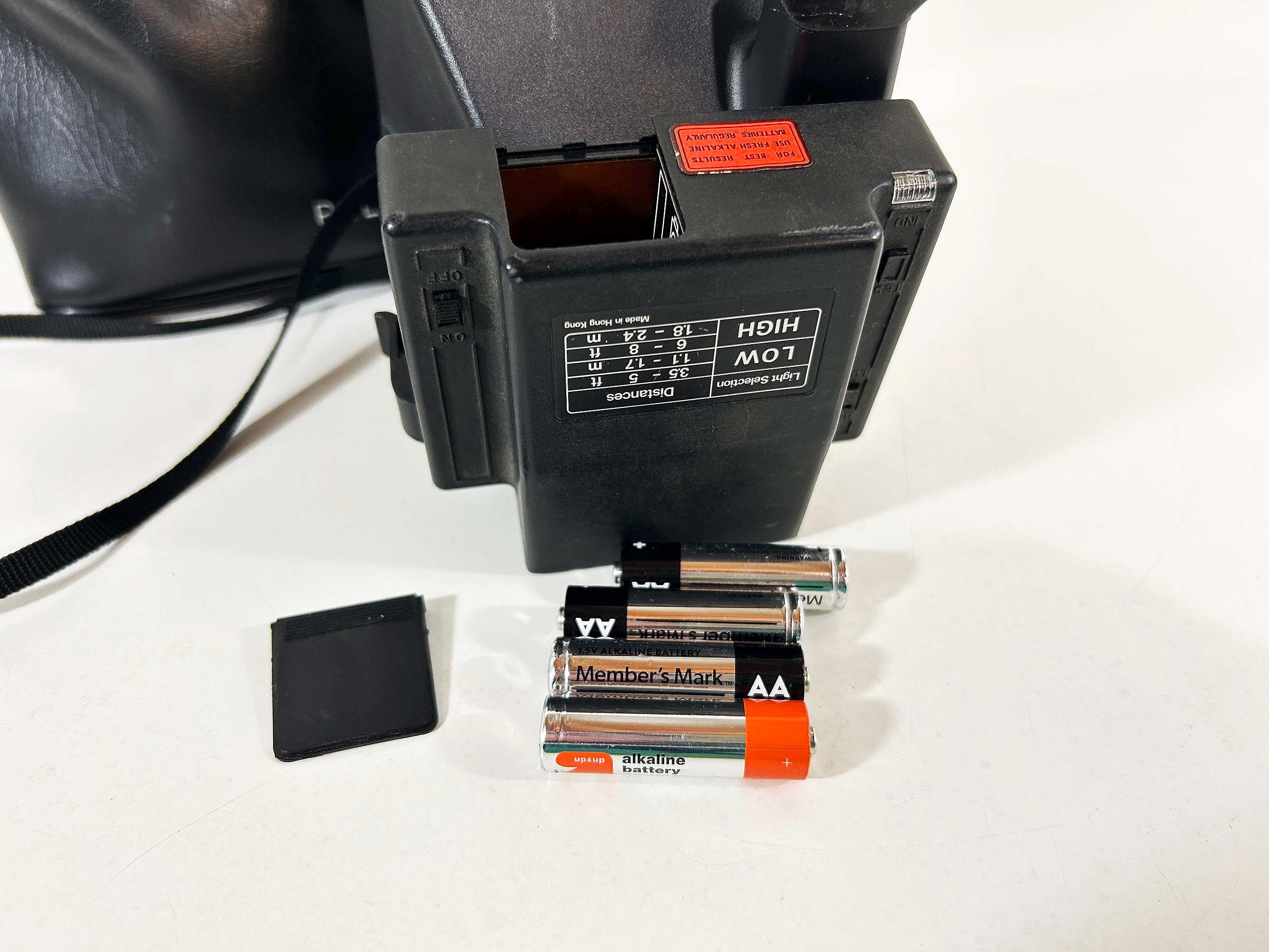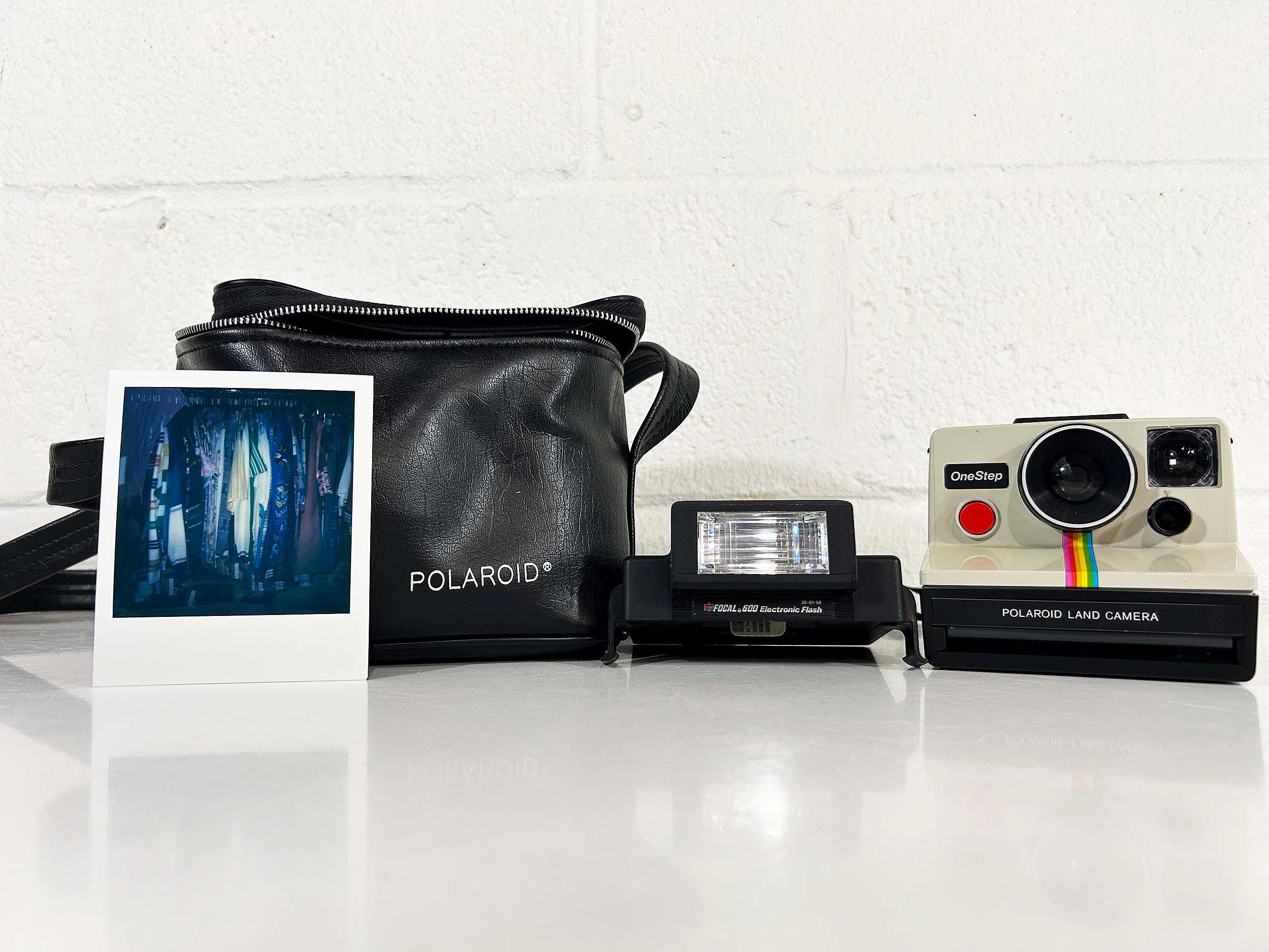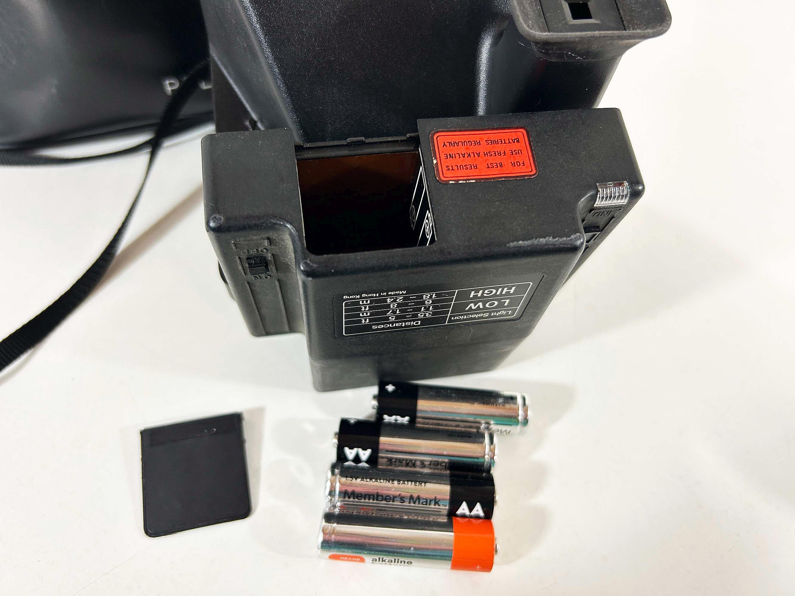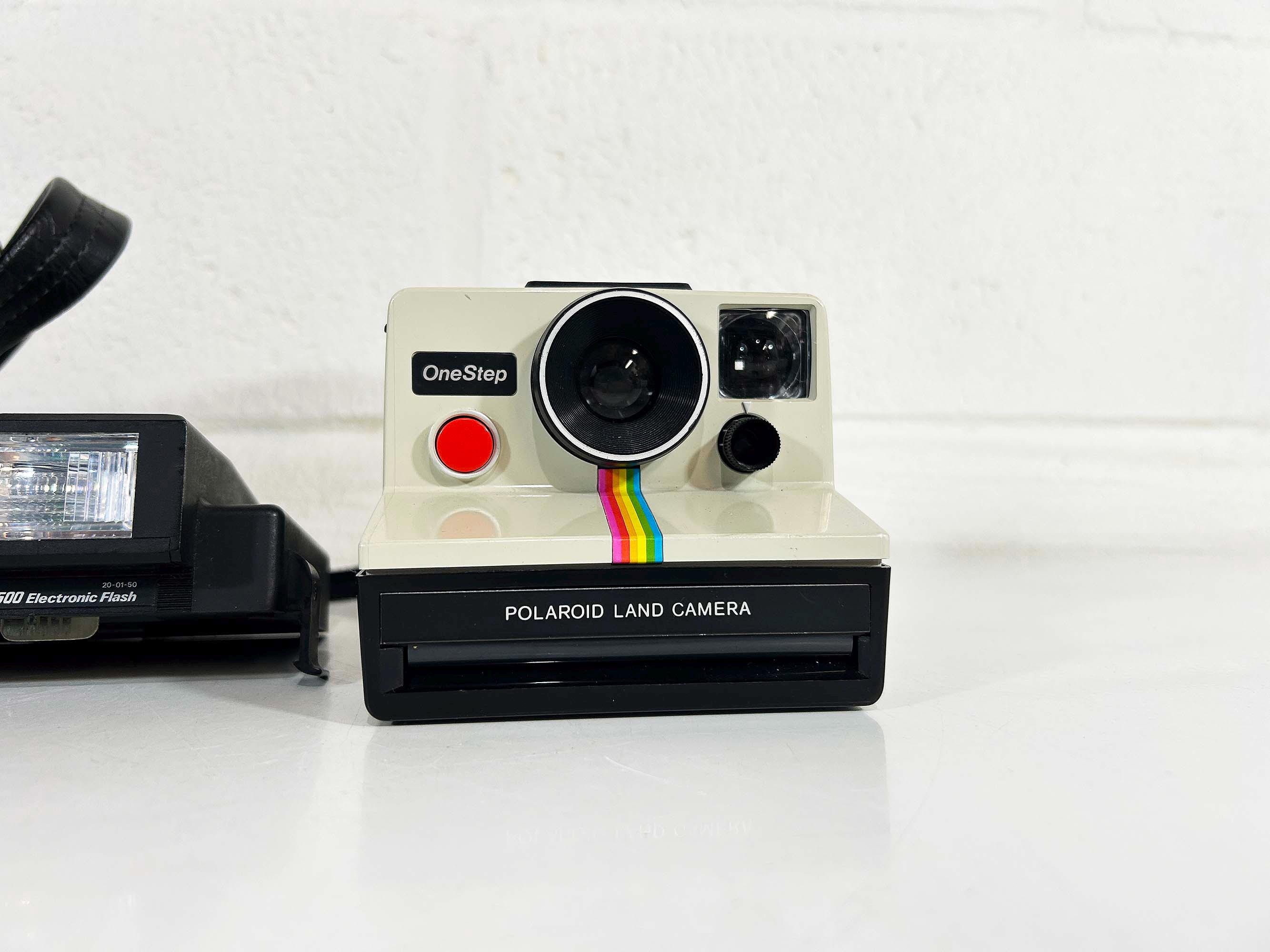 Classic Polaroid camera with a detachable Focal 600 Flash! This camera is in good vintage condition with only minor cosmetic scuffs on the plastic body from previous use. It has been tested and is in working order - ready to use with new Polaroid film! Please see the second photo for an example of a Polaroid taken with this camera.