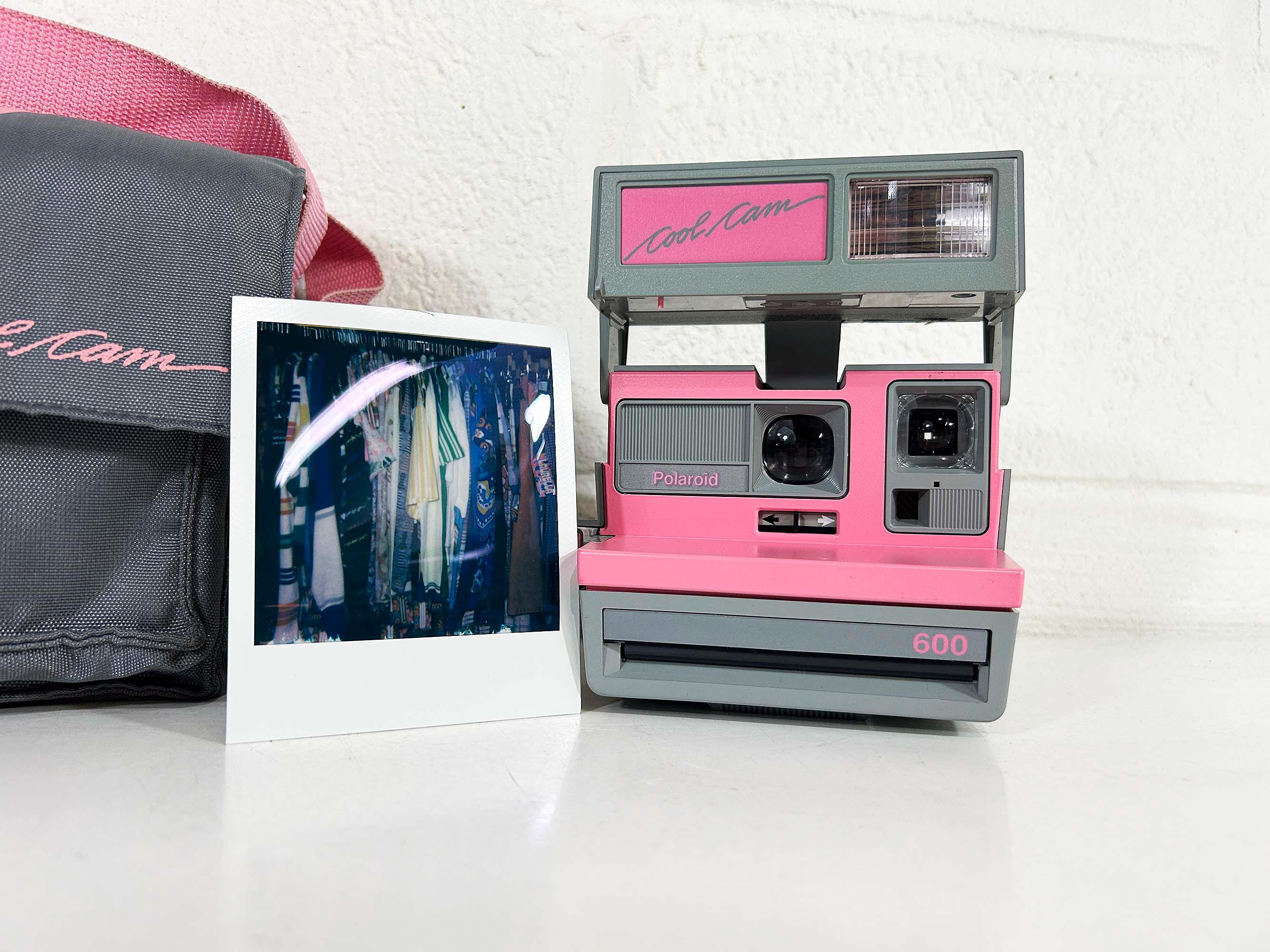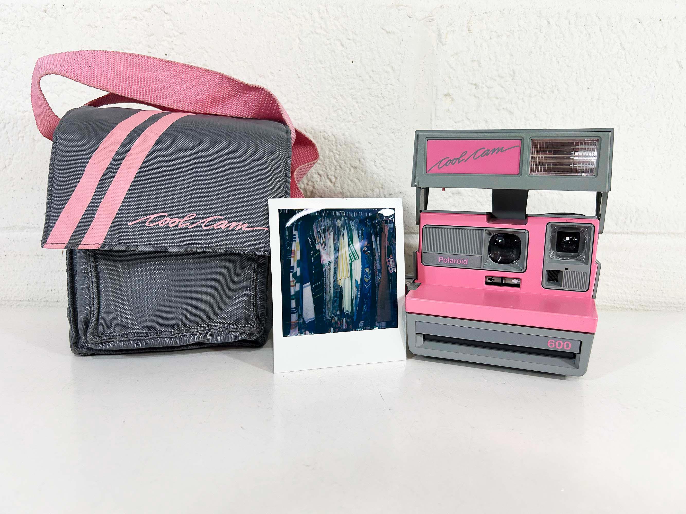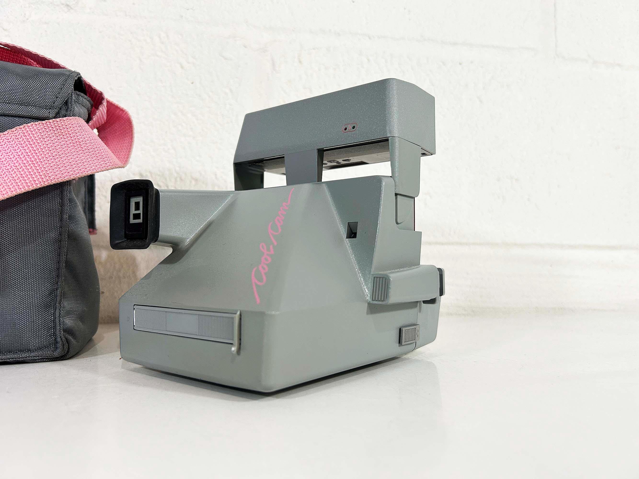 Classic Polaroid Cool Cam camera with a built in flash! This camera is in good vintage condition with only minor cosmetic scuffs on the plastic body from previous use. It is in working order - ready to use with new Polaroid film! It comes with it's matching bag. See photos for an example Polaroid picture I took with this camera.