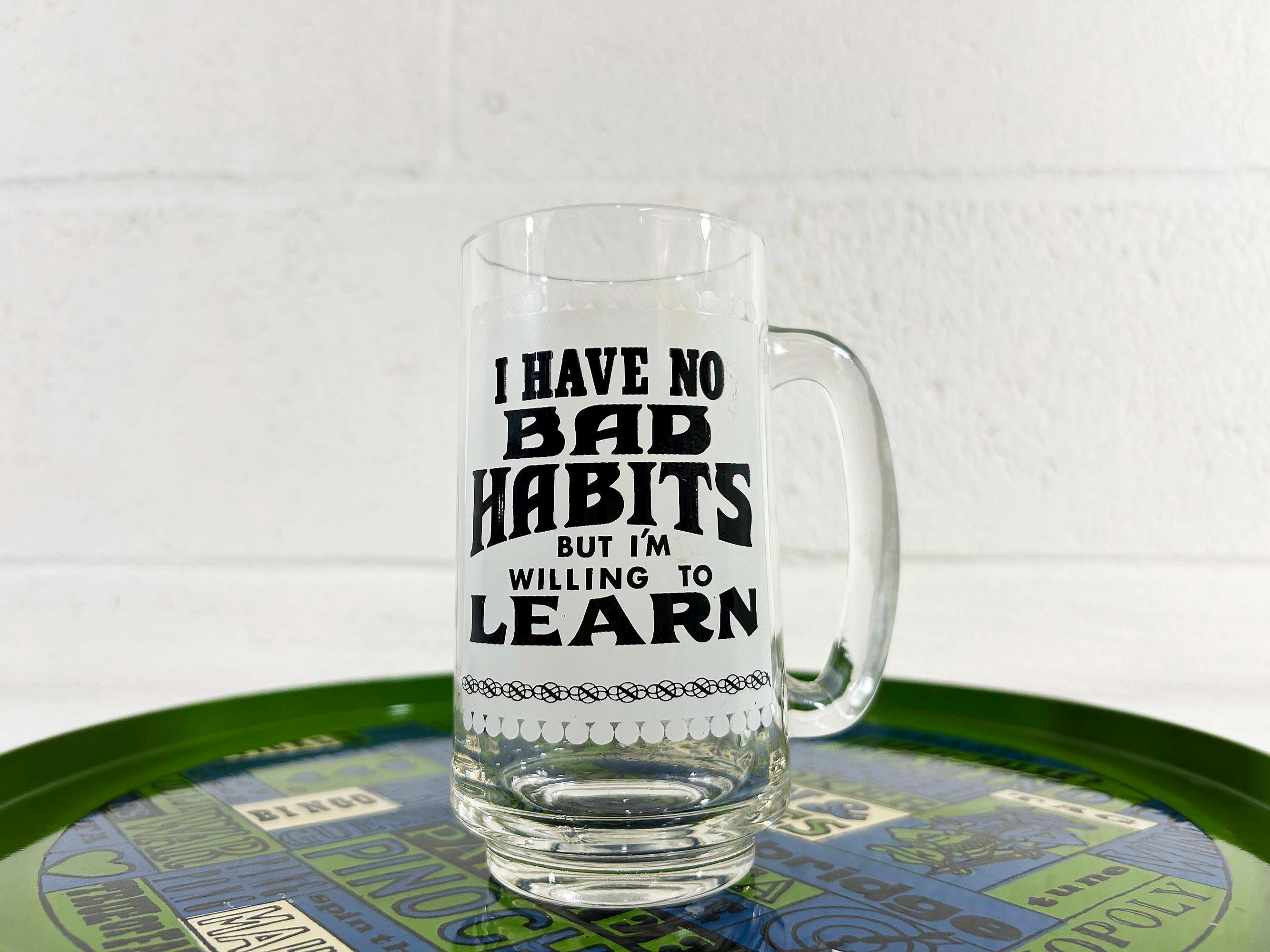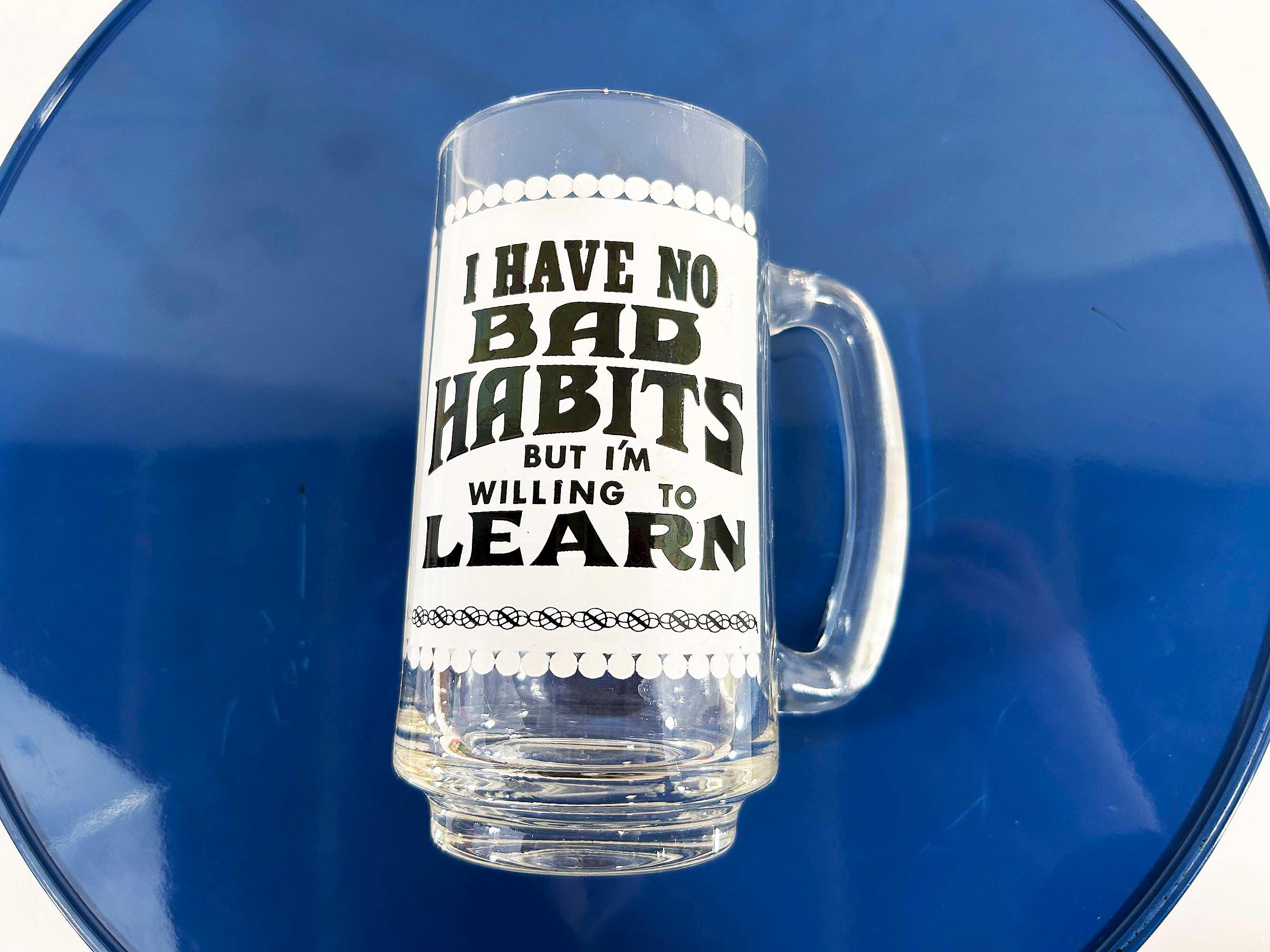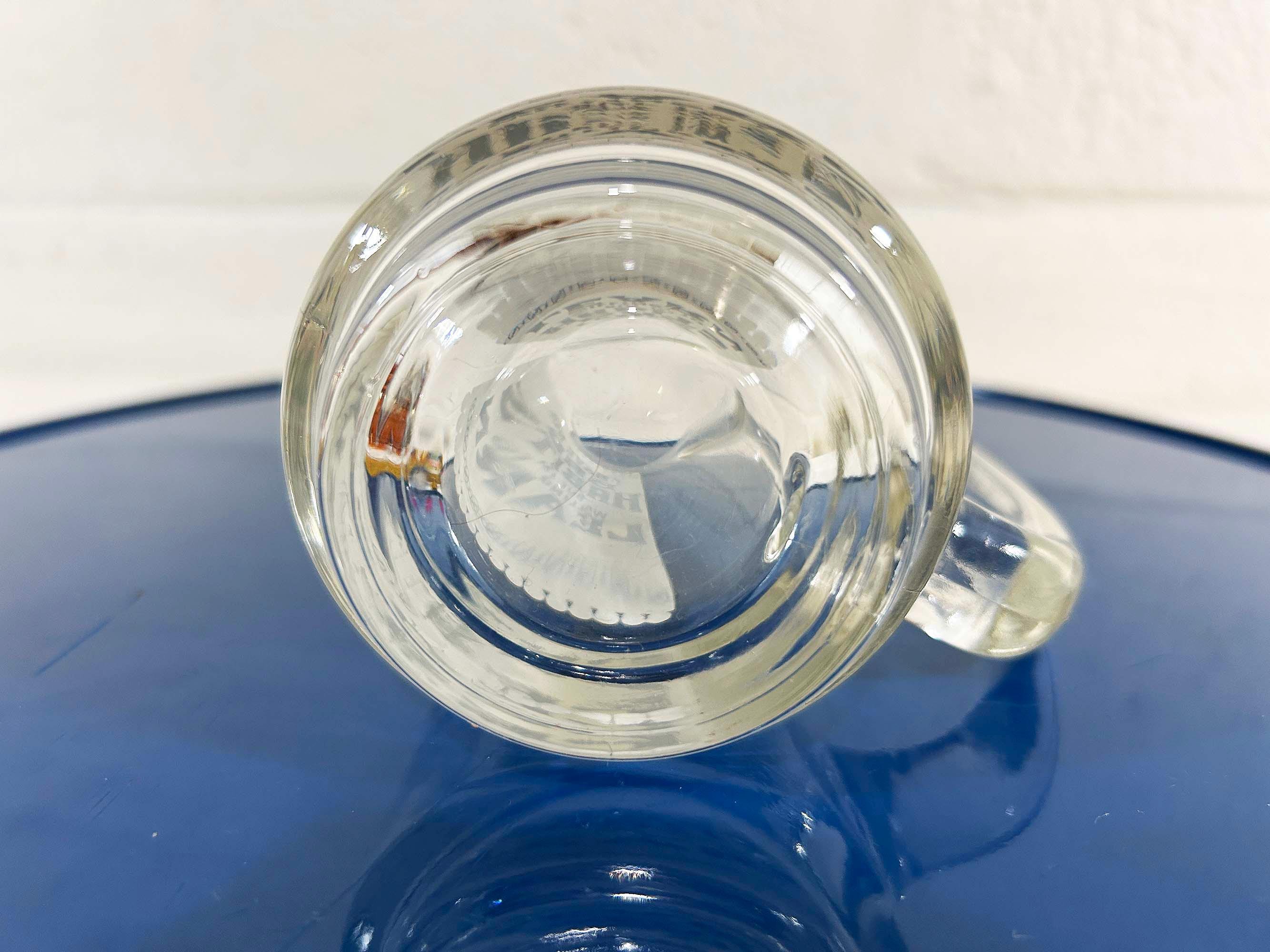 Vintage fun and funky heavy glass beer mug. It is in good vintage condition with no significant flaws. The mug is approximately 5 1/2 inches tall and 2 1/2 inches in diameter at the top.