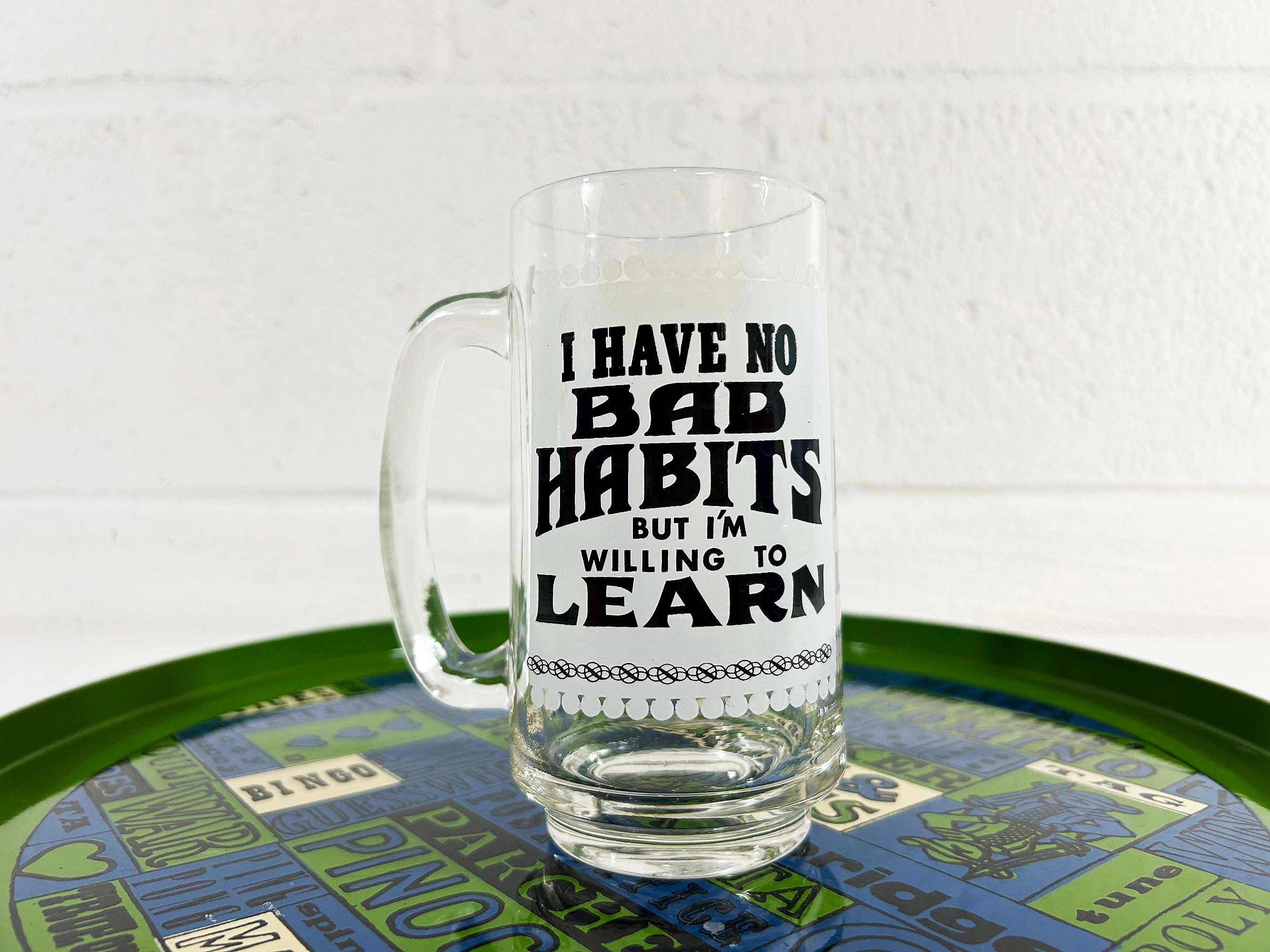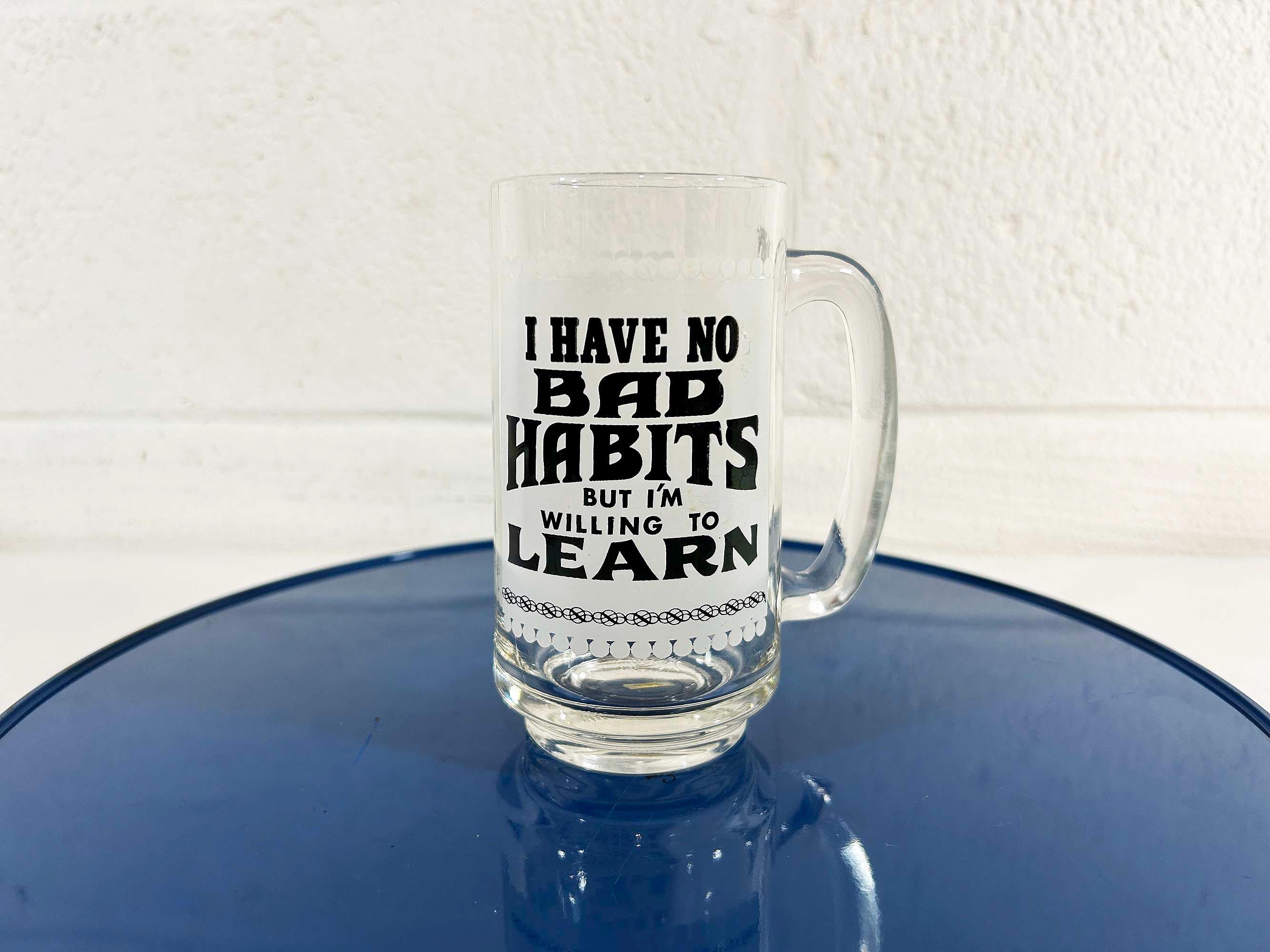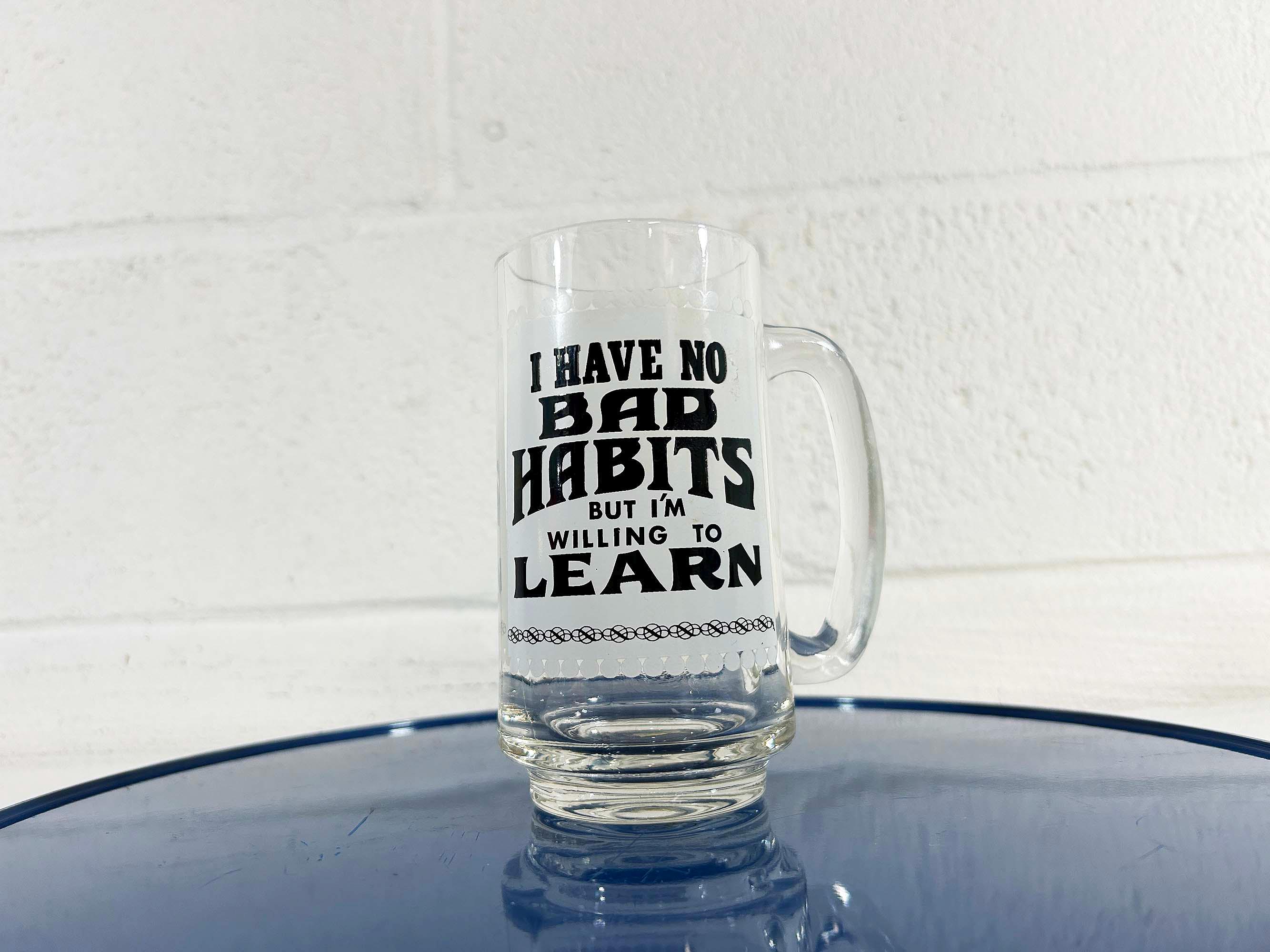Vintage fun and funky heavy glass beer mug. It is in good vintage condition with no significant flaws. The mug is approximately 5 1/2 inches tall and 2 1/2 inches in diameter at the top.