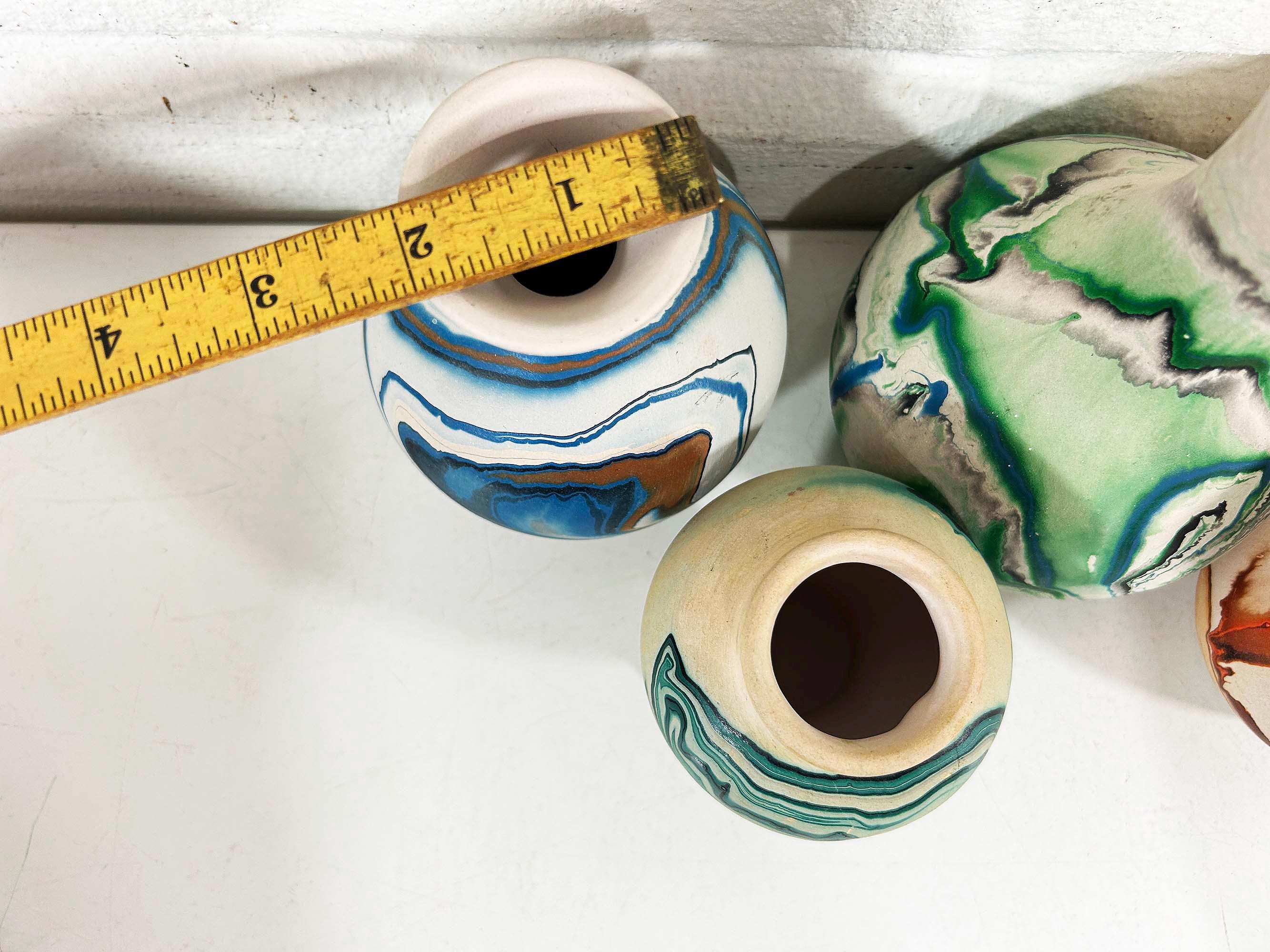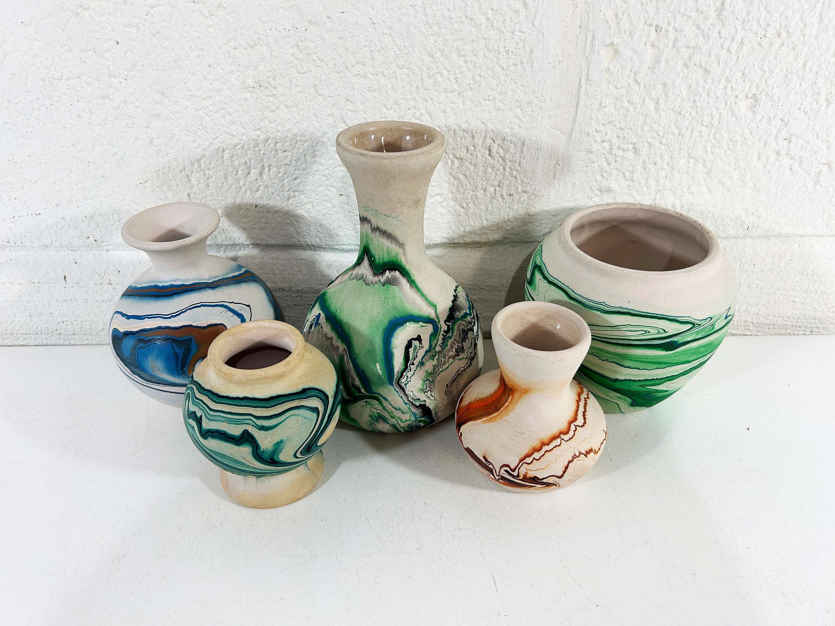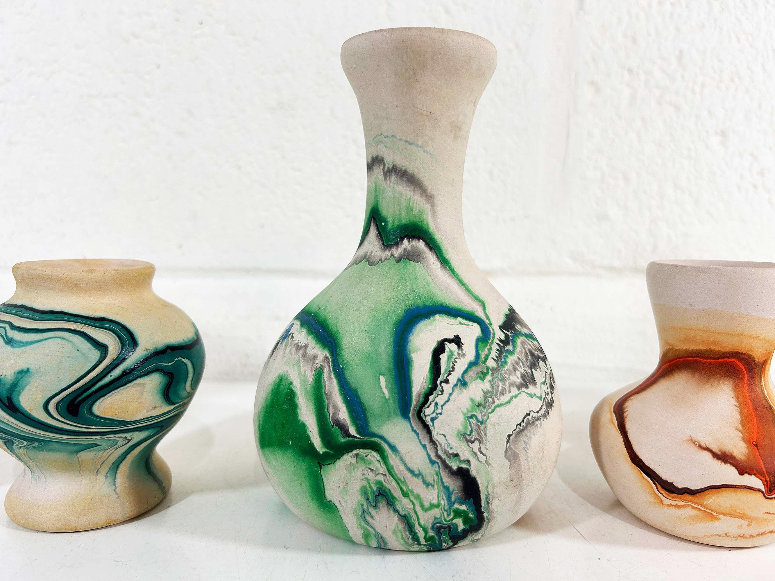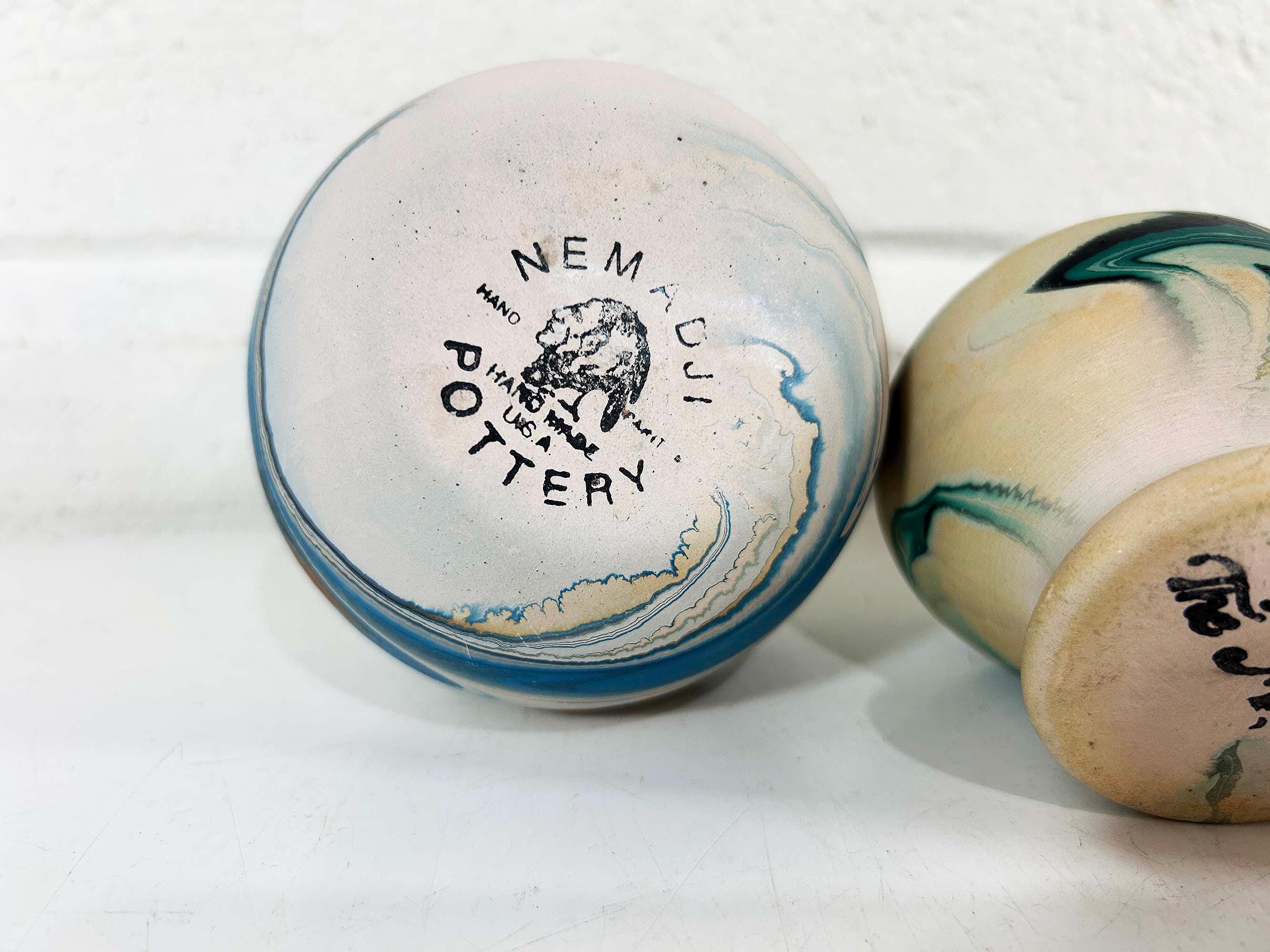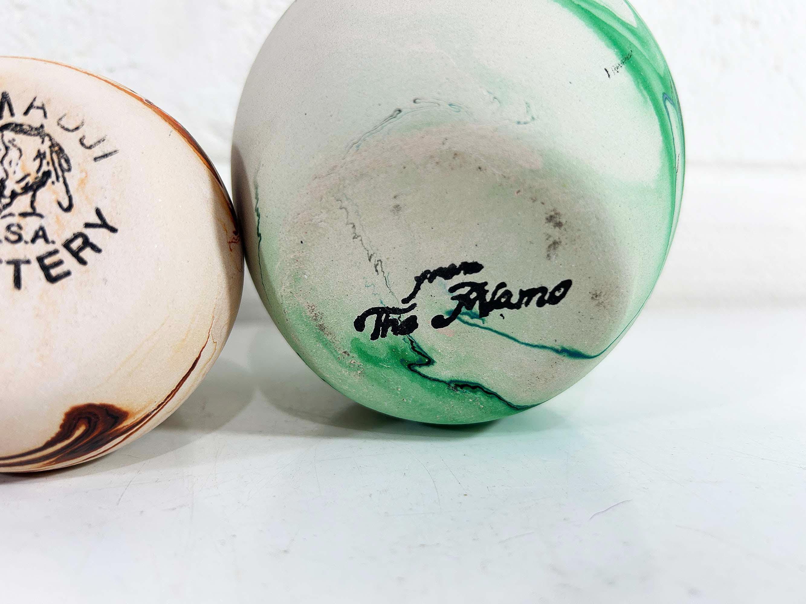 Lovely Nemadji pottery vase collection. This was an estate sale find from Maryland, just outside of Washington, D.C. All of the vases are in good vintage condition with no significant flaws. The smallest green vase is a bit discolored on the white part. The tall green vase and the orange vase are both glazed on the inside but the other 3 are not. The vases range in height from 3 to 6 1/2 inches tall and 1 1/2 to 3 inches in diameter at the opening. The vases are sold individually - choose which one you'd like from the drop down menu.