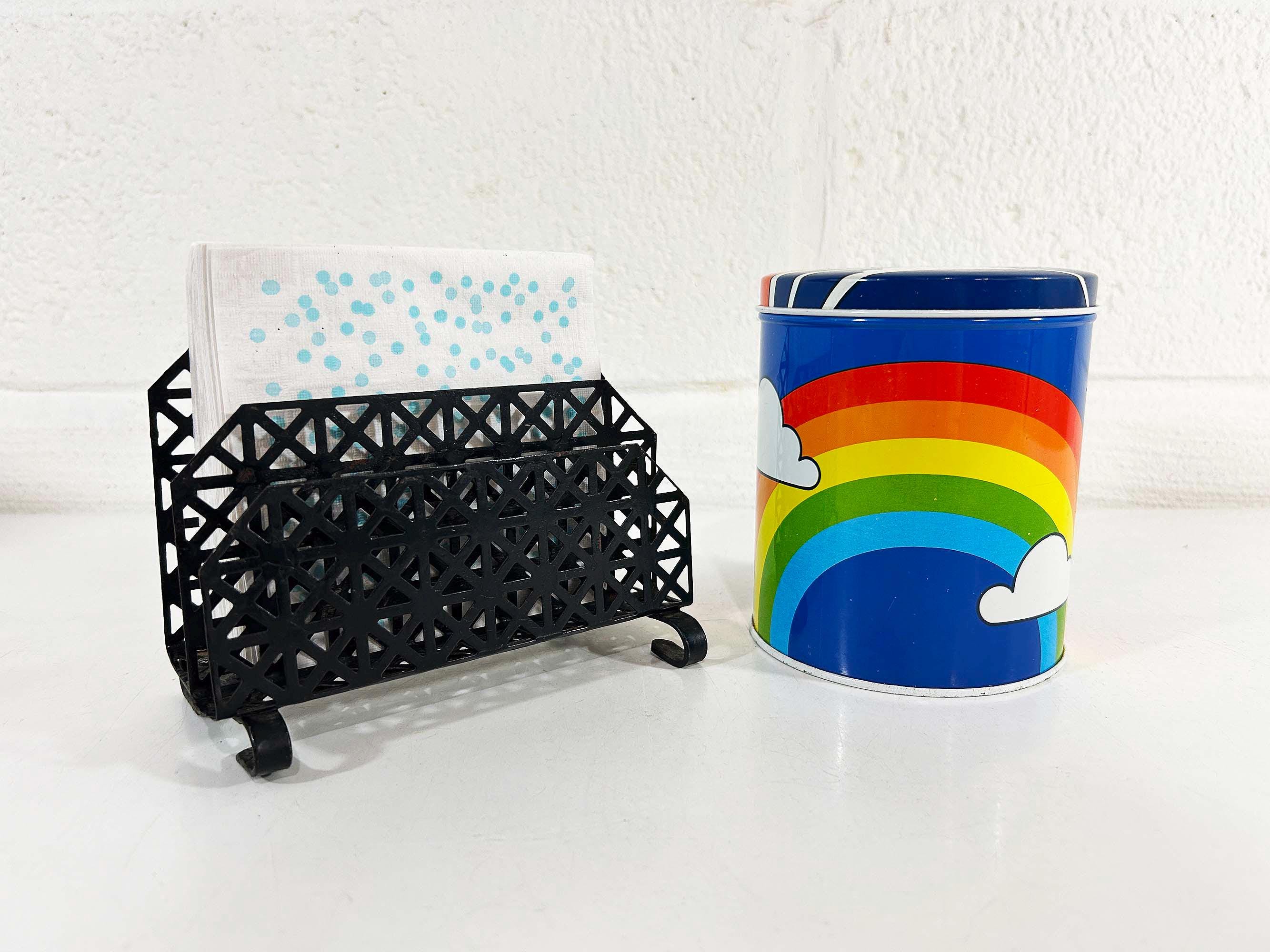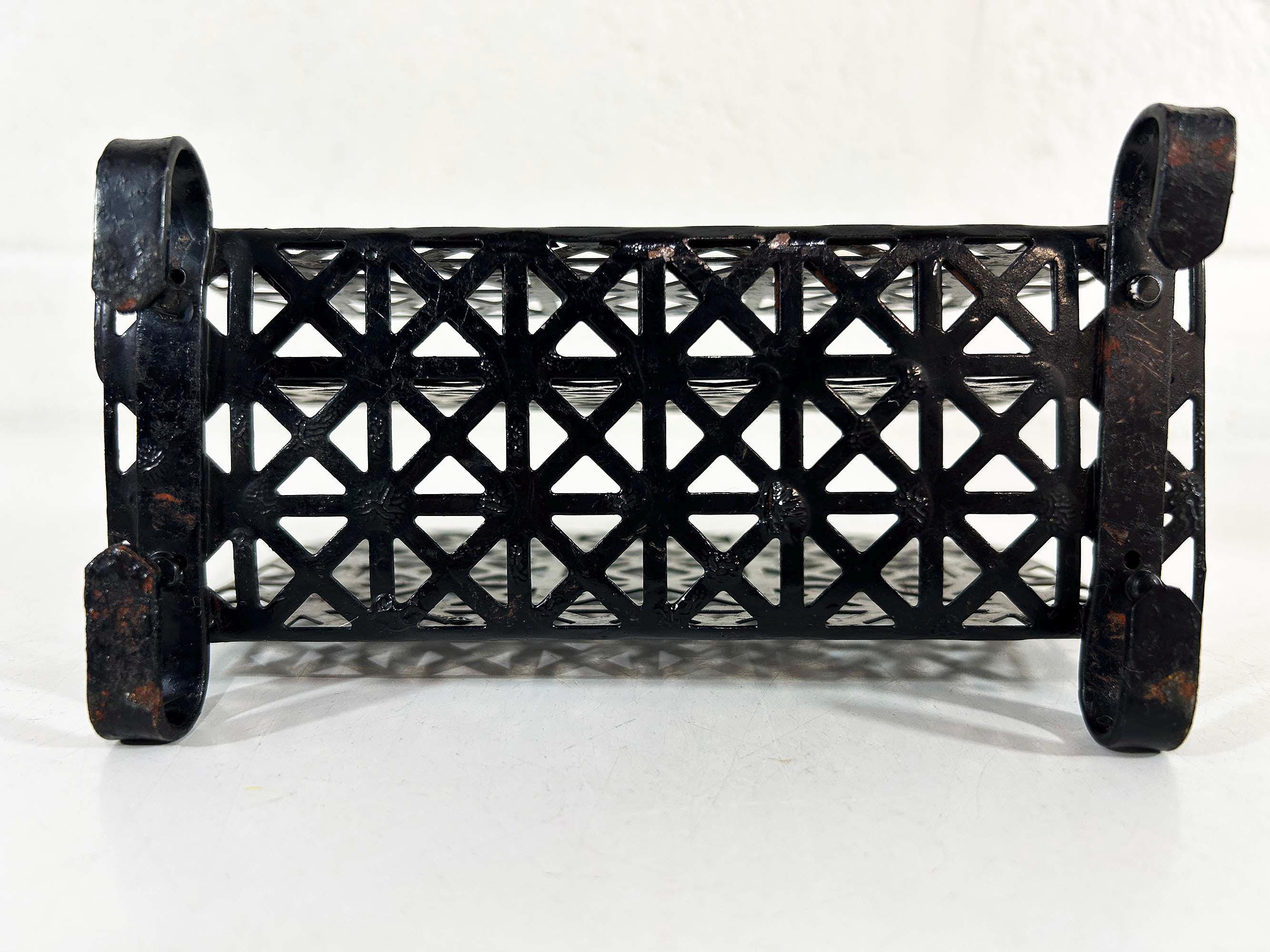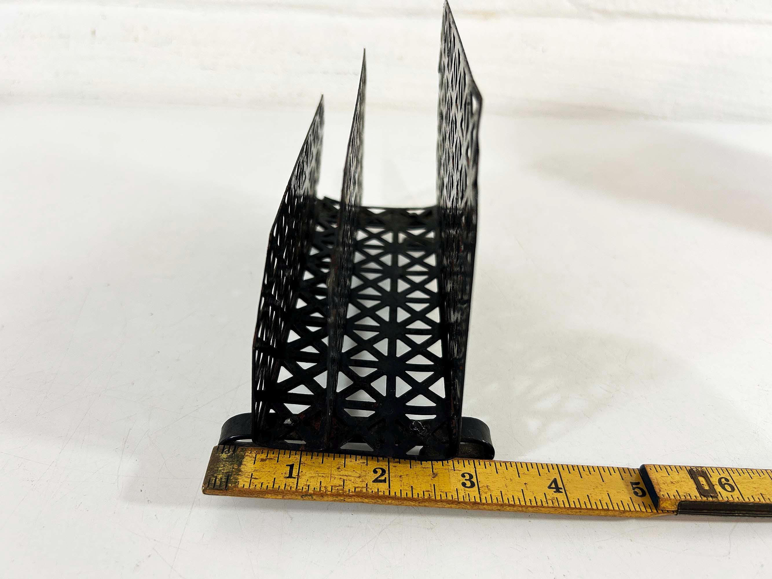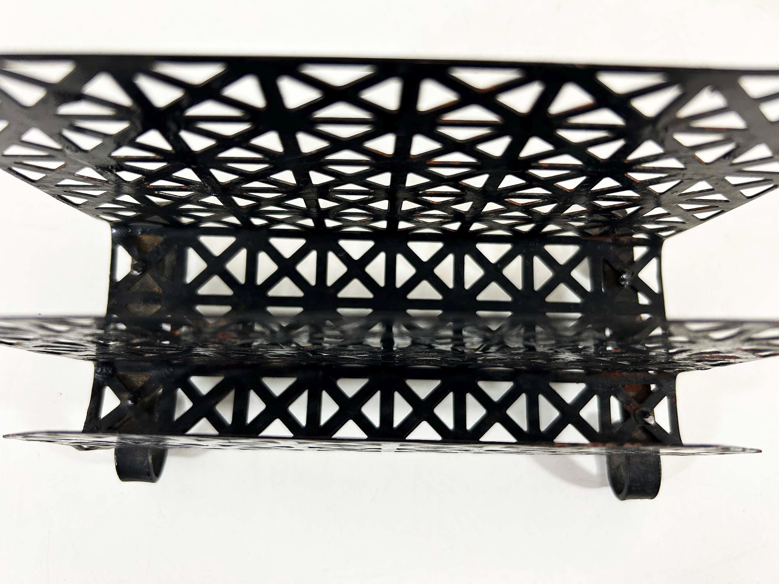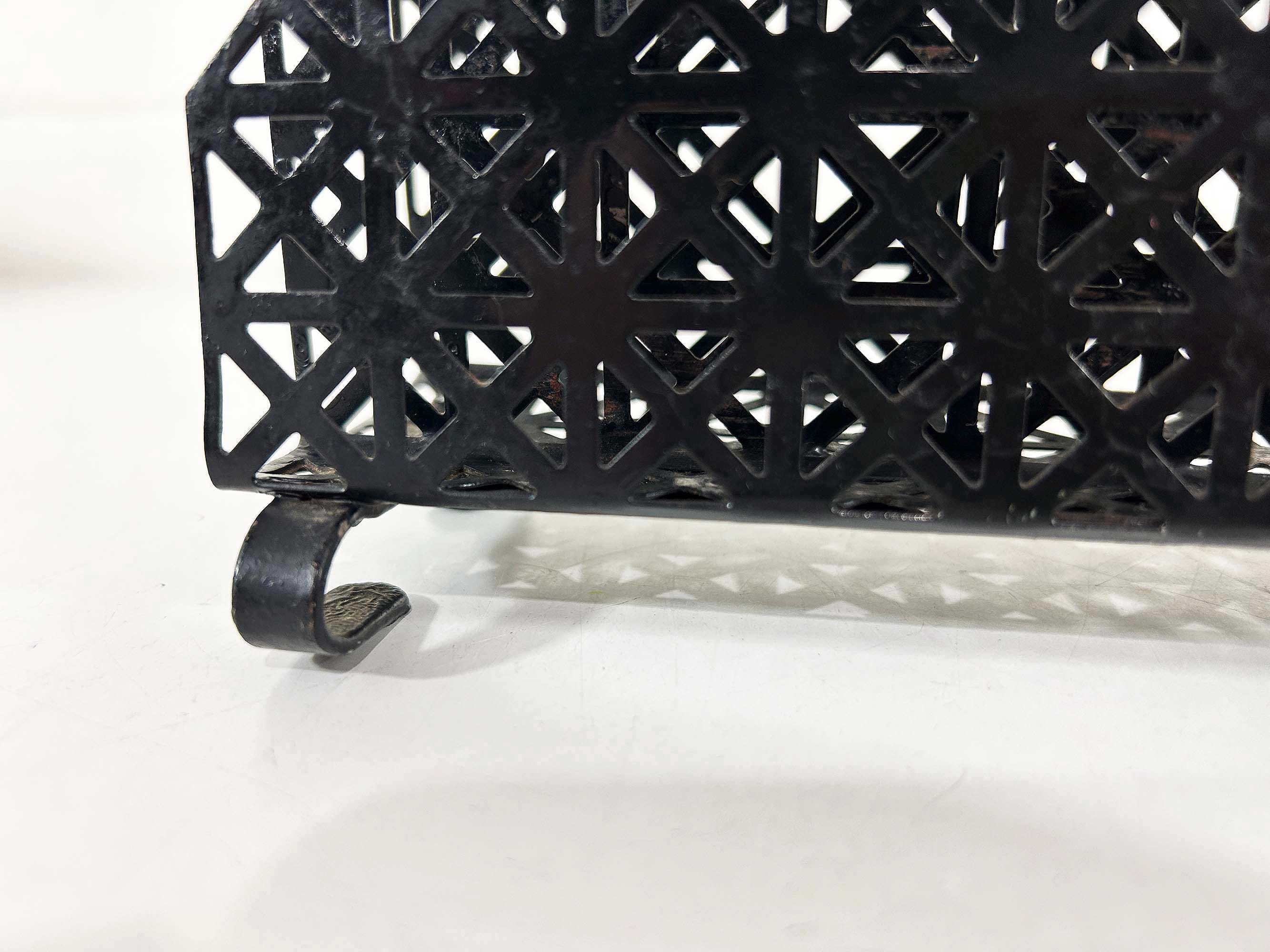 MCM black metal mesh napkin or mail holder! In good vintage condition a bit of bending on the metal - please be sure to inspect all photos closely. The napkin holder is approximately 4 1/4 inches tall, 6 inches wide and 3 1/4 inches deep.