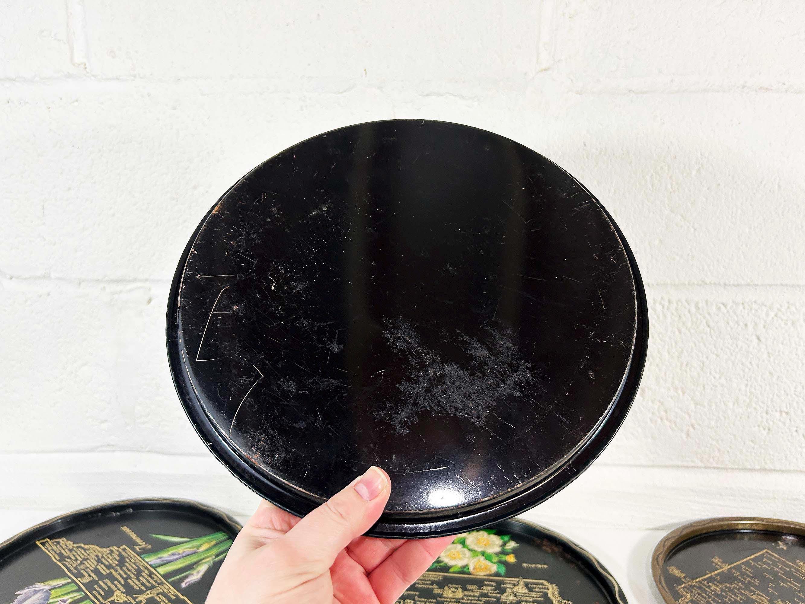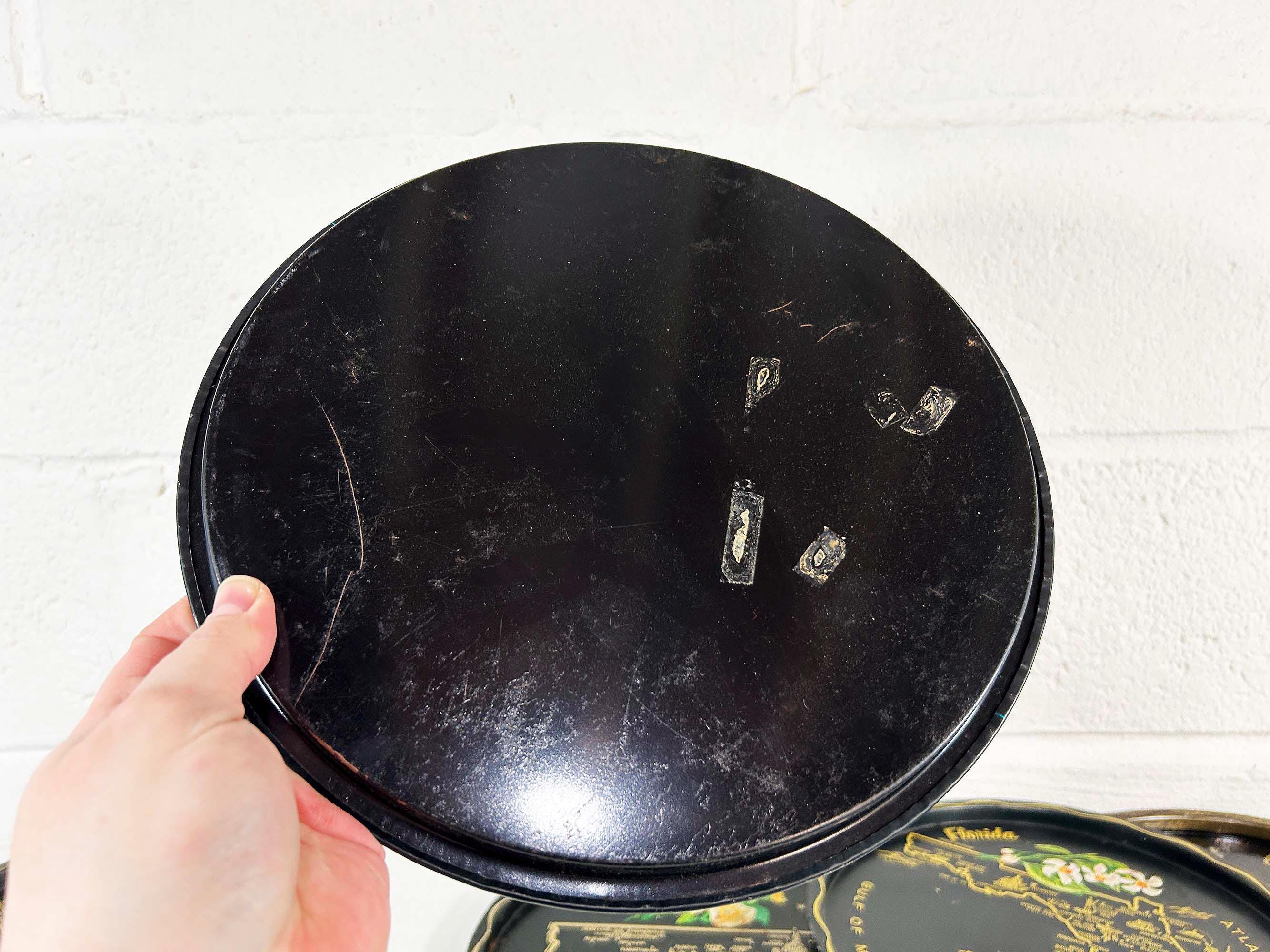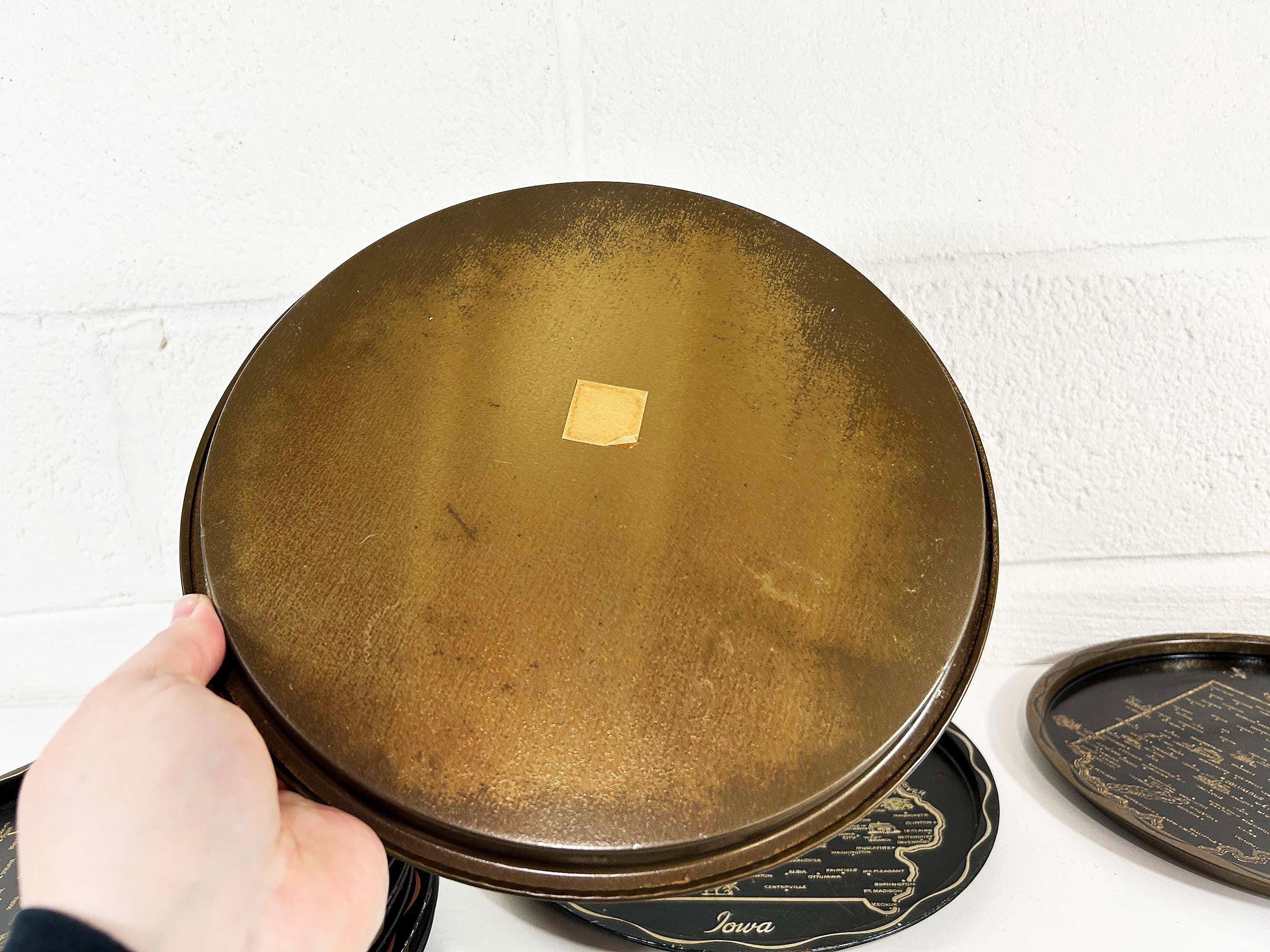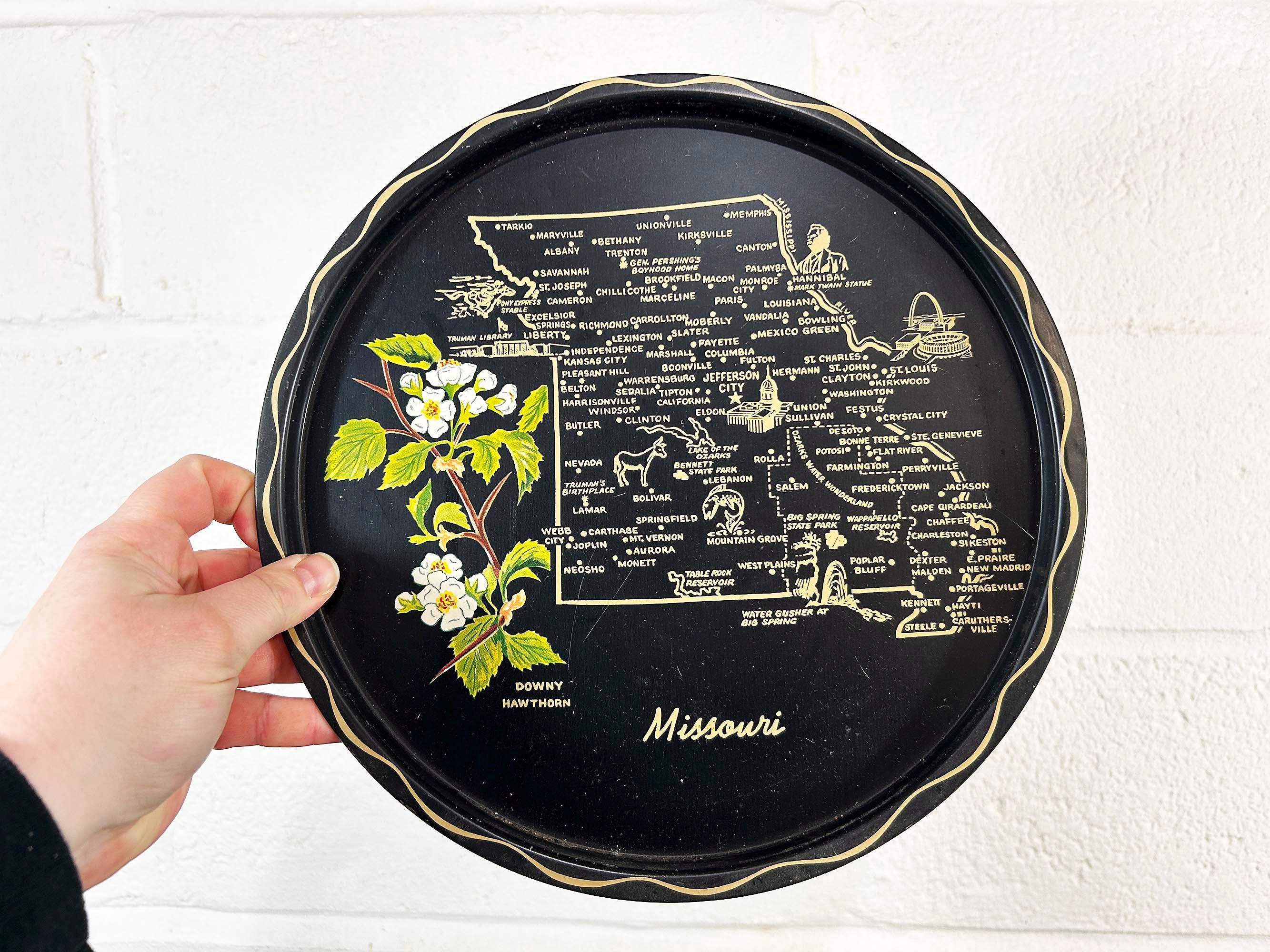 Very cool vintage state souvenir drink trays. Each is sold individually - choose the tray you'd like from the drop down menu. All the trays are showing signs of age and wear - please be sure to inspect all photos closely. Each tray is approximately 11 inches in diameter and 1/2 inches tall.