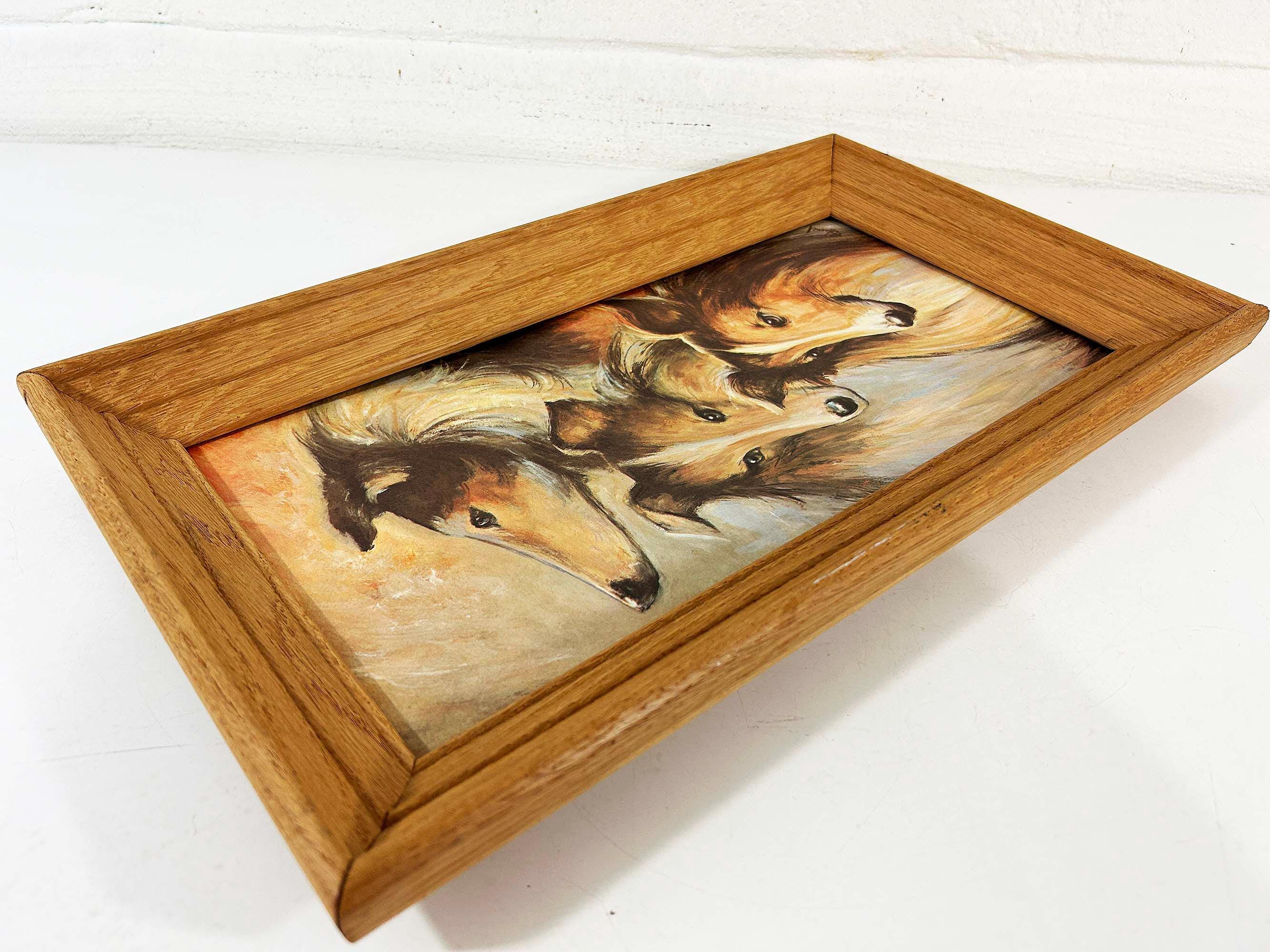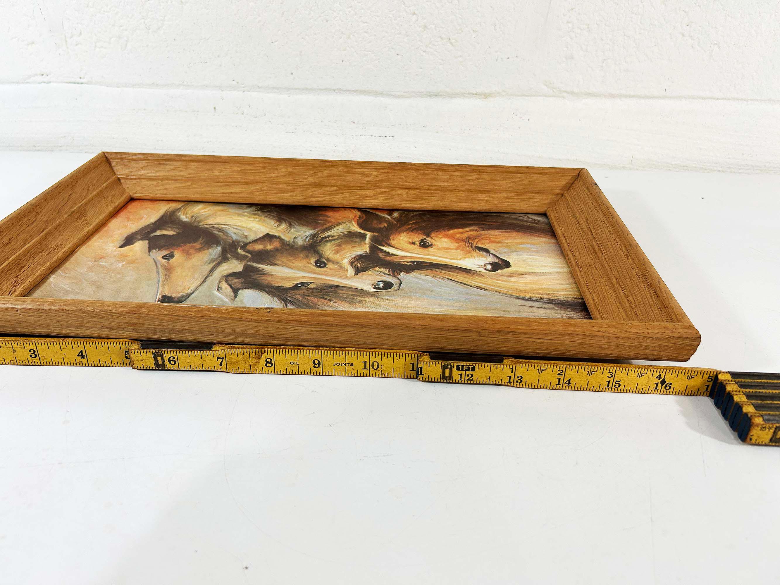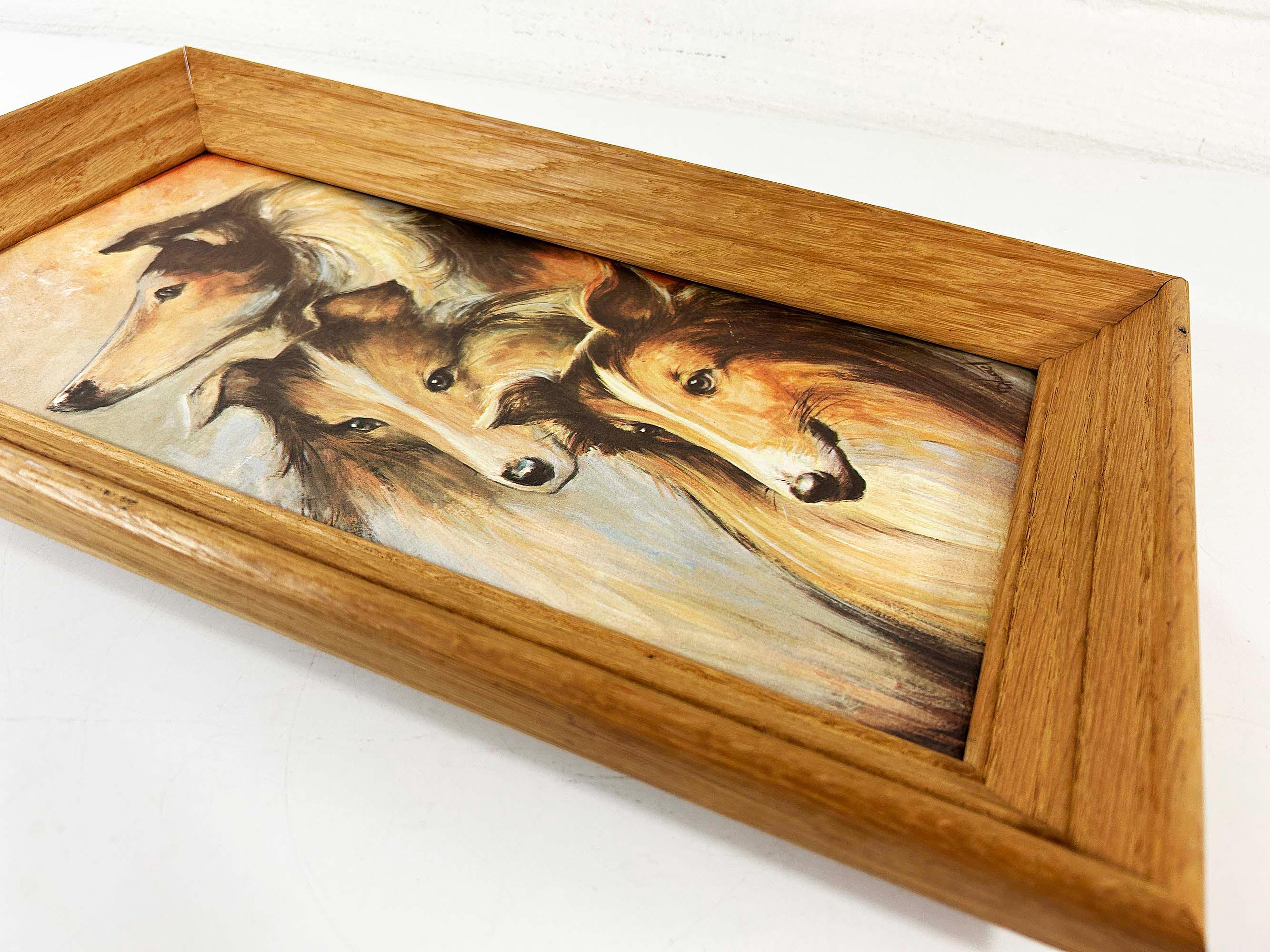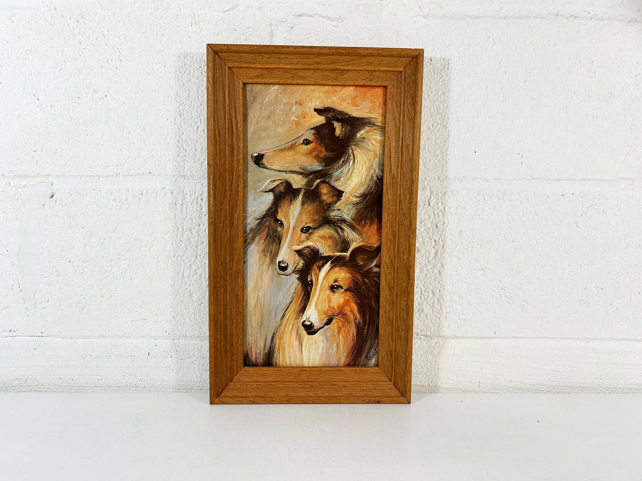 Fun retro framed Border Collie print! The frame is approximately 16 1/2 inches tall and 9 1/2 inches wide. The print and the frame are in great vintage shape. Perfect for a kids room or to fill a space on a gallery wall!