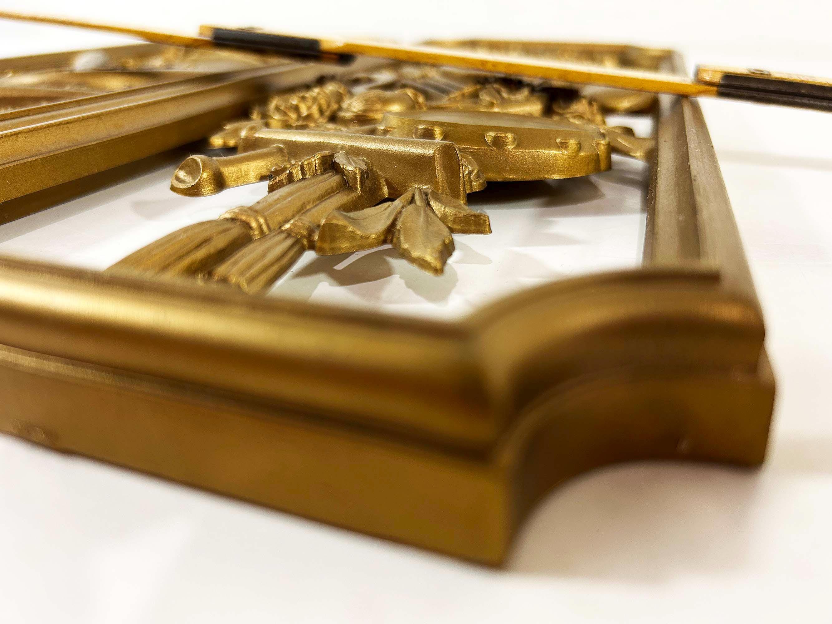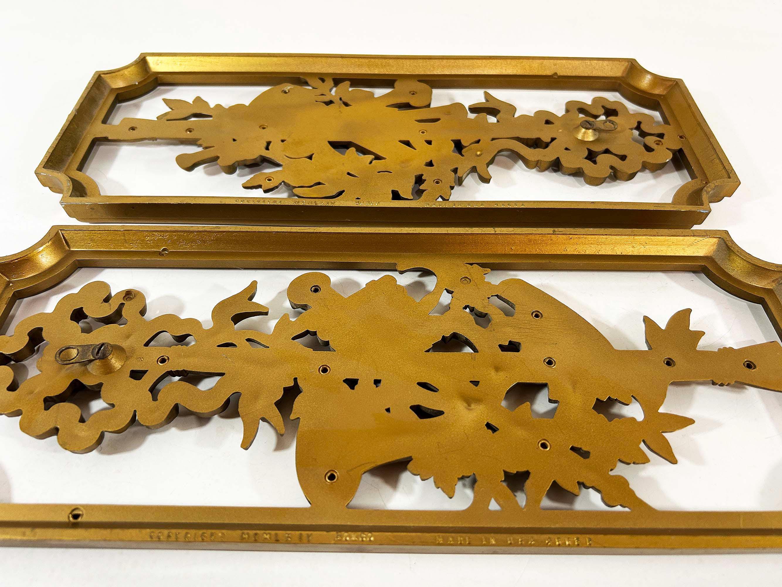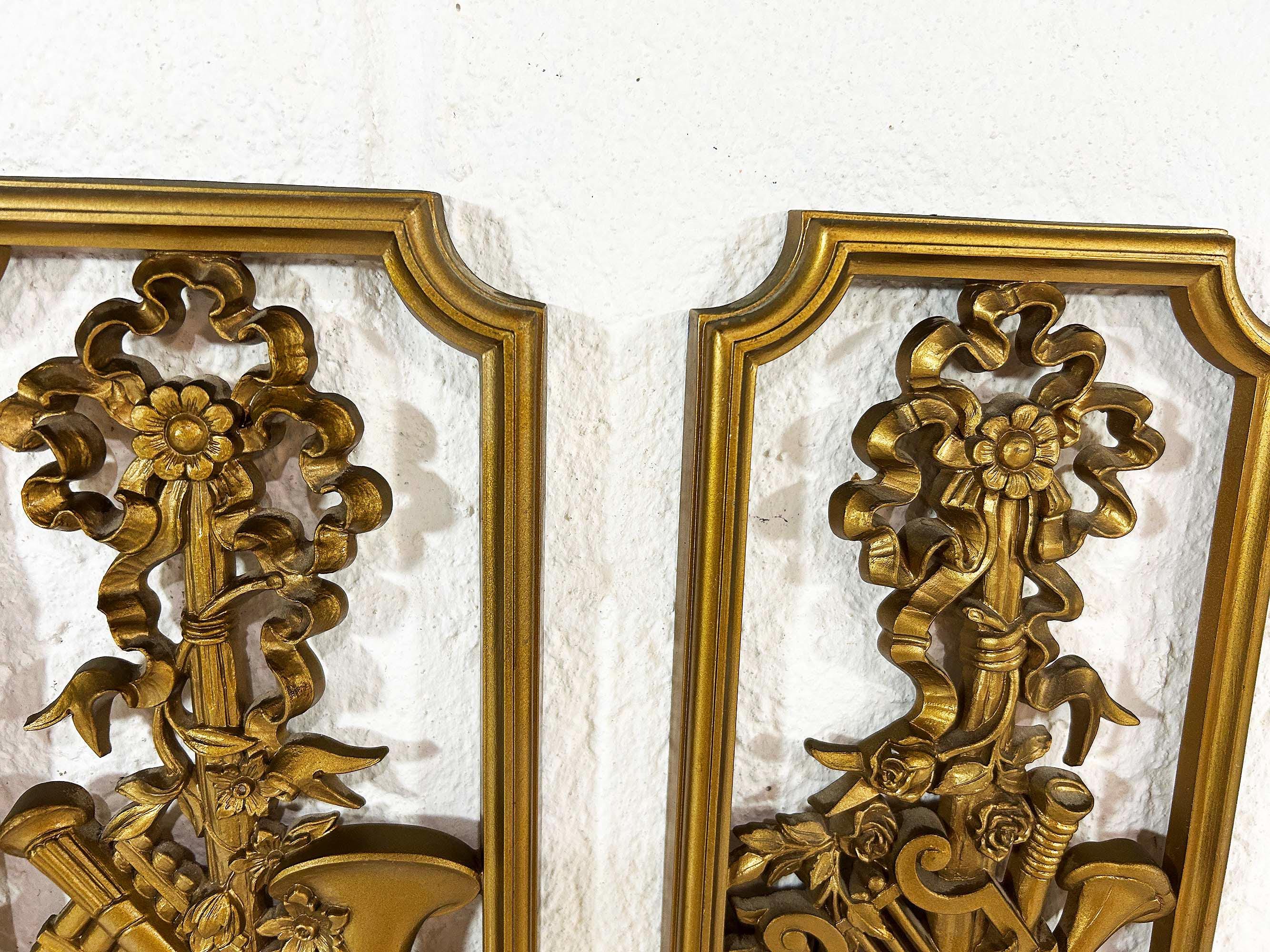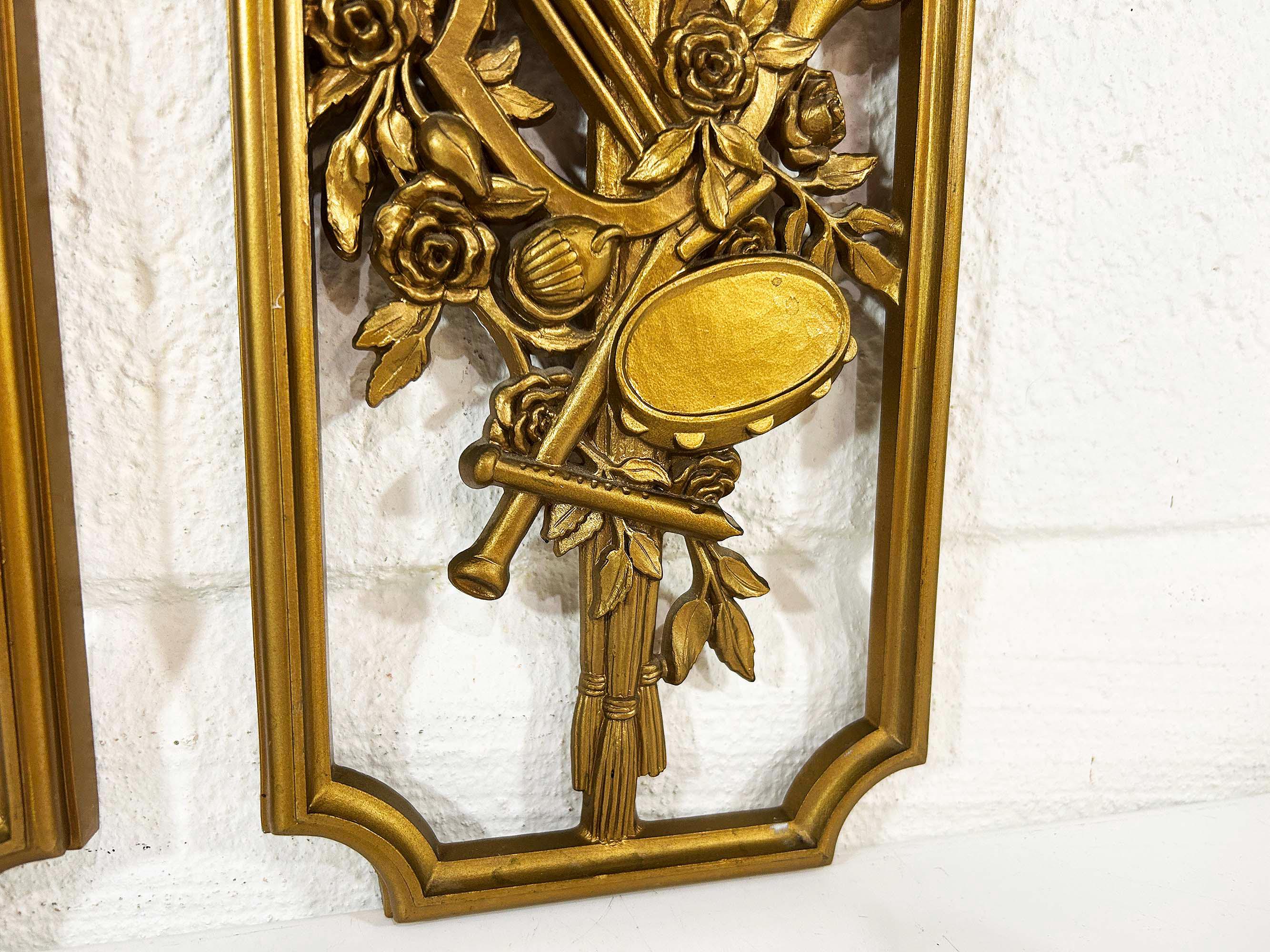 Lovely regency style plastic gold wall hangings. Each wall hanging is approximately 14 inches long and 5 1/2 inches wide. Both are in great vintage condition with no significant wear. They both have hooks on the back so they are ready to hang on your wall!