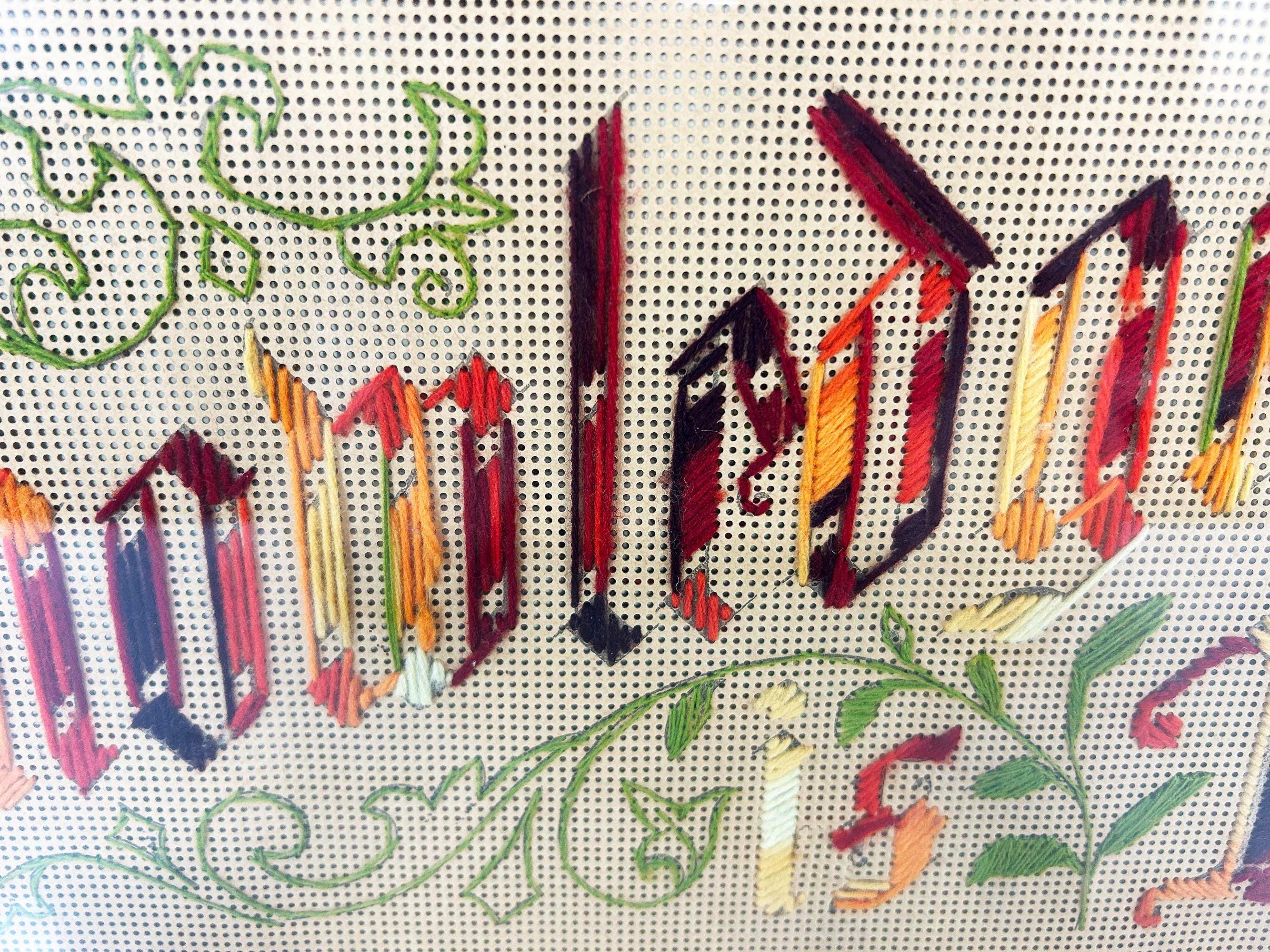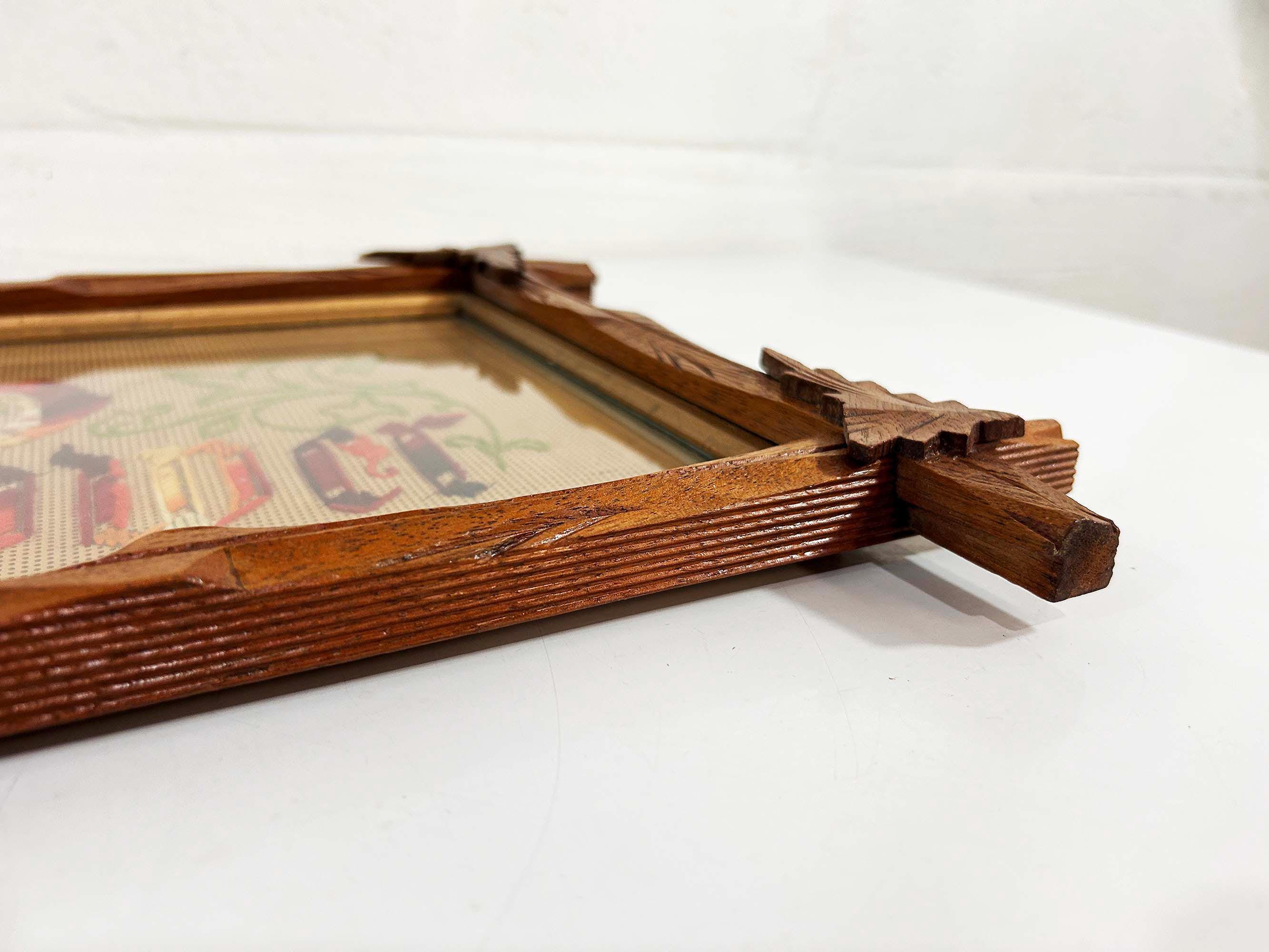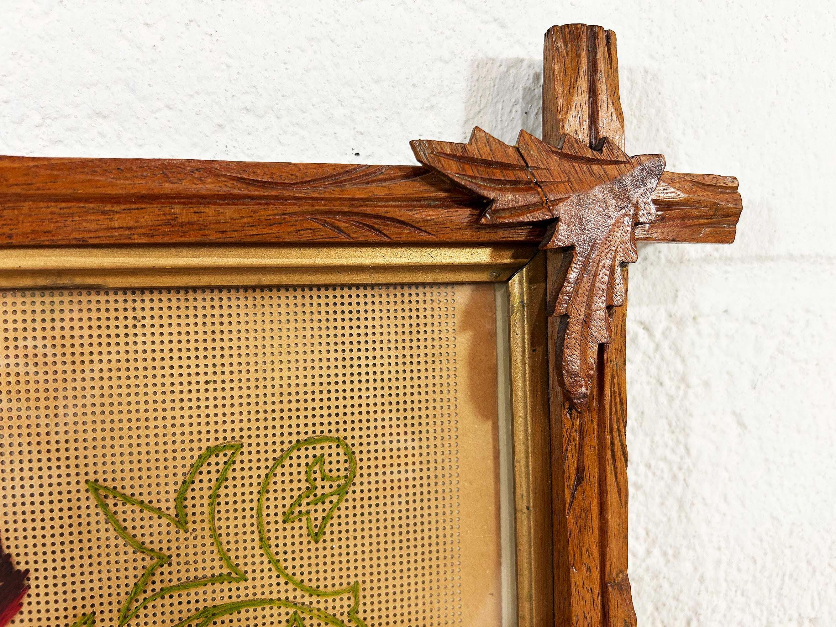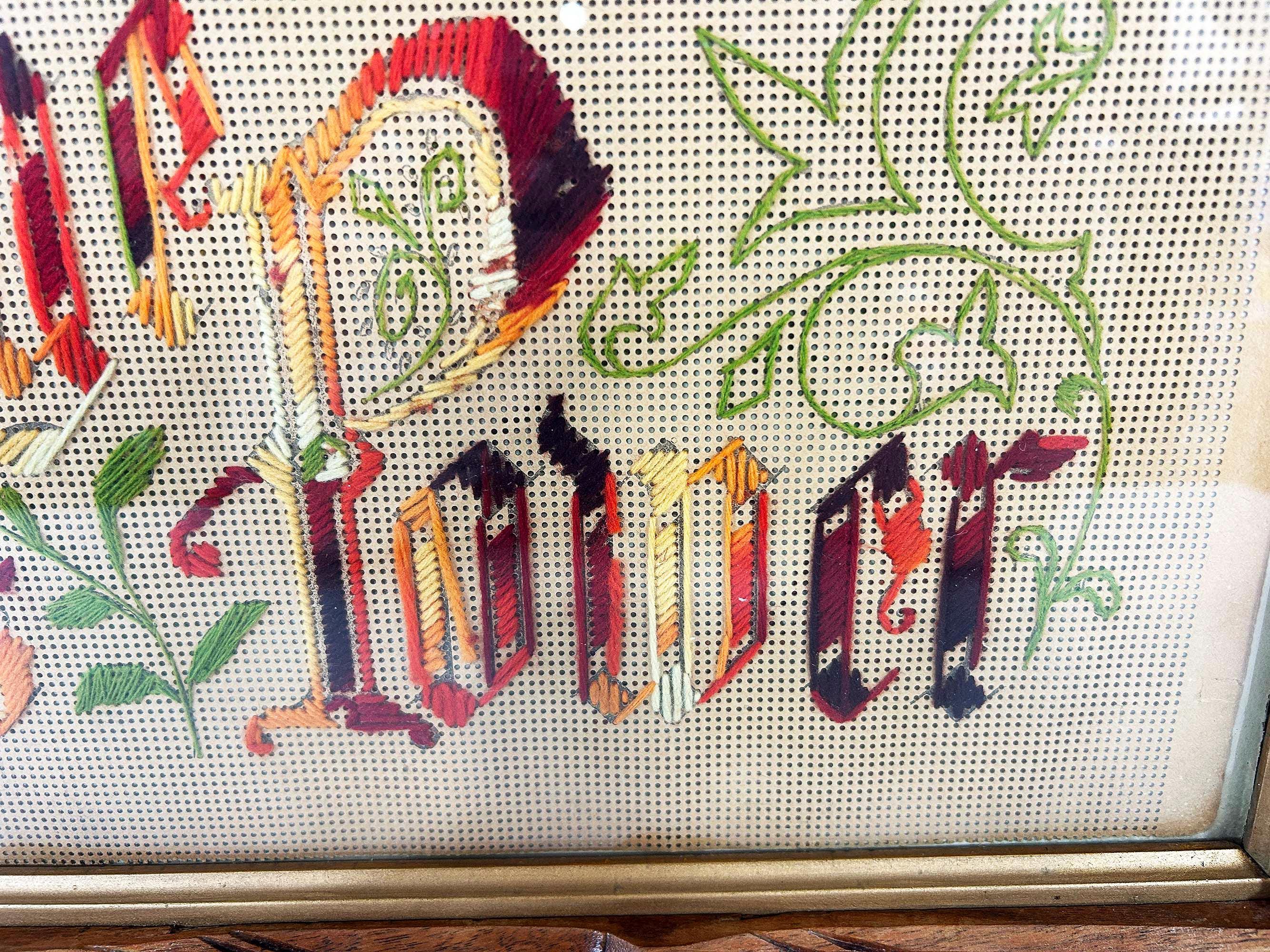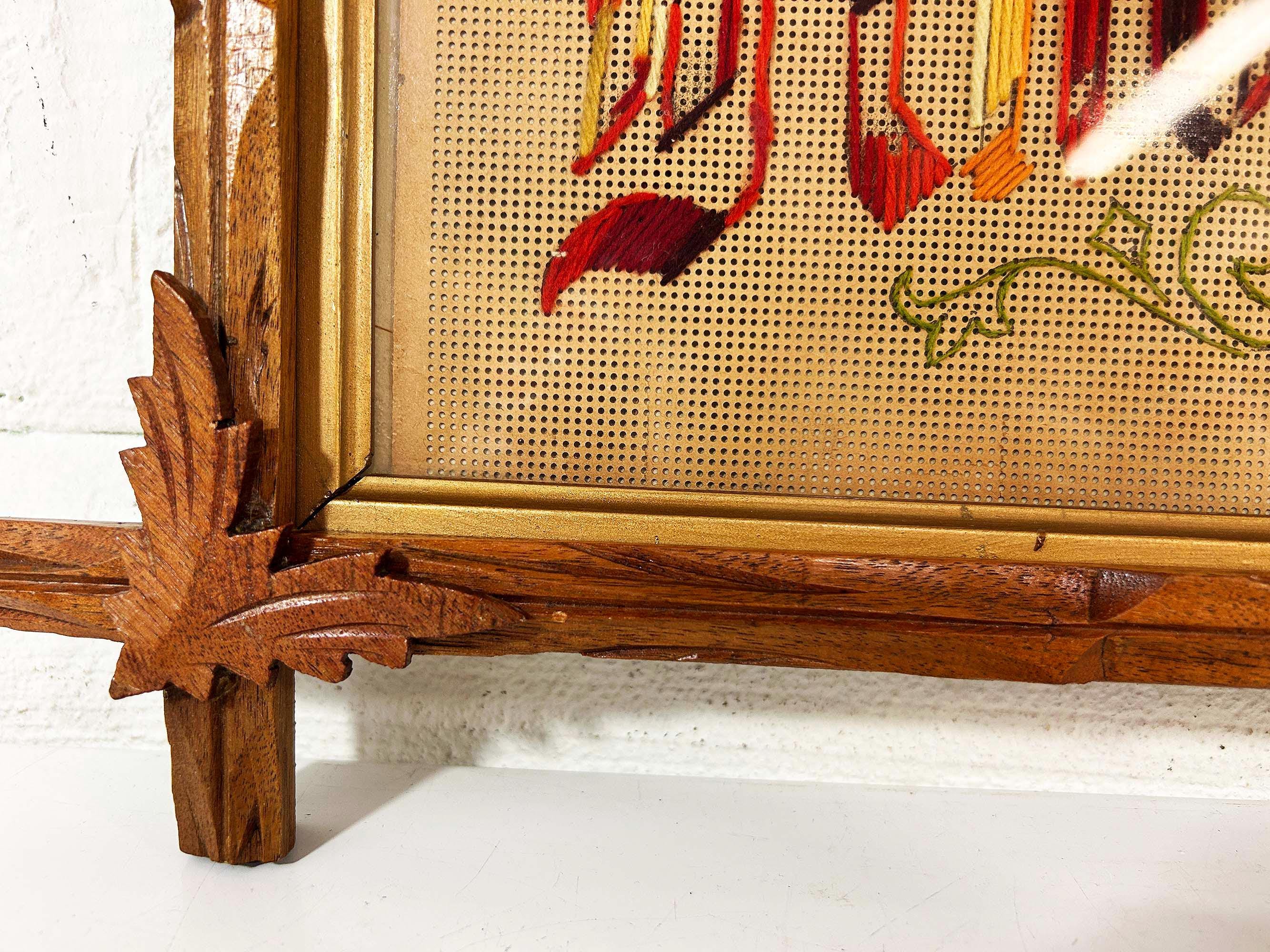 Incredible “Knowledge is Power” antique Victorian punch paper embroidery in an Adirondack frame! I've never seen one of these with this saying - super unique! The frame is approximately 14 inches tall and 26 inches wide. The frame is in good vintage shape but some of the wooden leaves at each corner have broken off - please be sure to inspect all photos closely. There is a wire on the back so it is ready to hang.