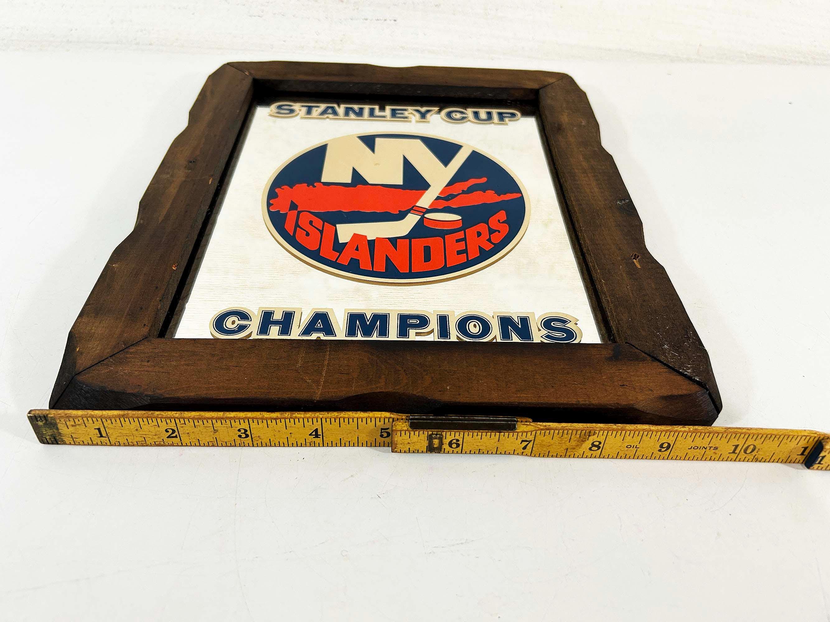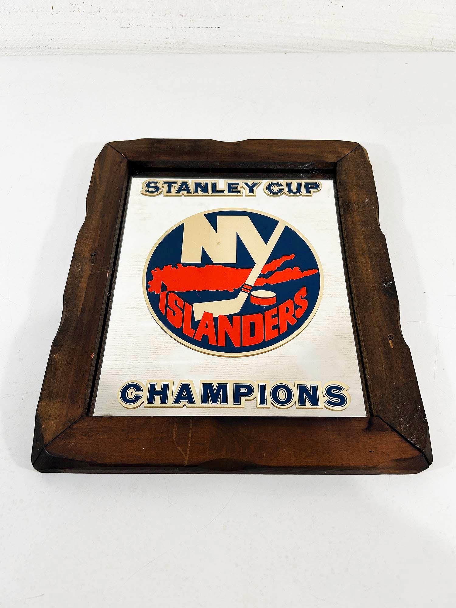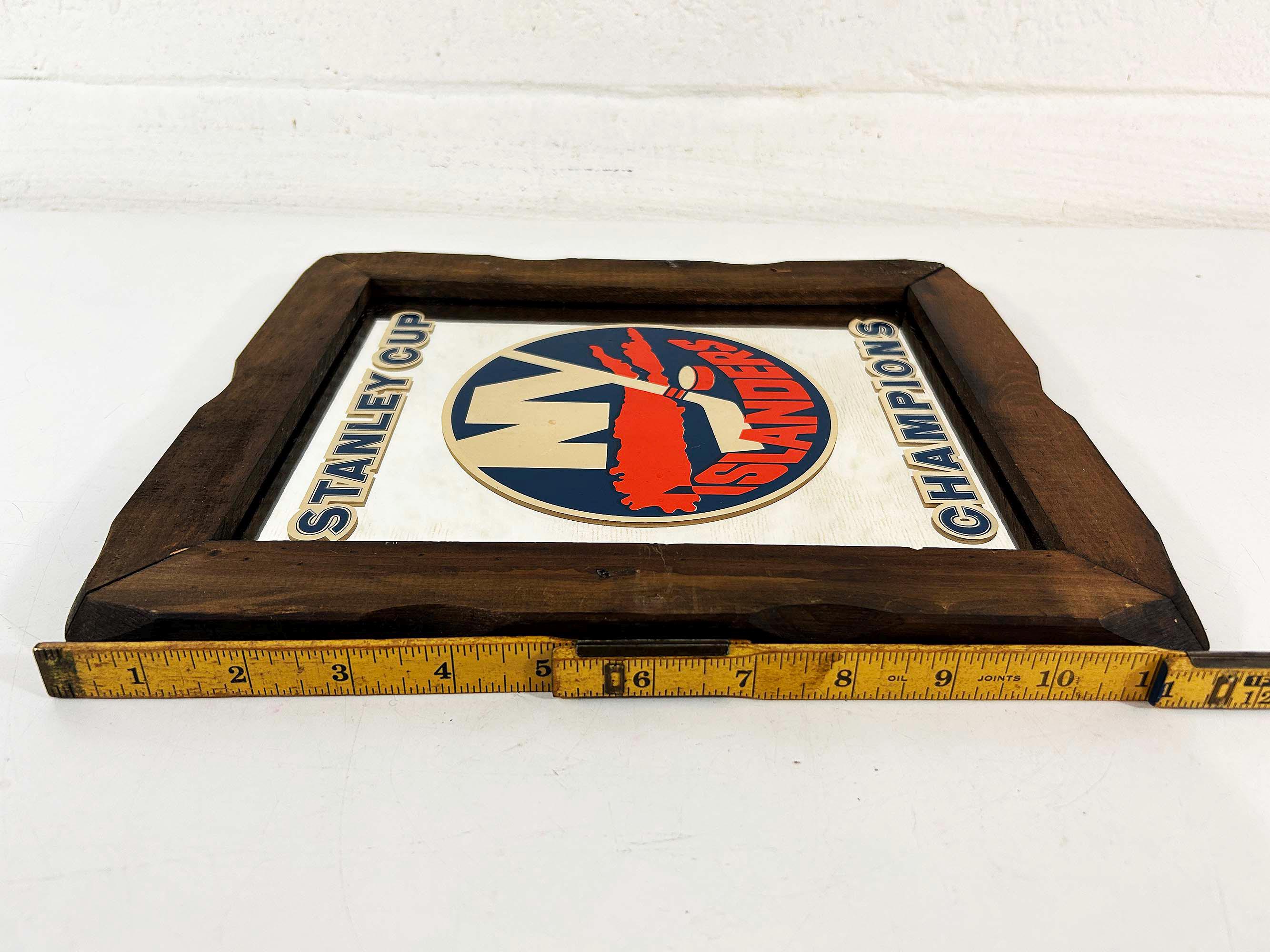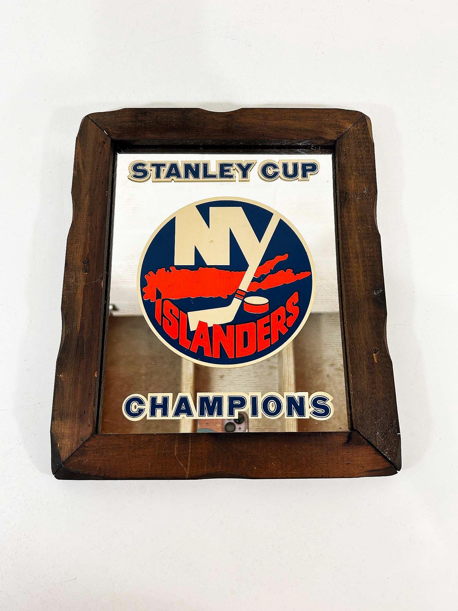 Super awesome vintage 1980s carnival mirror! This framed piece is approximately 11 1/2 inches tall and 9 1/2 inches wide and is in great vintage condition. It doesn't have a wire for hanging, but you can purchase a kit at a craft or frame store. The perfect gift for a hockey fan.