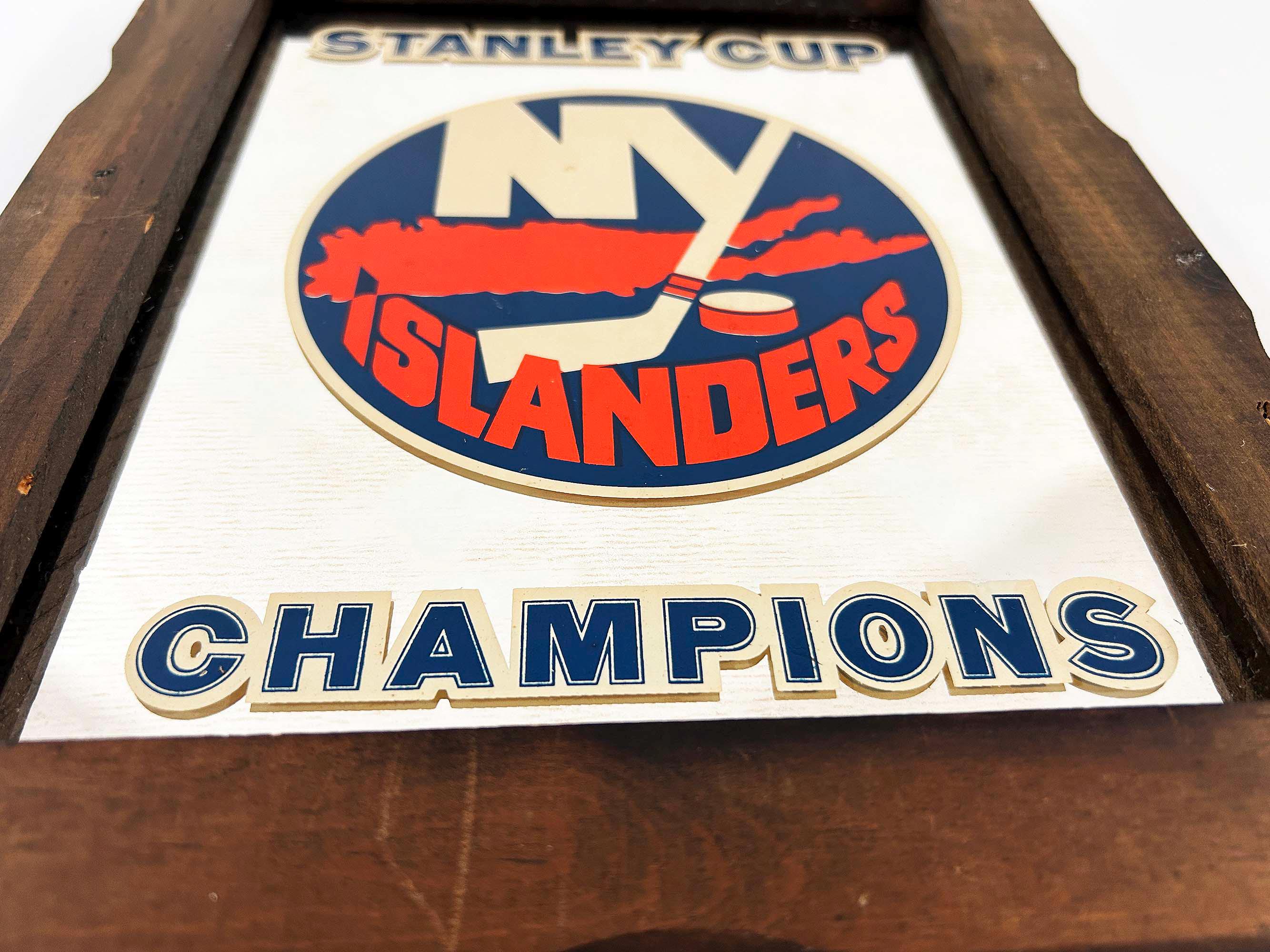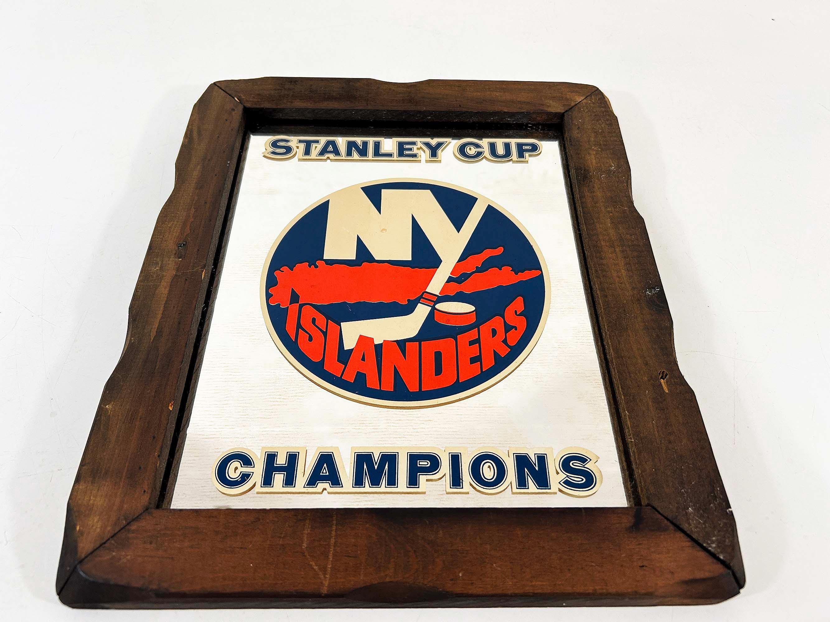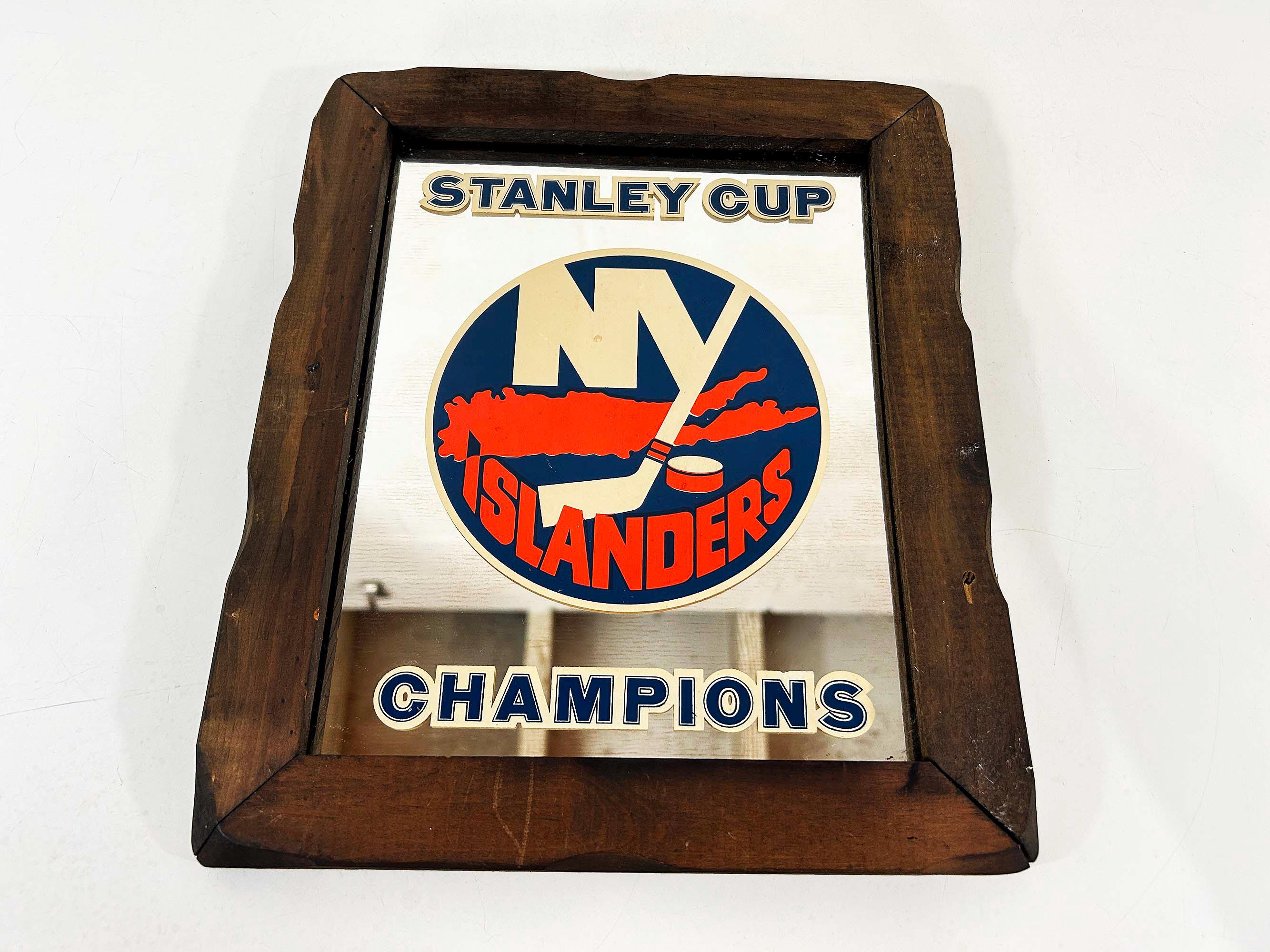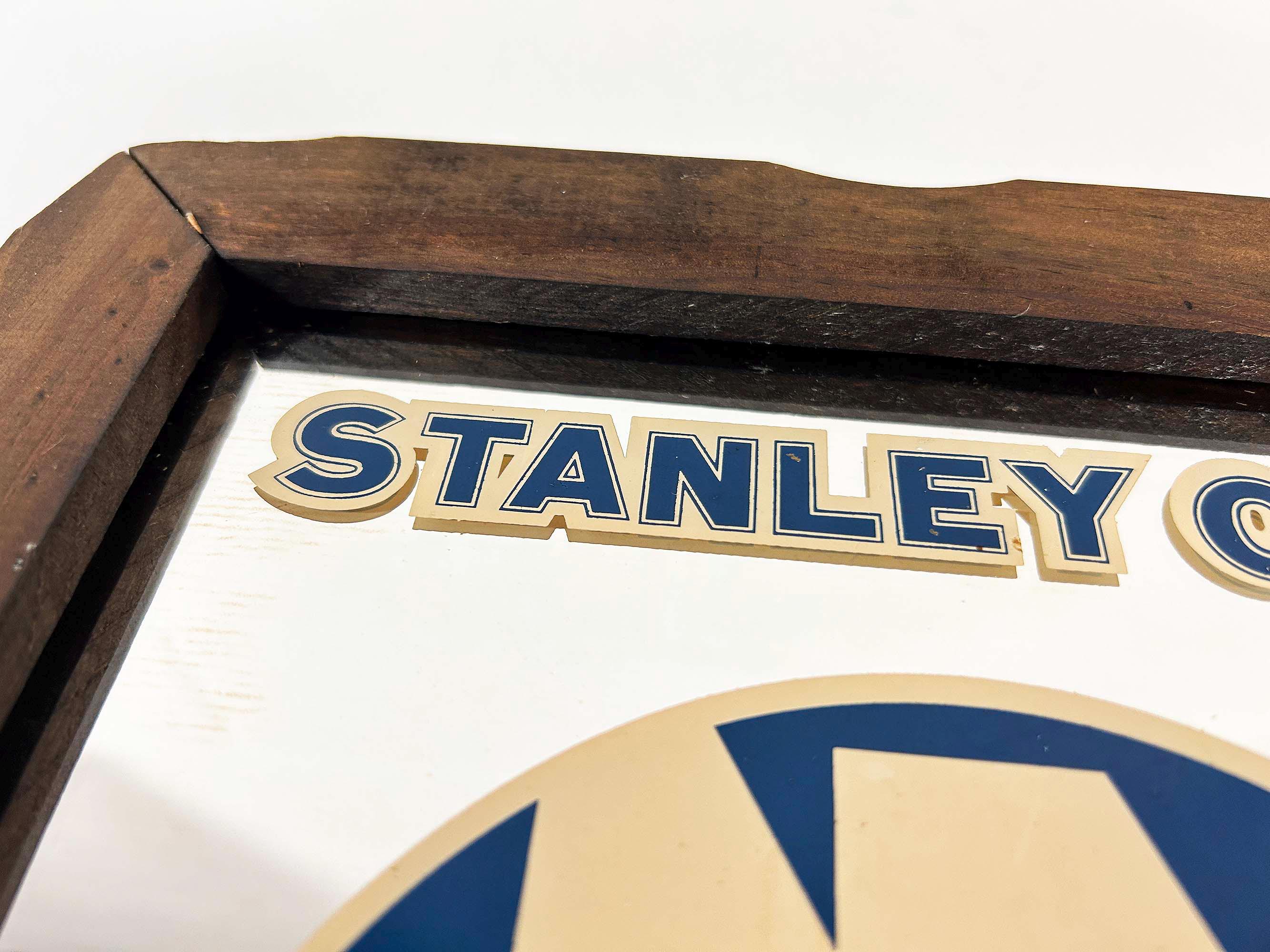 Super awesome vintage 1980s carnival mirror! This framed piece is approximately 11 1/2 inches tall and 9 1/2 inches wide and is in great vintage condition. It doesn't have a wire for hanging, but you can purchase a kit at a craft or frame store. The perfect gift for a hockey fan.