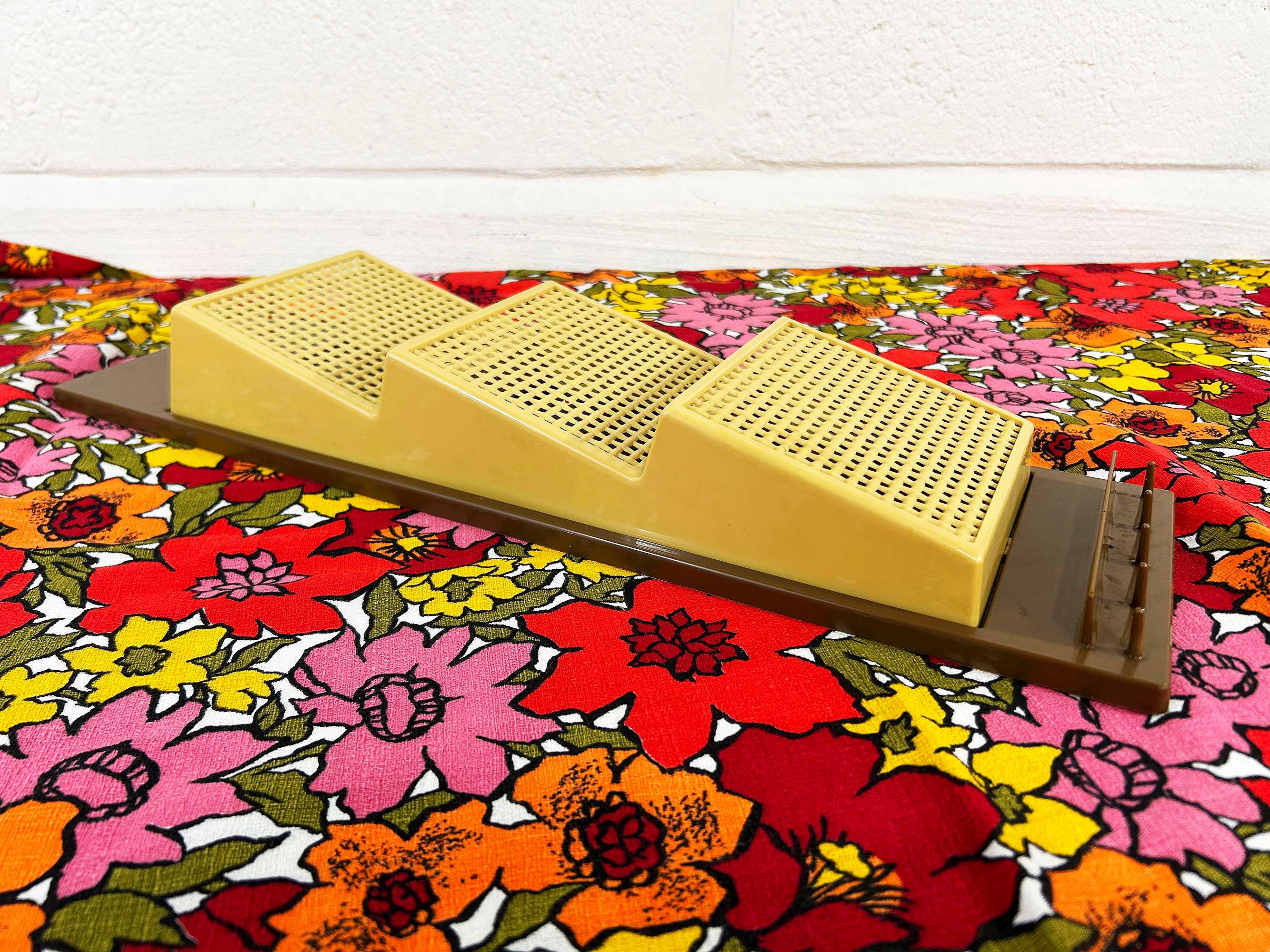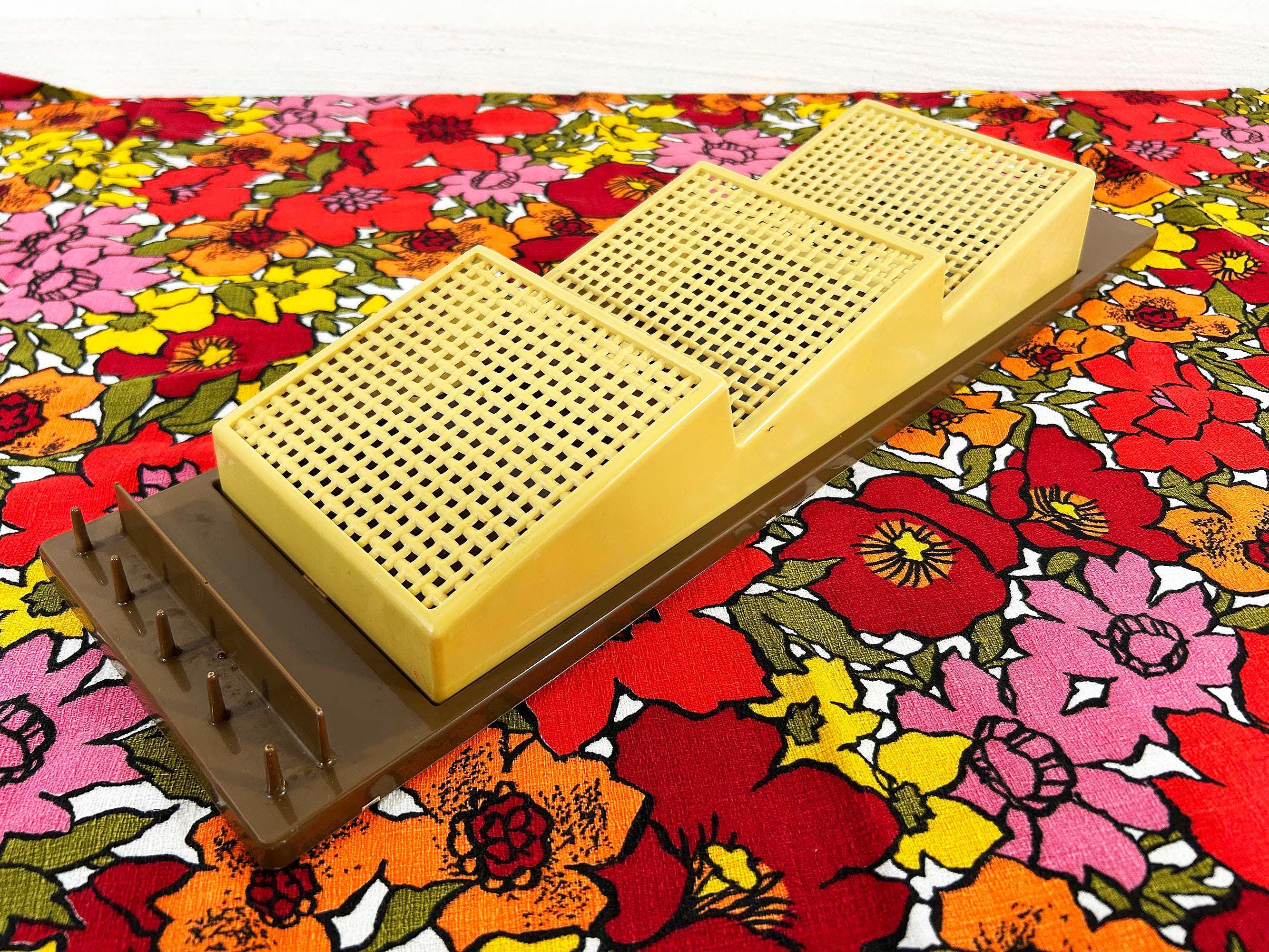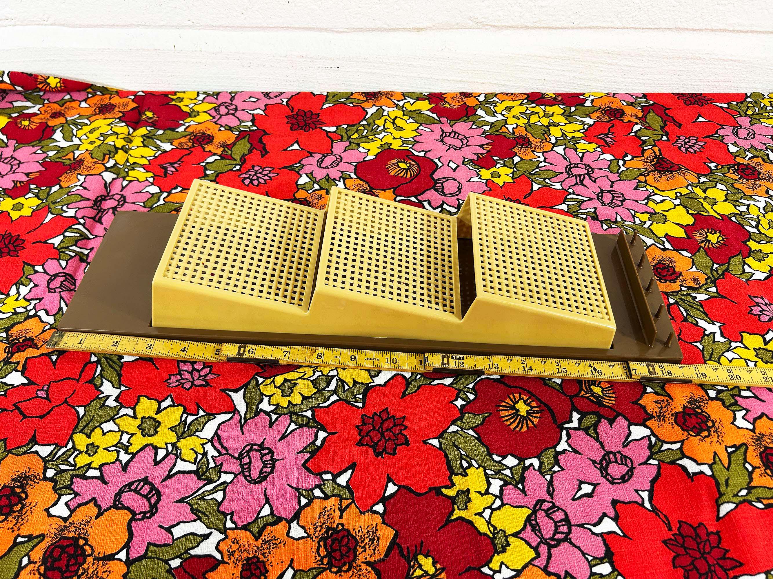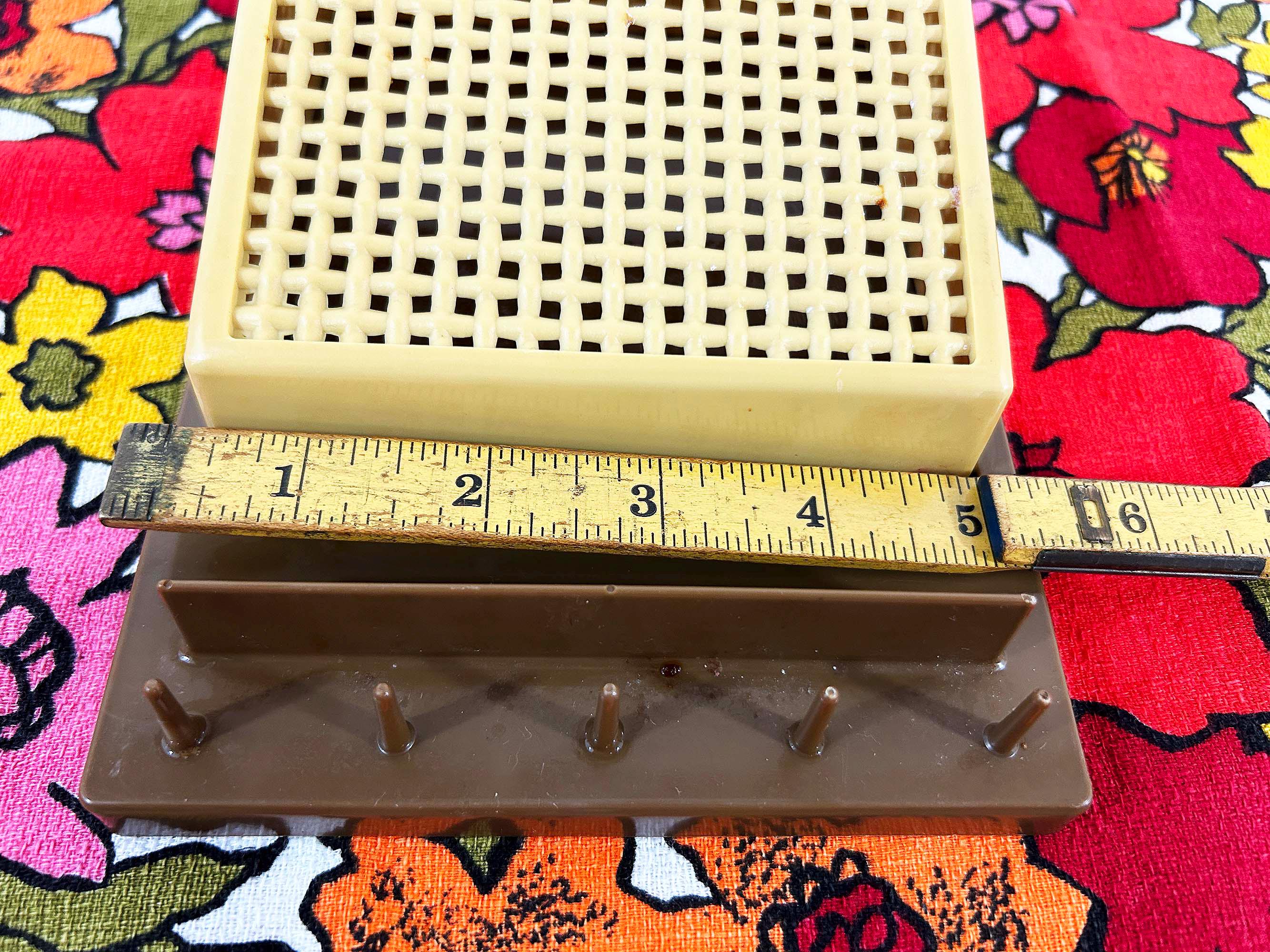 Adorable 1960s brown and tan plastic wall organizer! Cute and handy to have at your front door or in your kitchen. In great vintage shape with no significant flaws. It is approximately 18 1/2 inches tall and 5 1/2 inches wide.