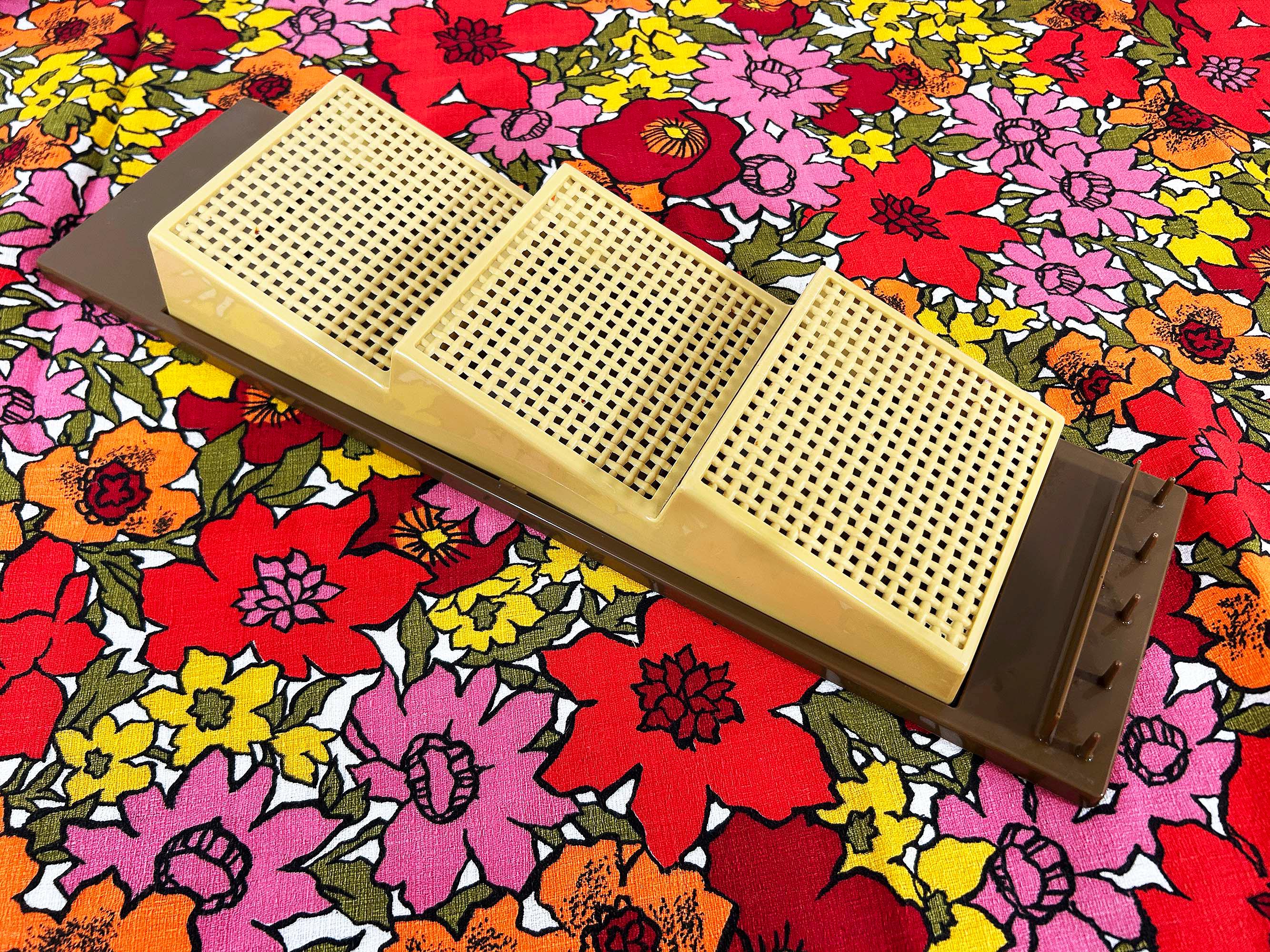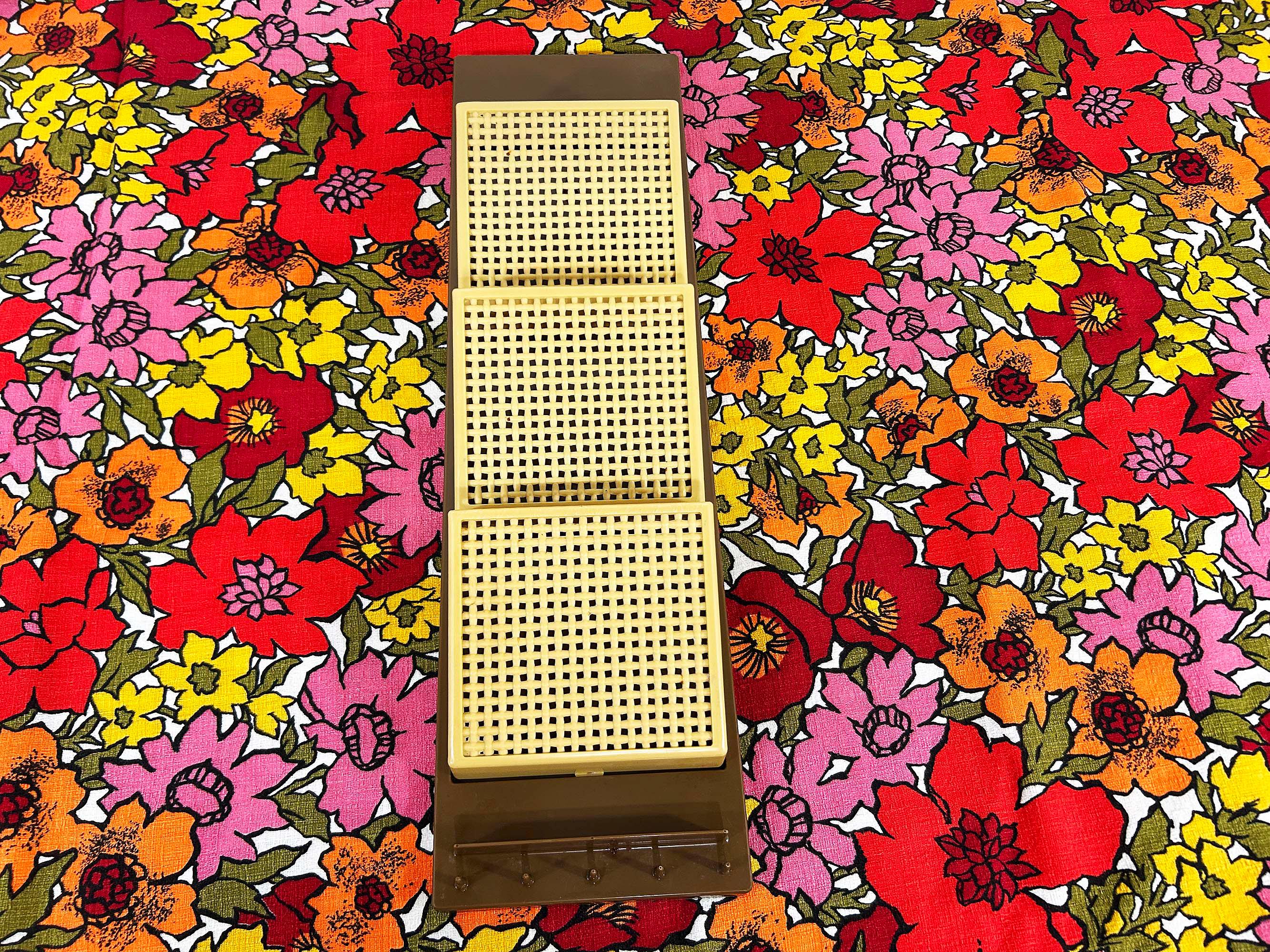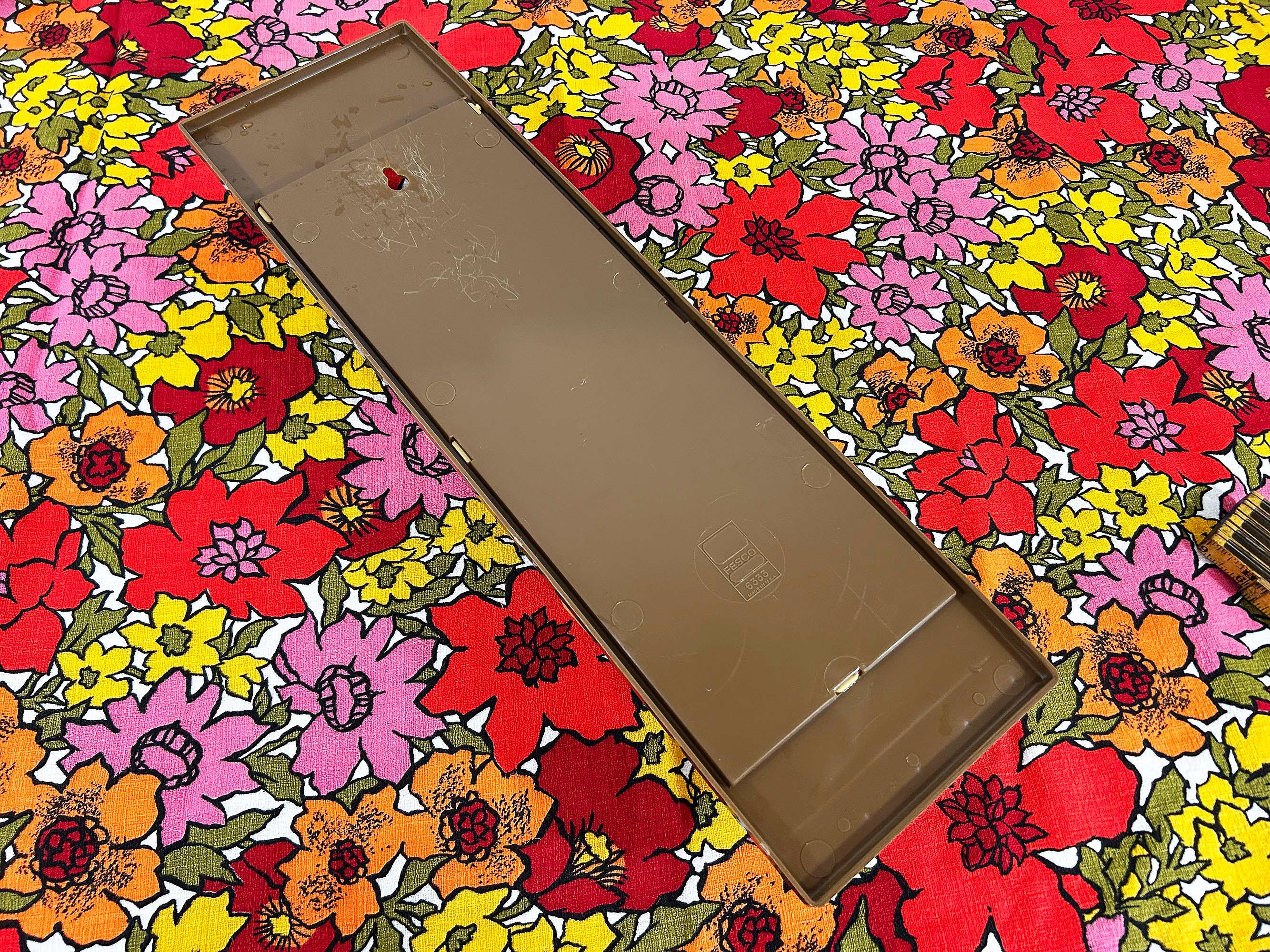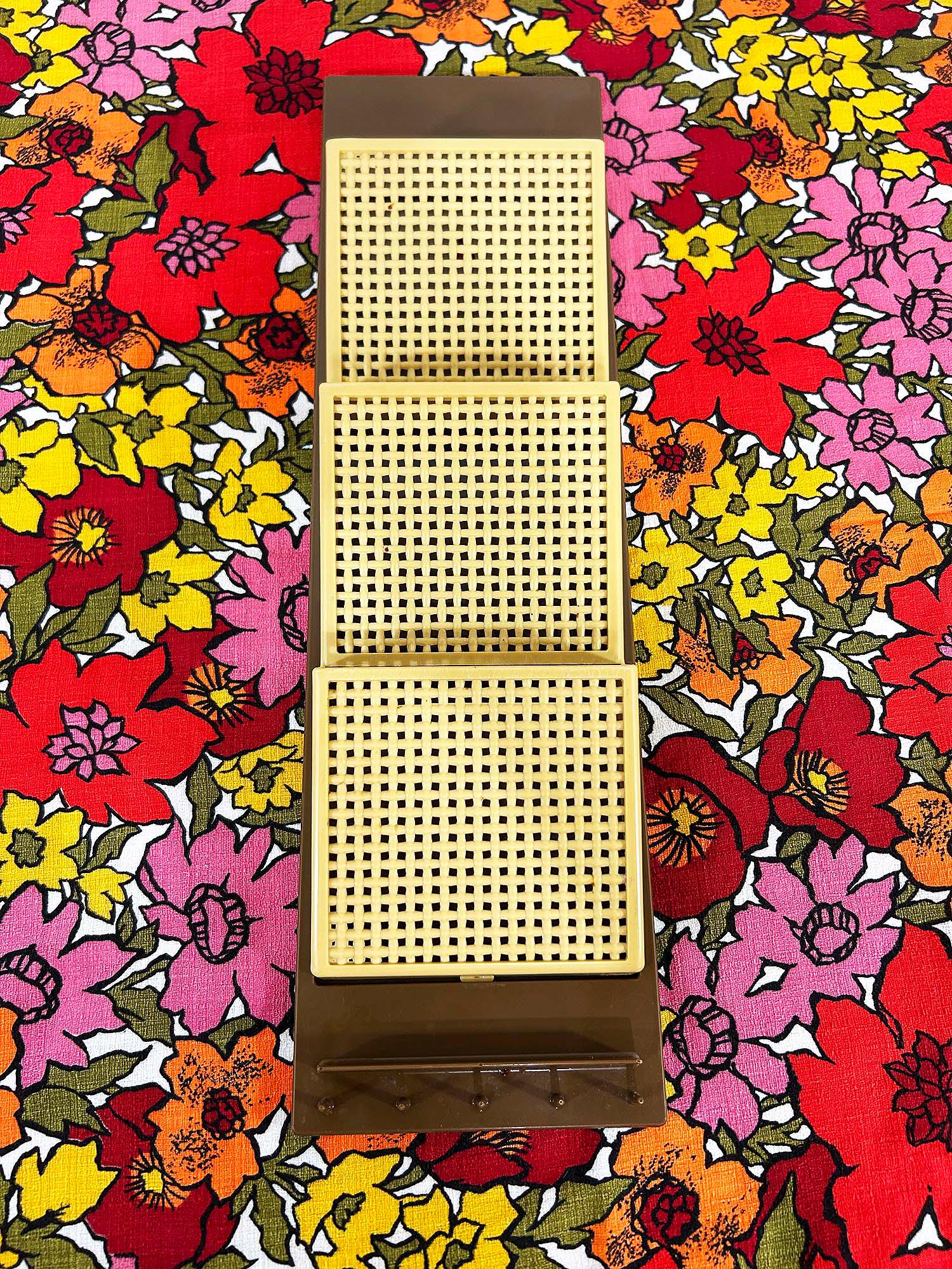 Adorable 1960s brown and tan plastic wall organizer! Cute and handy to have at your front door or in your kitchen. In great vintage shape with no significant flaws. It is approximately 18 1/2 inches tall and 5 1/2 inches wide.